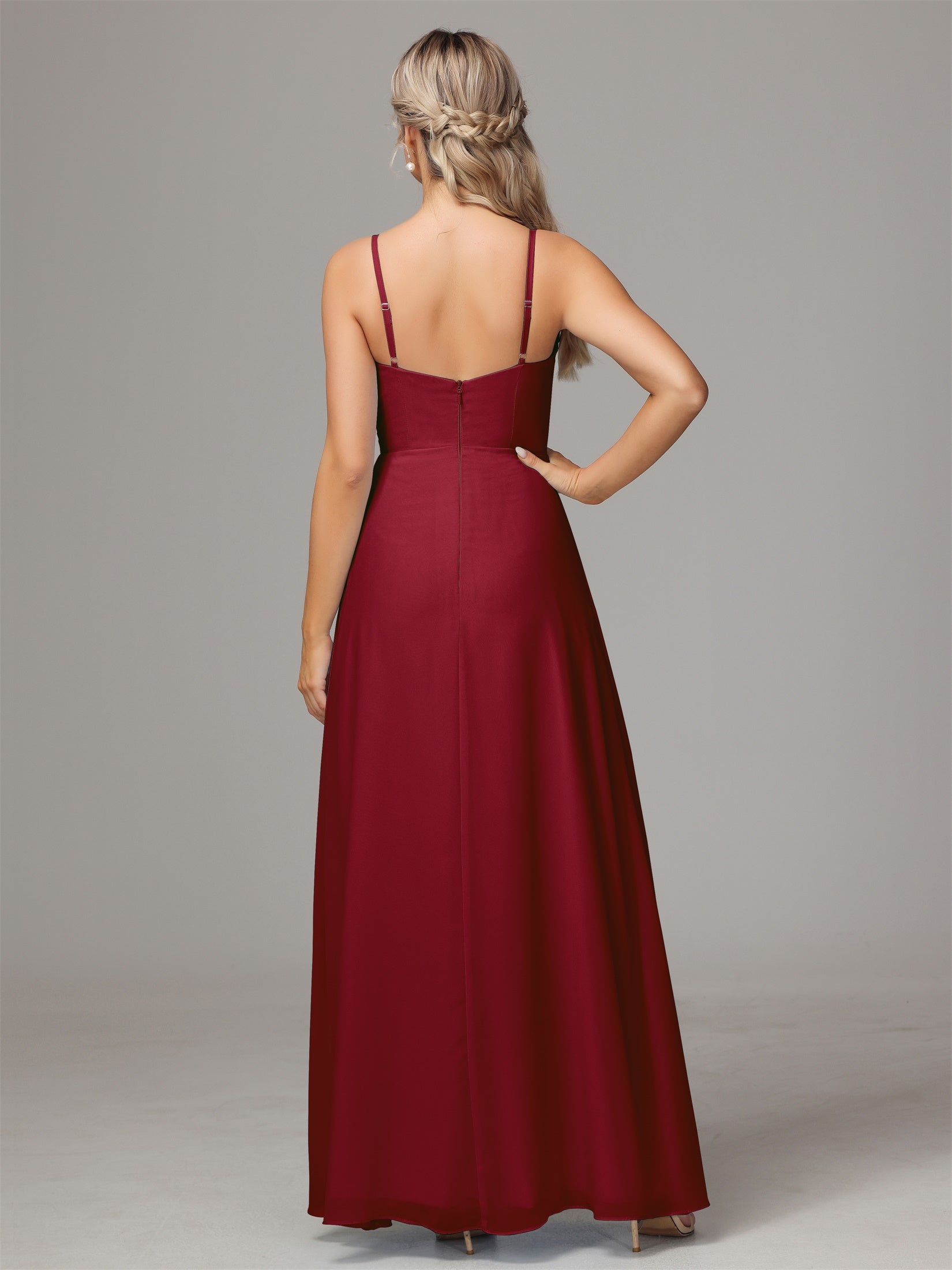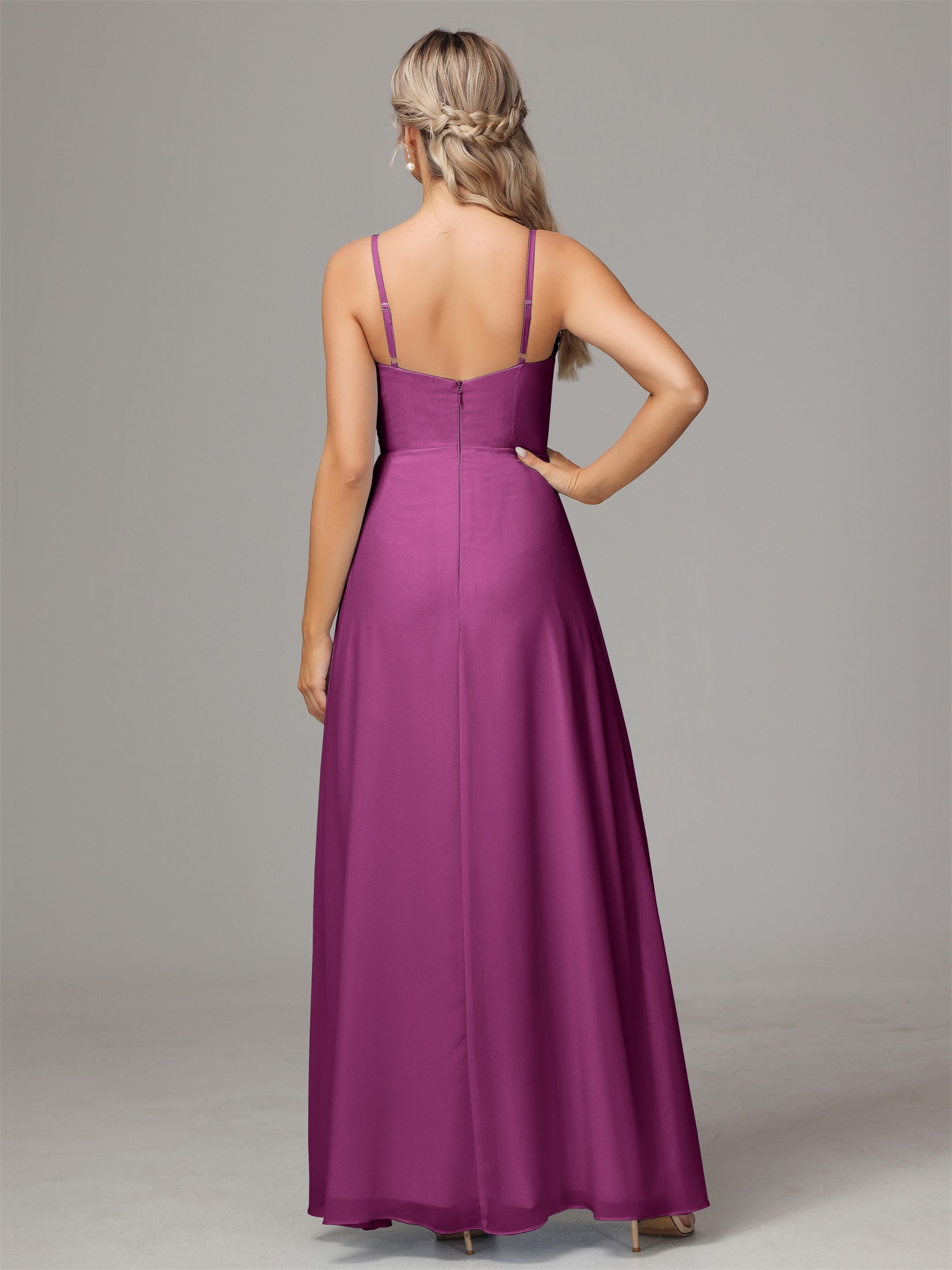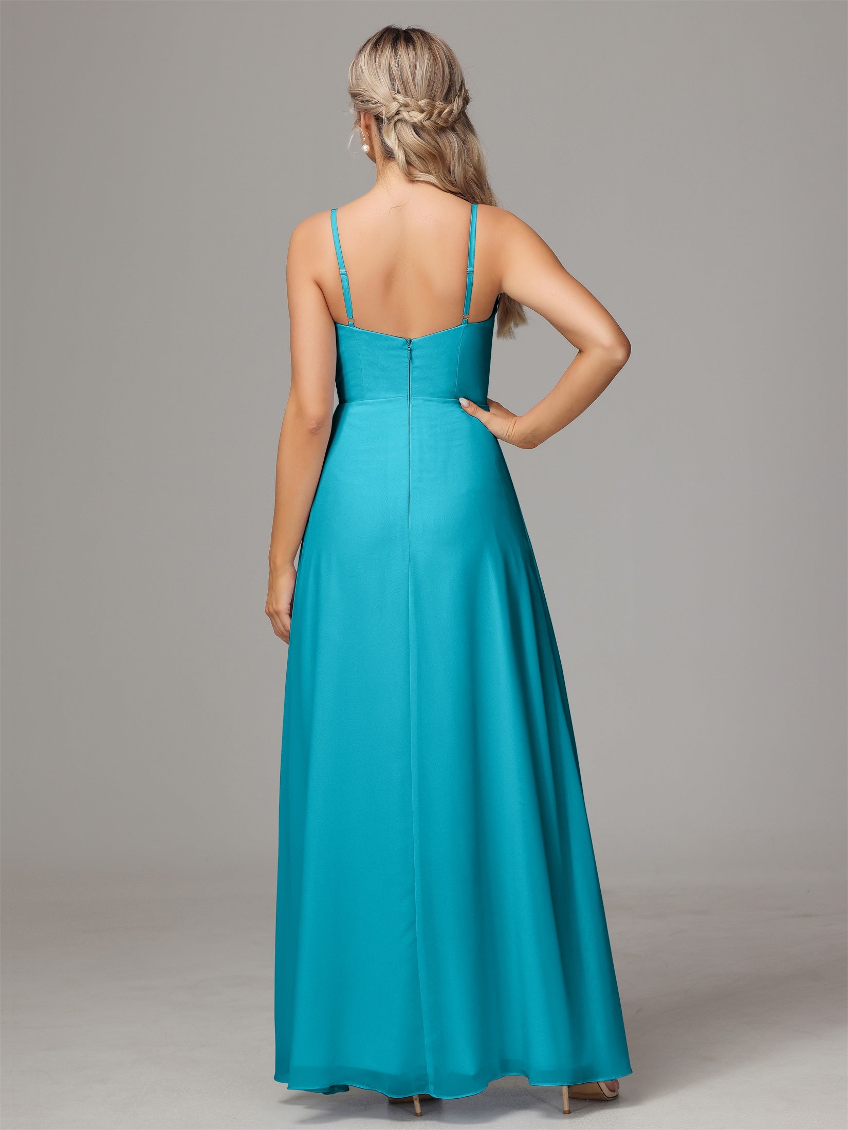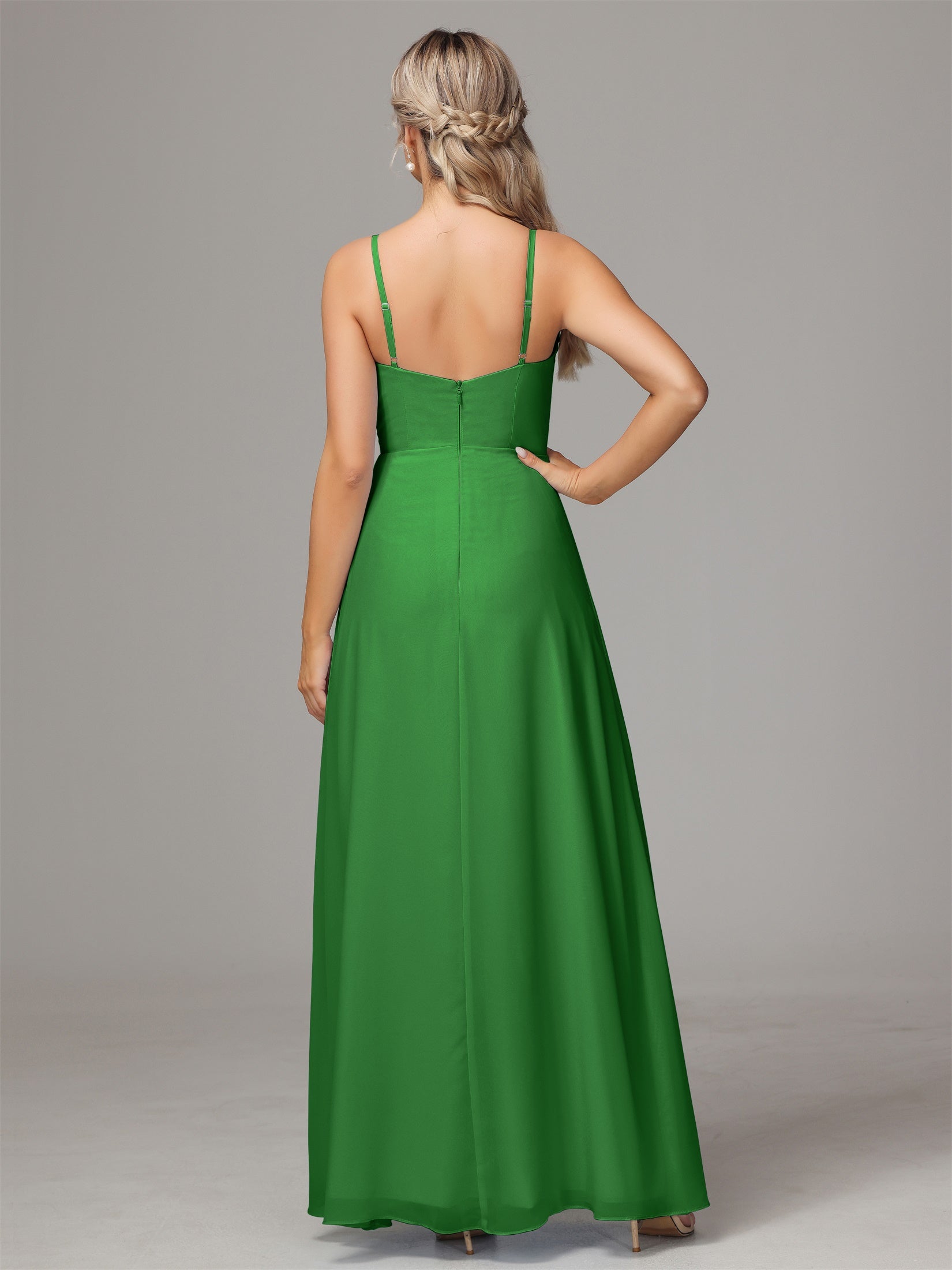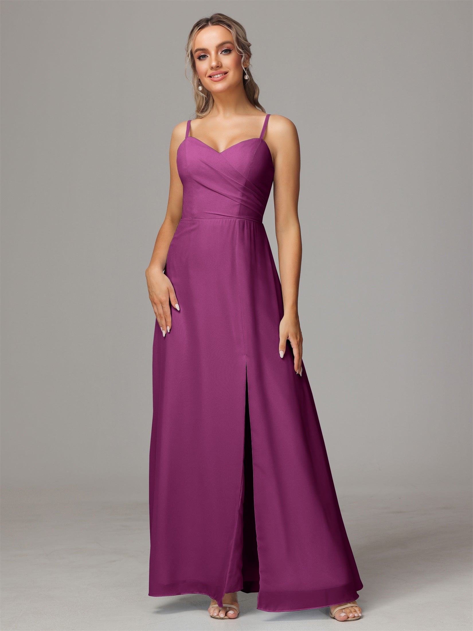 Bailee Spaghetti-Träger Geschlitzt Chiffon Brautjungfernkleider