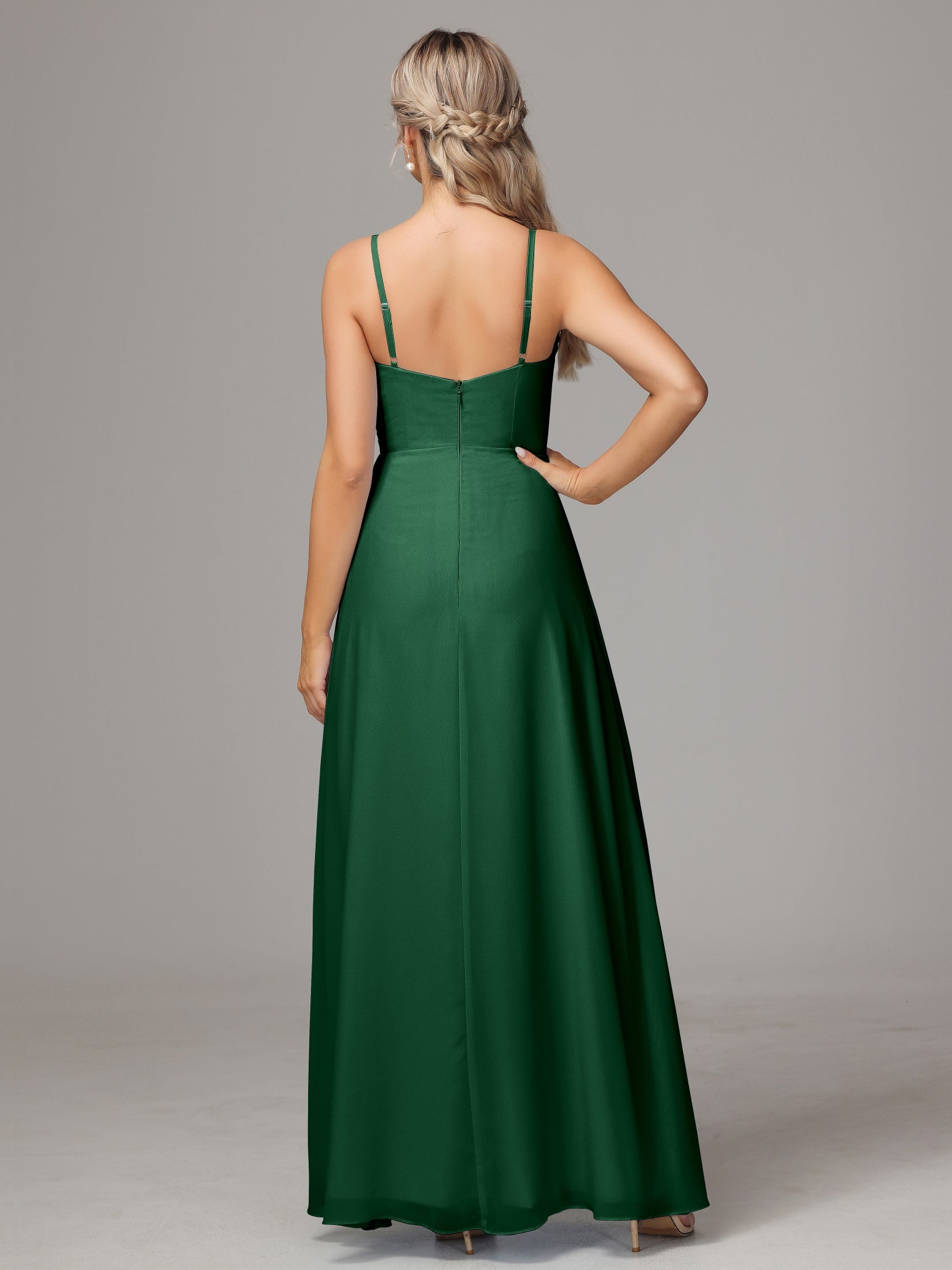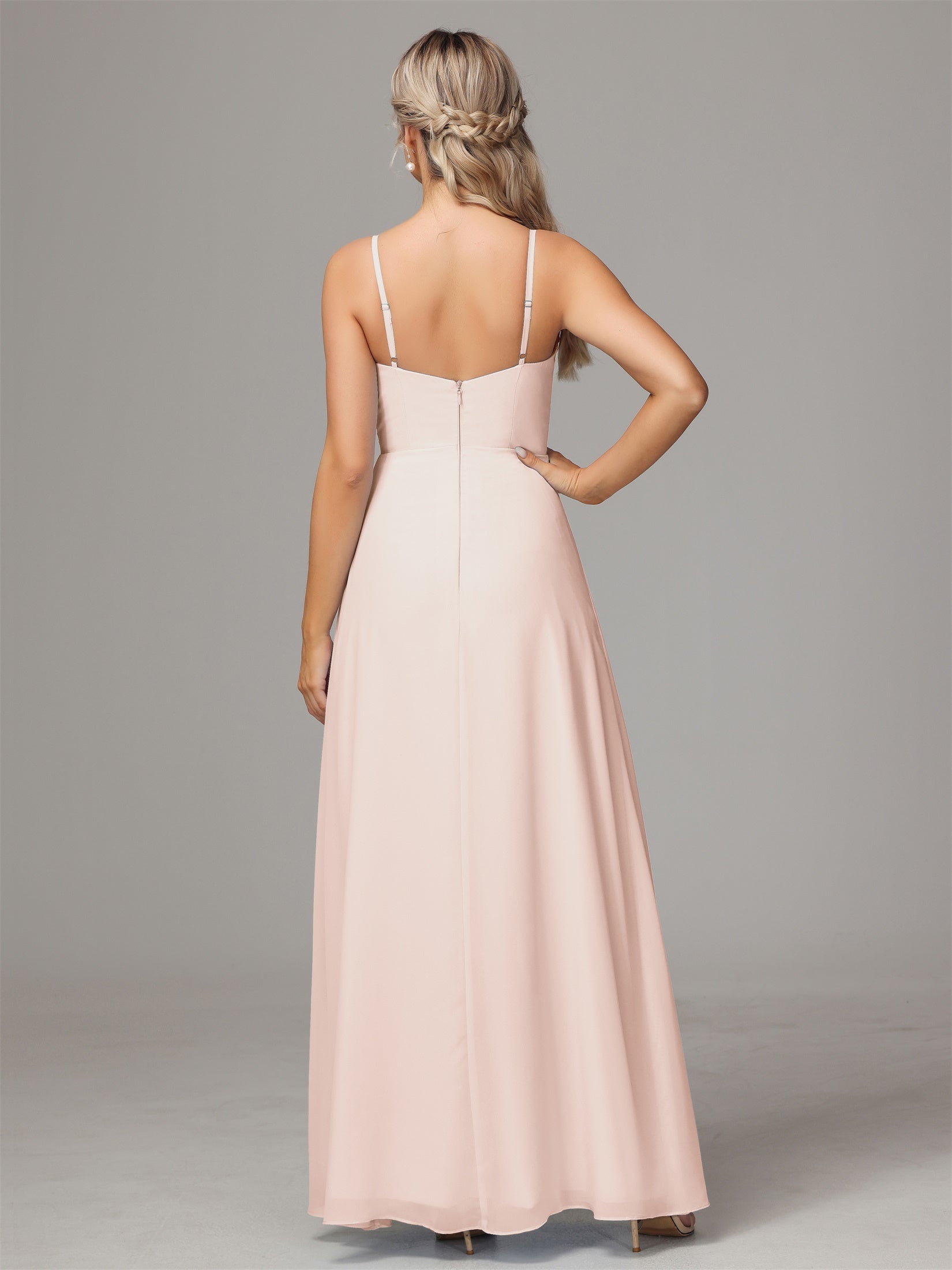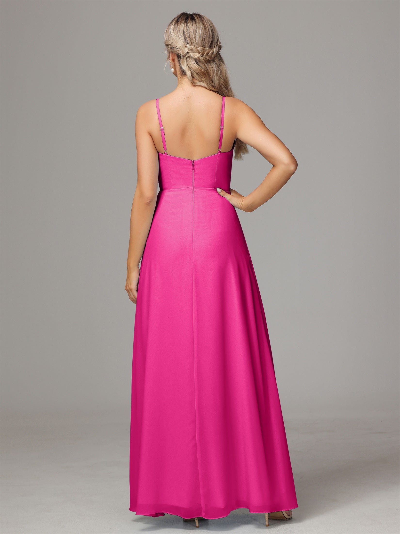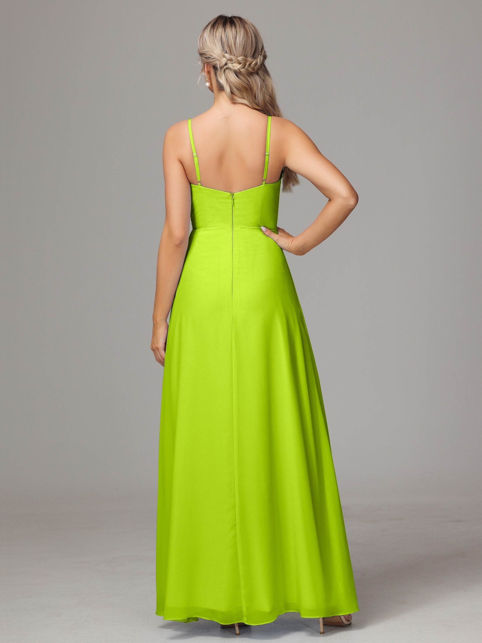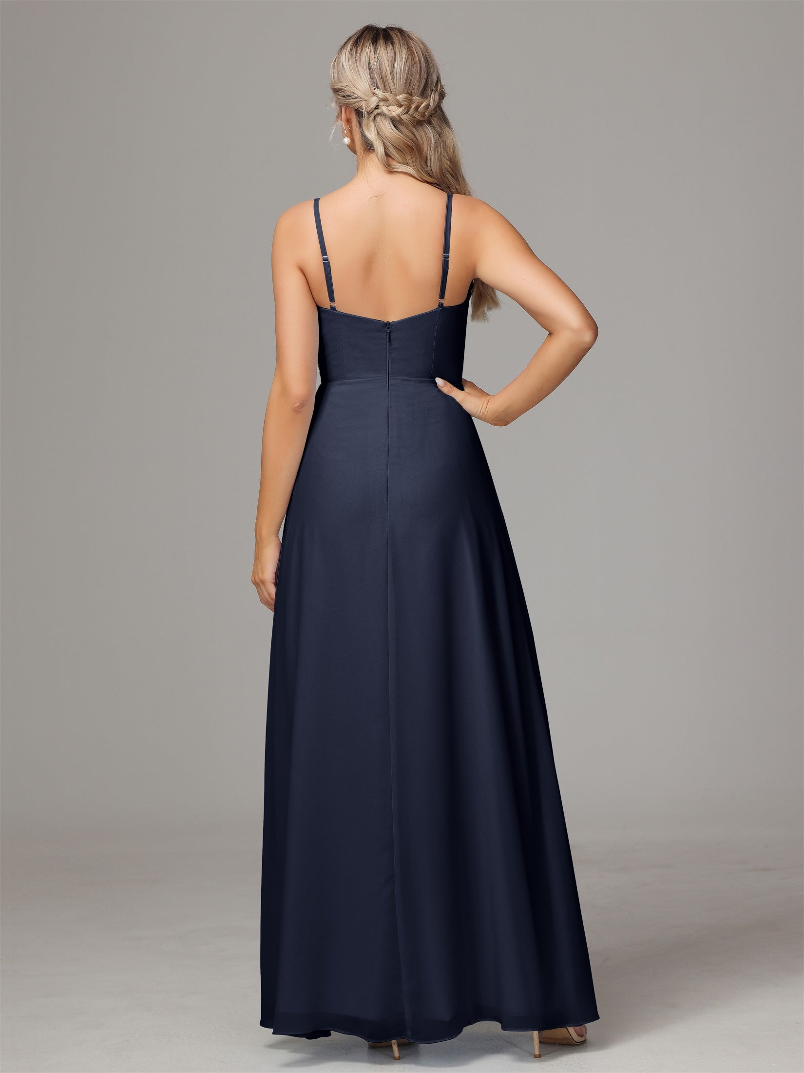 Bailee Spaghetti-Träger Geschlitzt Chiffon Brautjungfernkleider
