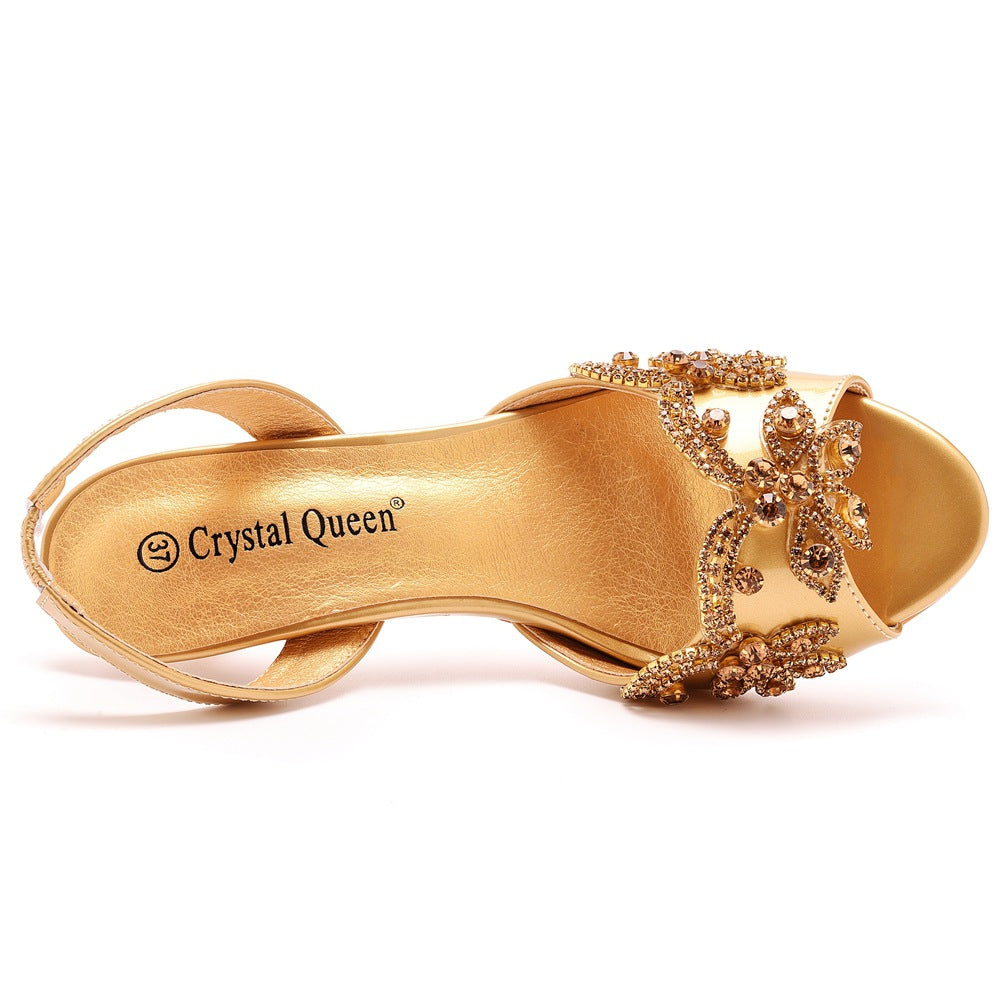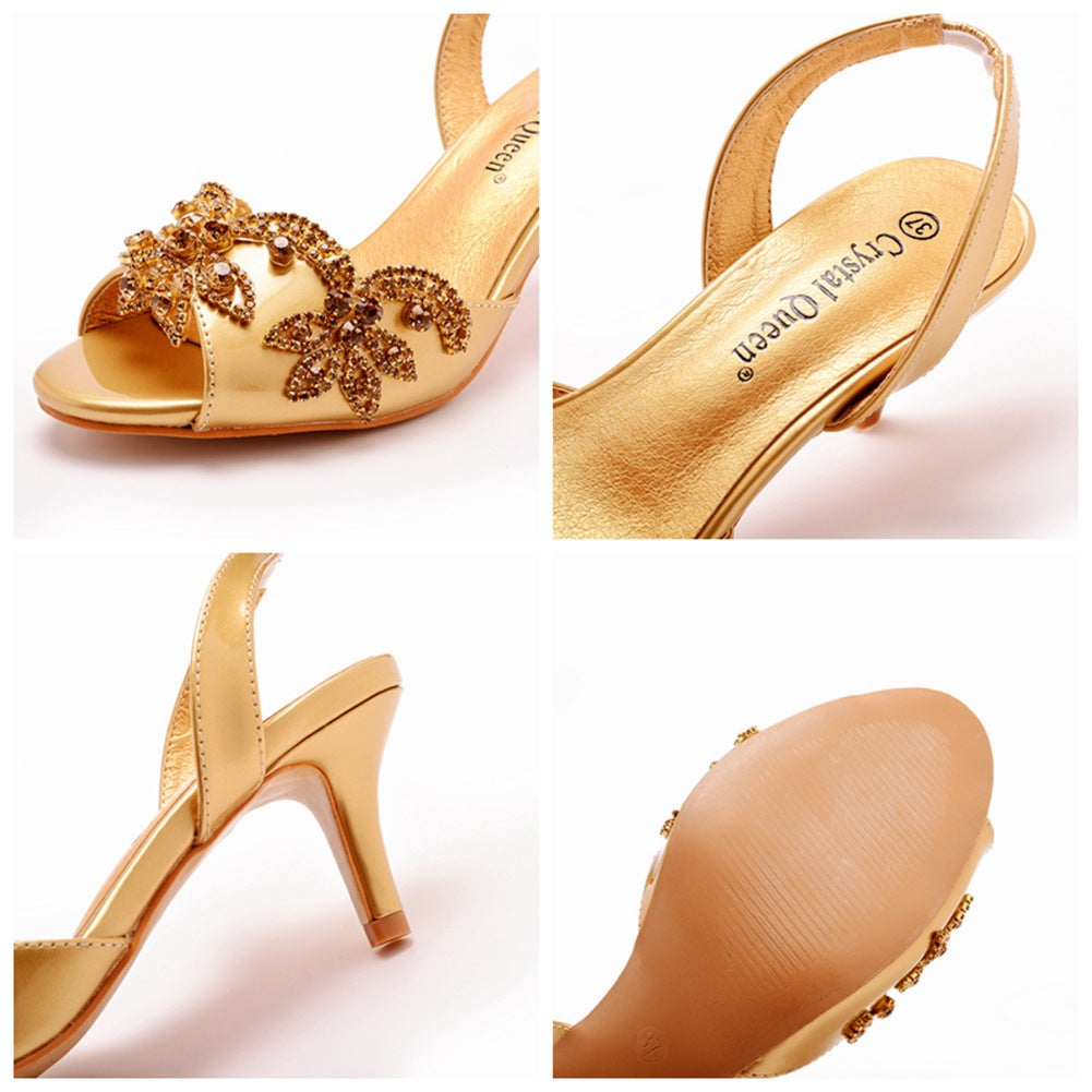Bezaubernde Slingback-Pumps Mit Gold-Rhinestone-Verzierung Und Peep Toe