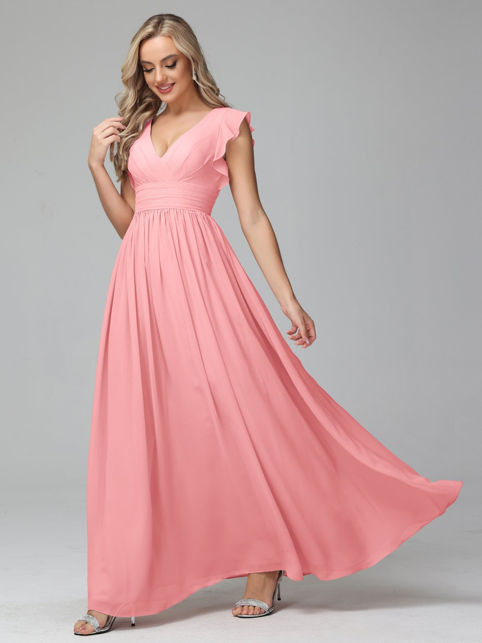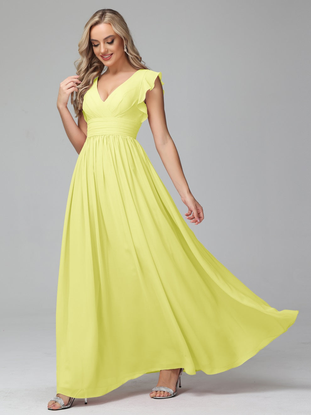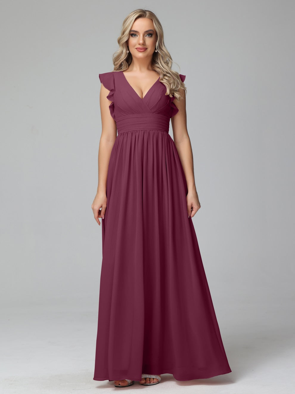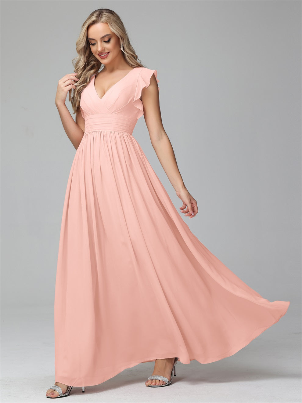 Bonnie V-Ausschnitt Chiffon Brautjungfernkleider mit gerafften Ärmeln