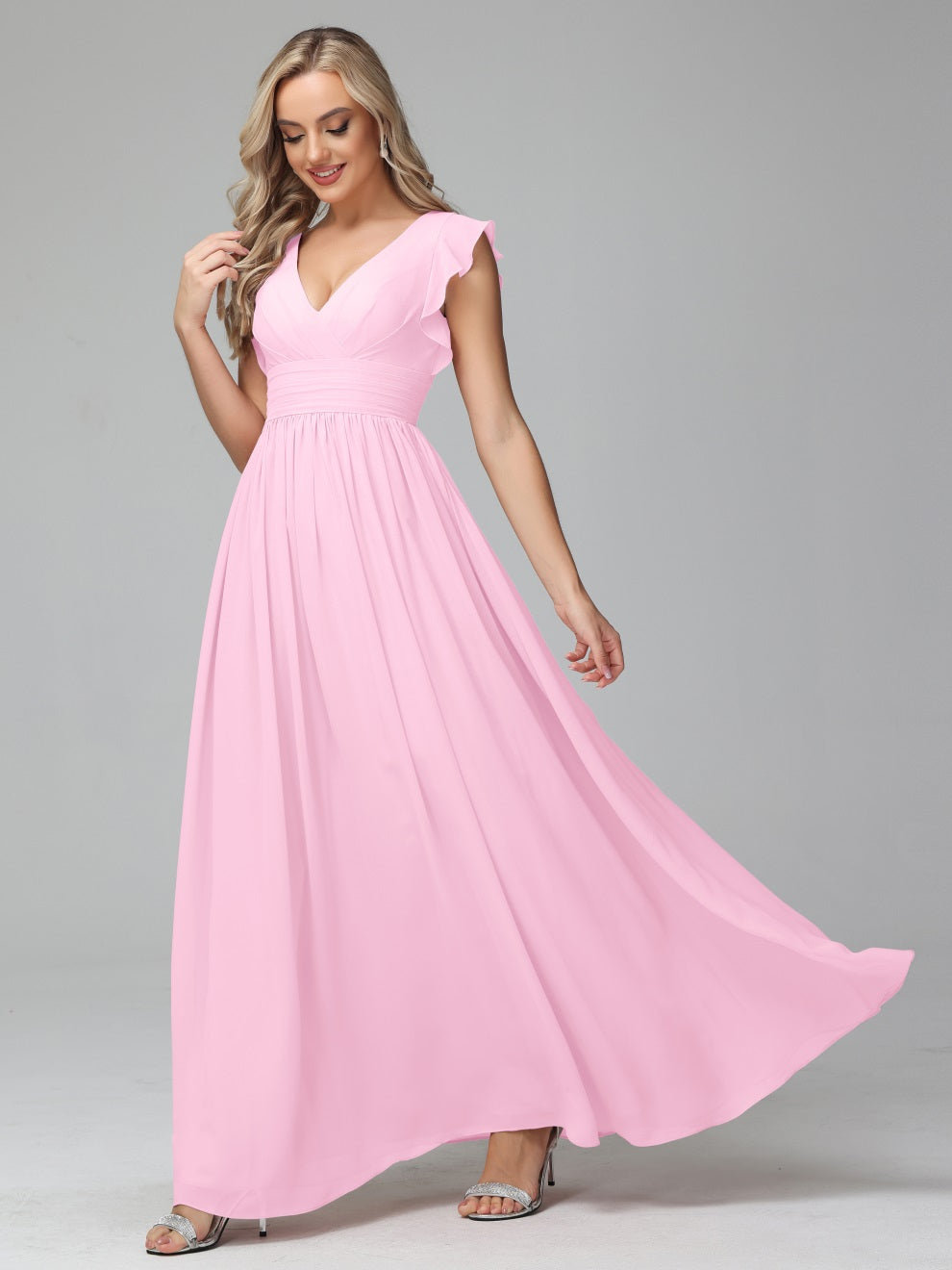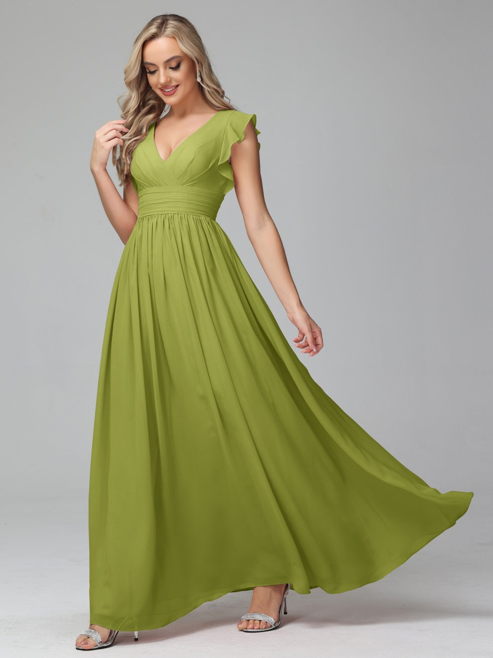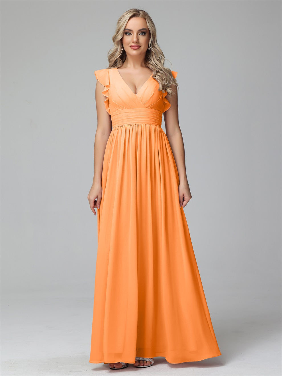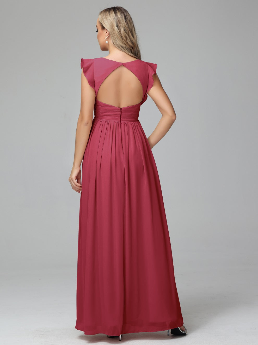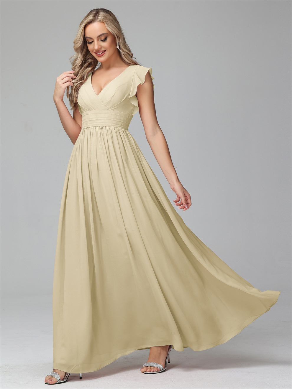Bonnie V-Ausschnitt Chiffon Brautjungfernkleider mit gerafften Ärmeln