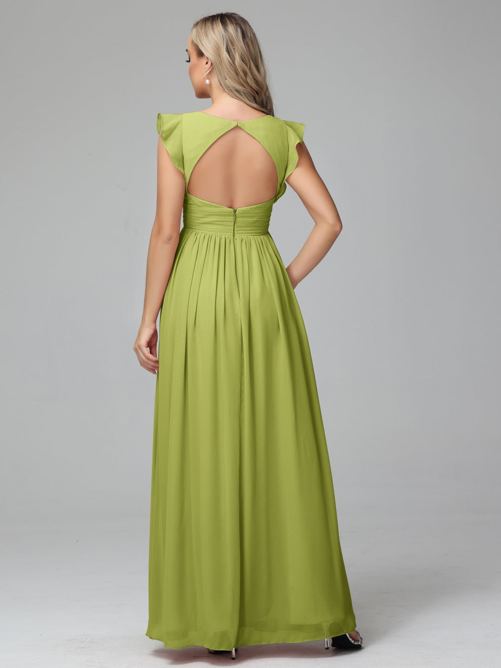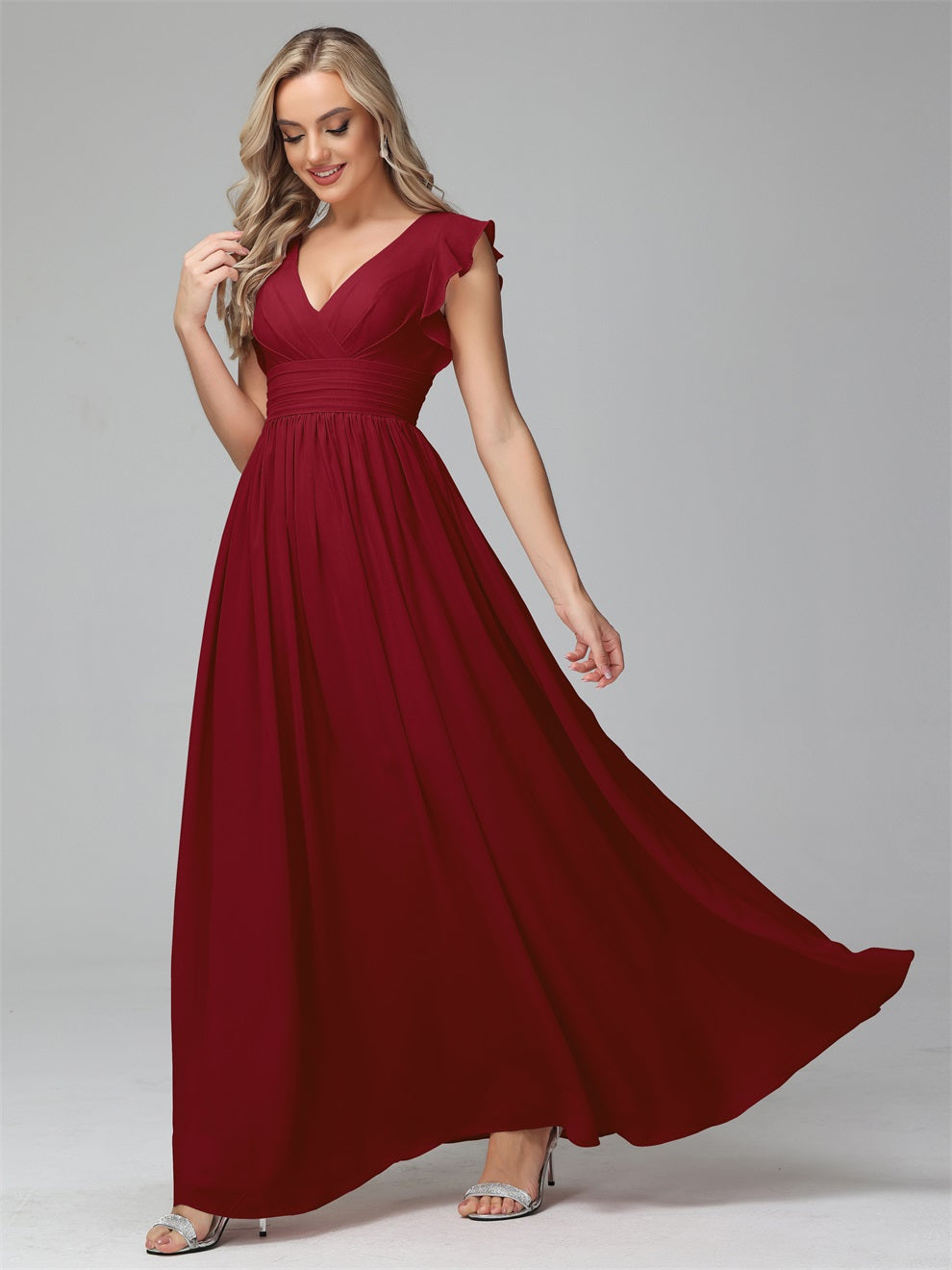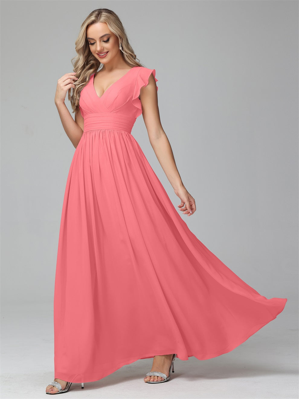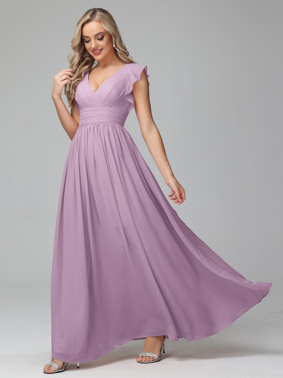 Bonnie V-Ausschnitt Chiffon Brautjungfernkleider mit gerafften Ärmeln