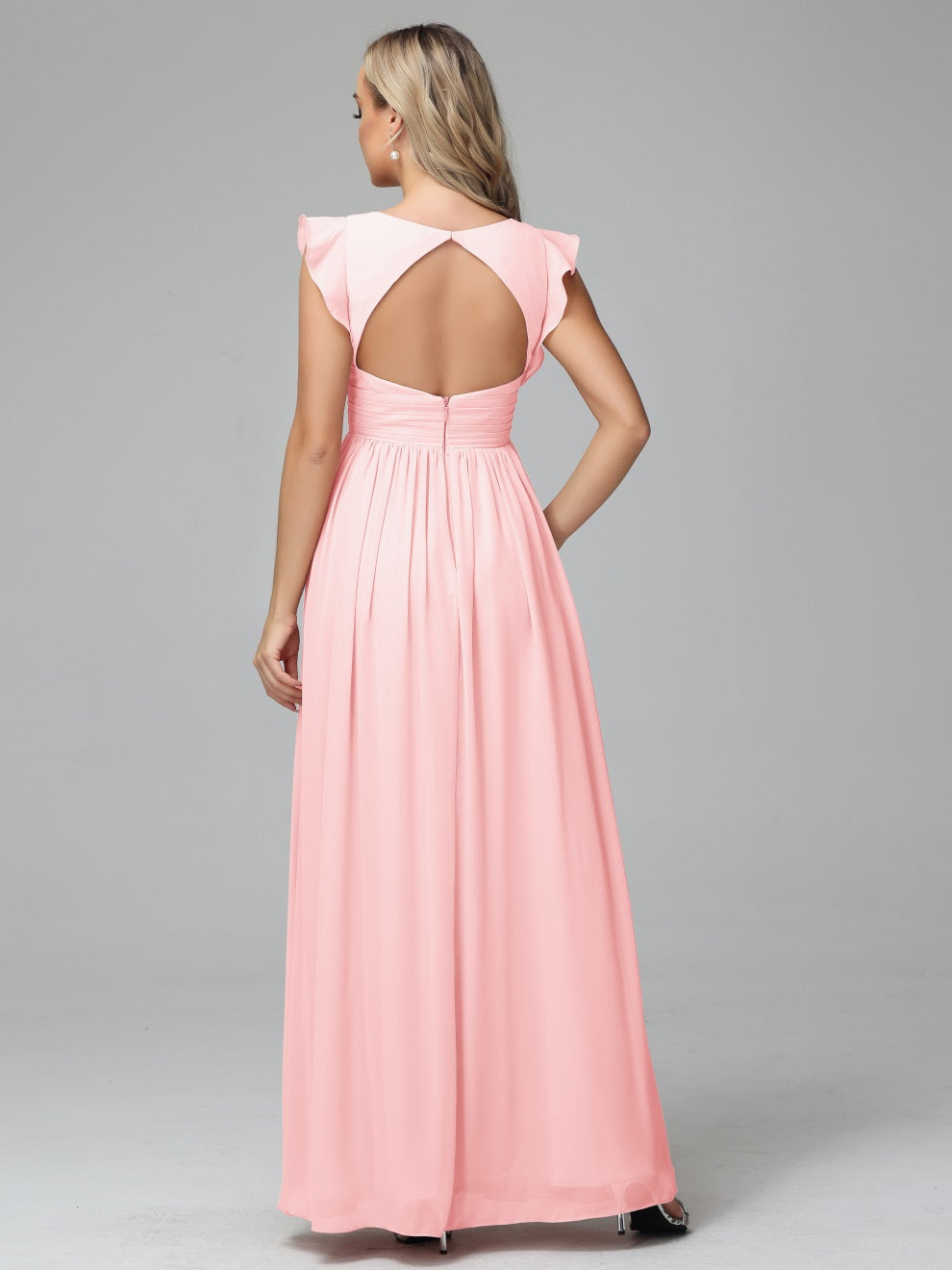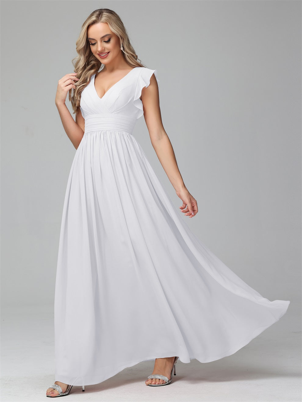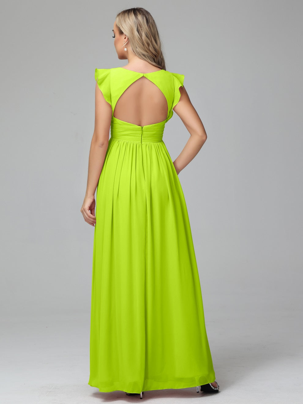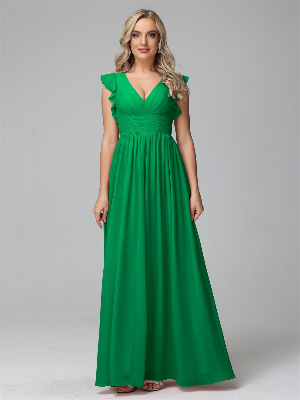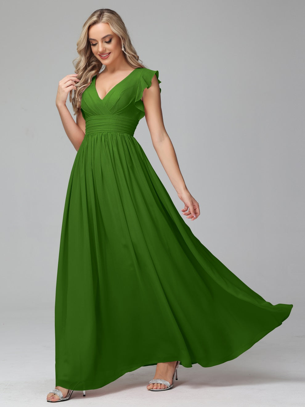 Bonnie V-Ausschnitt Chiffon Brautjungfernkleider mit gerafften Ärmeln