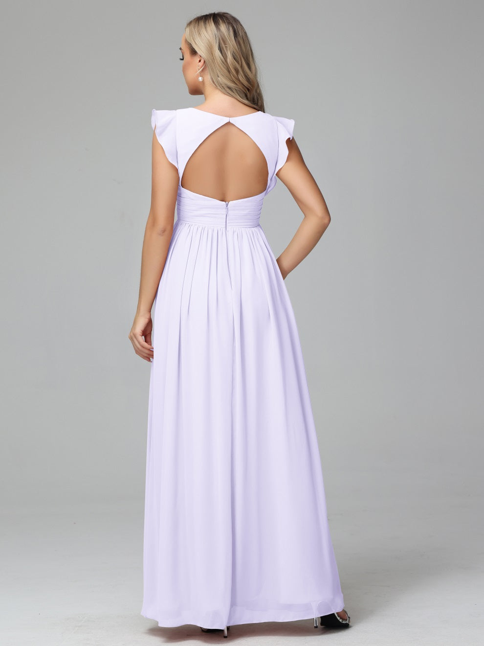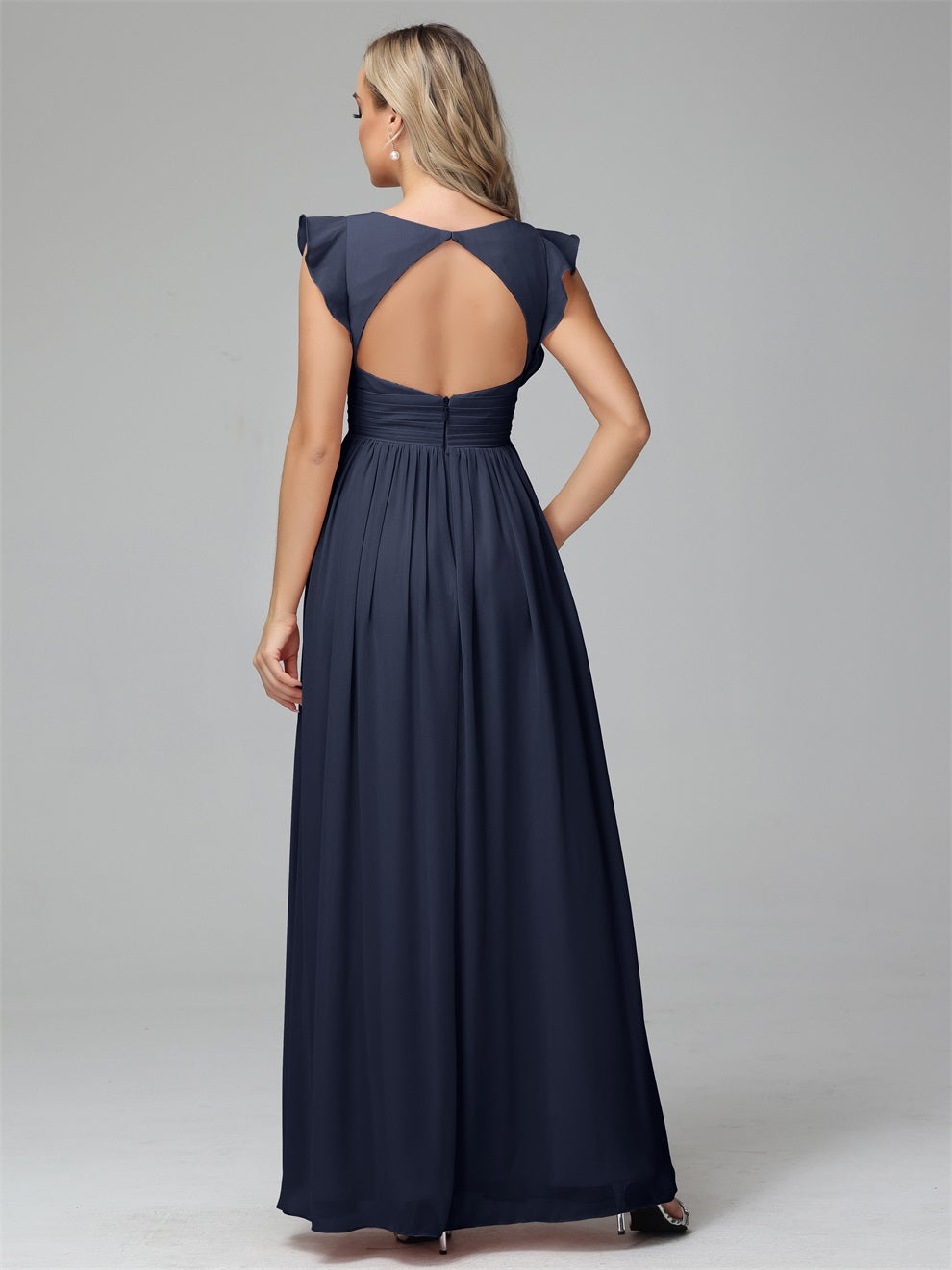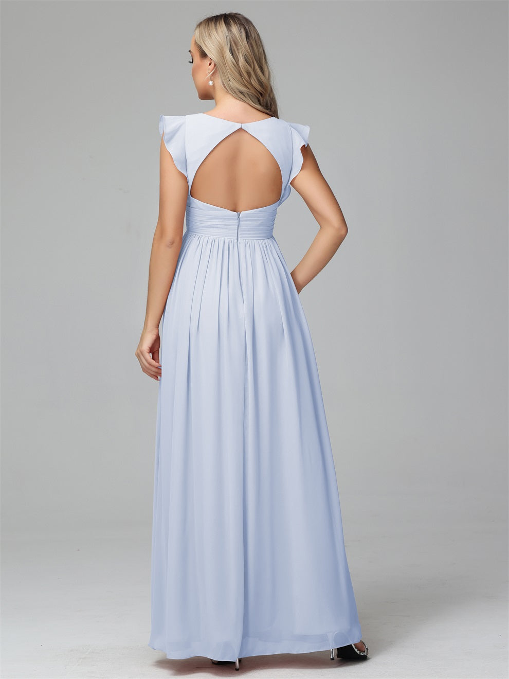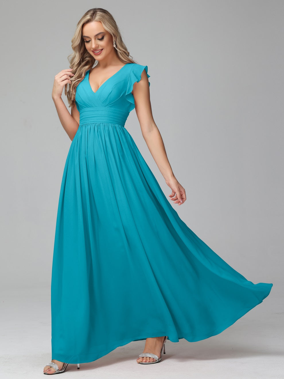 Bonnie V-Ausschnitt Chiffon Brautjungfernkleider mit gerafften Ärmeln