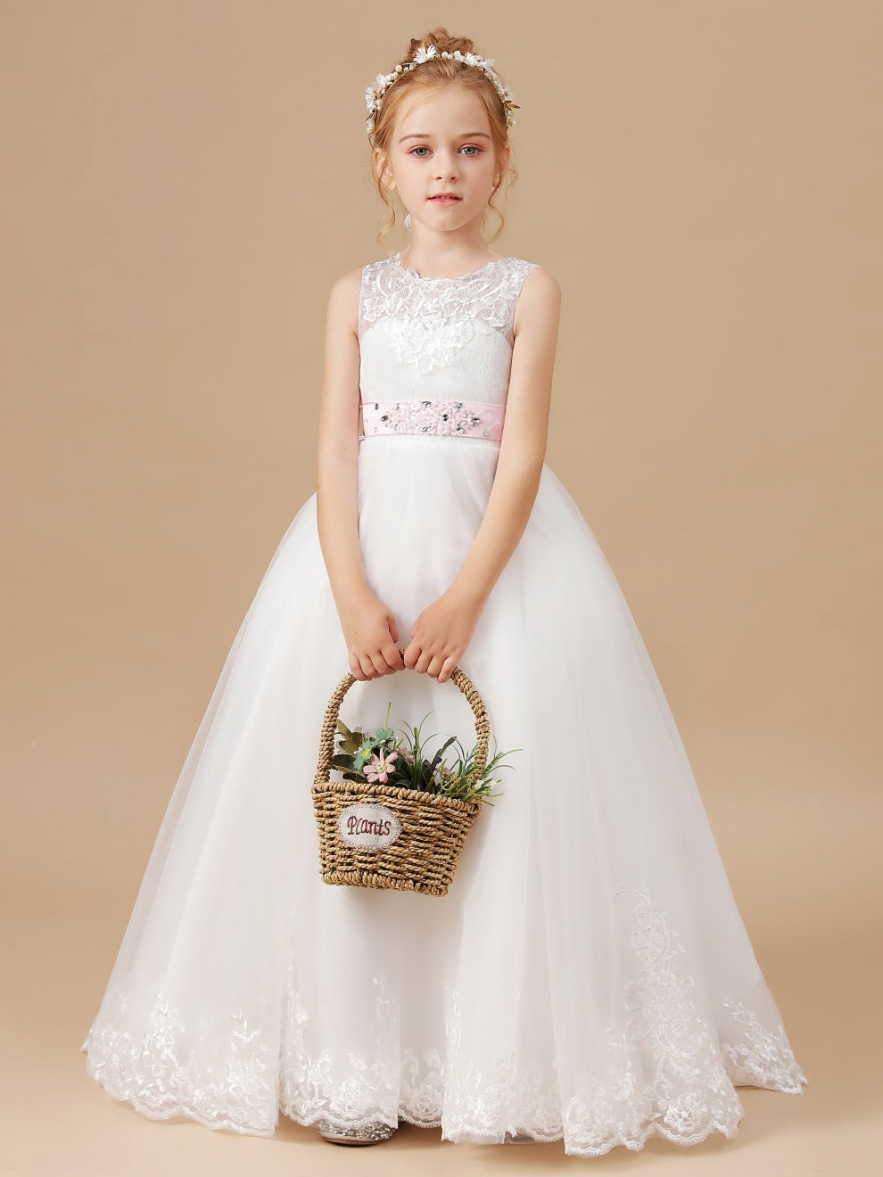 Chic Spitze Applikationen Perlen Gürtel Blumenmädchen Kleid