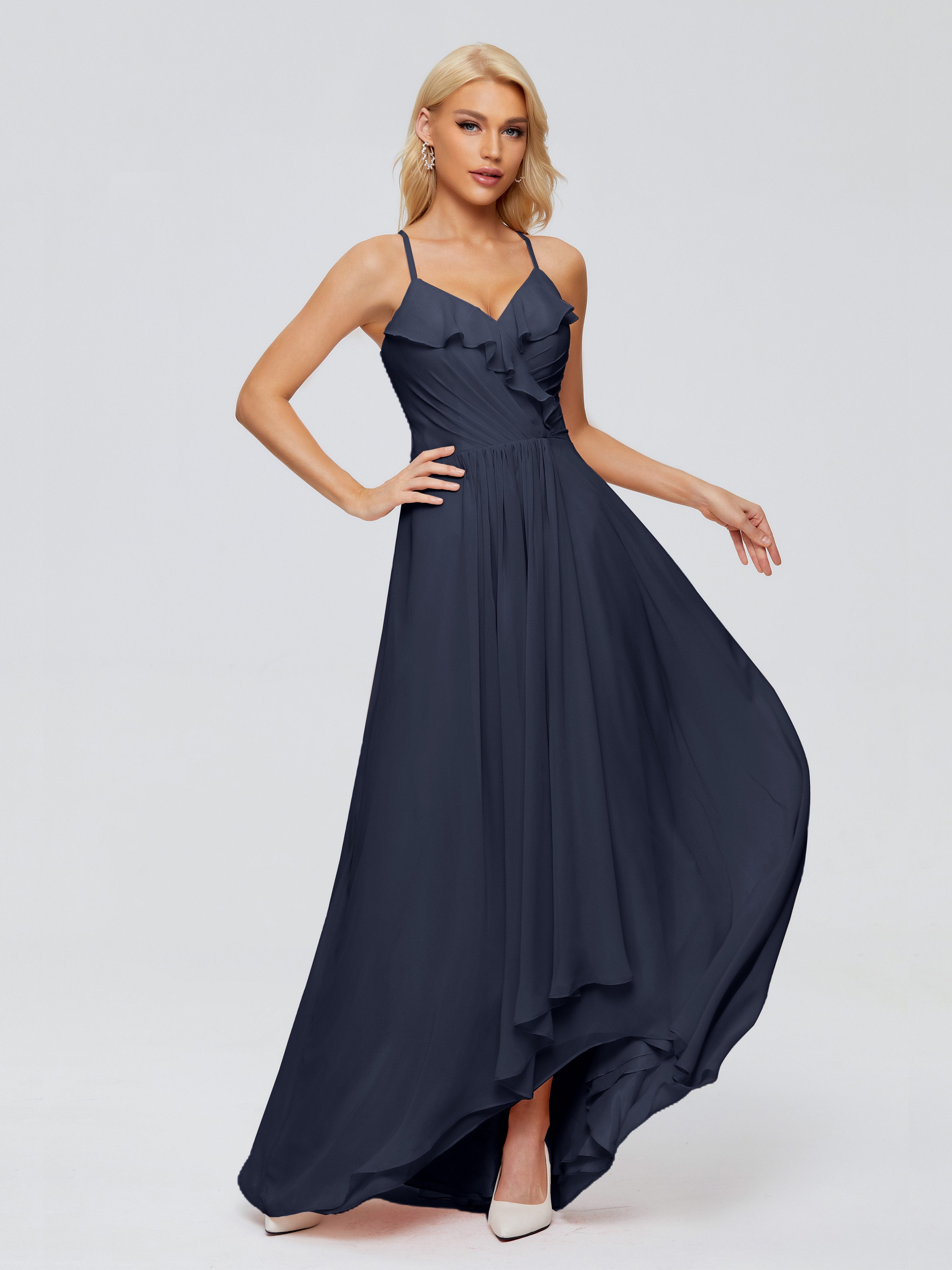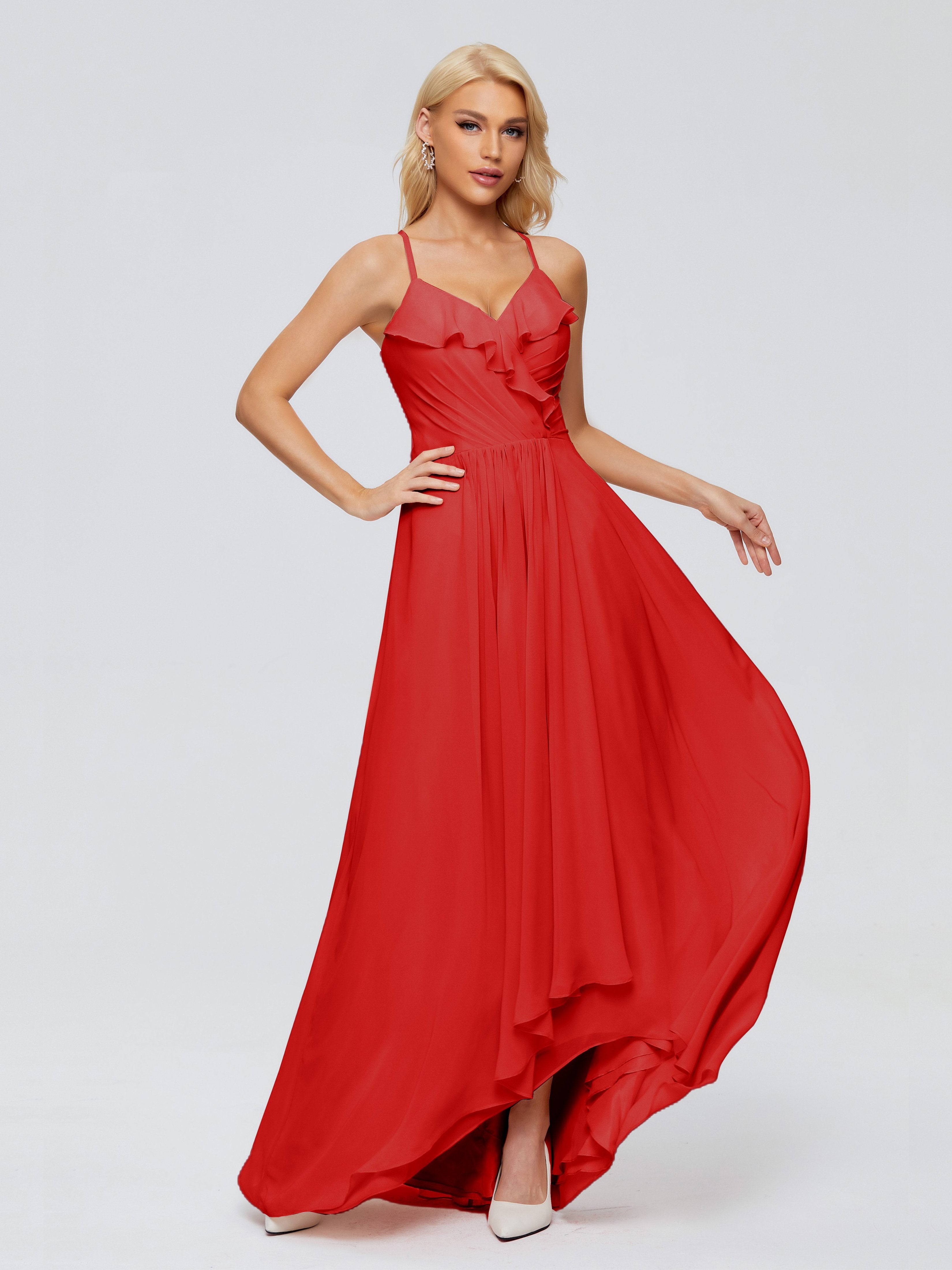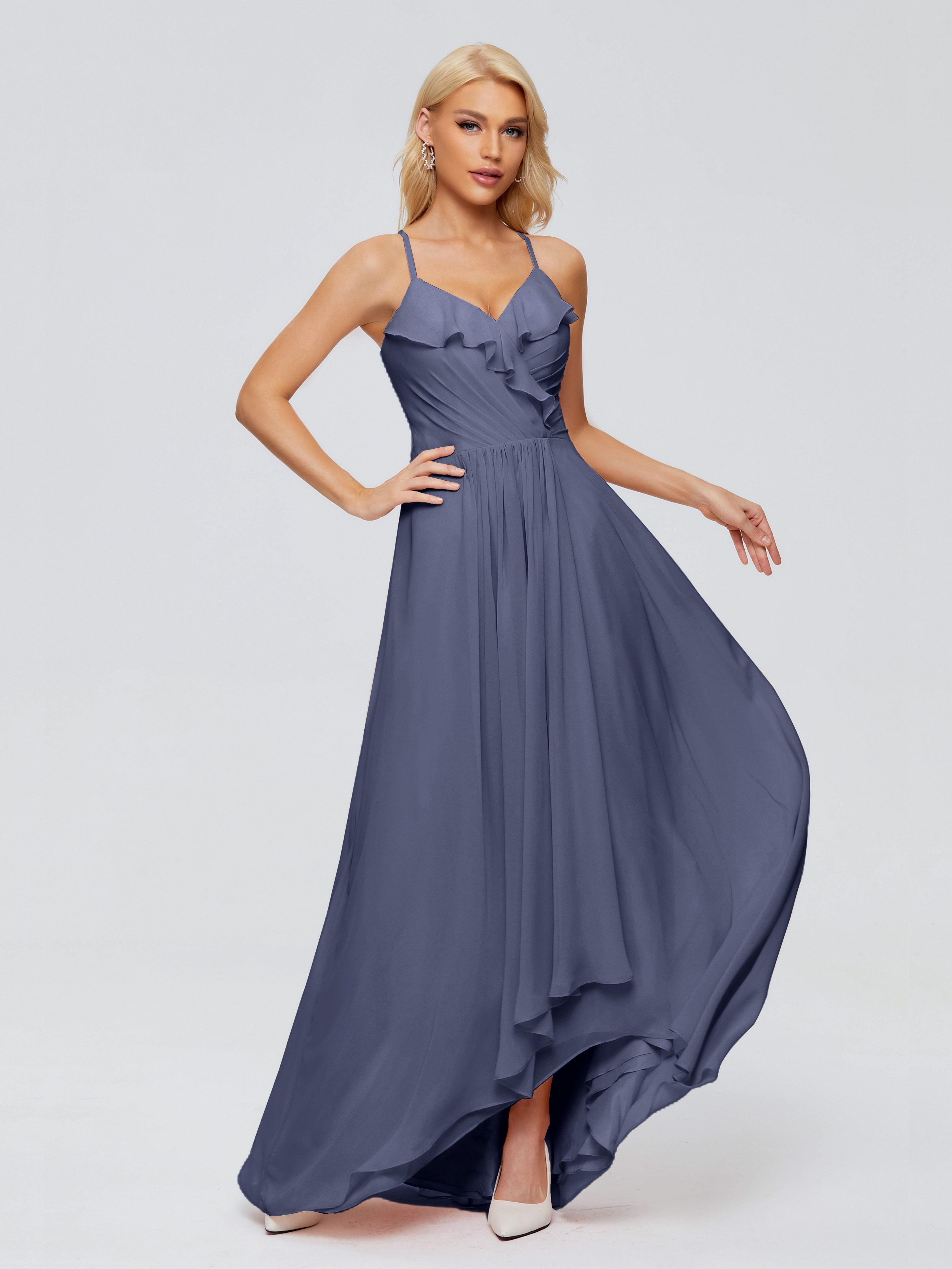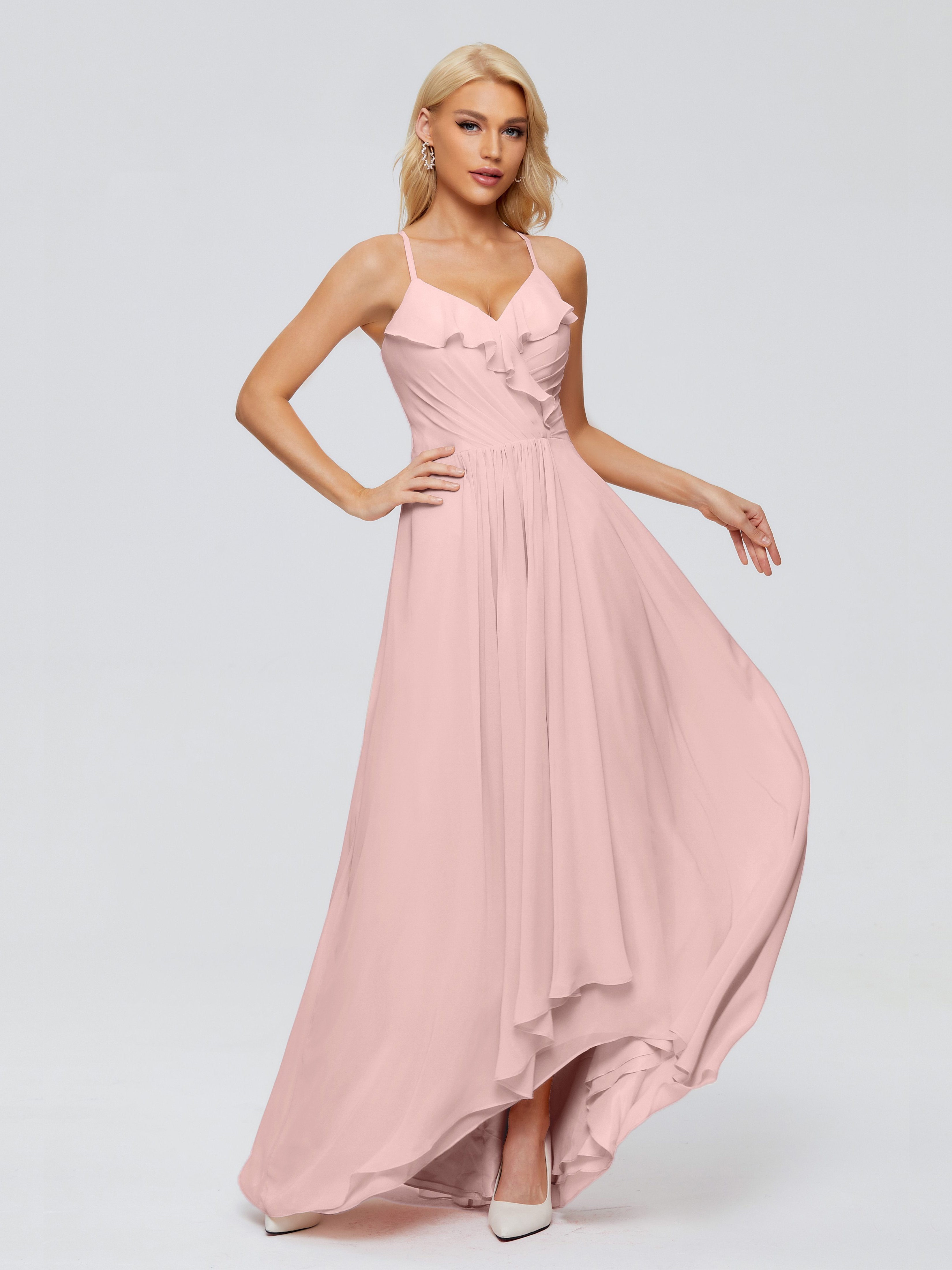 Adalynn A-Linie Spaghettiträger Plissee Chiffon Brautjungfernkleider