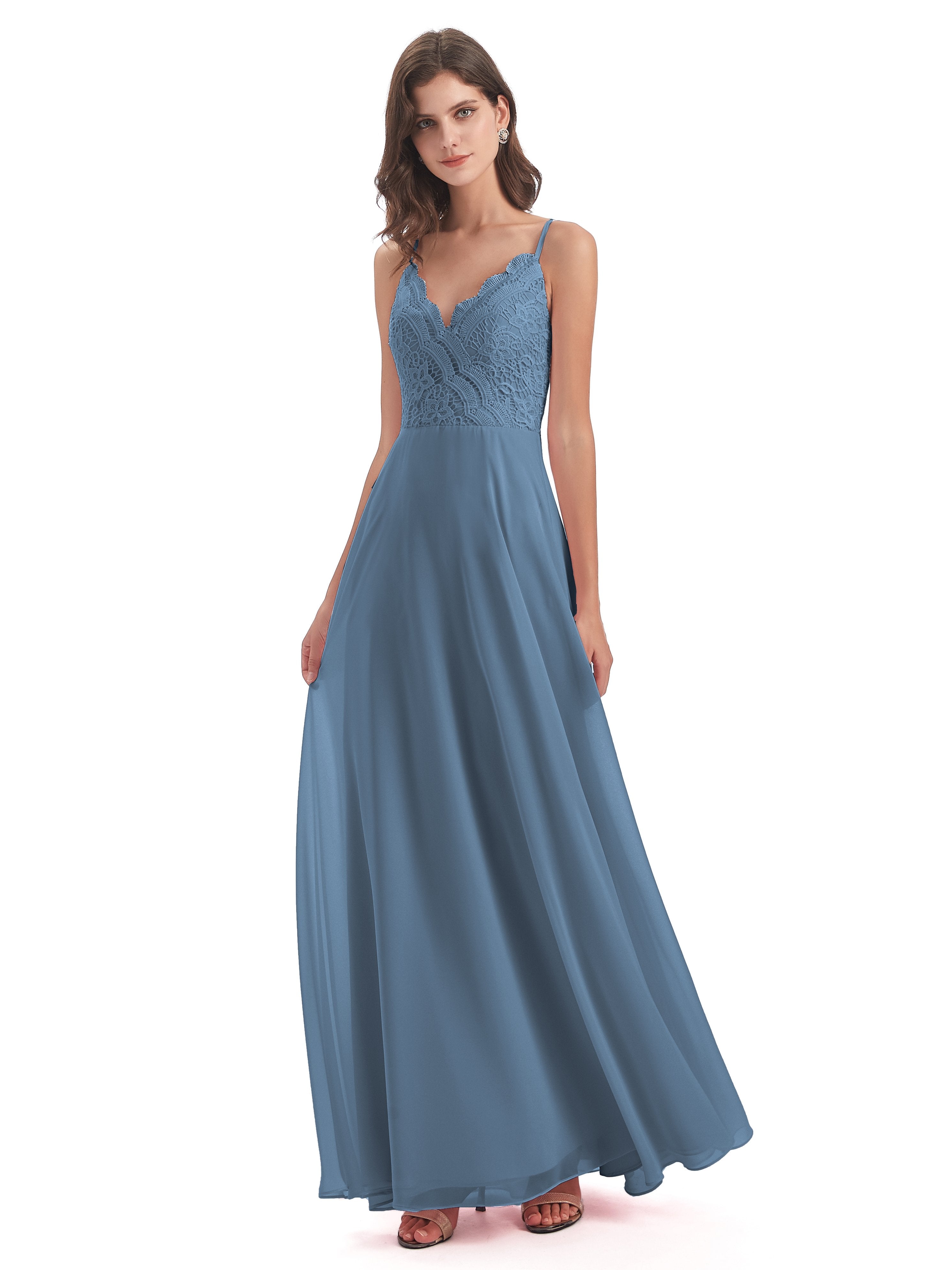 Alisa Etui-Säule Bodenlange Spaghetti-Trägern Spitze/Chiffon Rücken-Reißverschluss Brautjungfernkleider