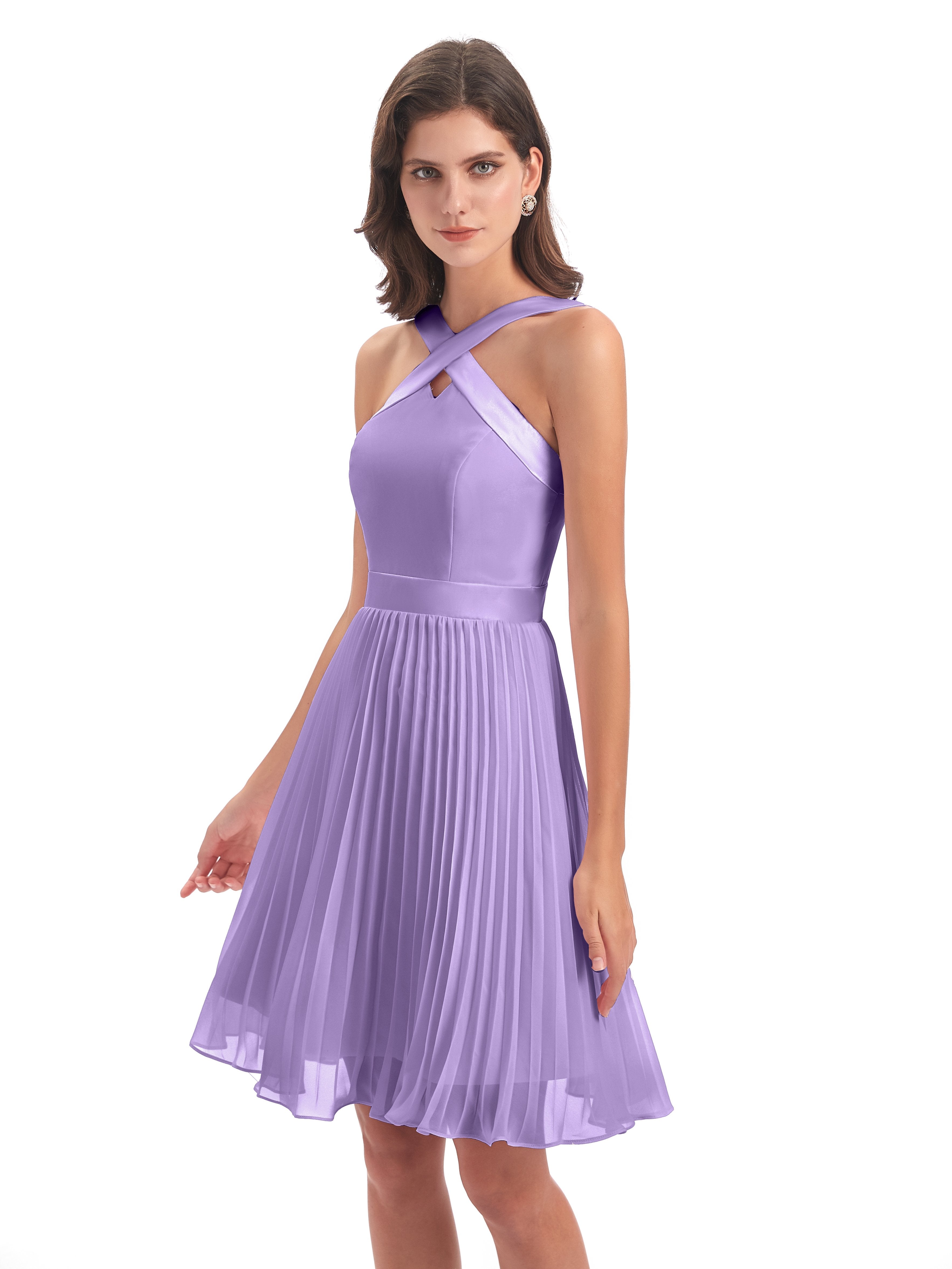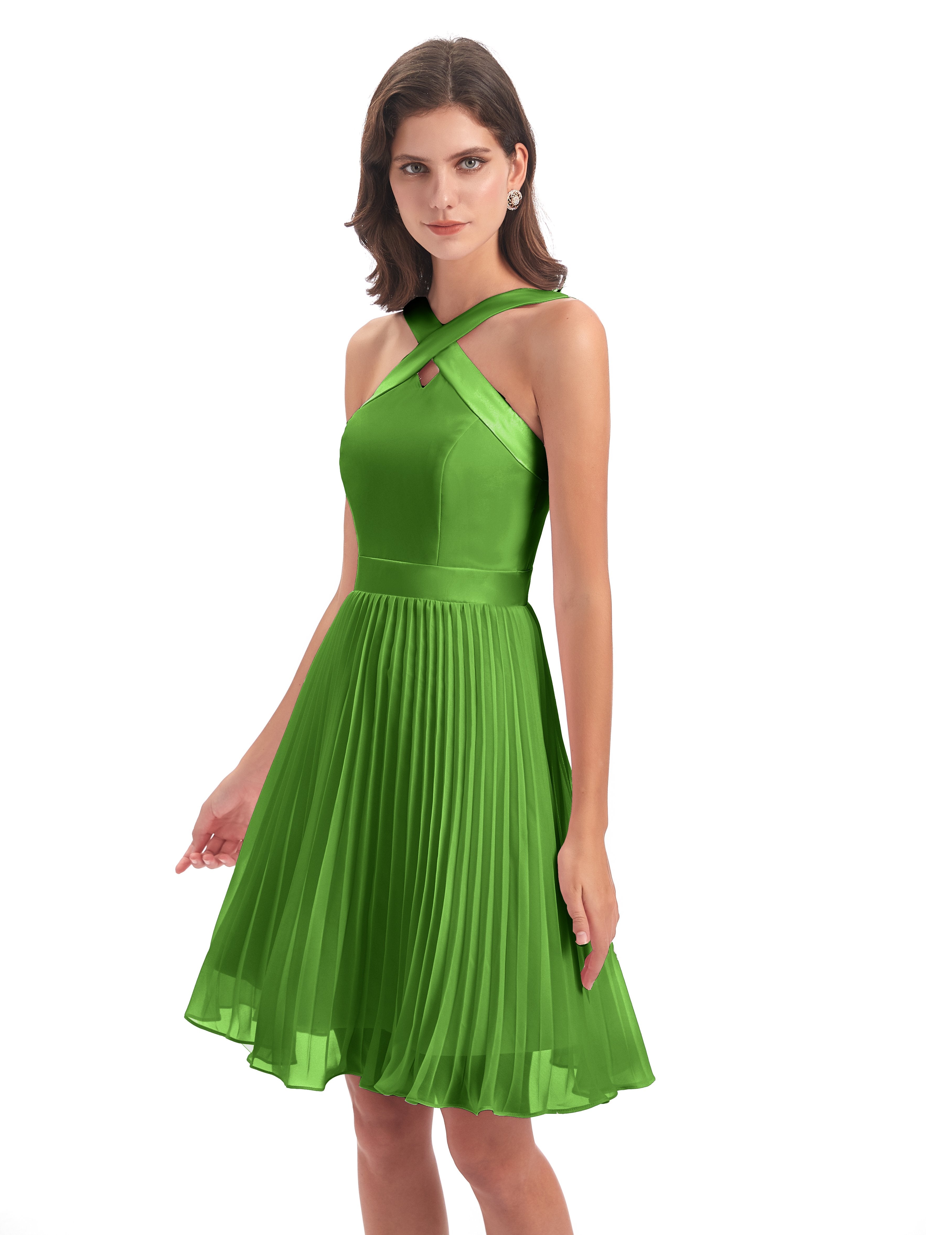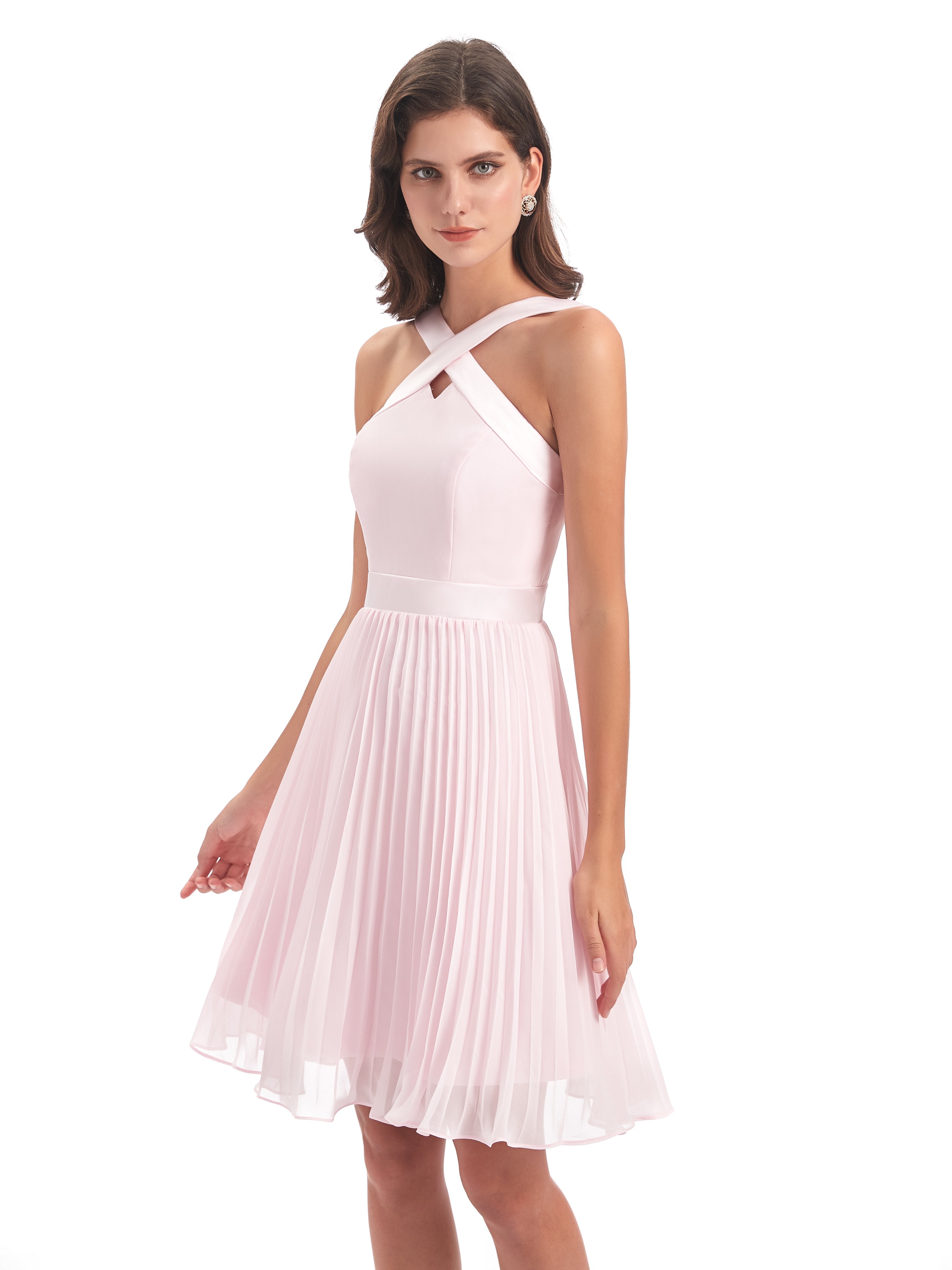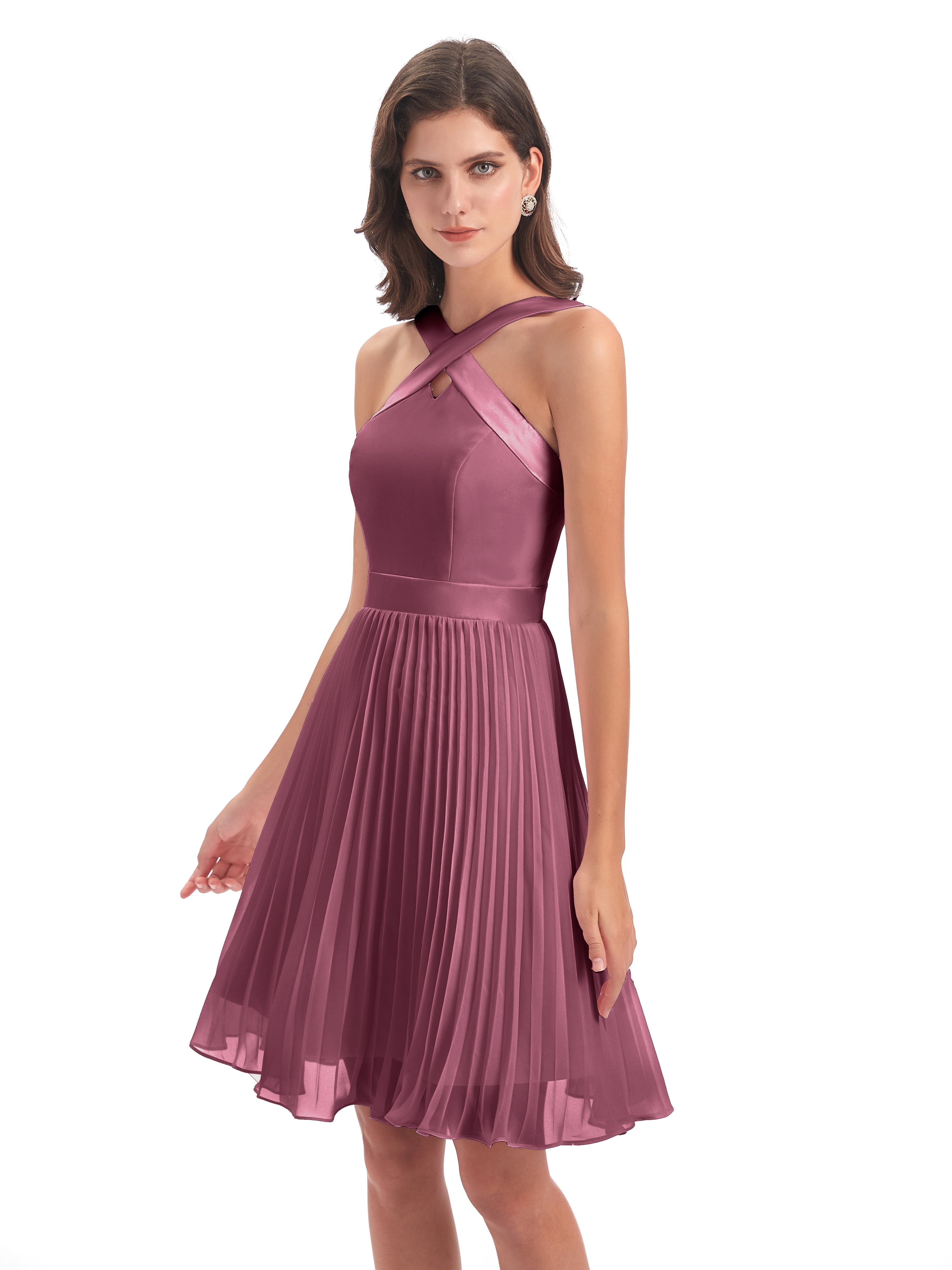 Alora A-Linie Knielange Plissee Rücken-Reißverschluss Einfache Brautjungfernkleider