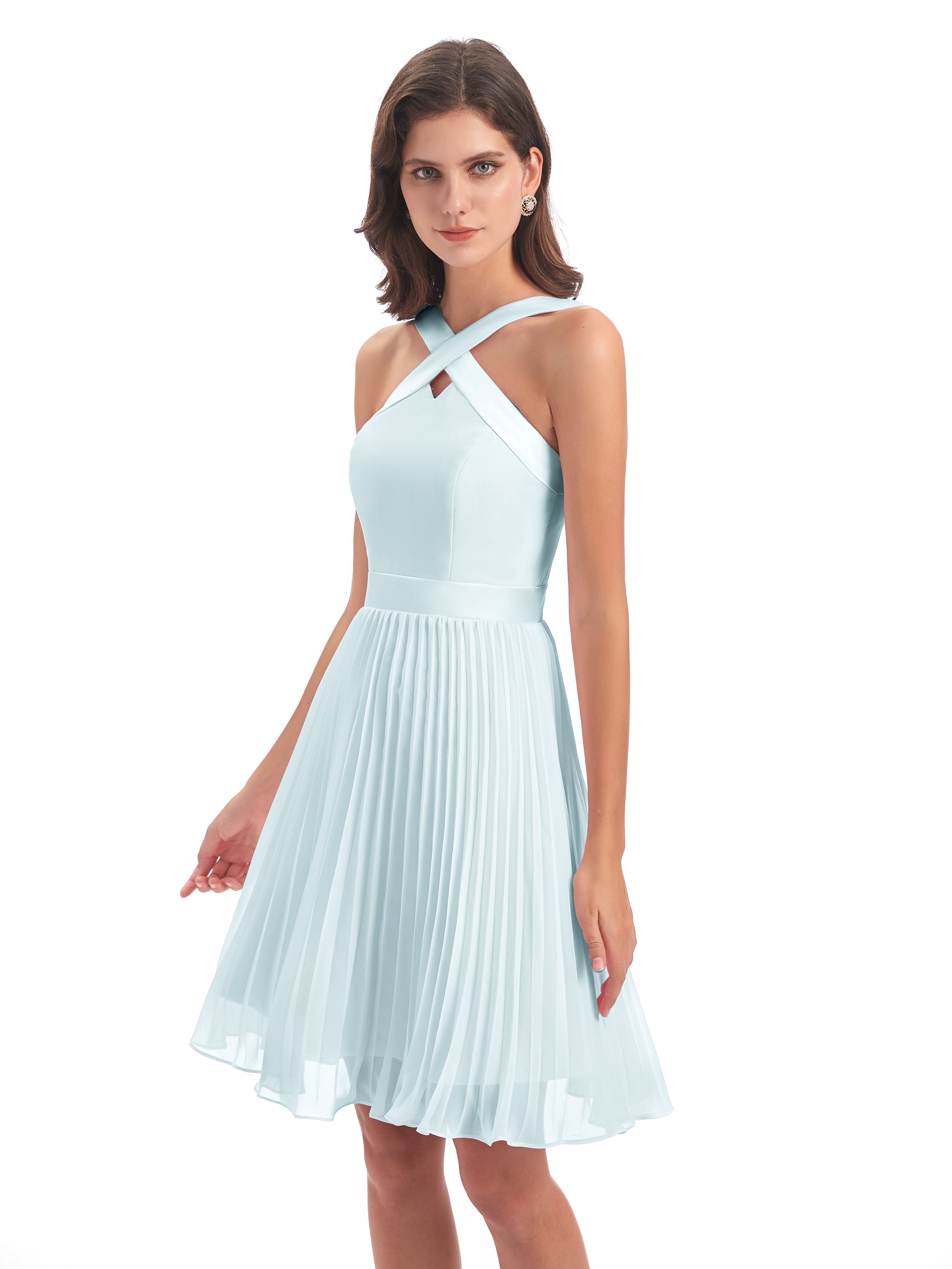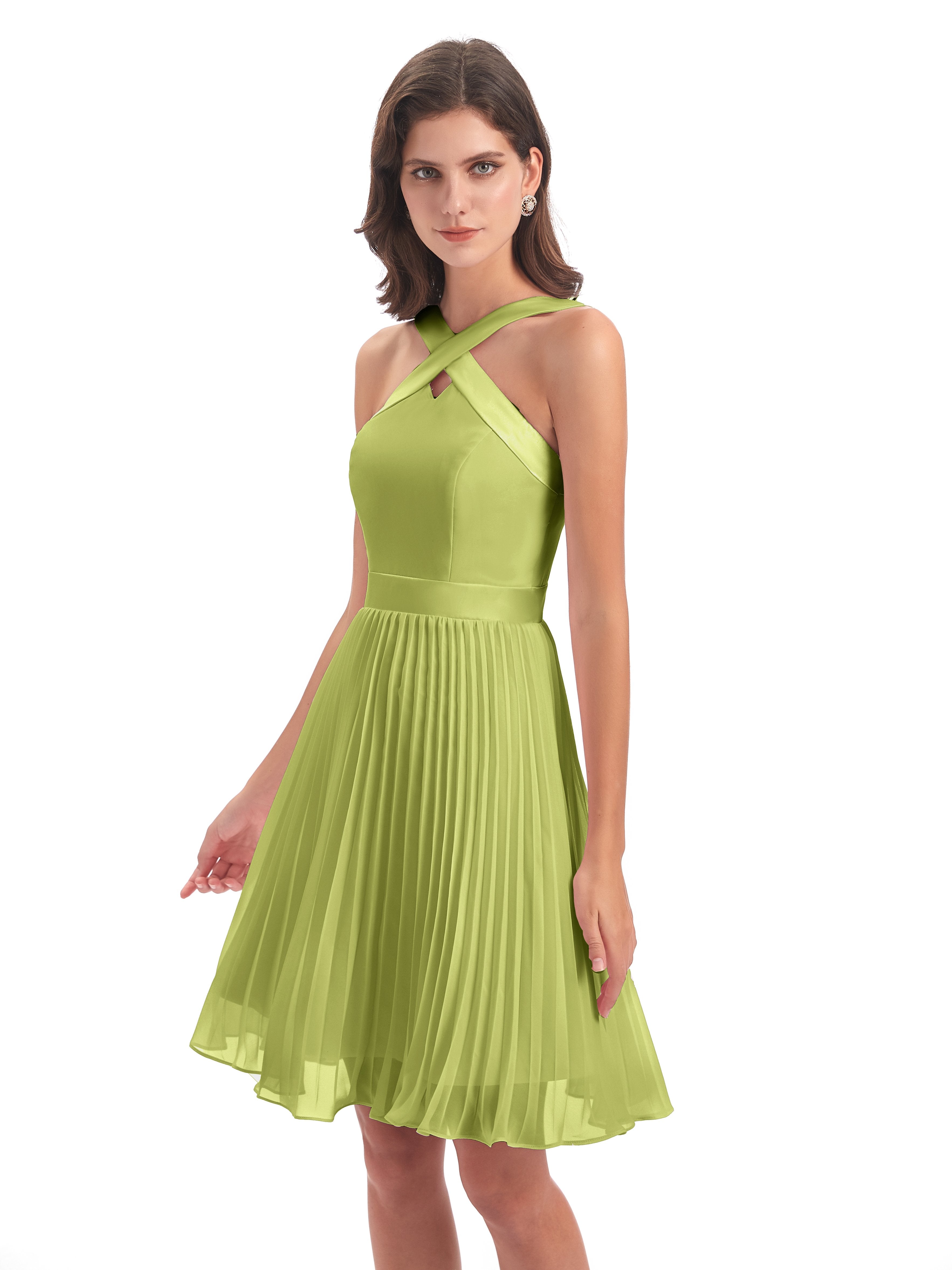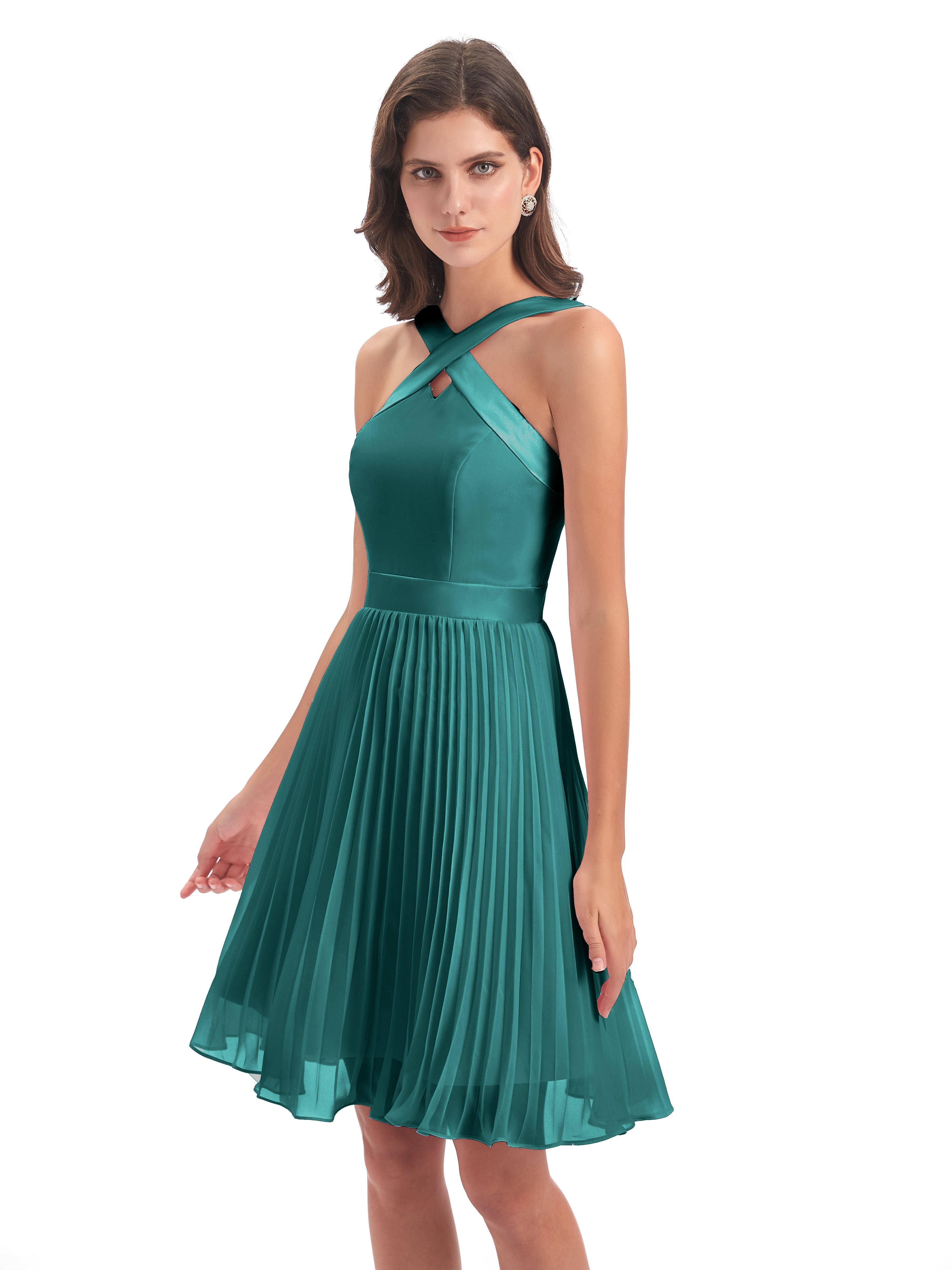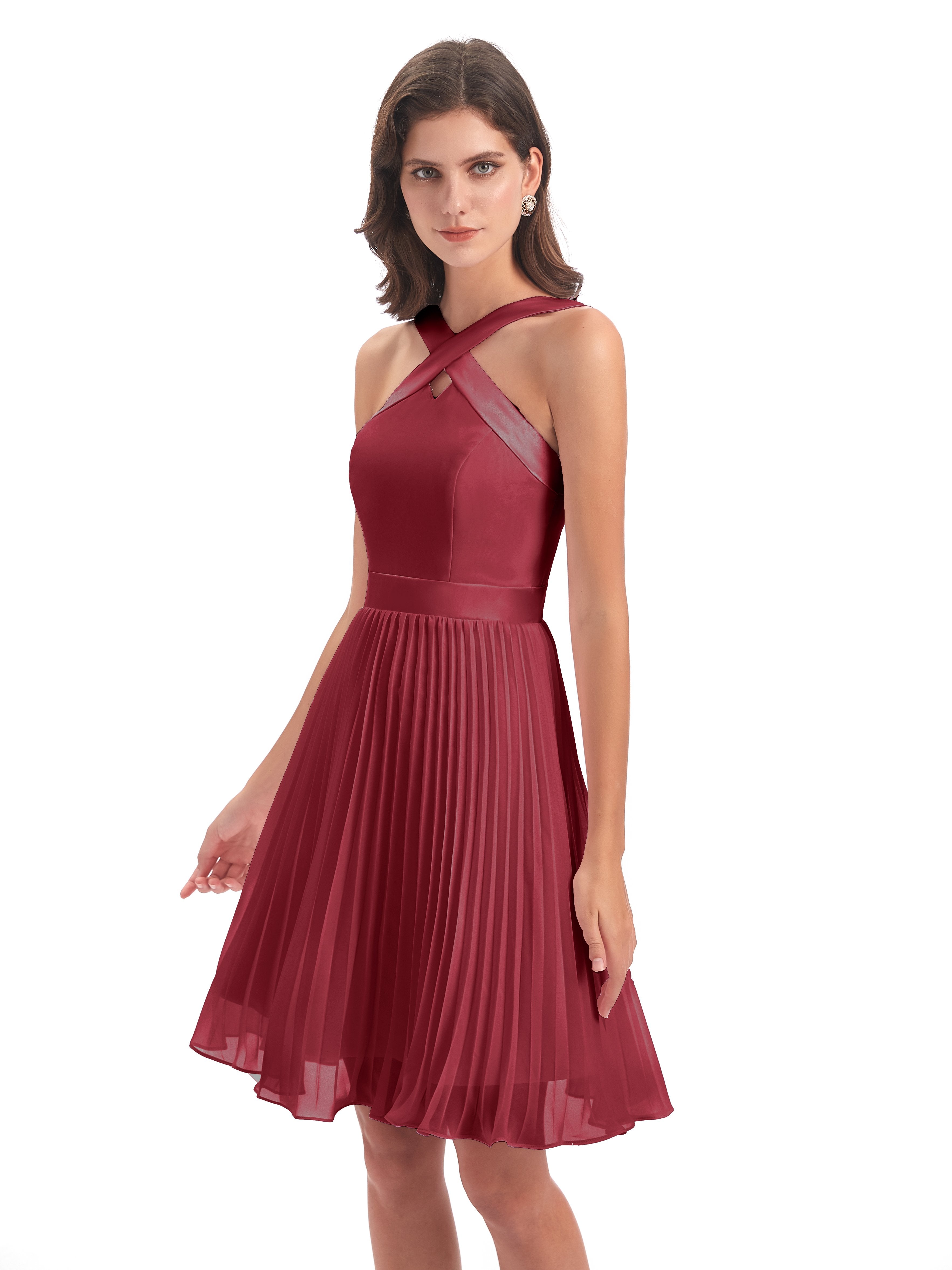 Alora A-Linie Knielange Plissee Rücken-Reißverschluss Einfache Brautjungfernkleider
