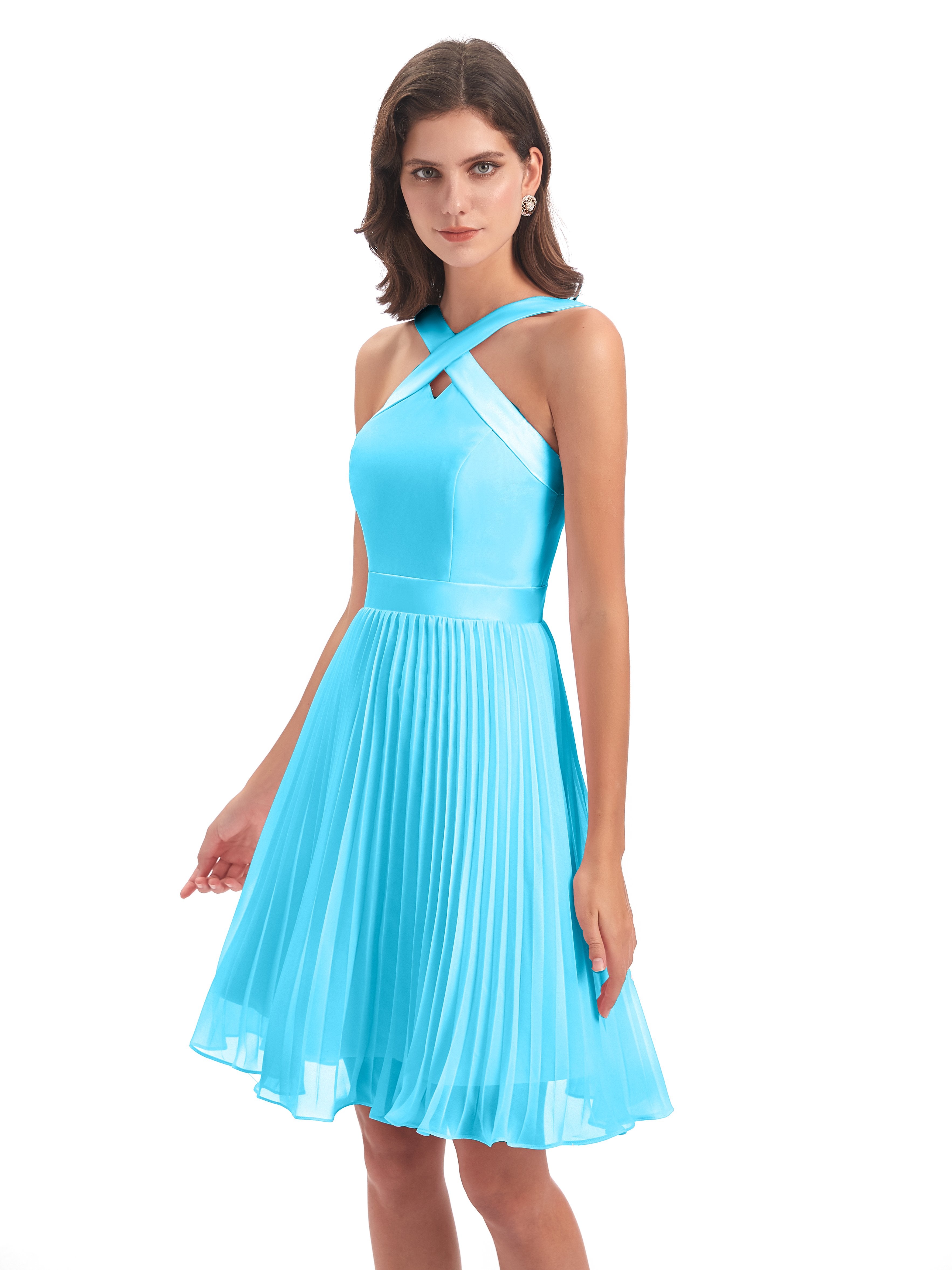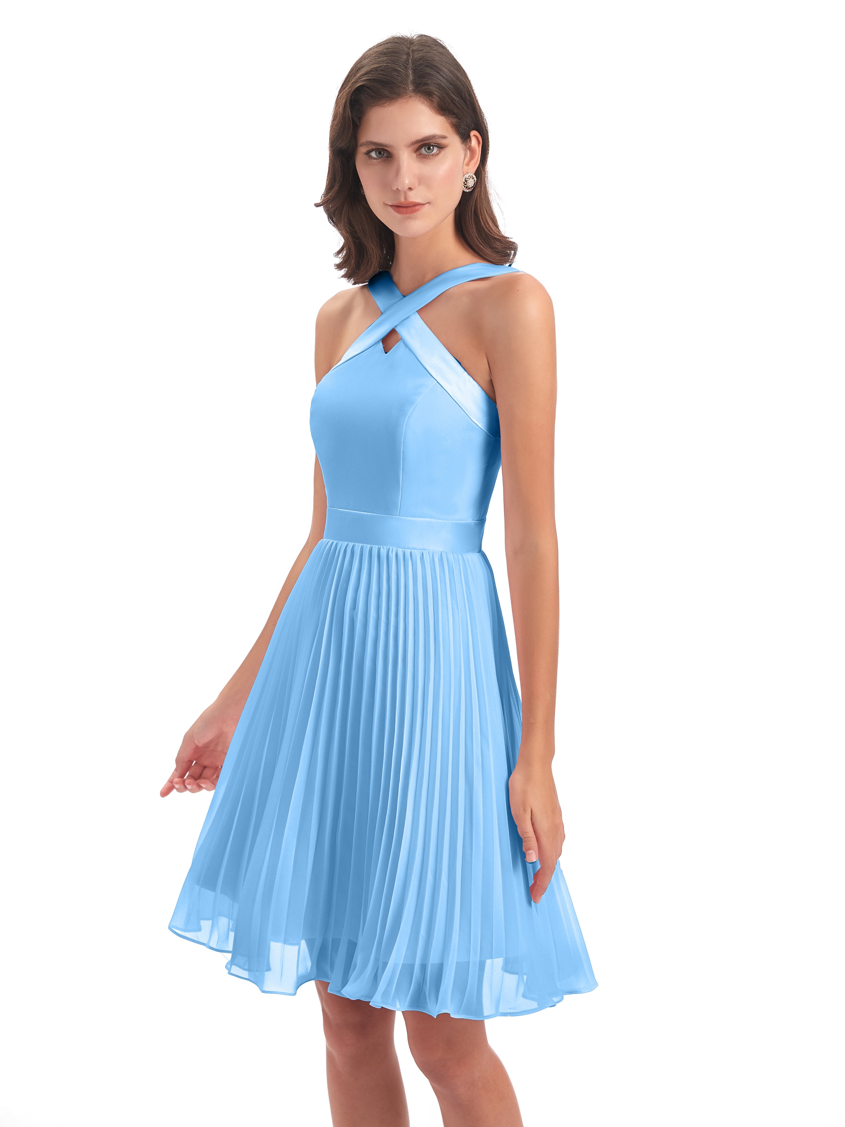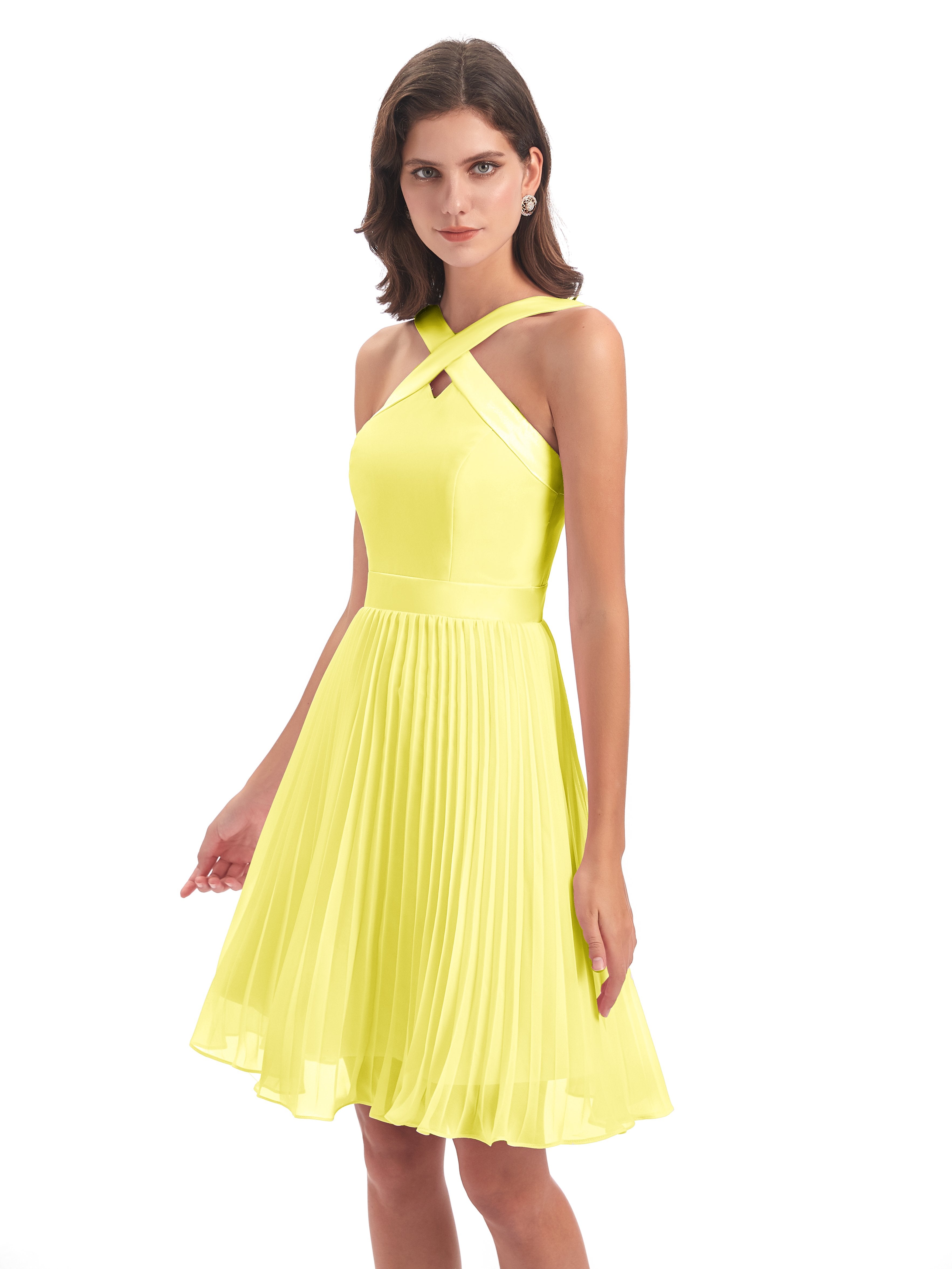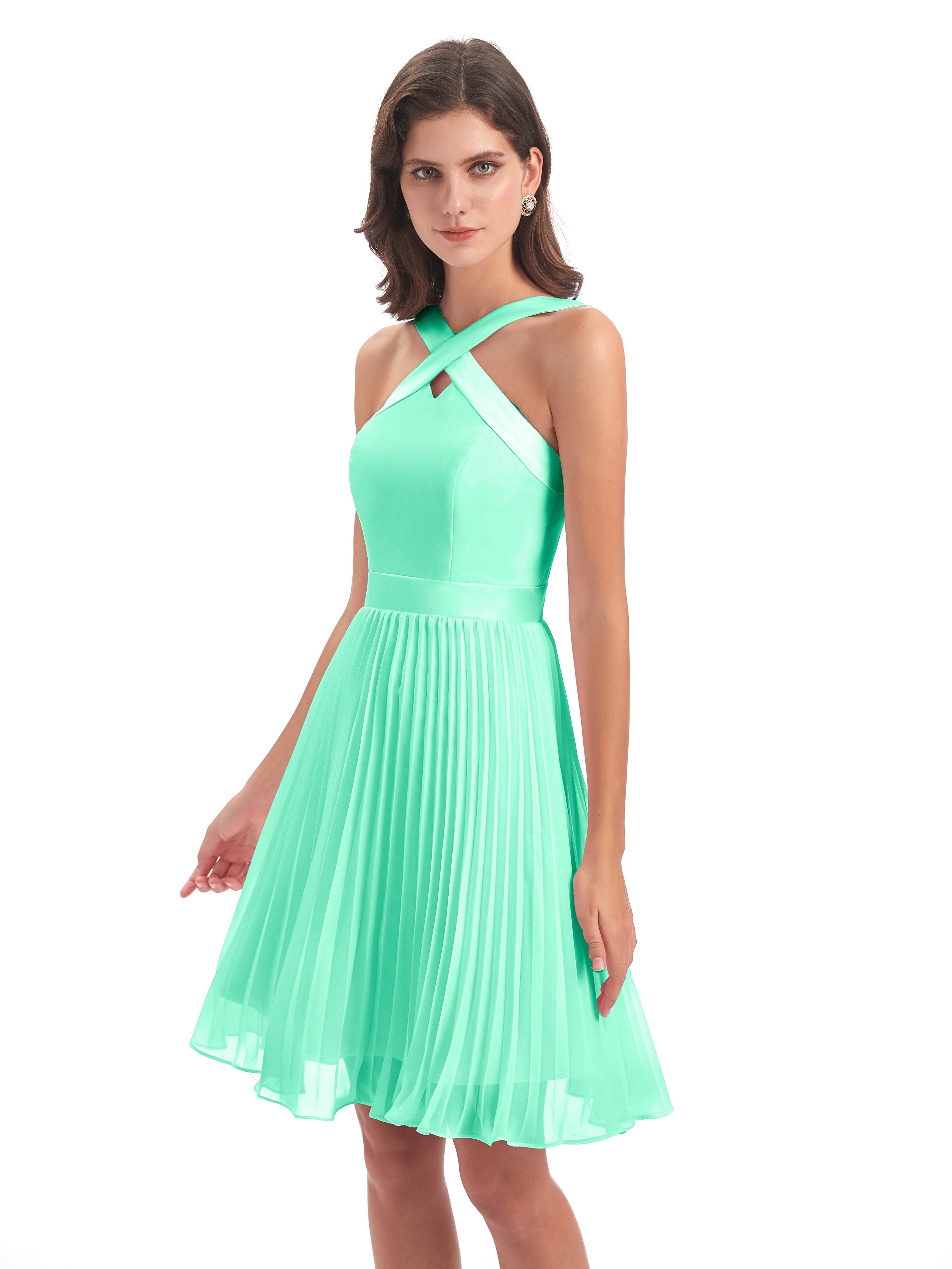 Alora A-Linie Knielange Plissee Rücken-Reißverschluss Einfache Brautjungfernkleider