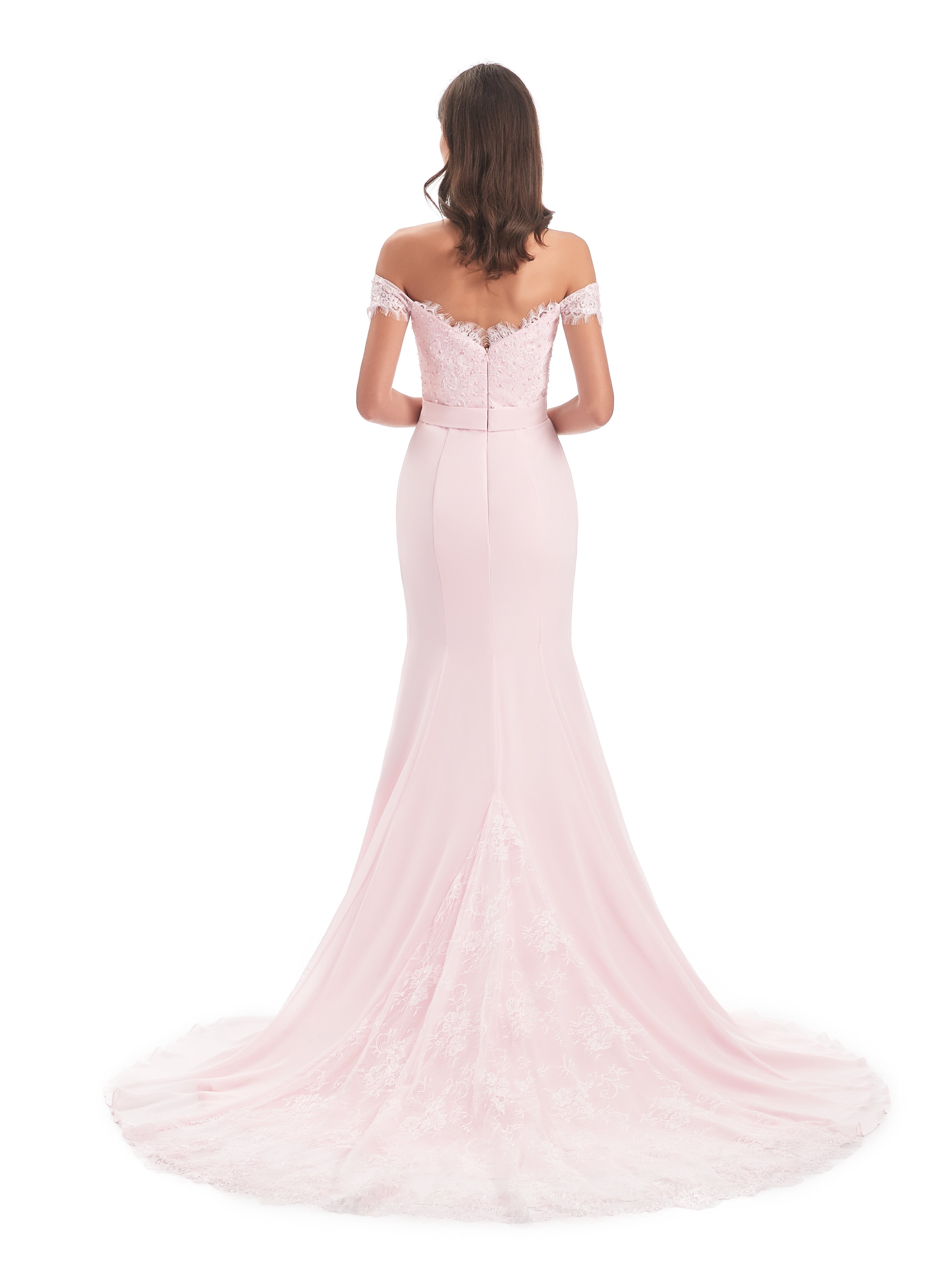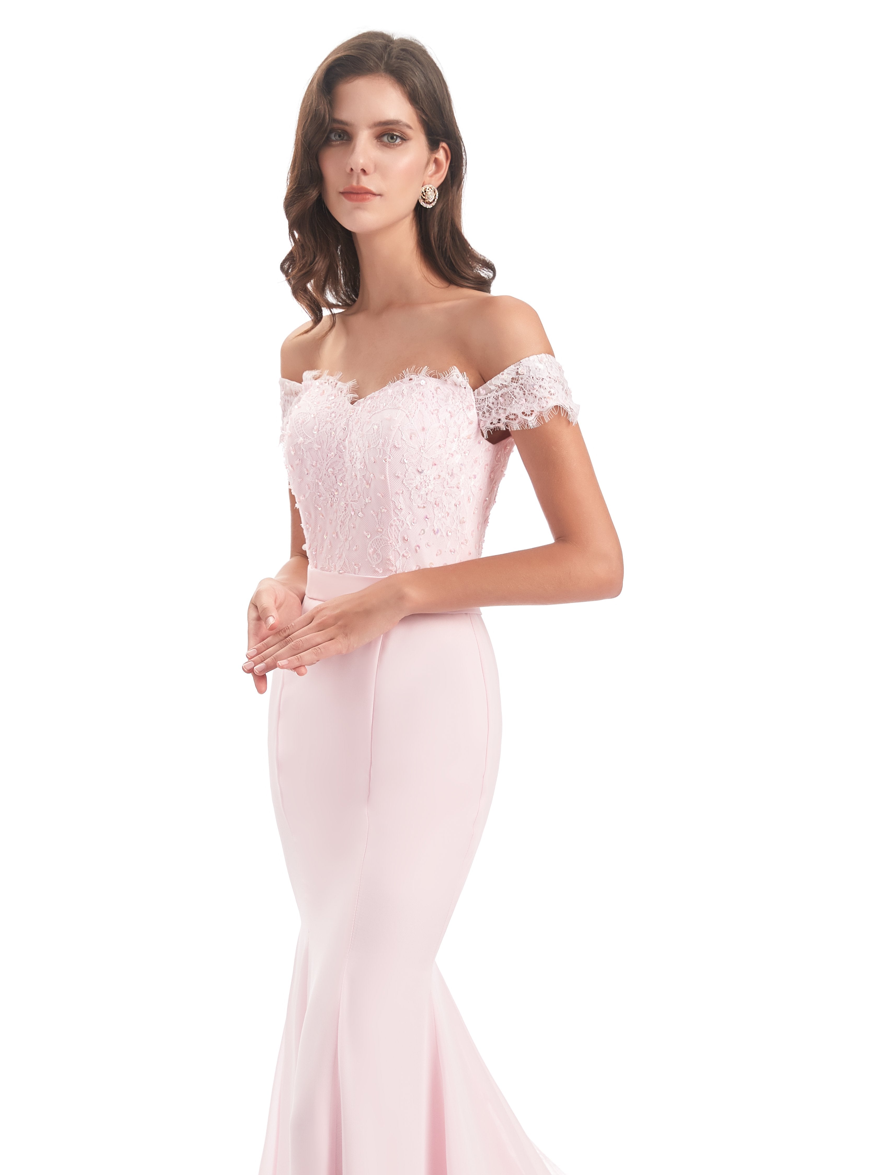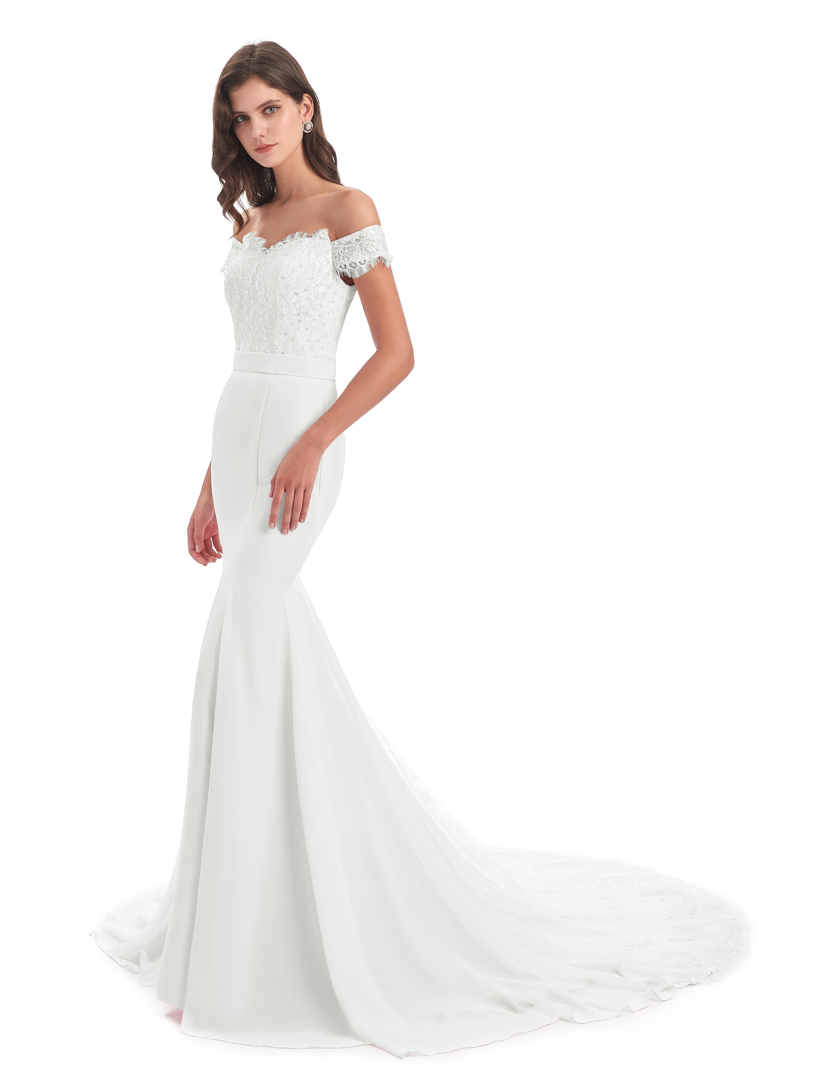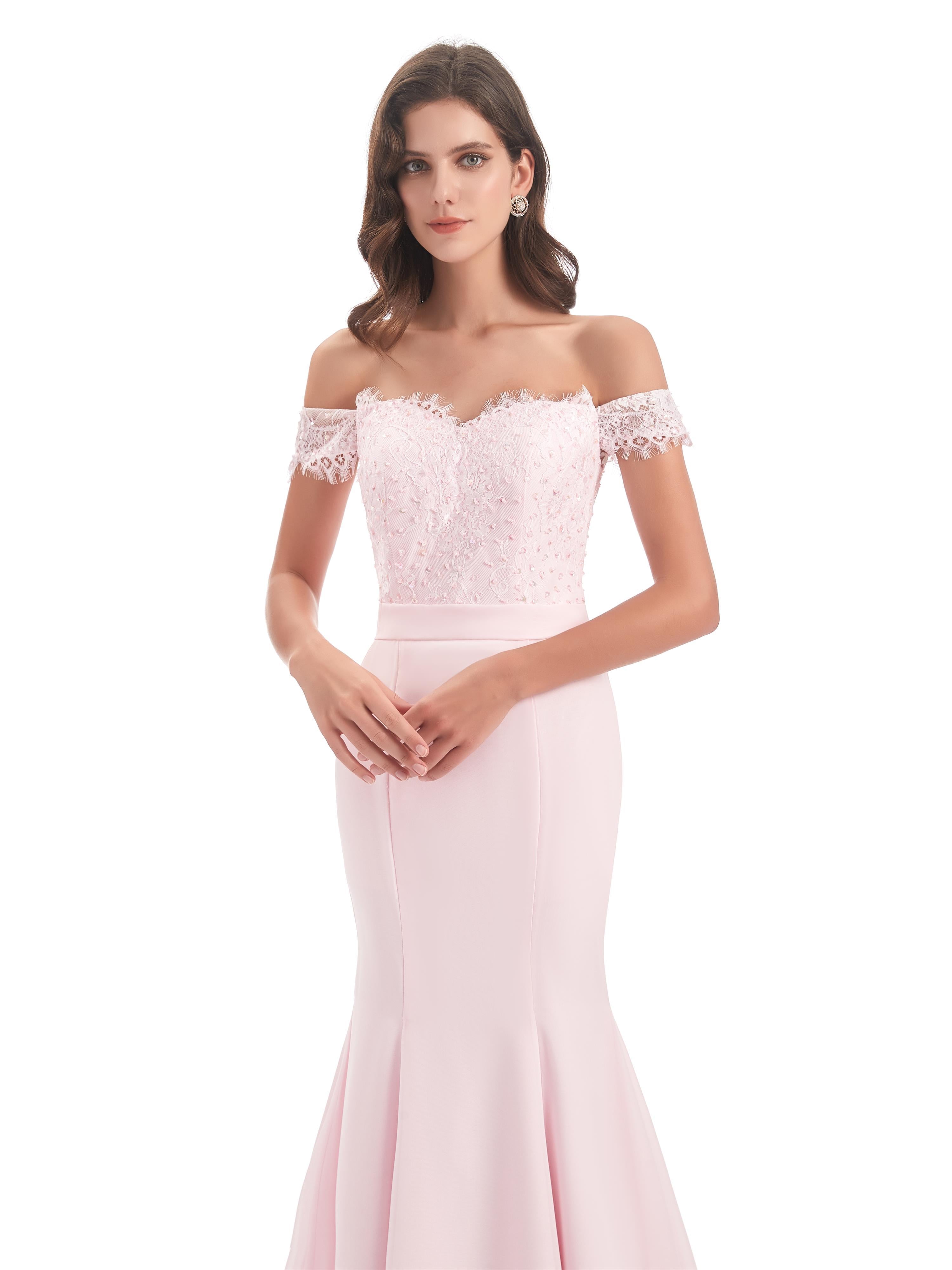 Carlee Trompete-Meerjungfrau Hof-Schleppe Schulterfrei Sicken Spitze Lange Brautjungfernkleider