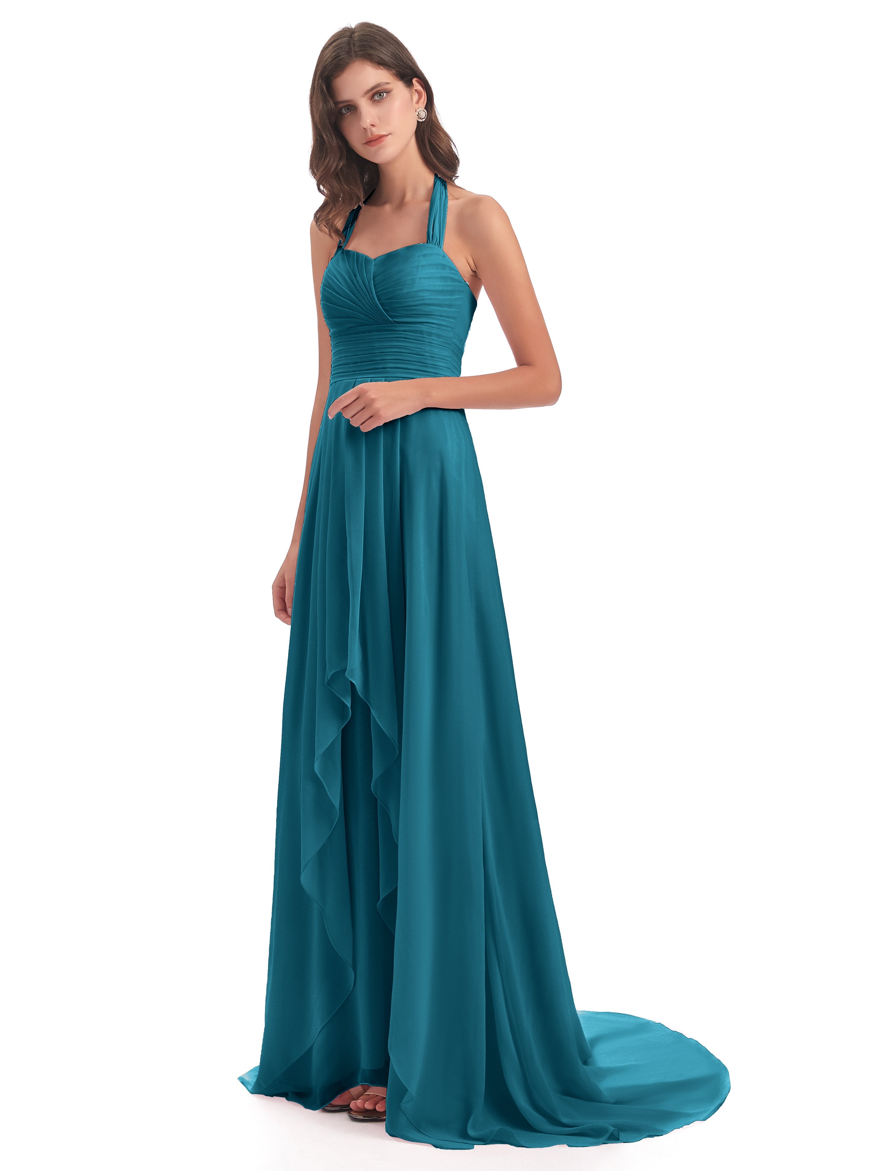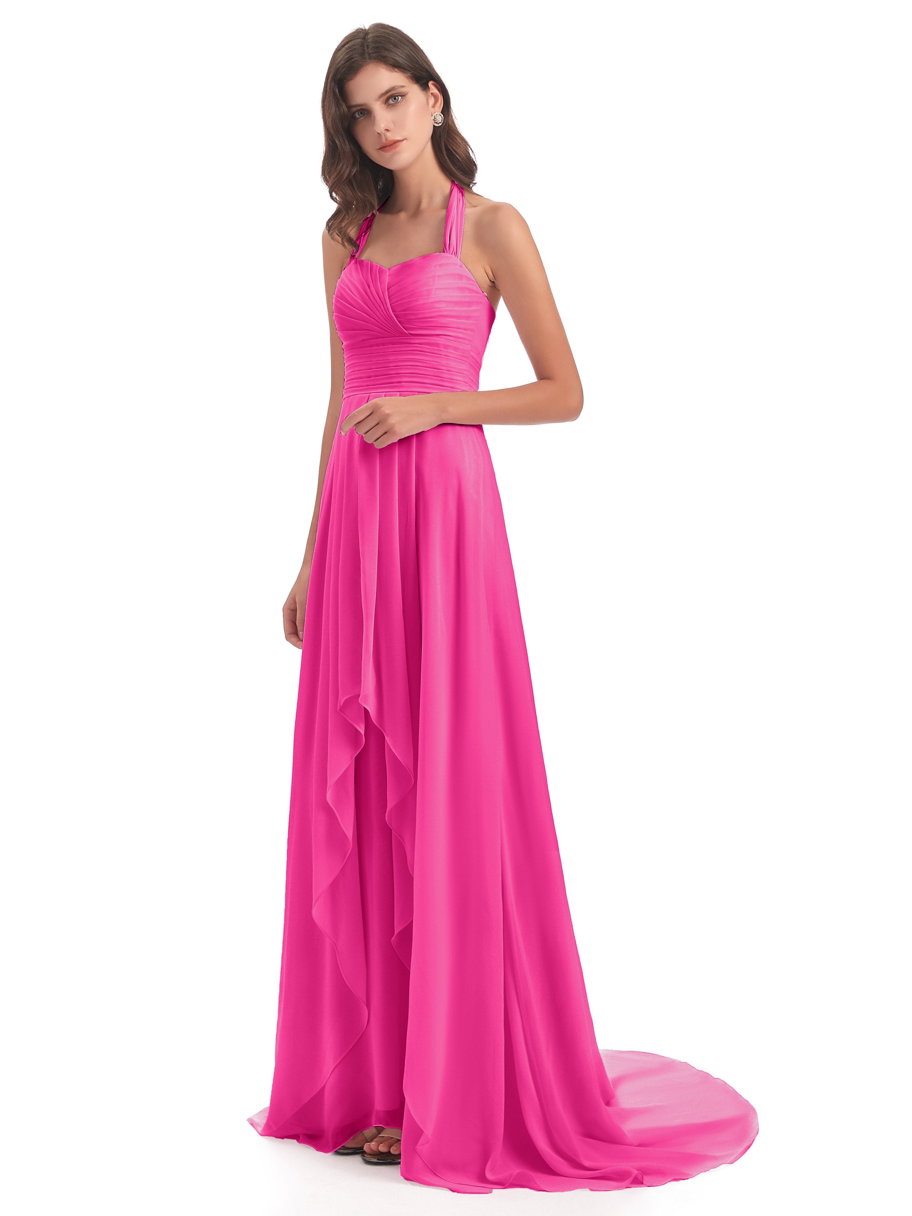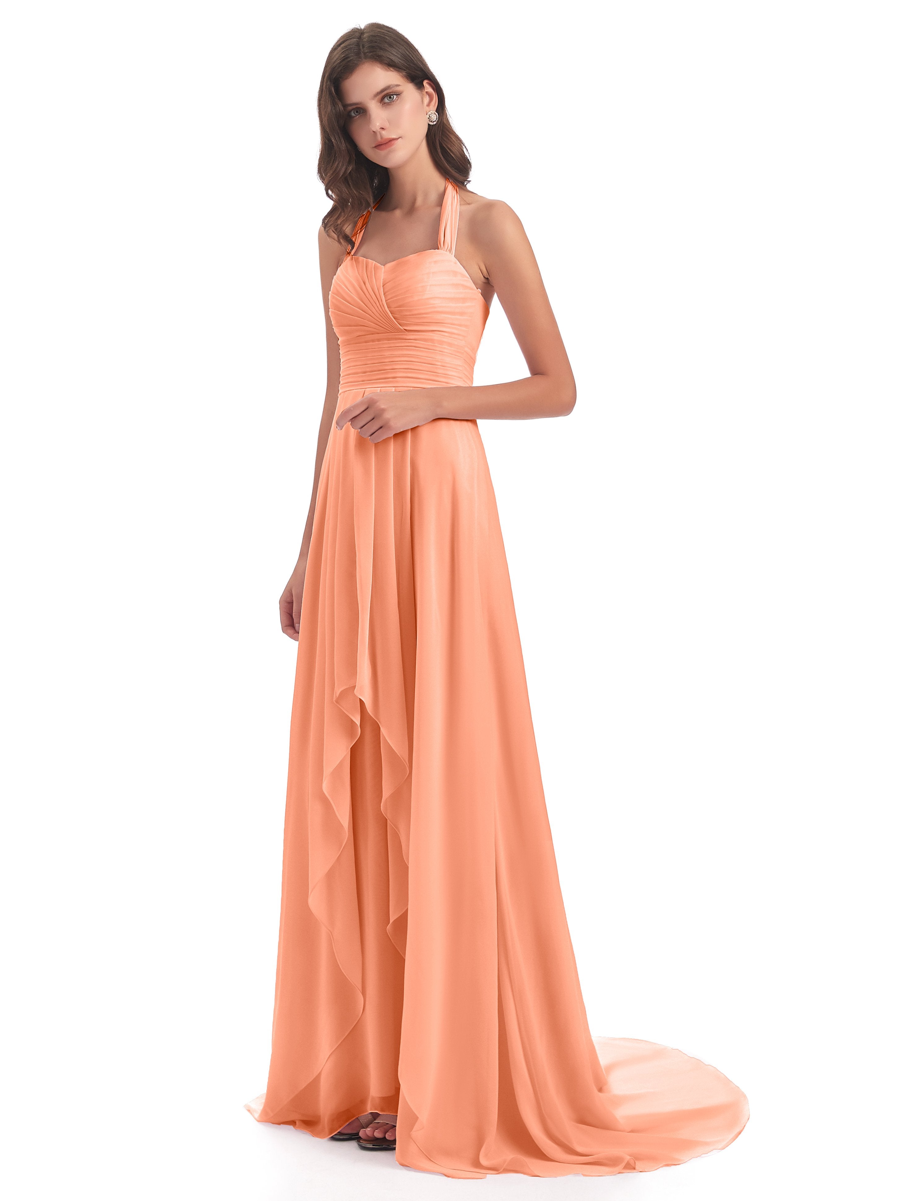 Ensley Asymmetrische High-Low Nackenträger Lange Chiffon Brautjungfernkleider