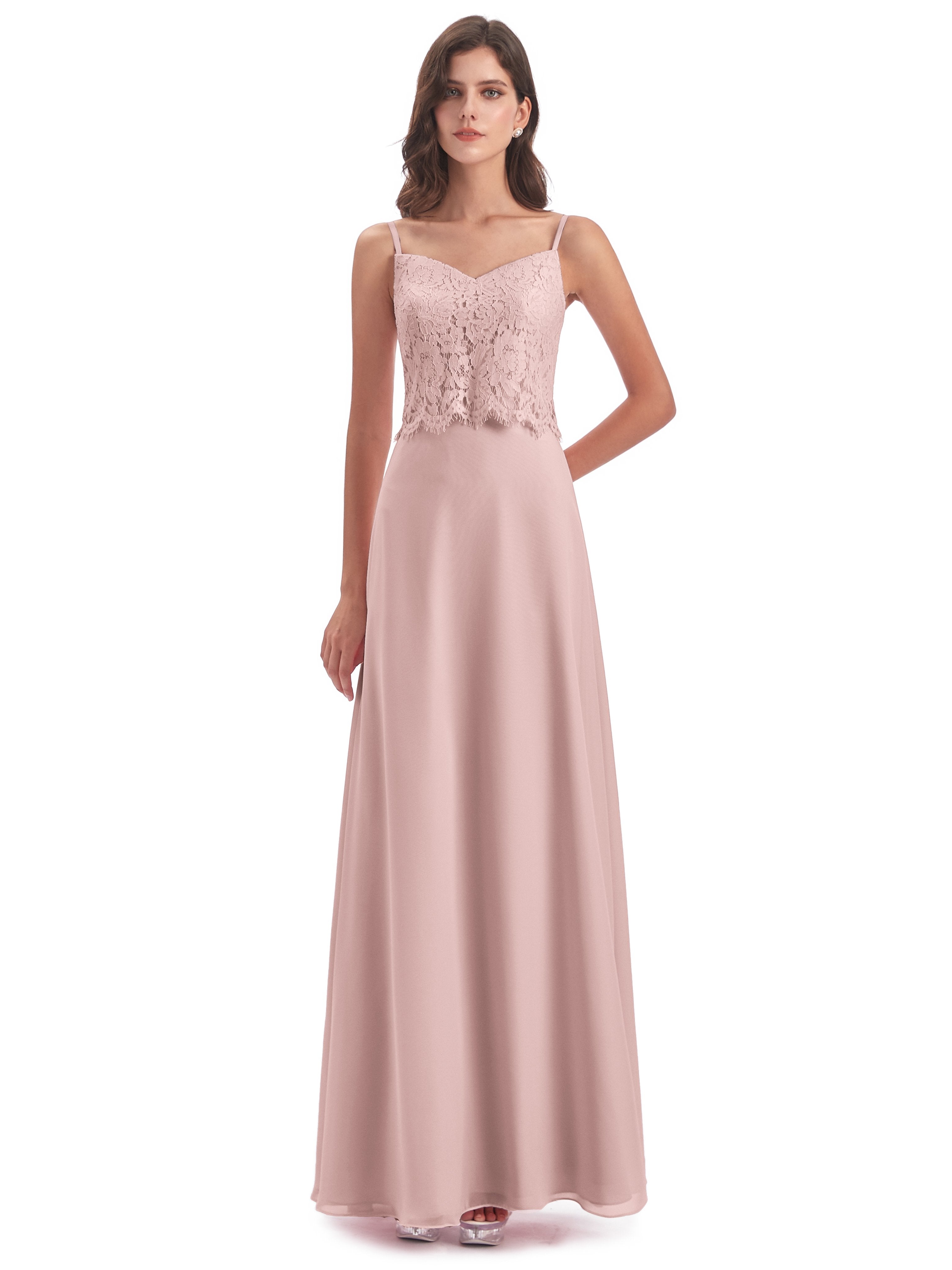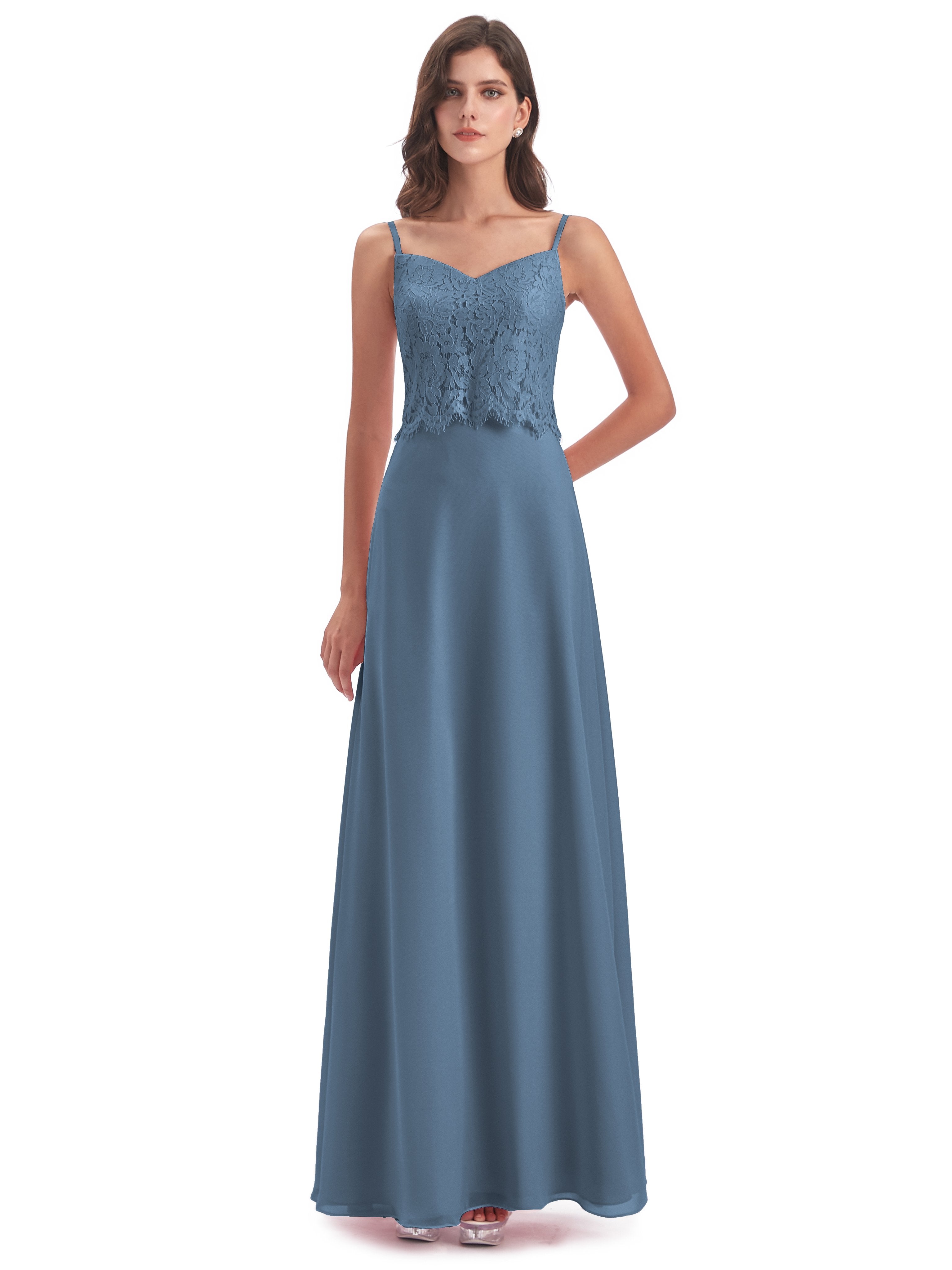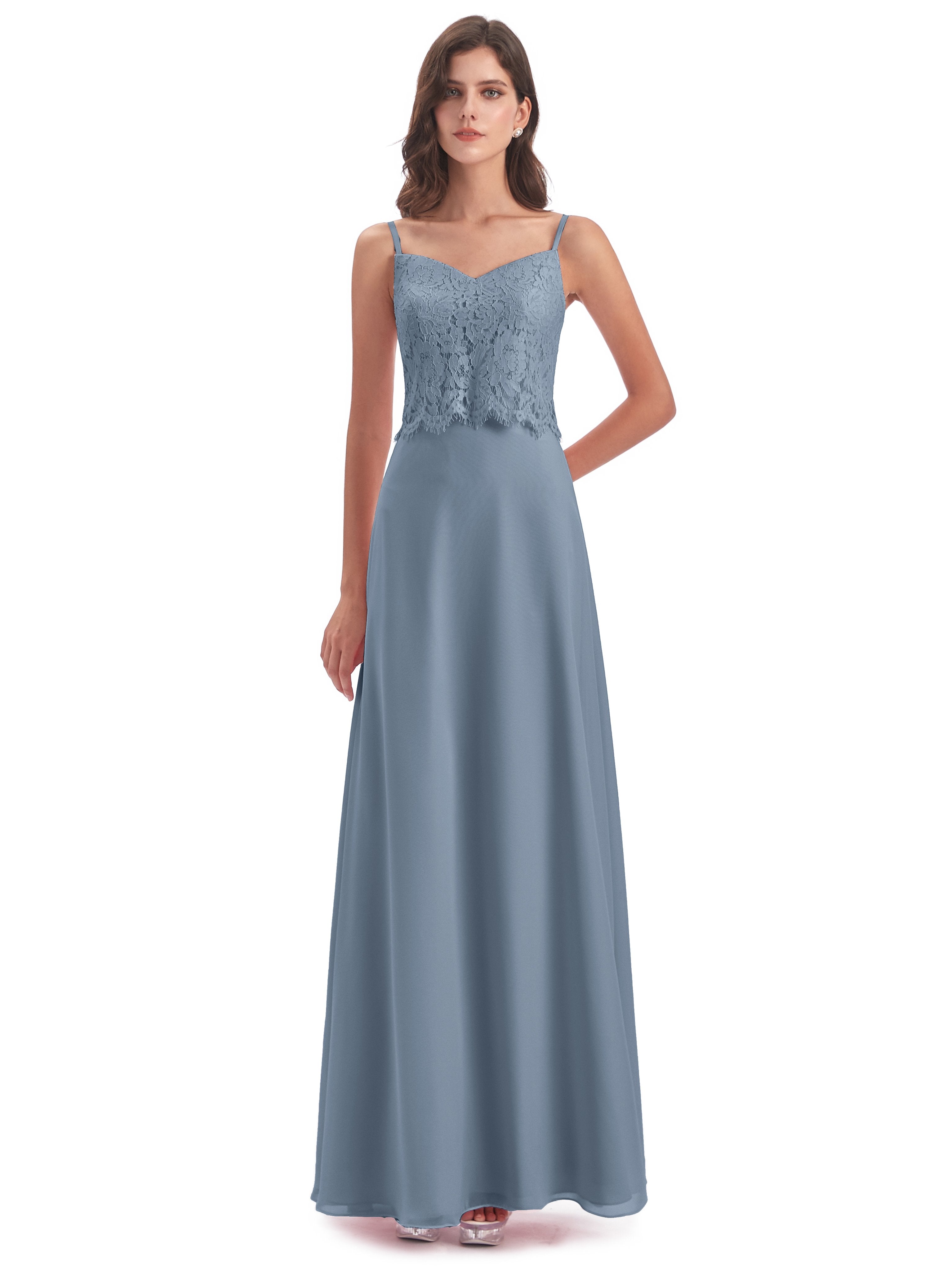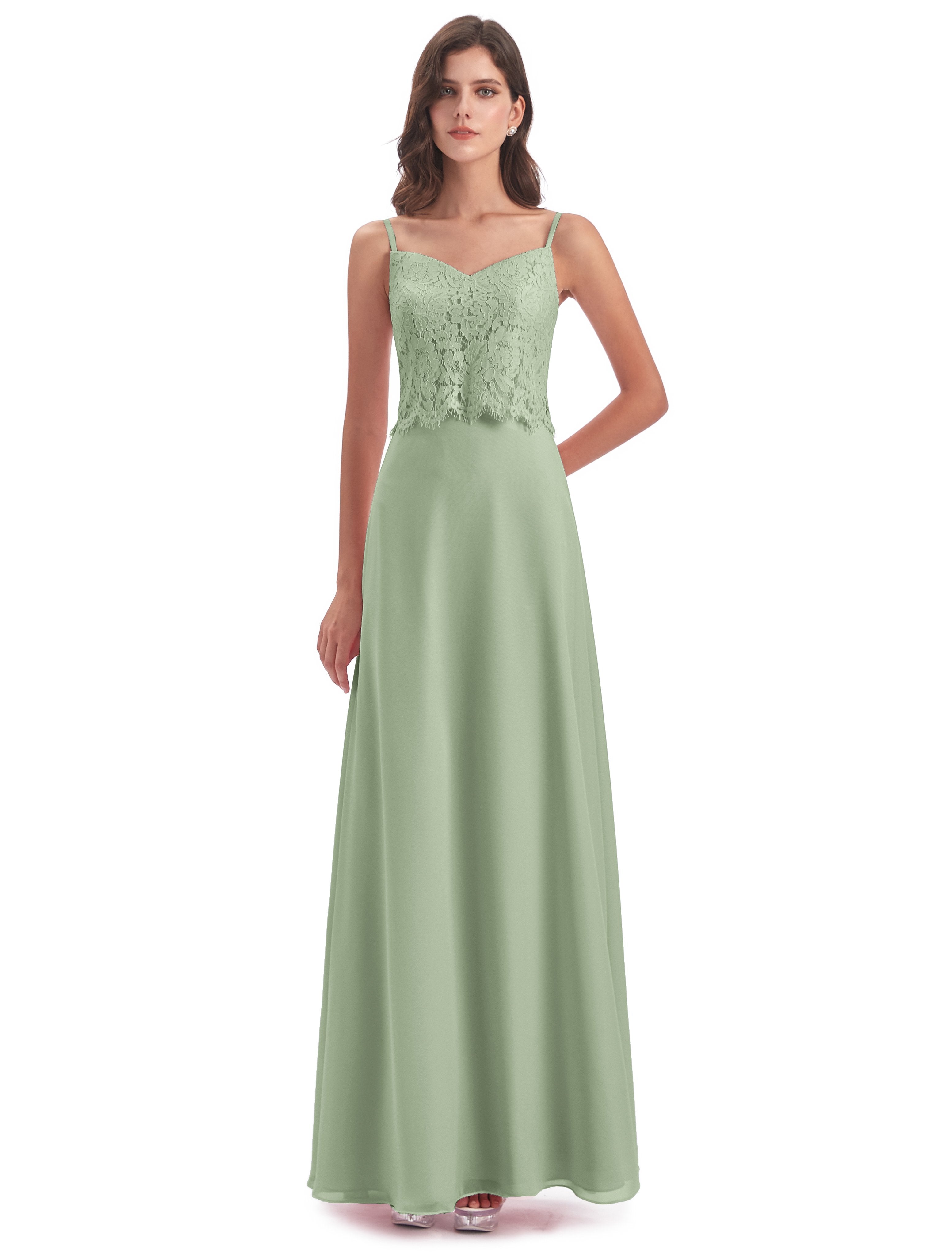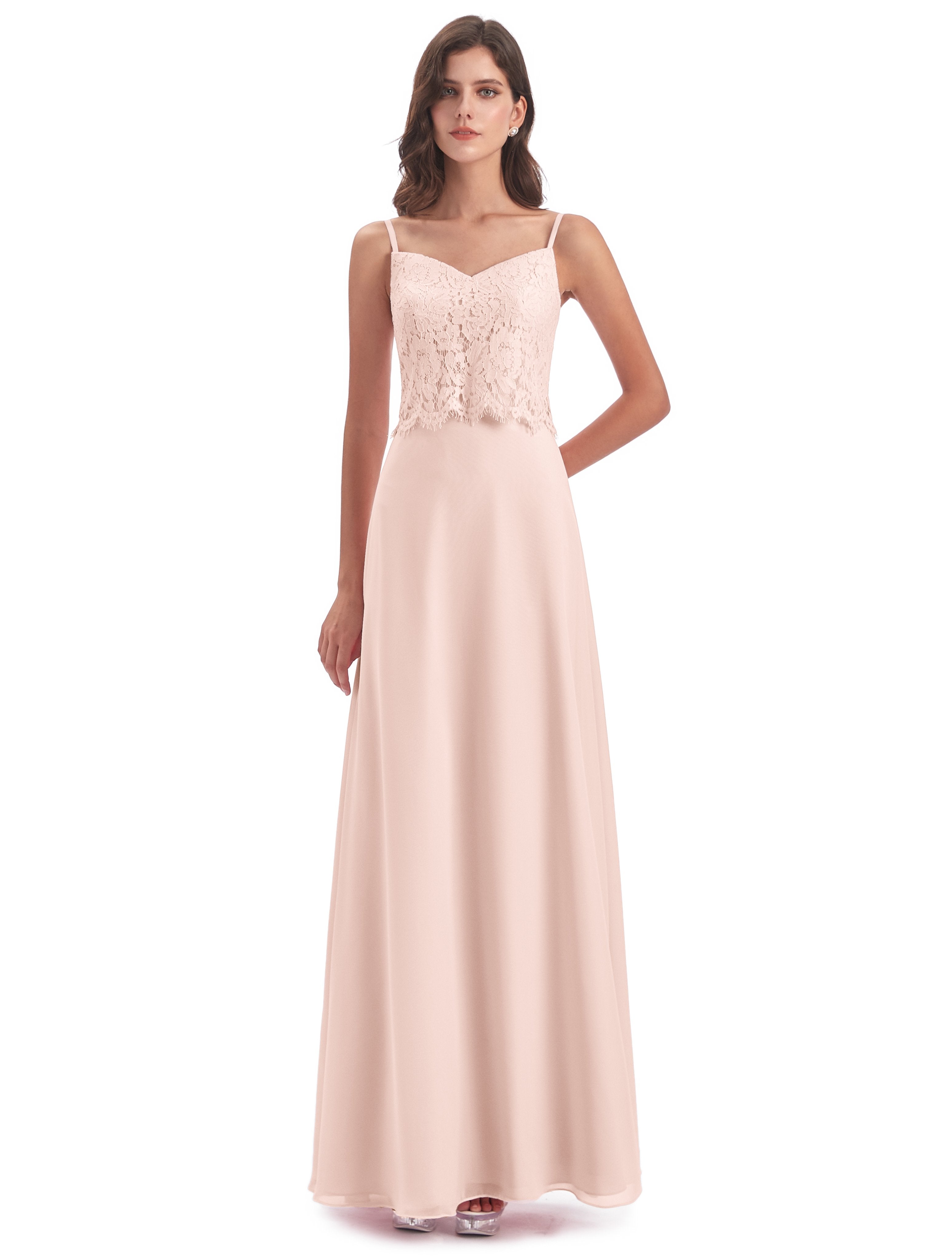 Grace Etui-Säule Bodenlange Spaghetti-Trägern Chiffon/Spitze Lange Brautjungfernkleider