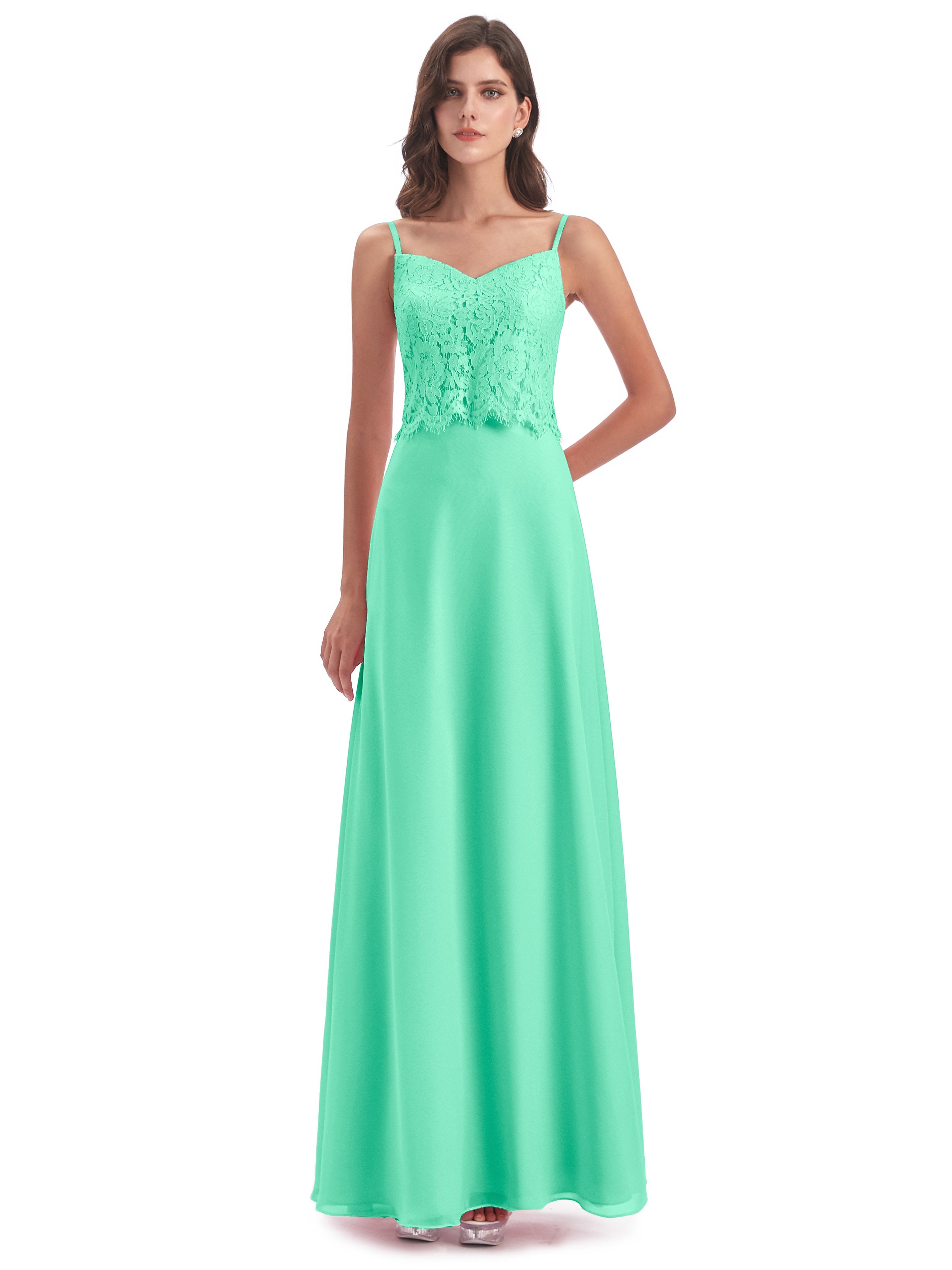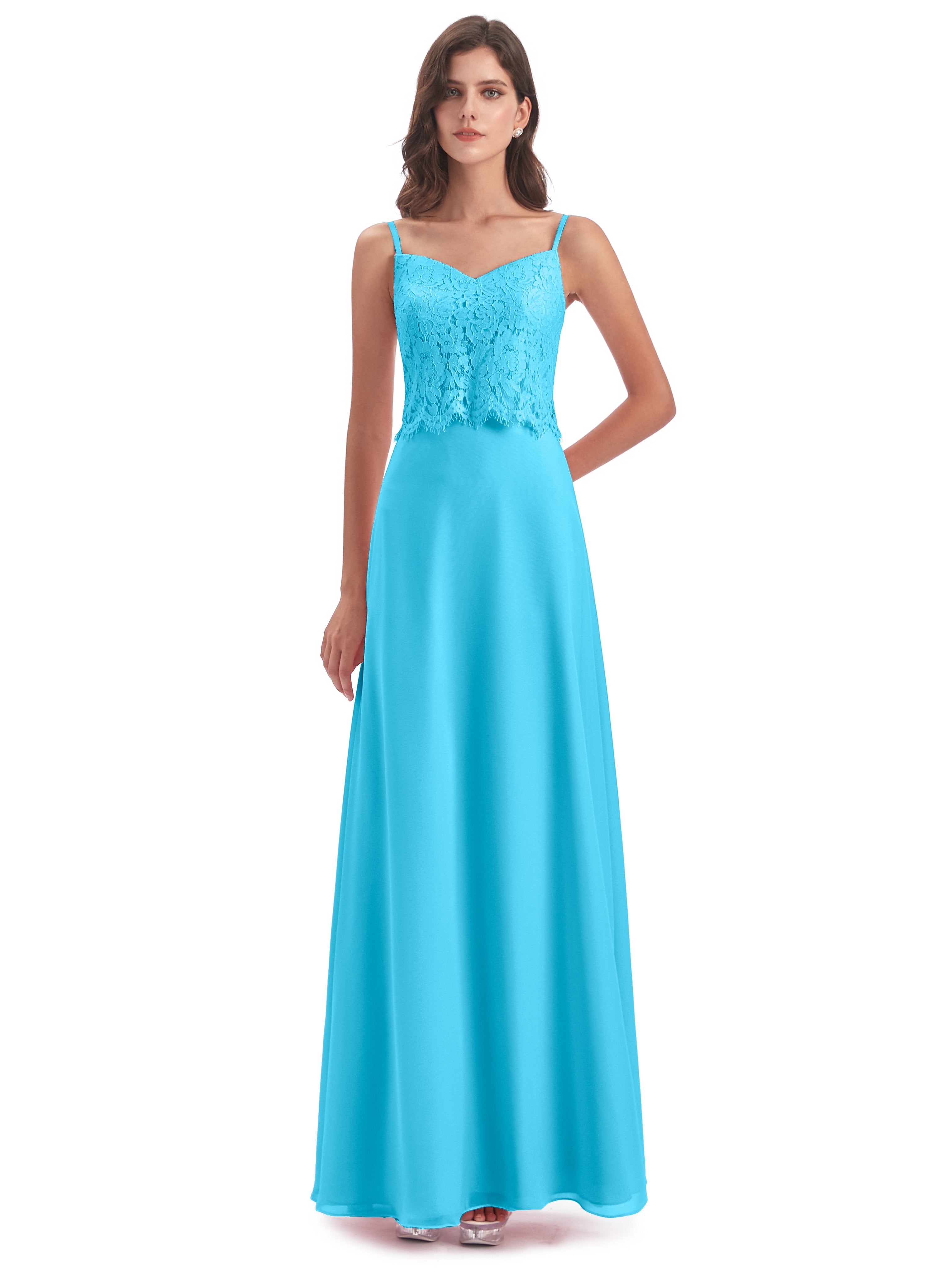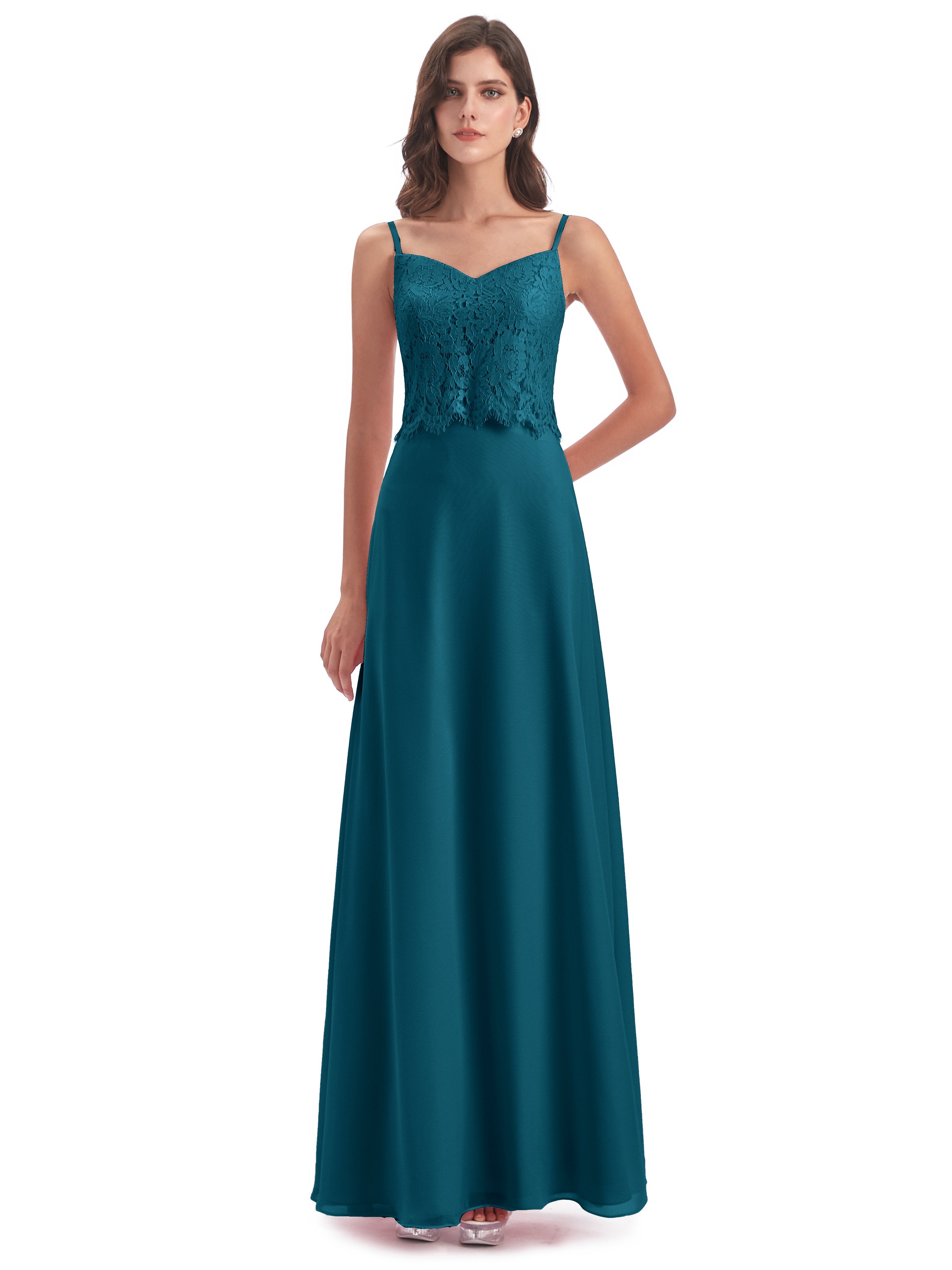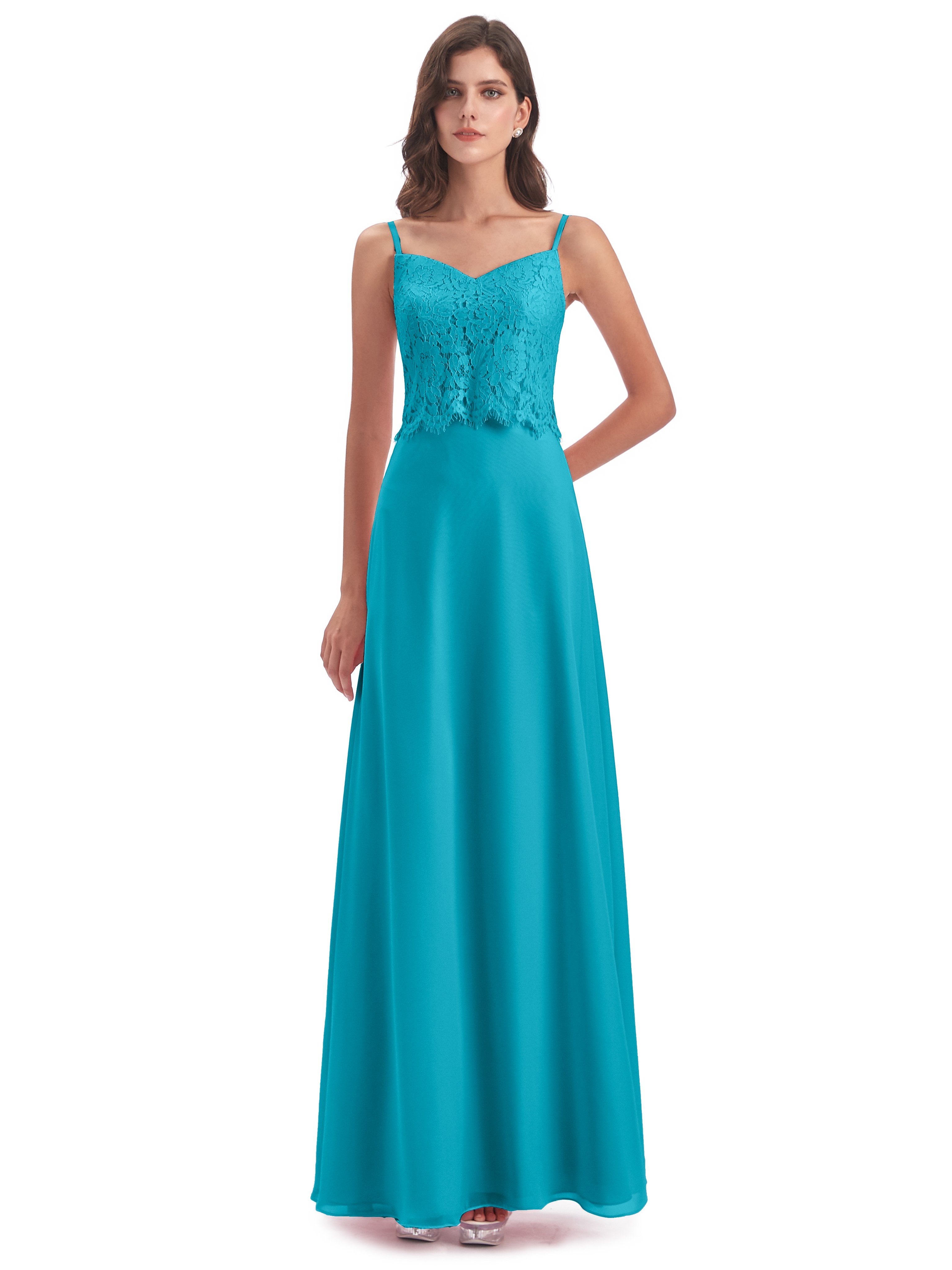 Grace Etui-Säule Bodenlange Spaghetti-Trägern Chiffon/Spitze Lange Brautjungfernkleider