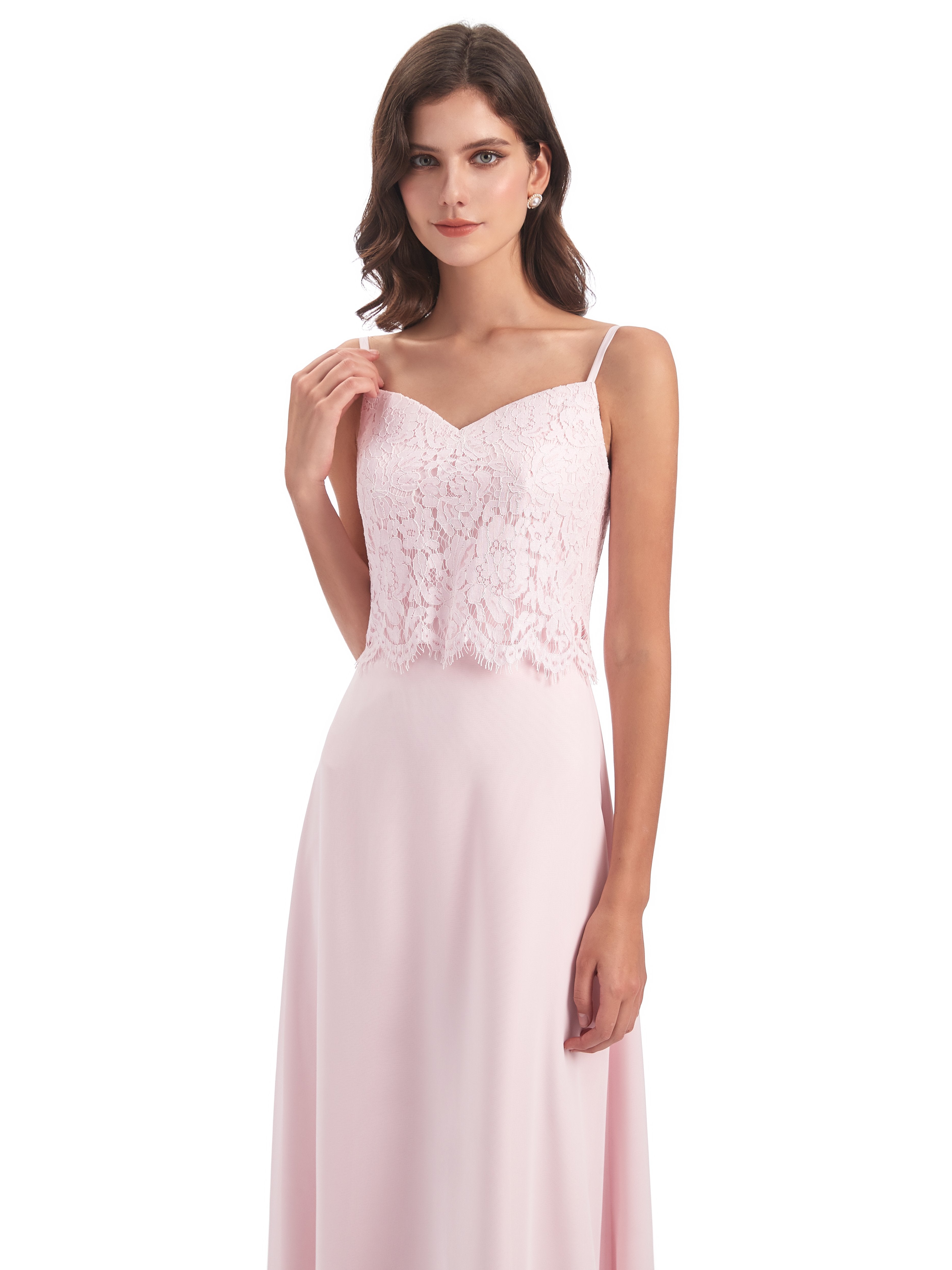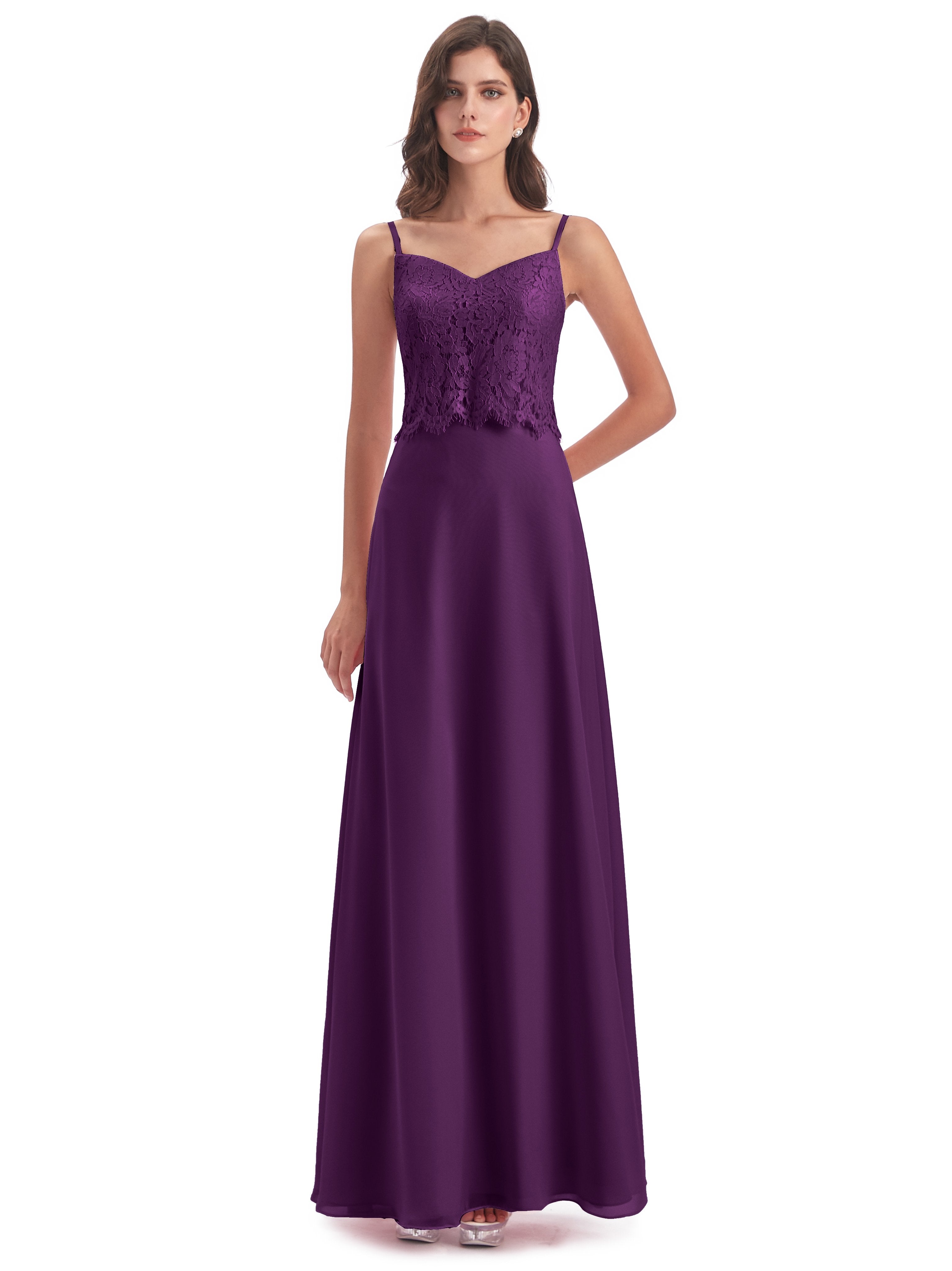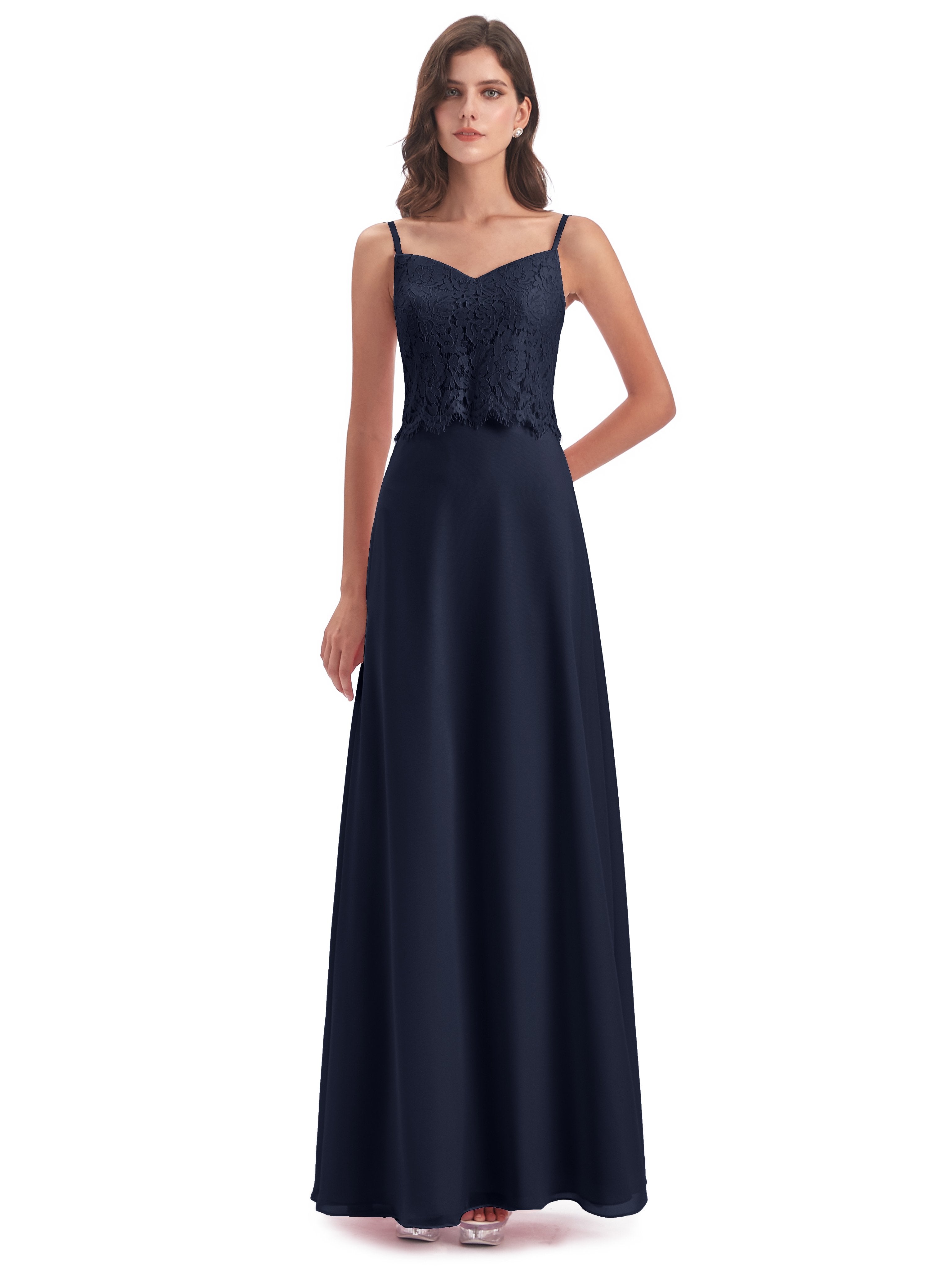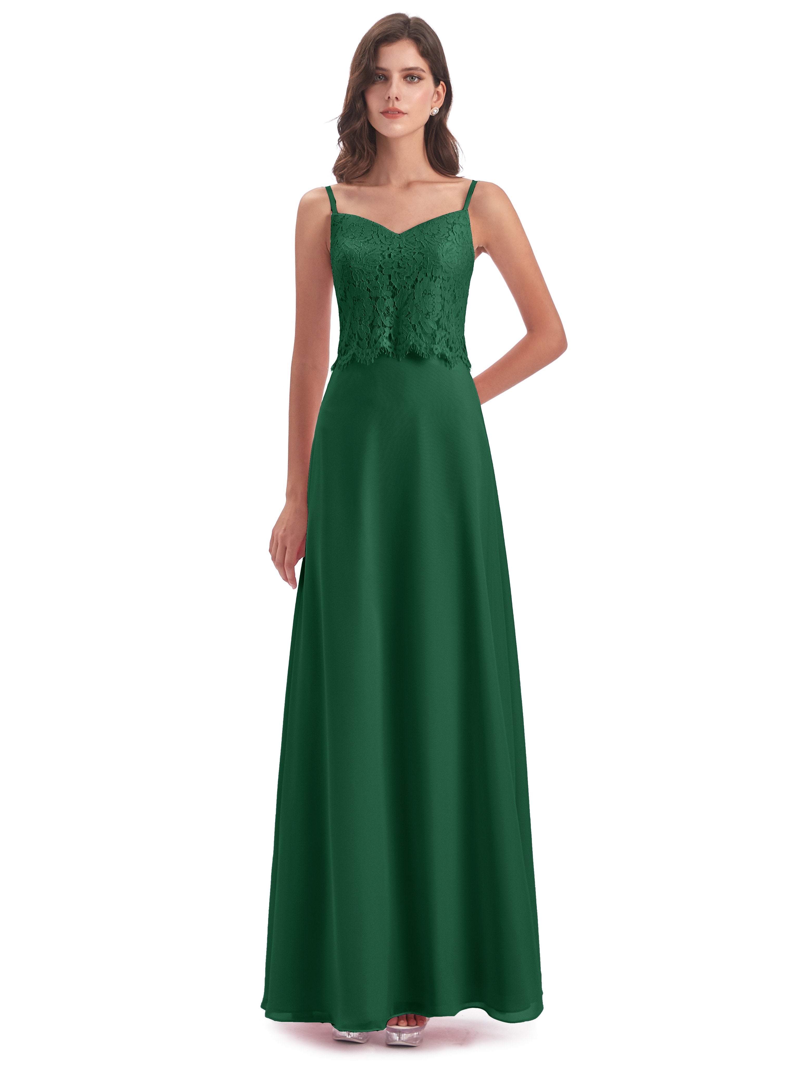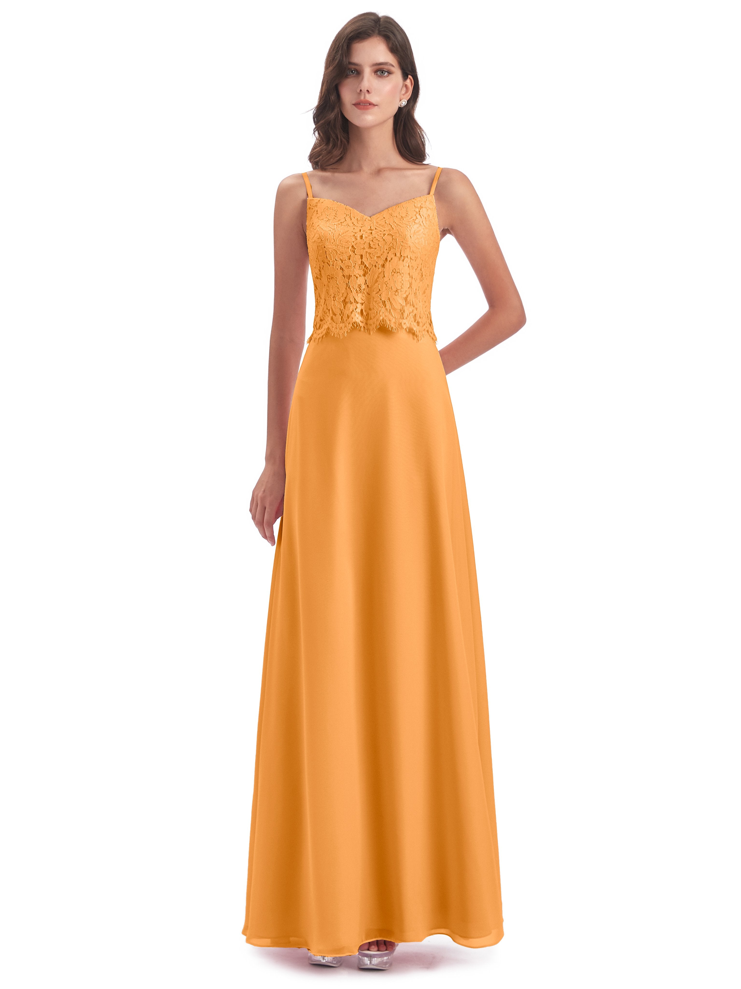 Grace Etui-Säule Bodenlange Spaghetti-Trägern Chiffon/Spitze Lange Brautjungfernkleider