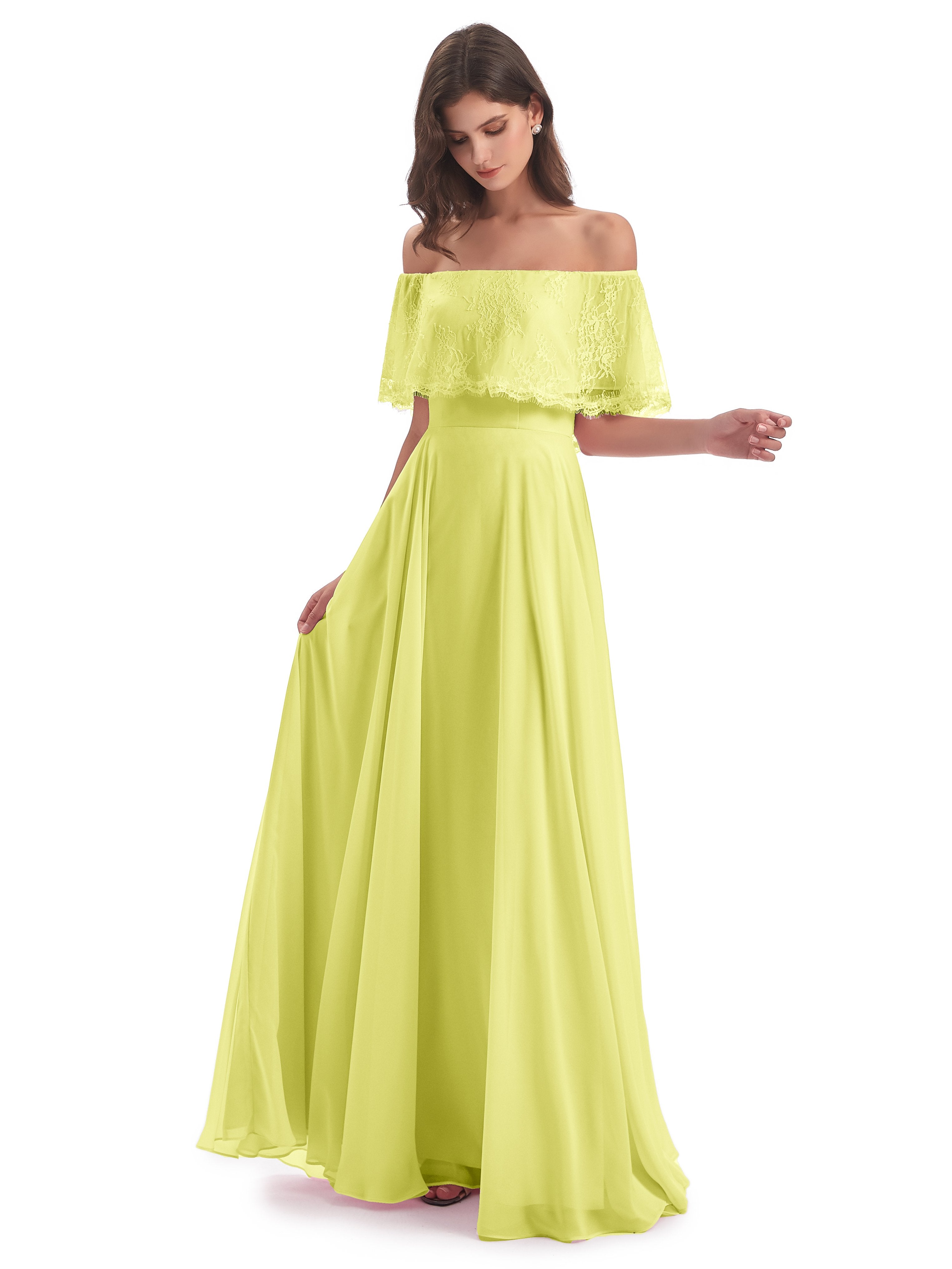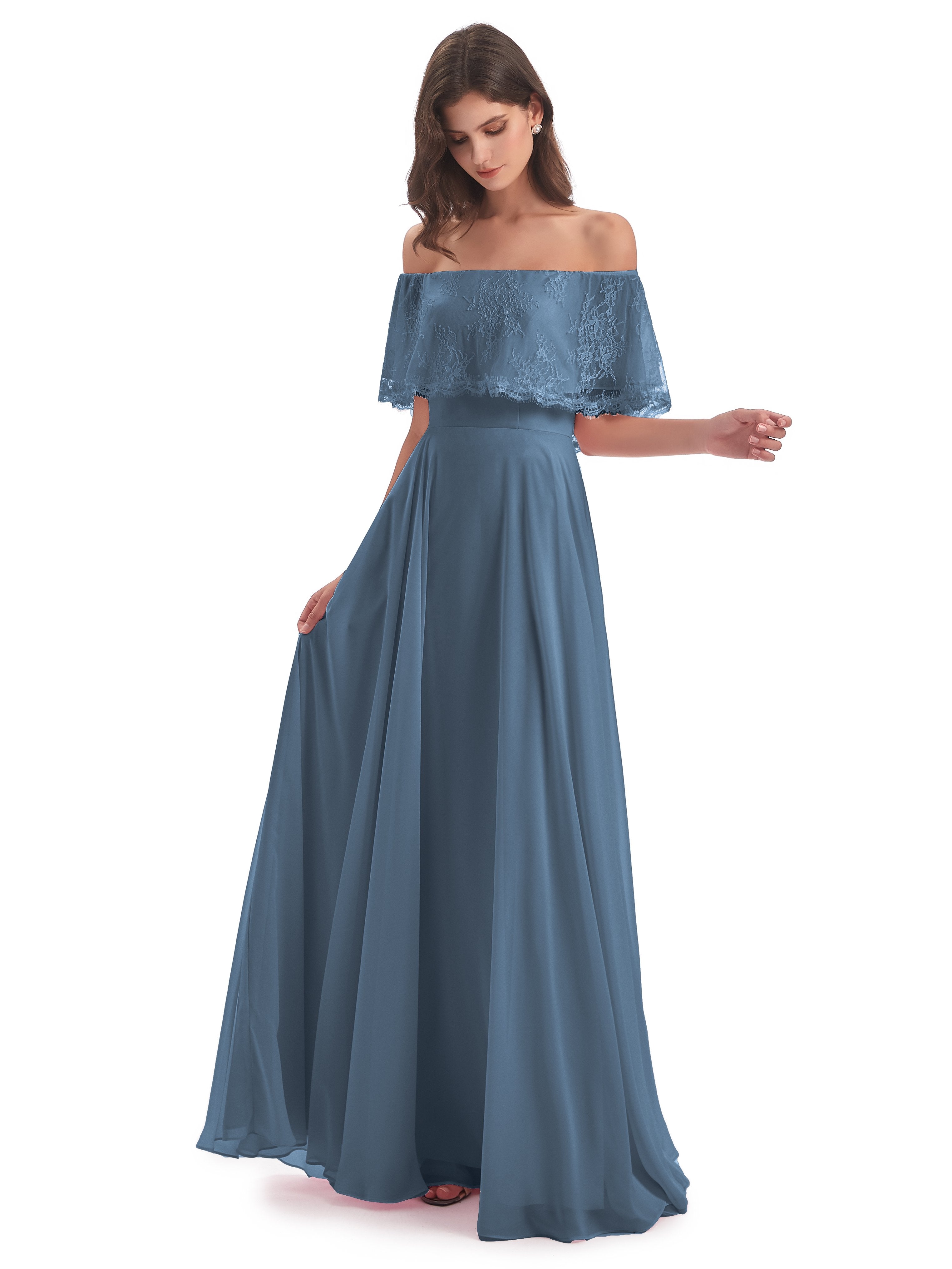 Hannah A-Linie Bodenlange Schulterfreie Chiffon/Spitze Lange Brautjungfernkleider