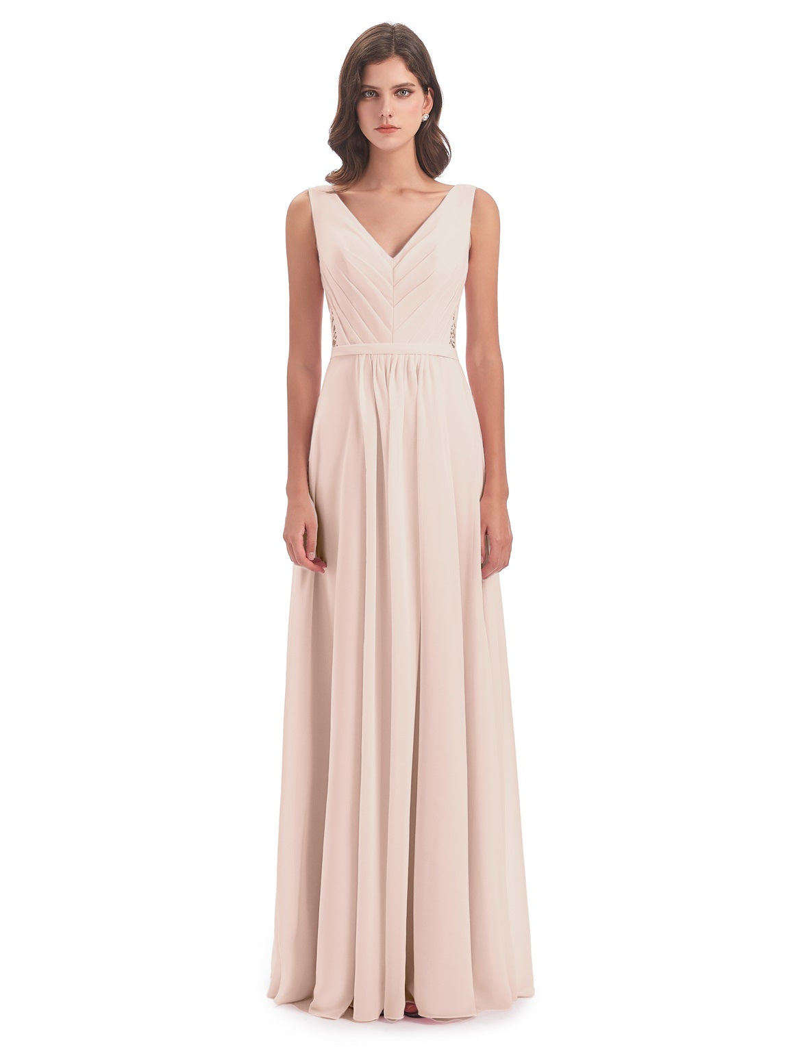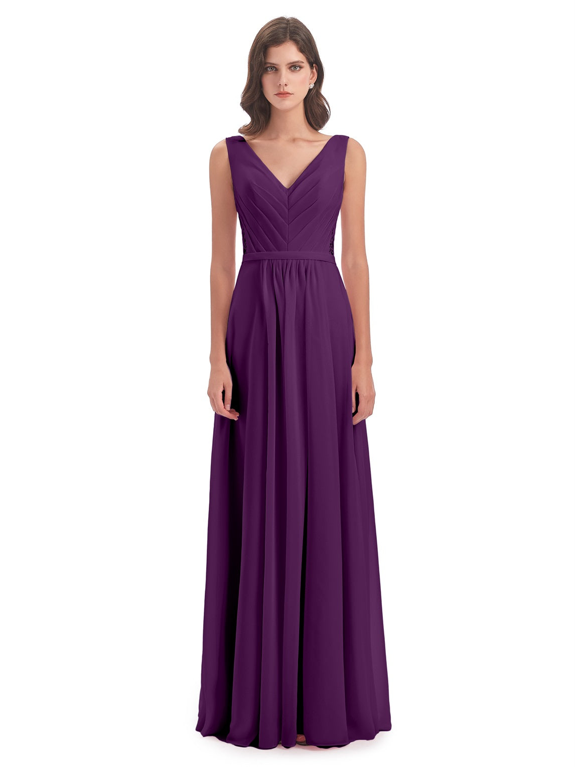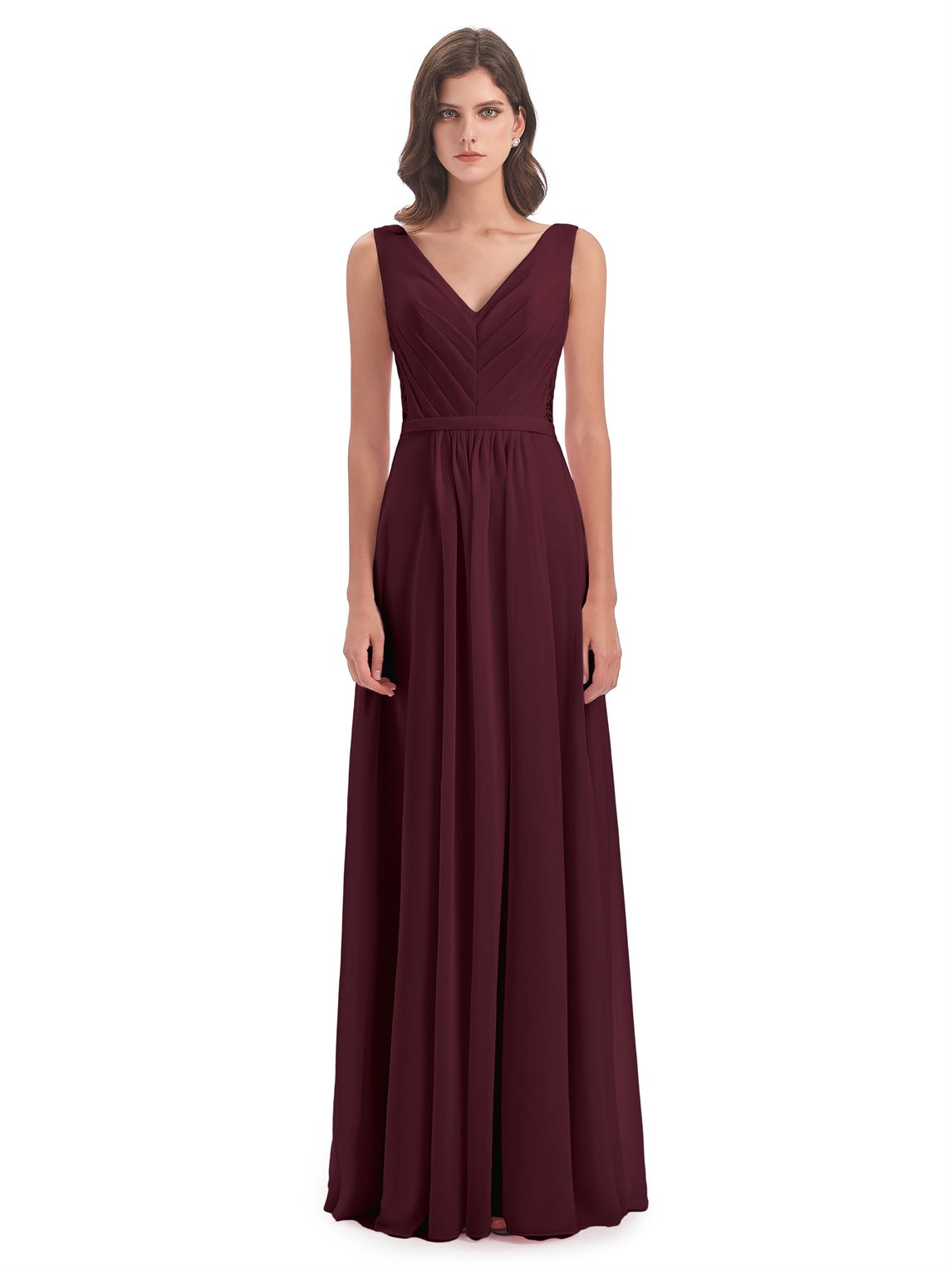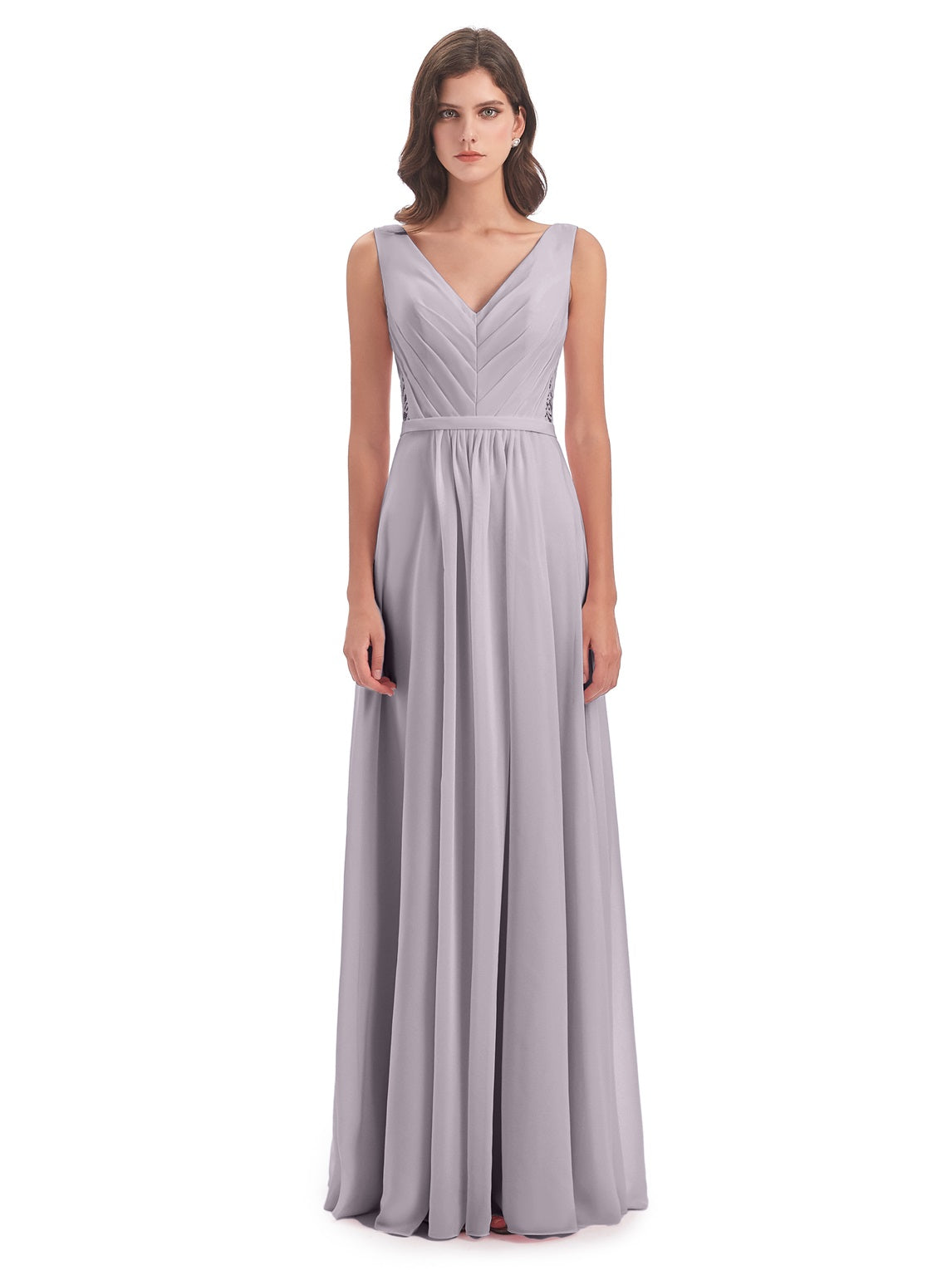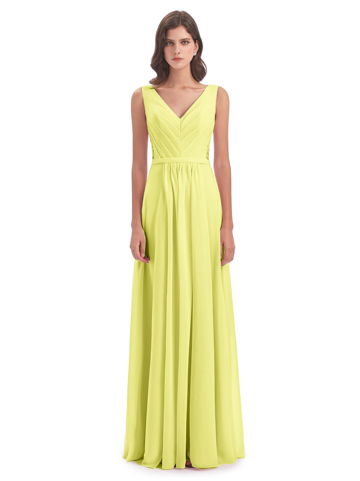 Kailee A-Linie Bodenlange V-Ausschnitt Chiffon Lange Brautjungfernkleider