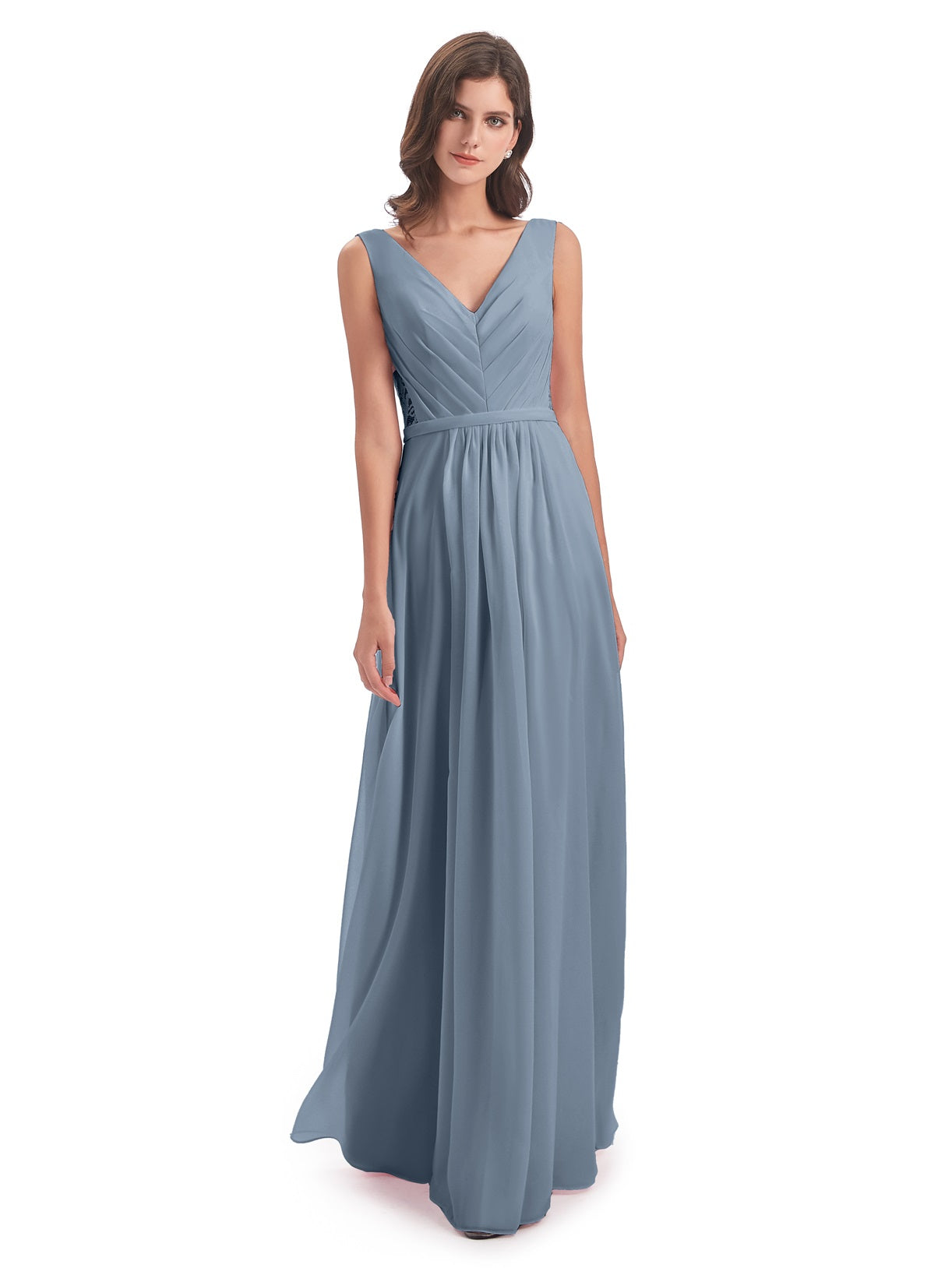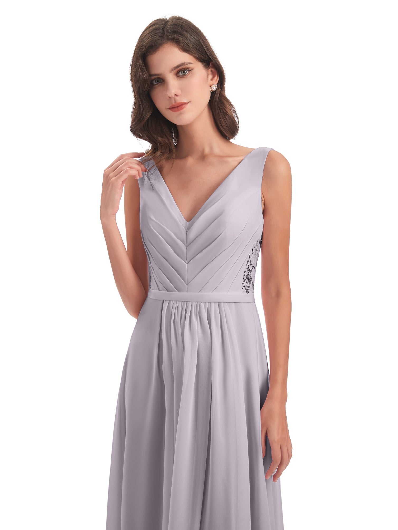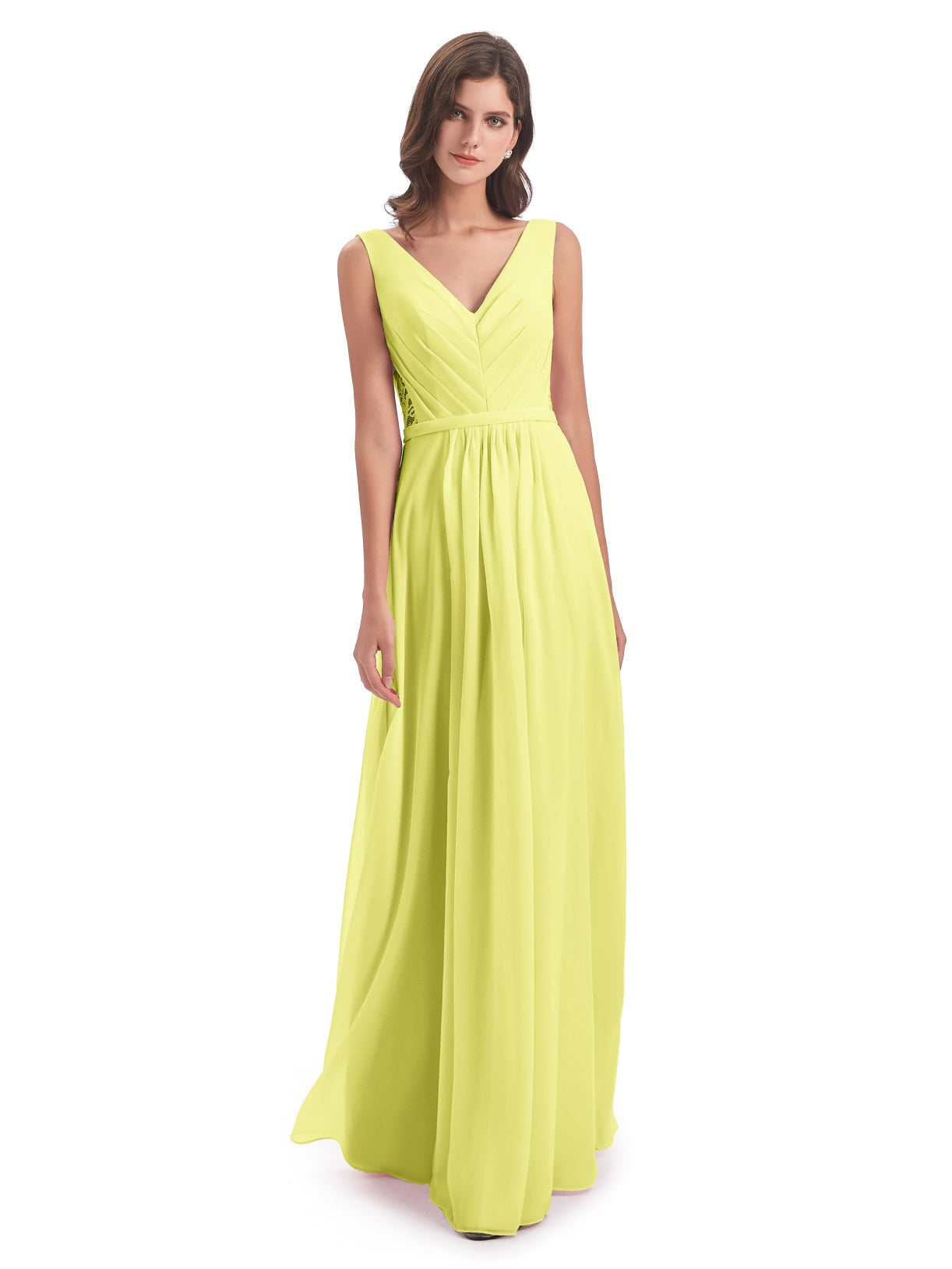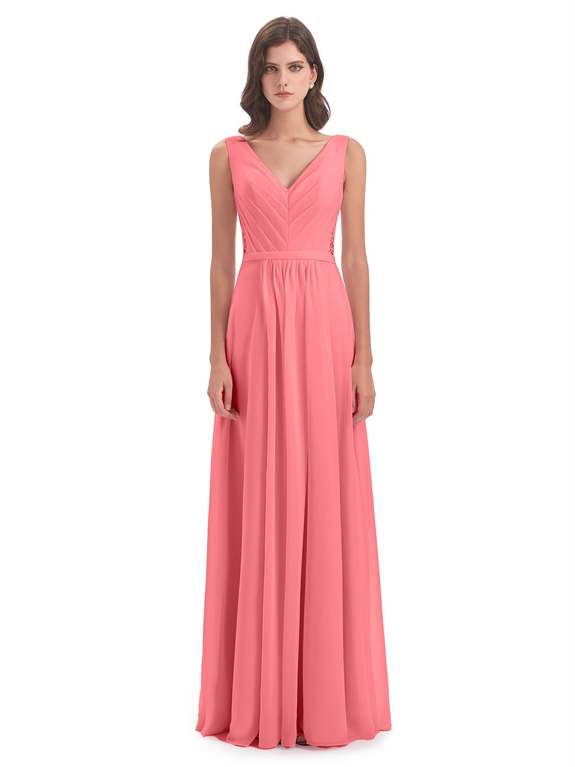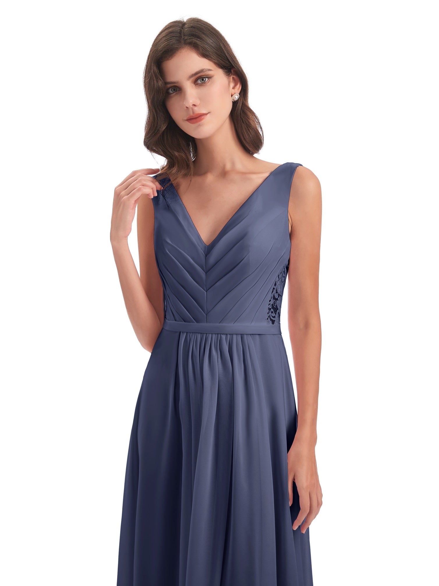 Kailee A-Linie Bodenlange V-Ausschnitt Chiffon Lange Brautjungfernkleider