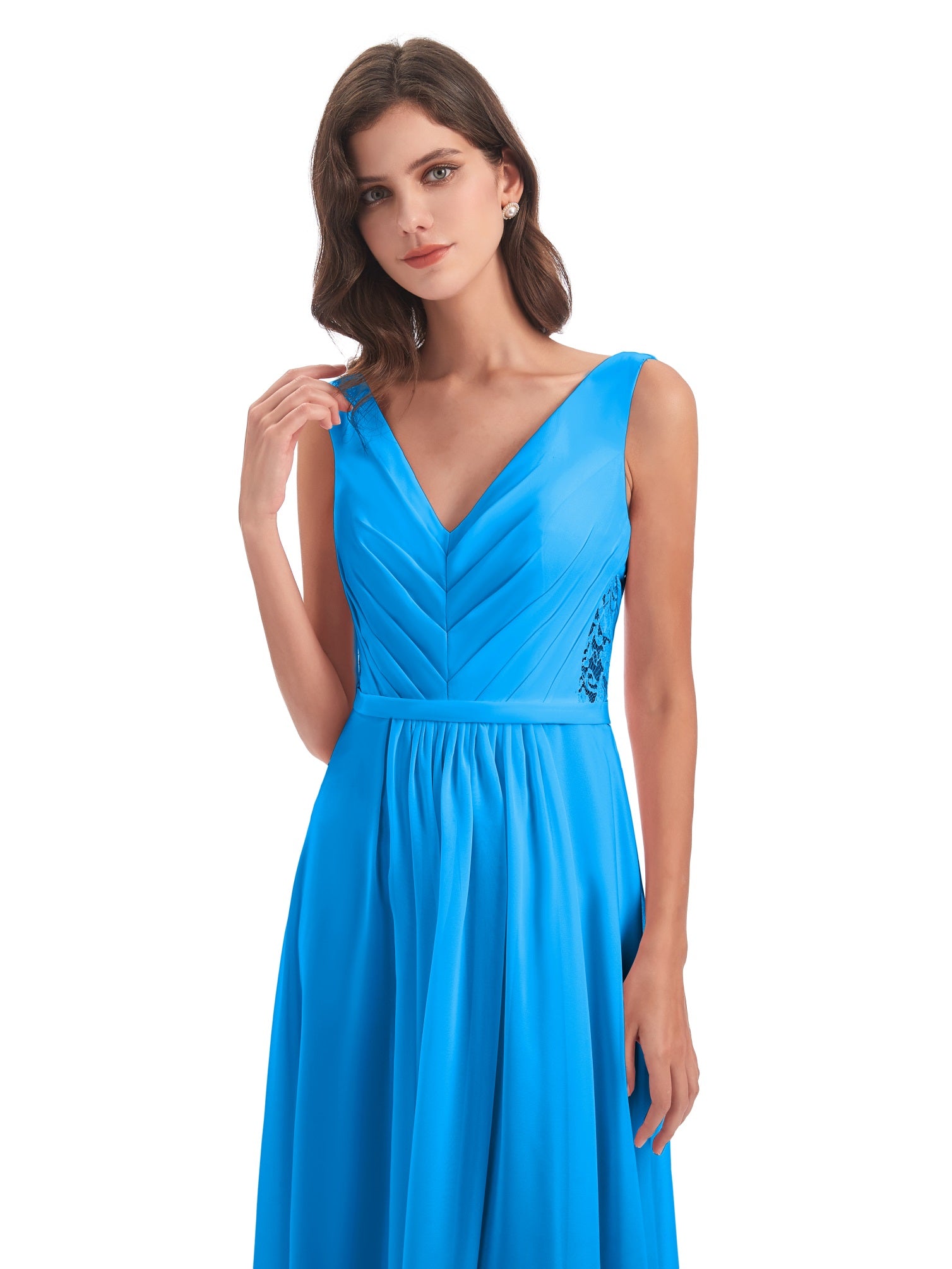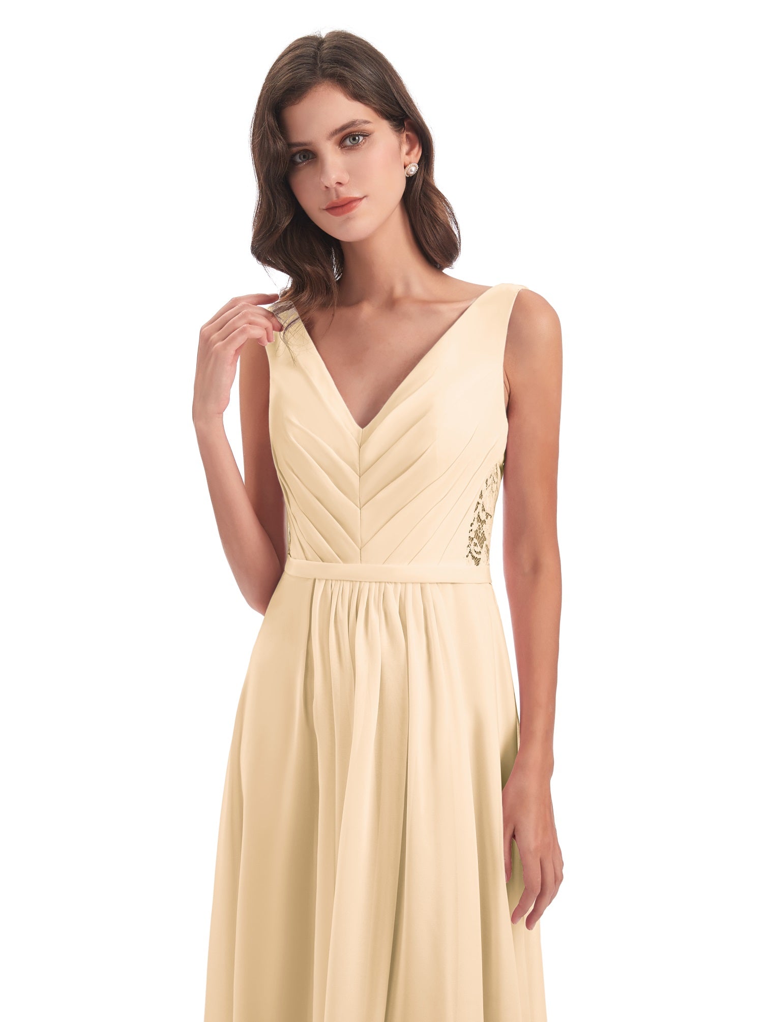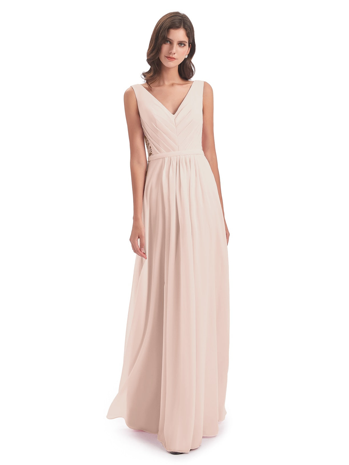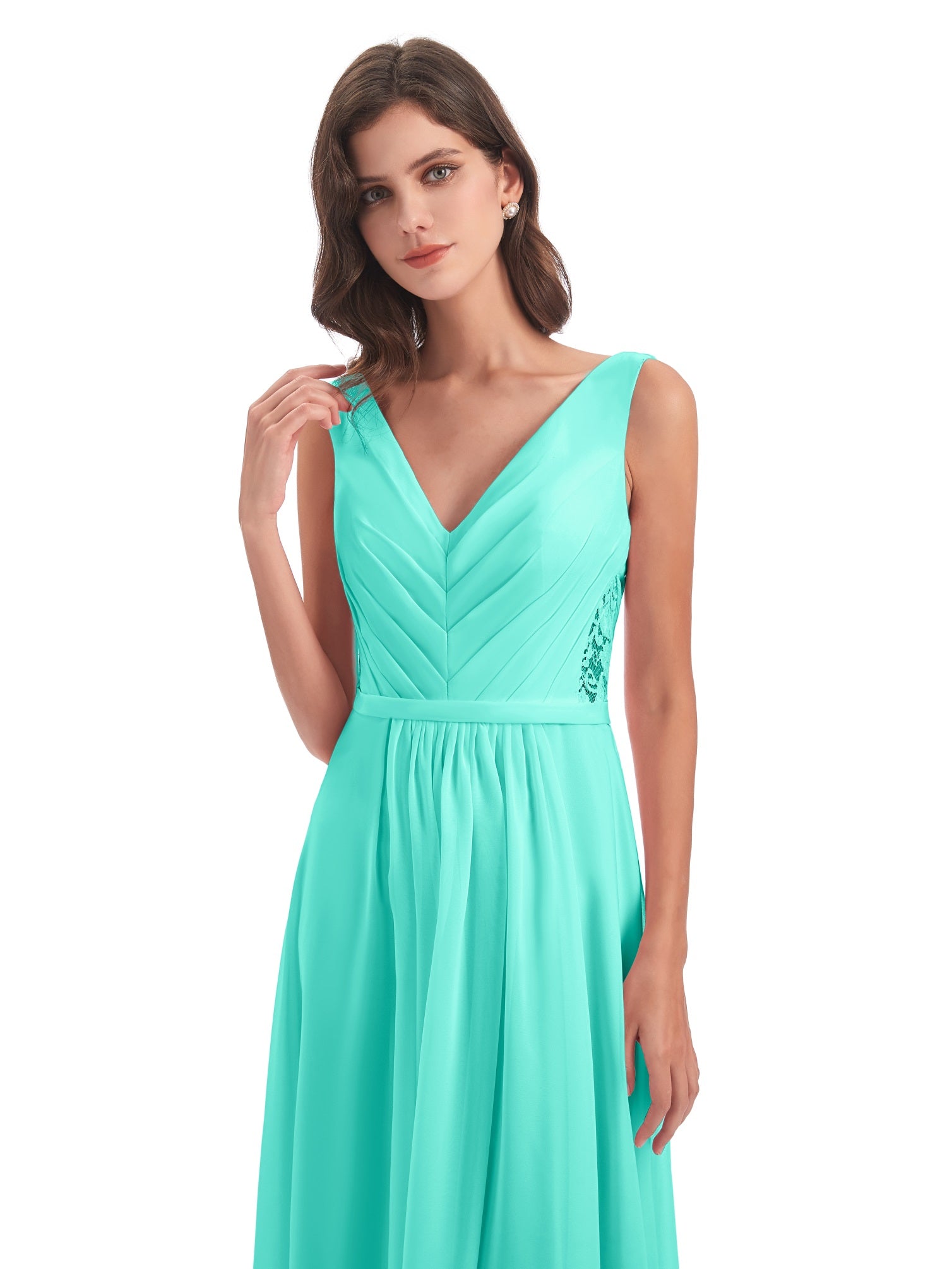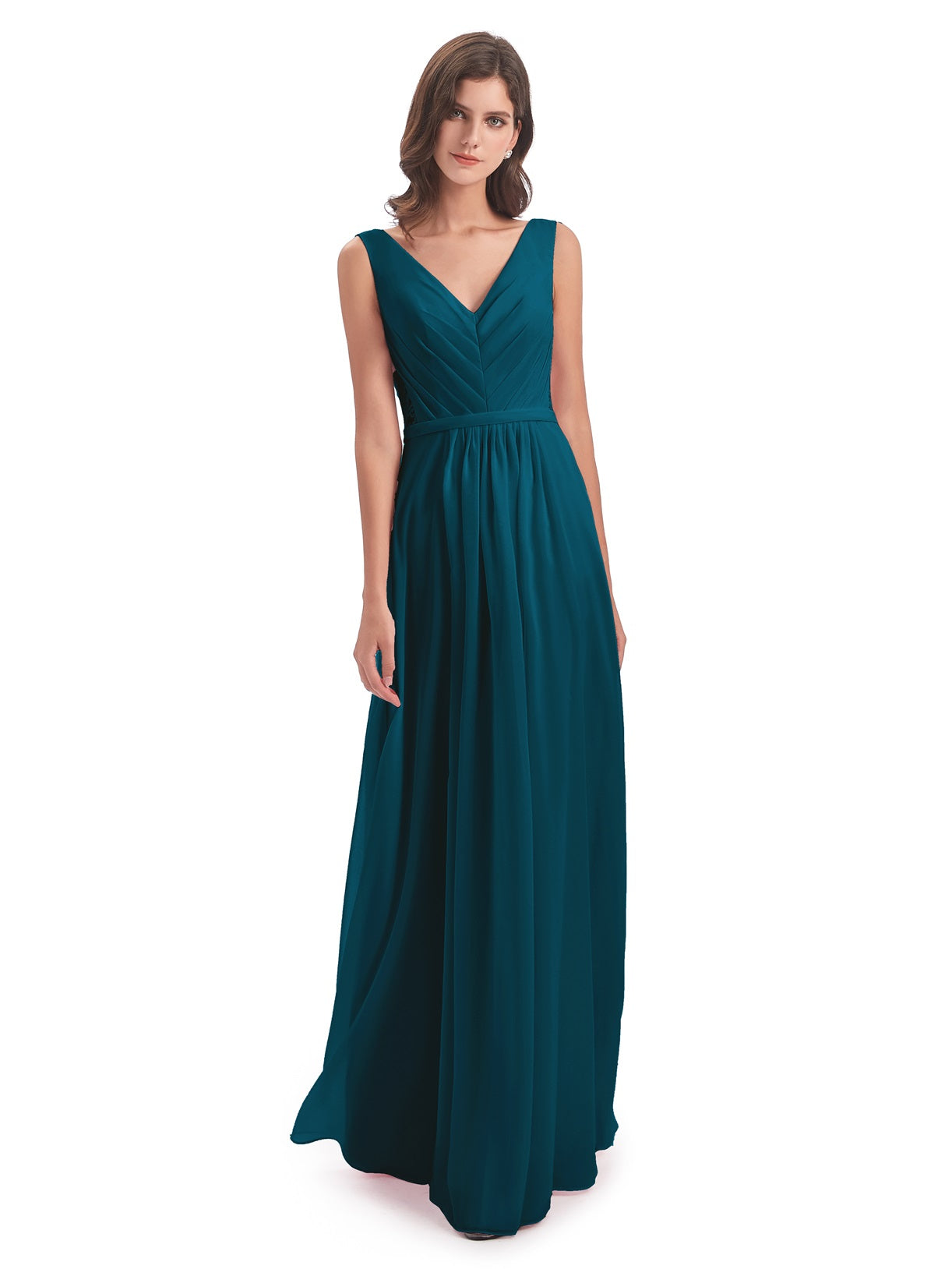 Kailee A-Linie Bodenlange V-Ausschnitt Chiffon Lange Brautjungfernkleider