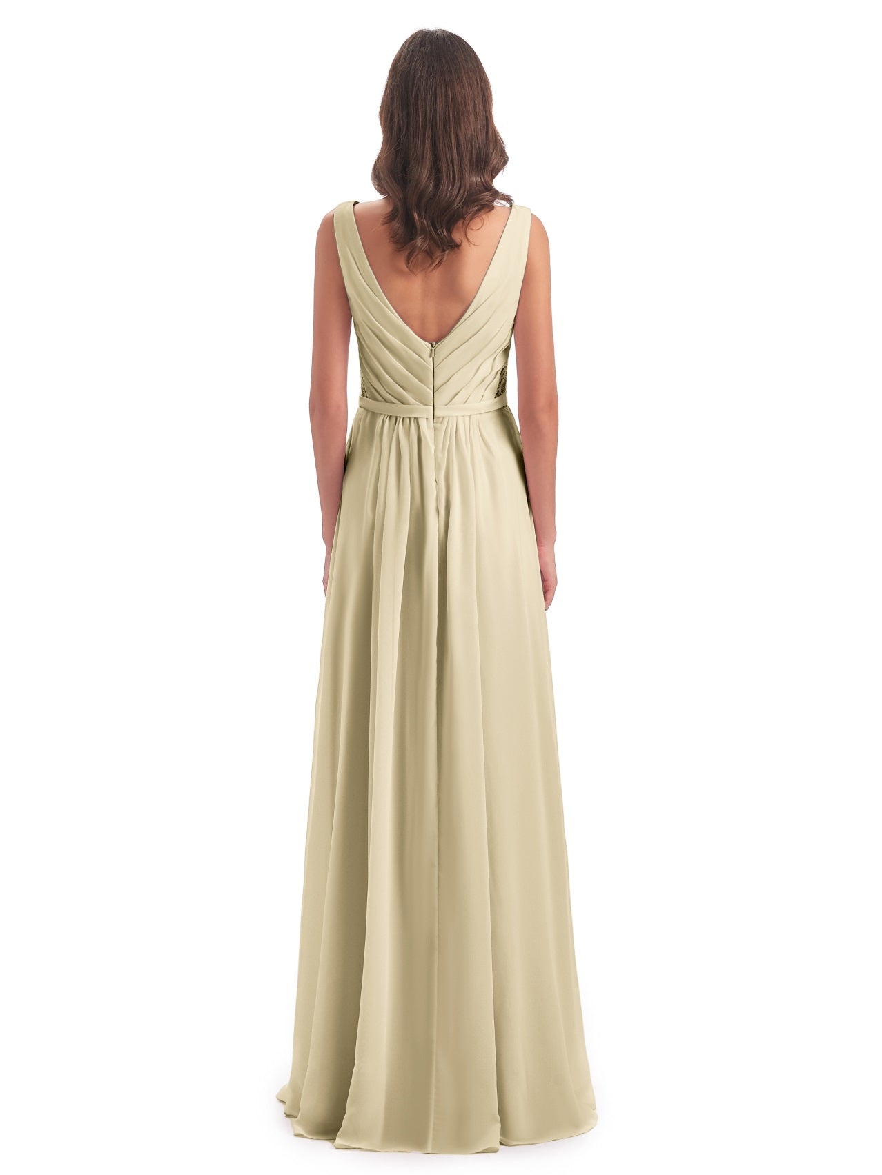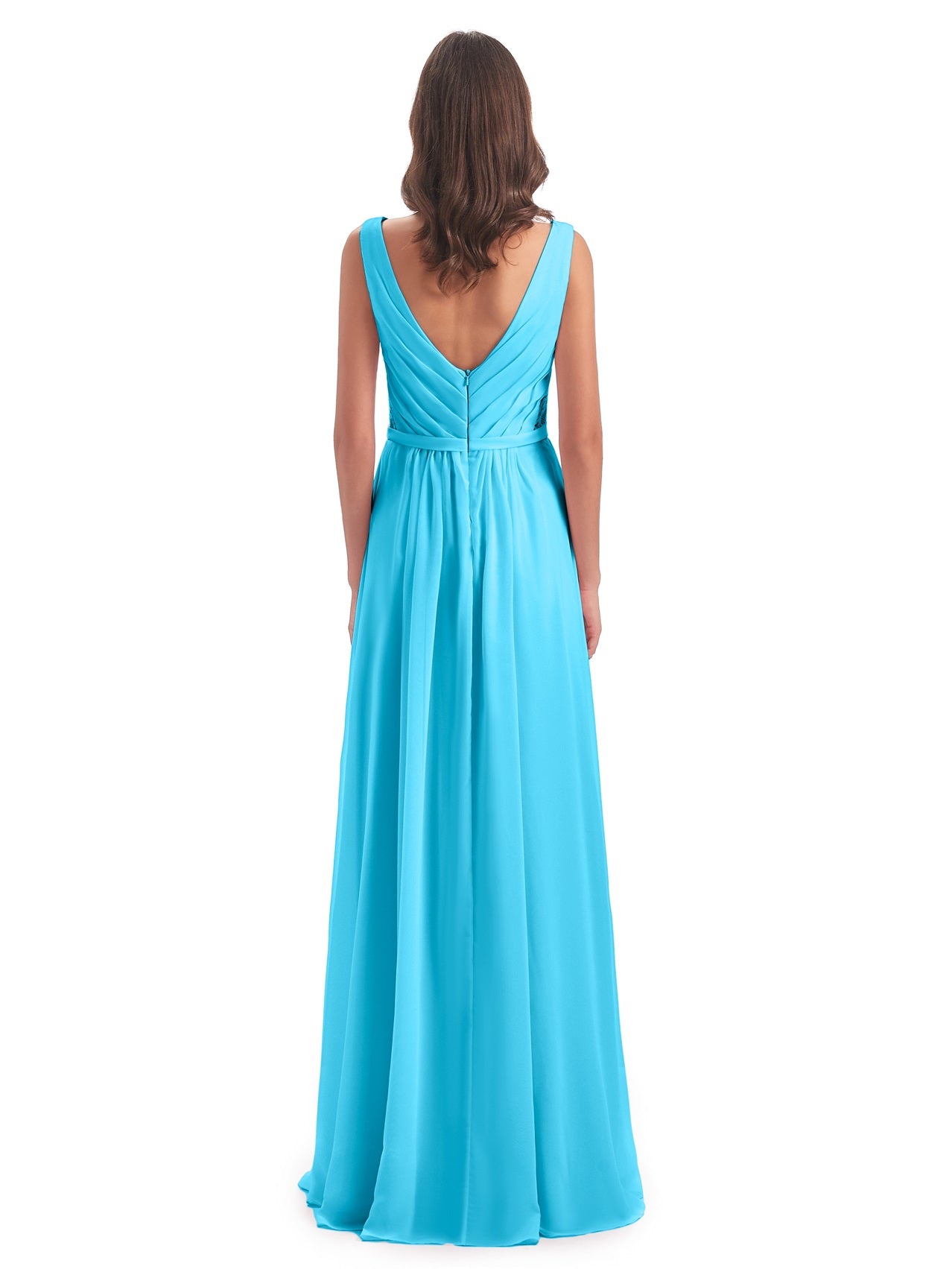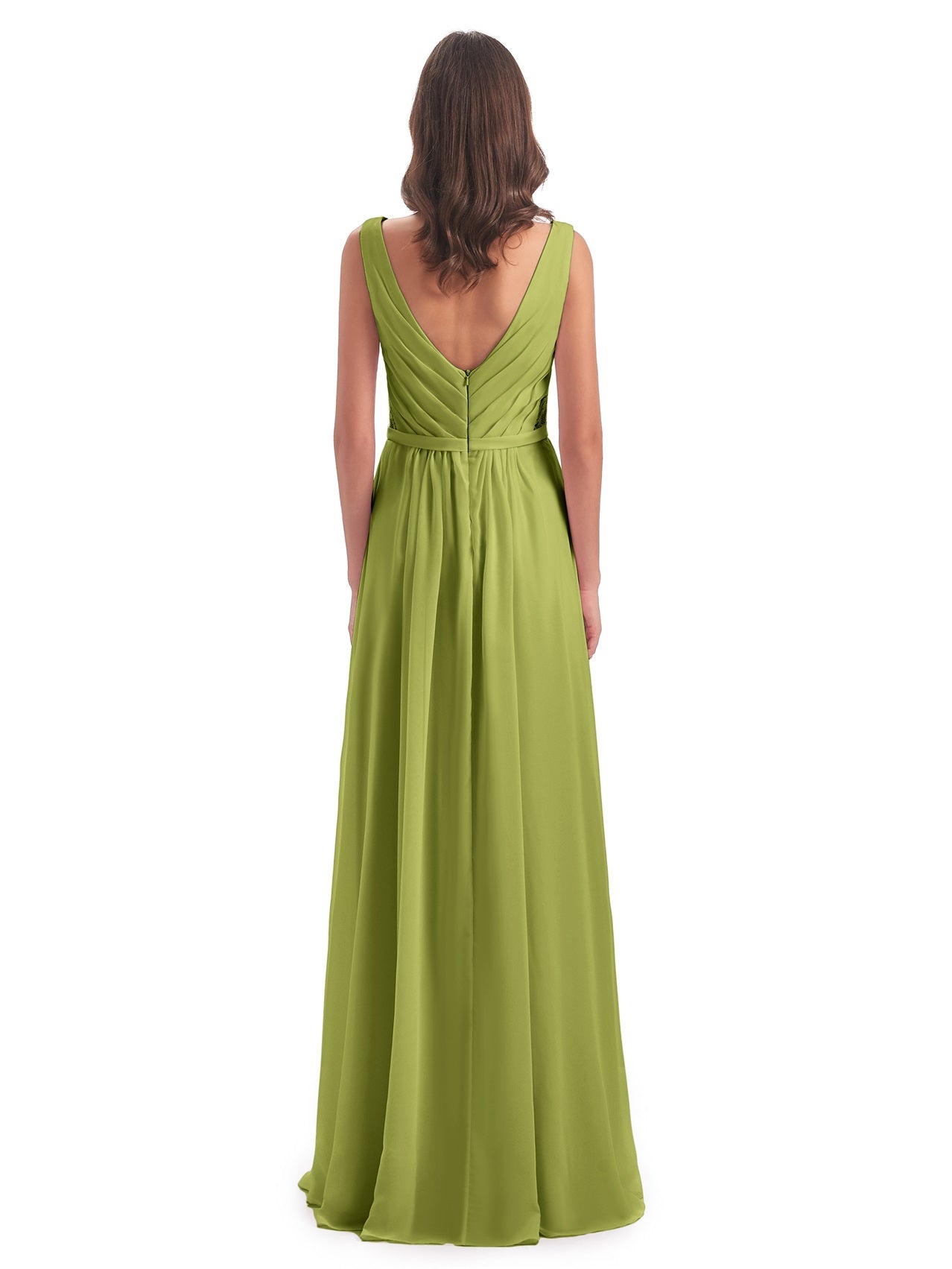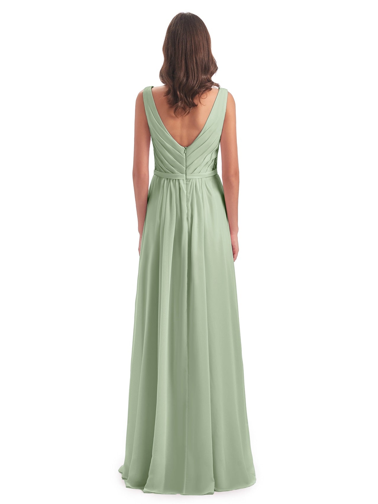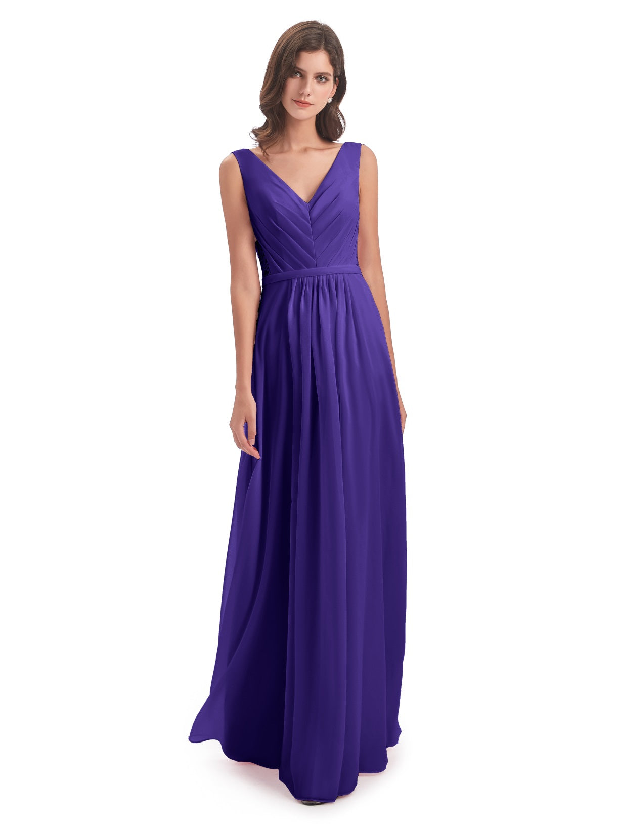 Kailee A-Linie Bodenlange V-Ausschnitt Chiffon Lange Brautjungfernkleider