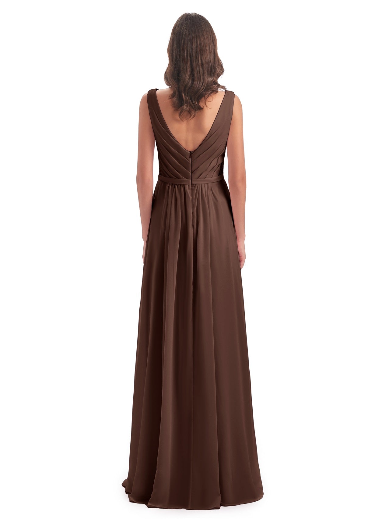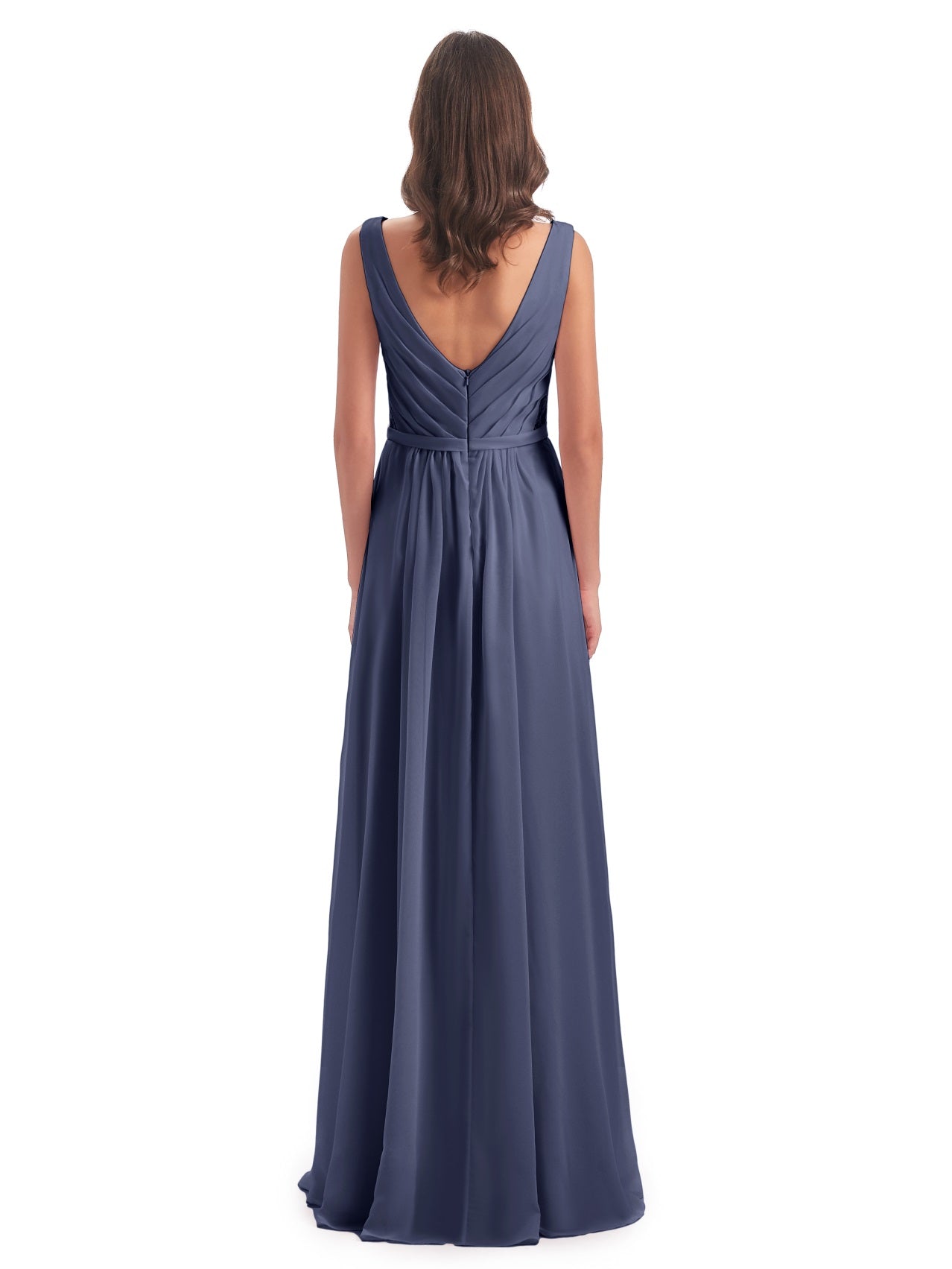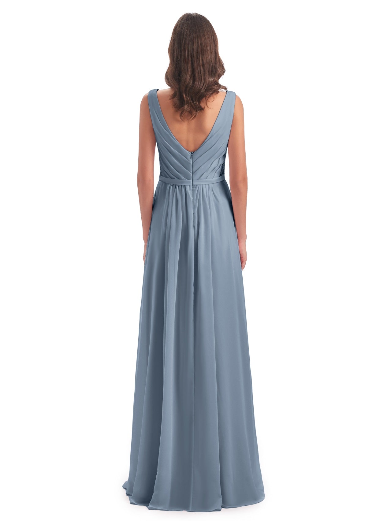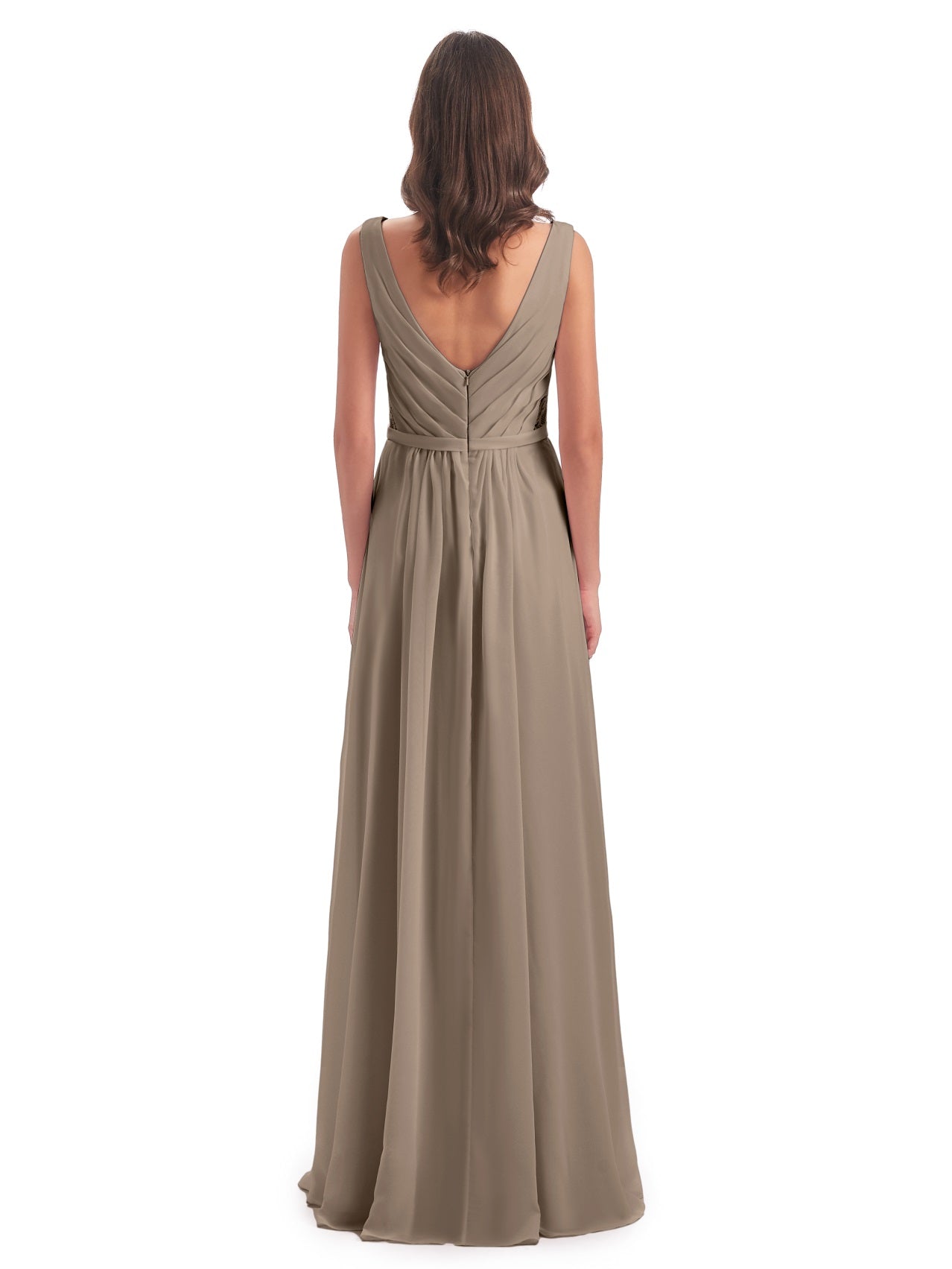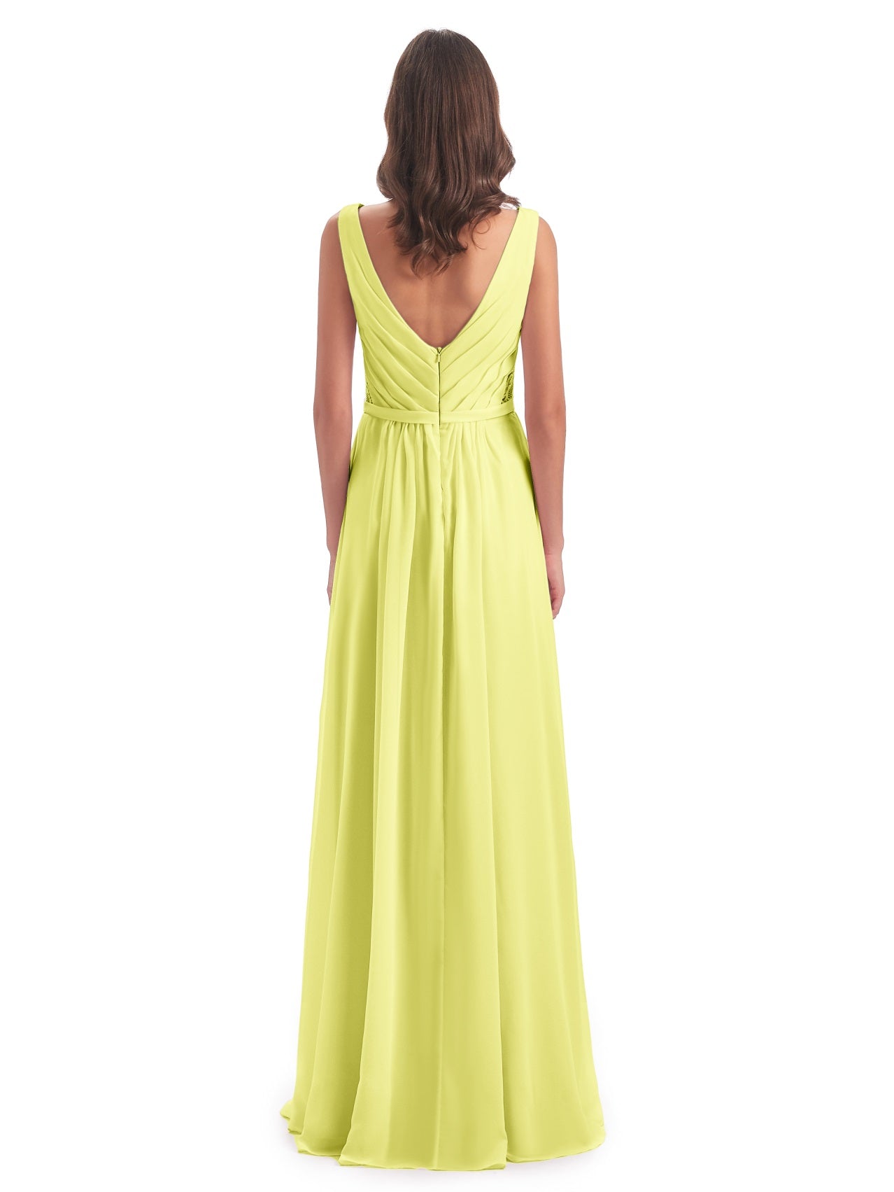 Kailee A-Linie Bodenlange V-Ausschnitt Chiffon Lange Brautjungfernkleider