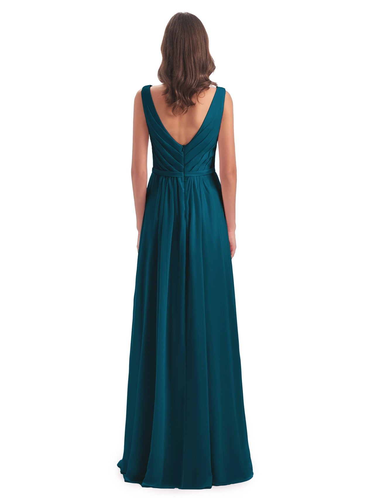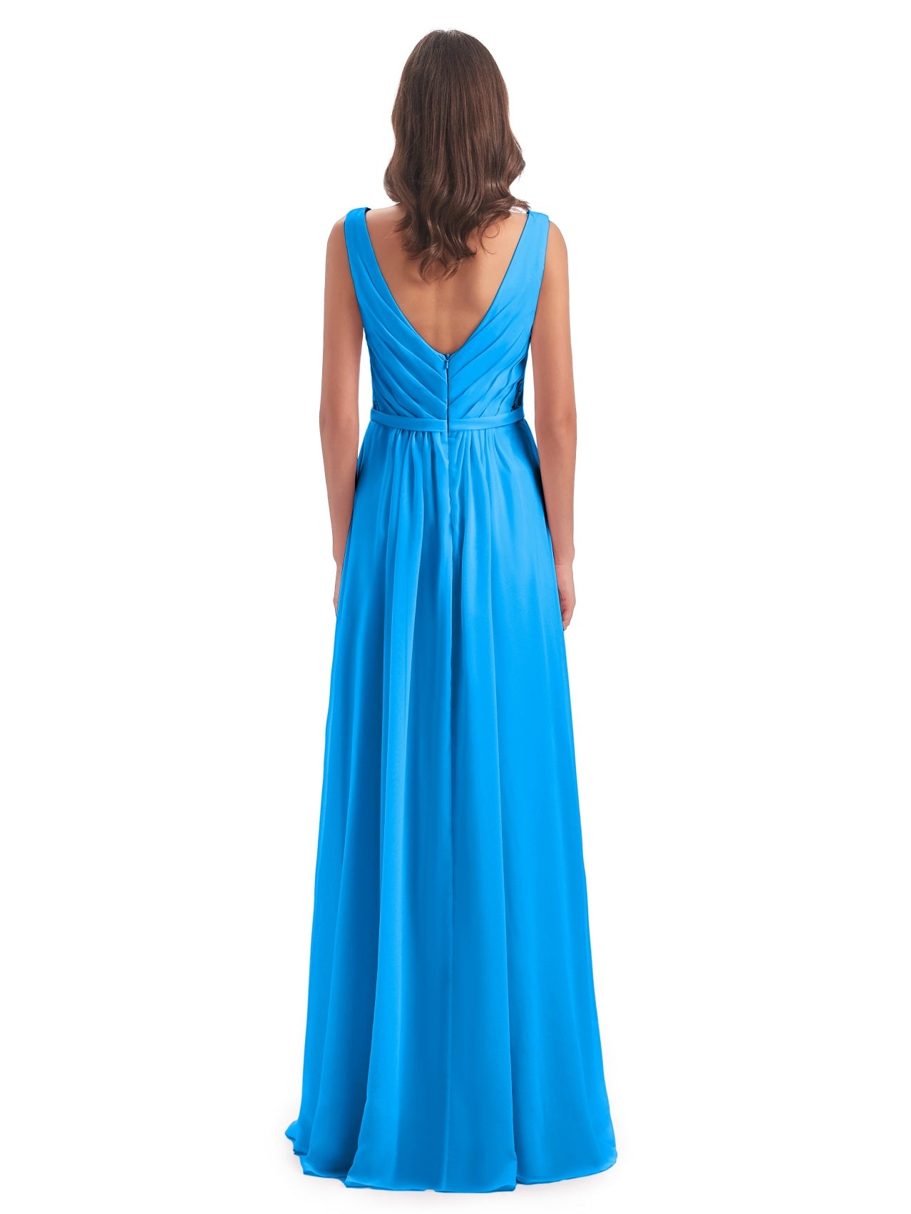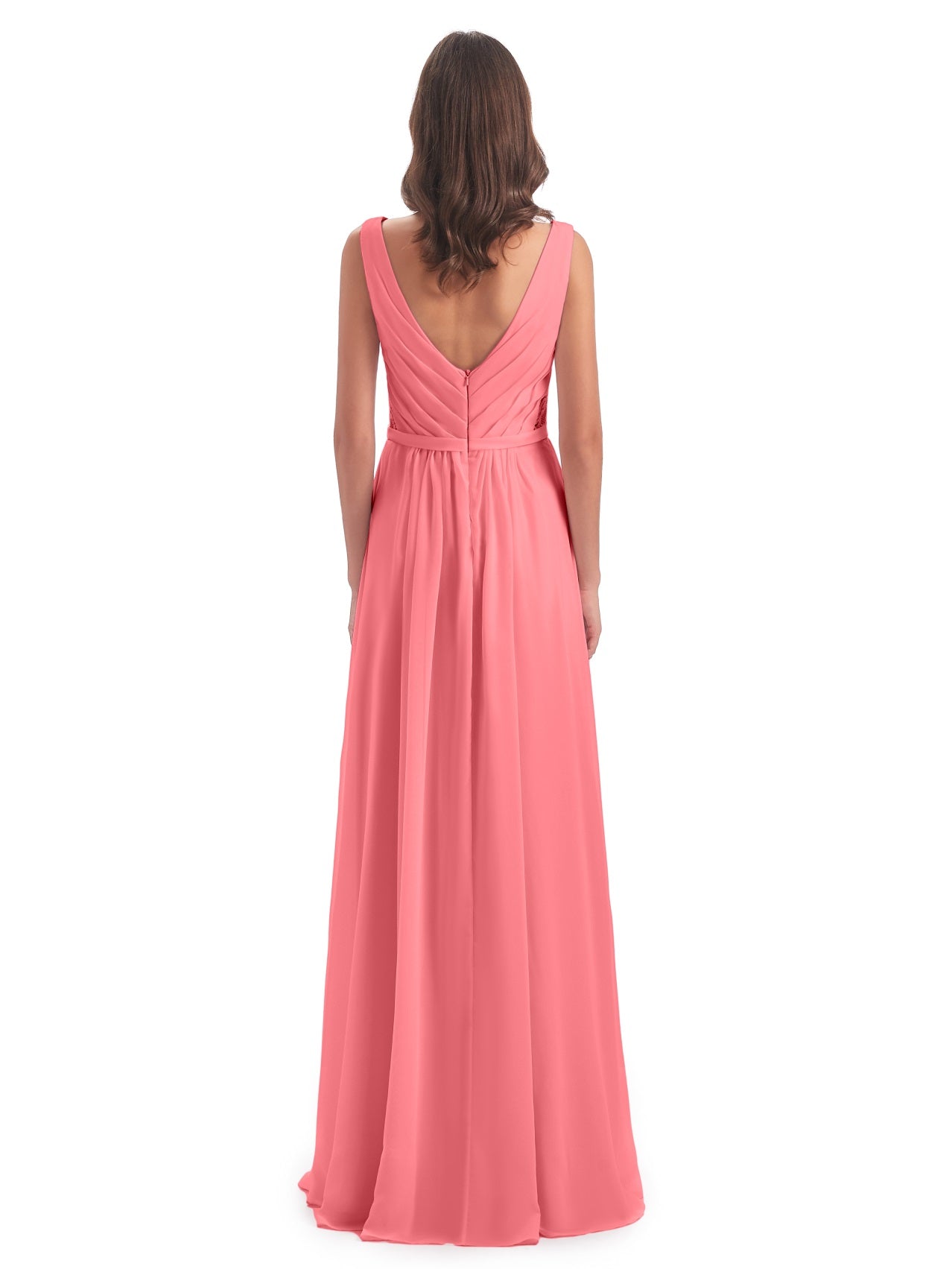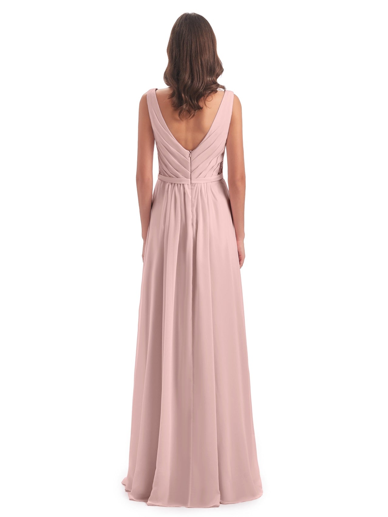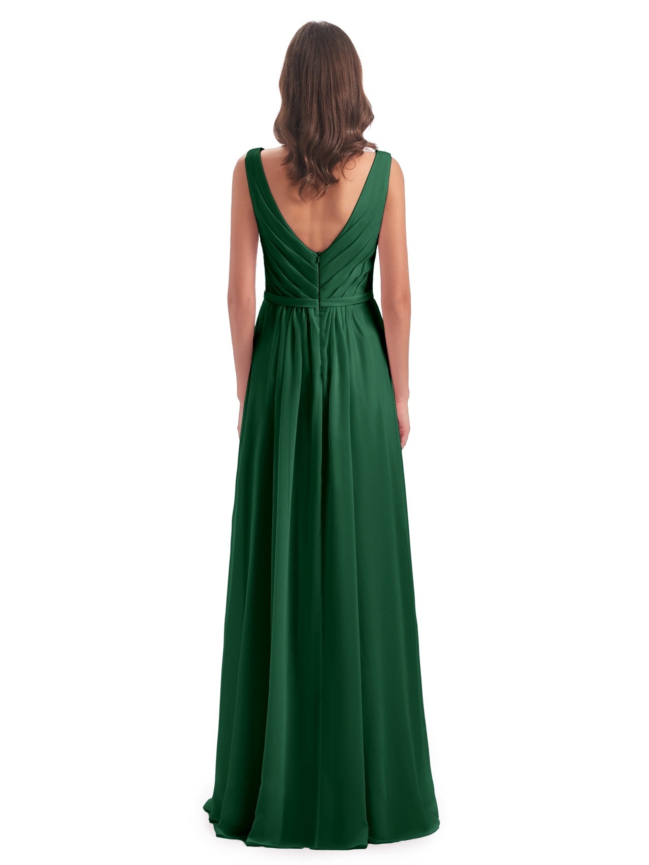 Kailee A-Linie Bodenlange V-Ausschnitt Chiffon Lange Brautjungfernkleider