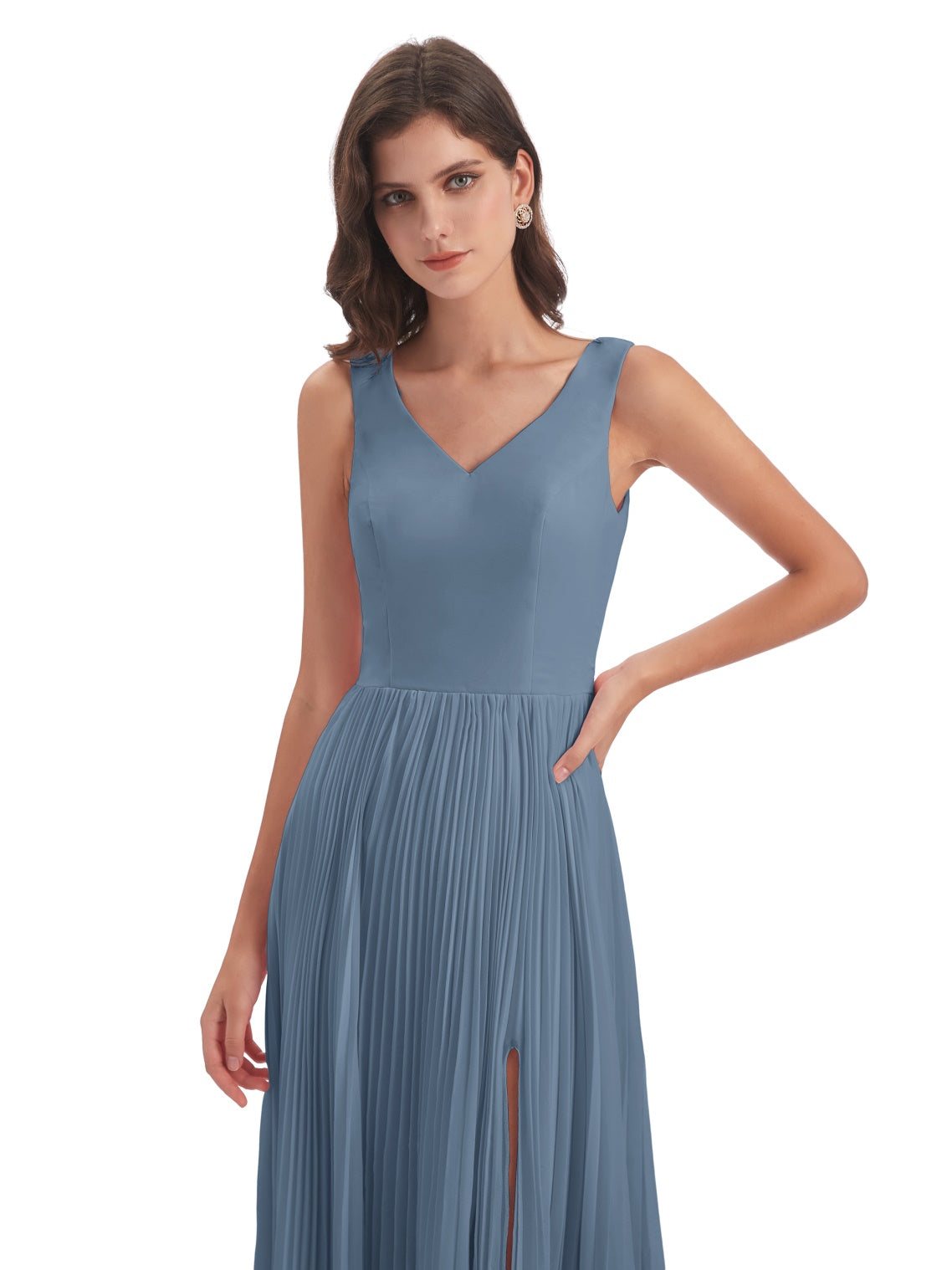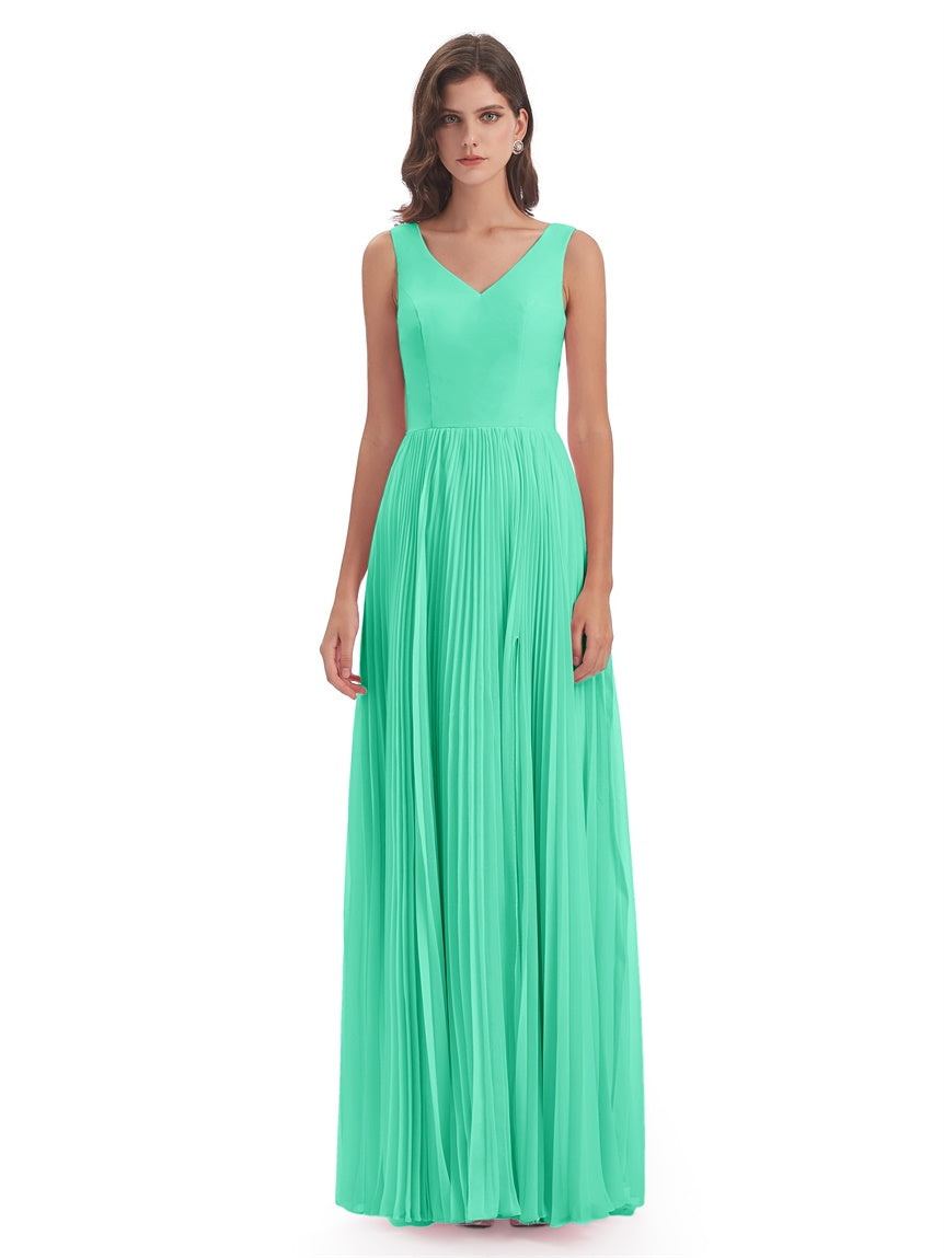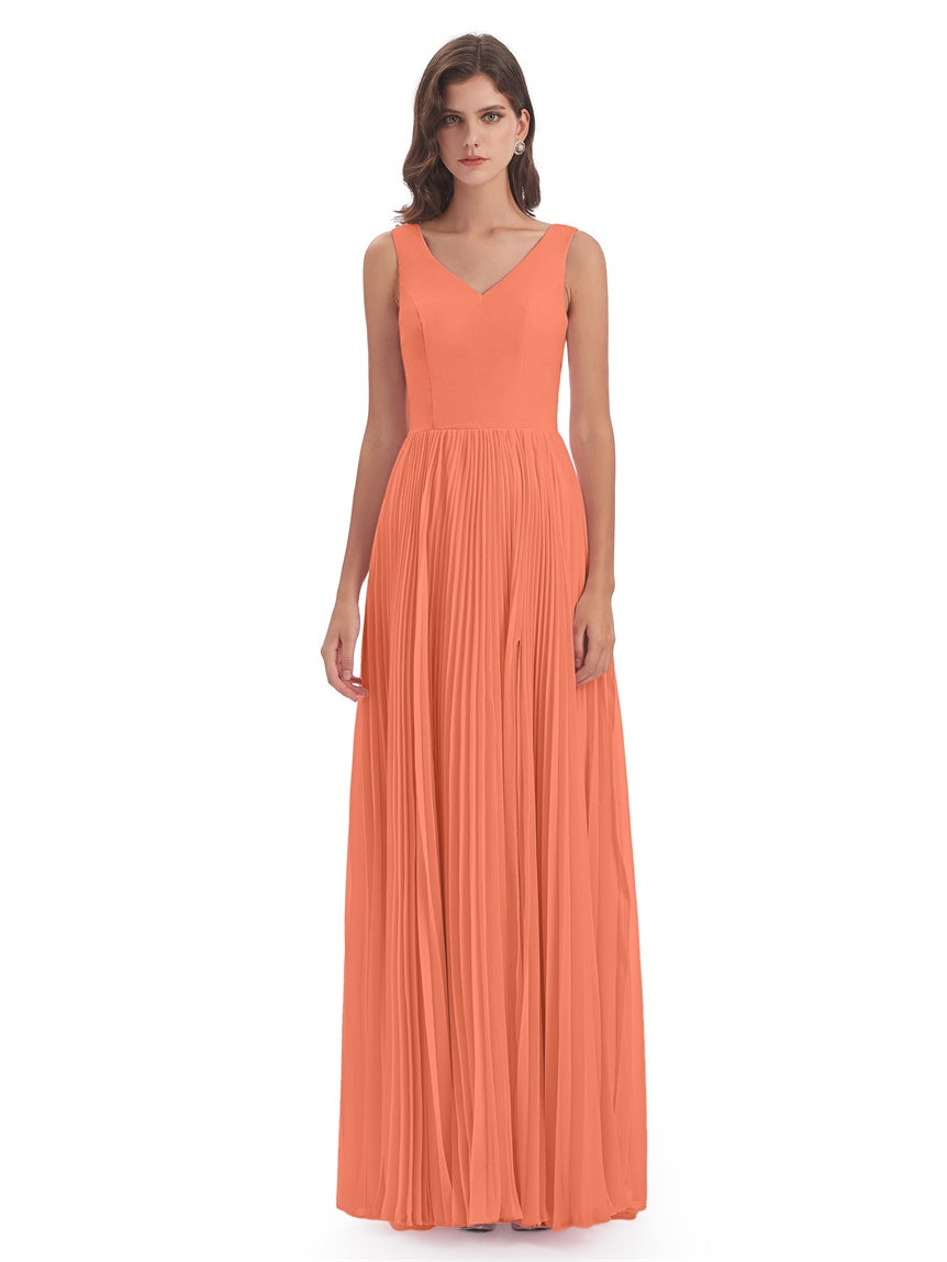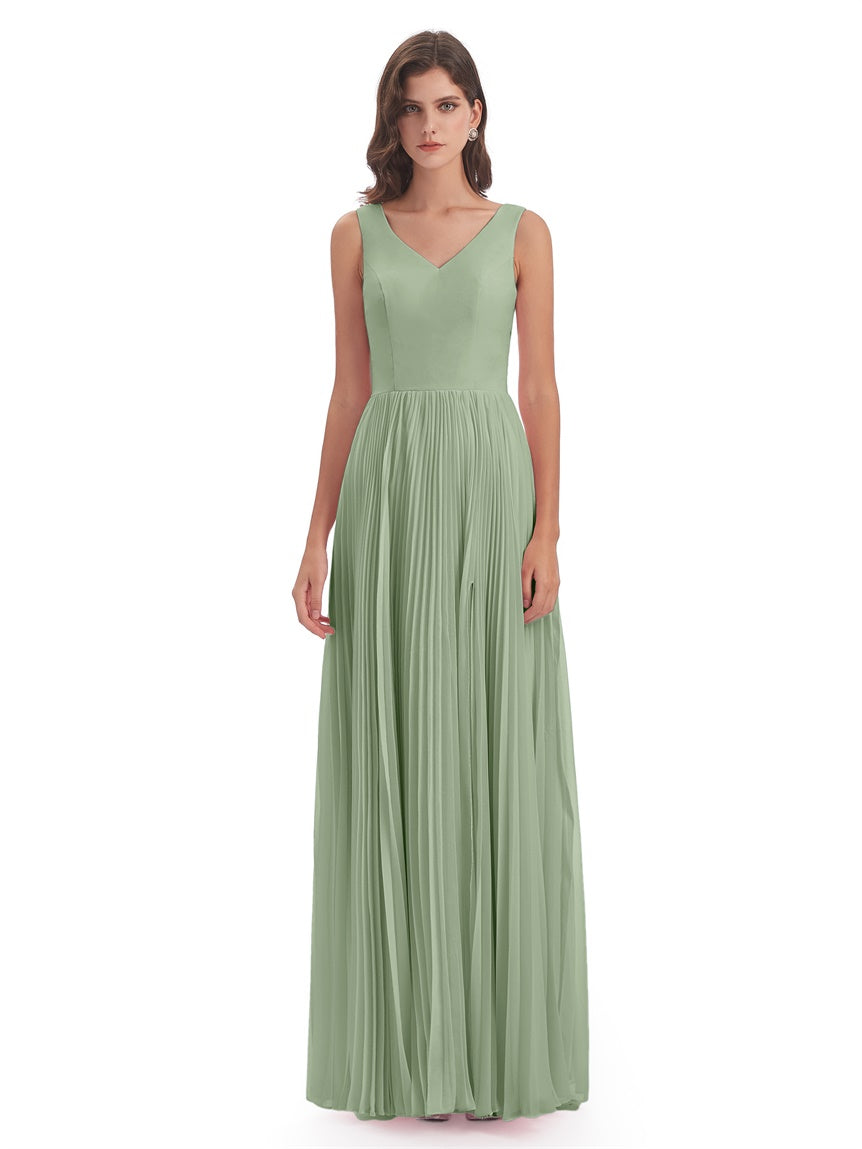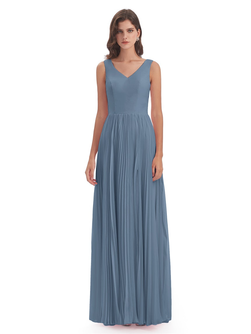 Kenya A-Linie Bodenlange V-Ausschnitt Chiffon Lange Brautjungfernkleider