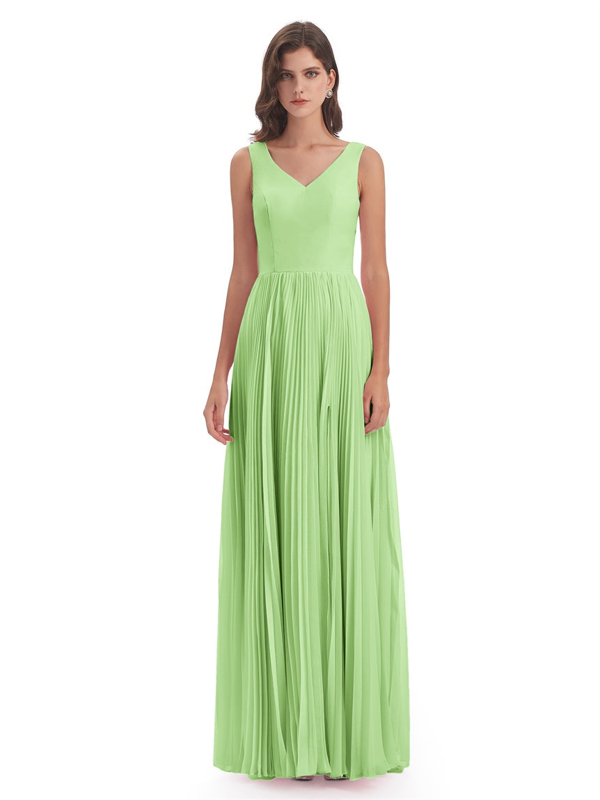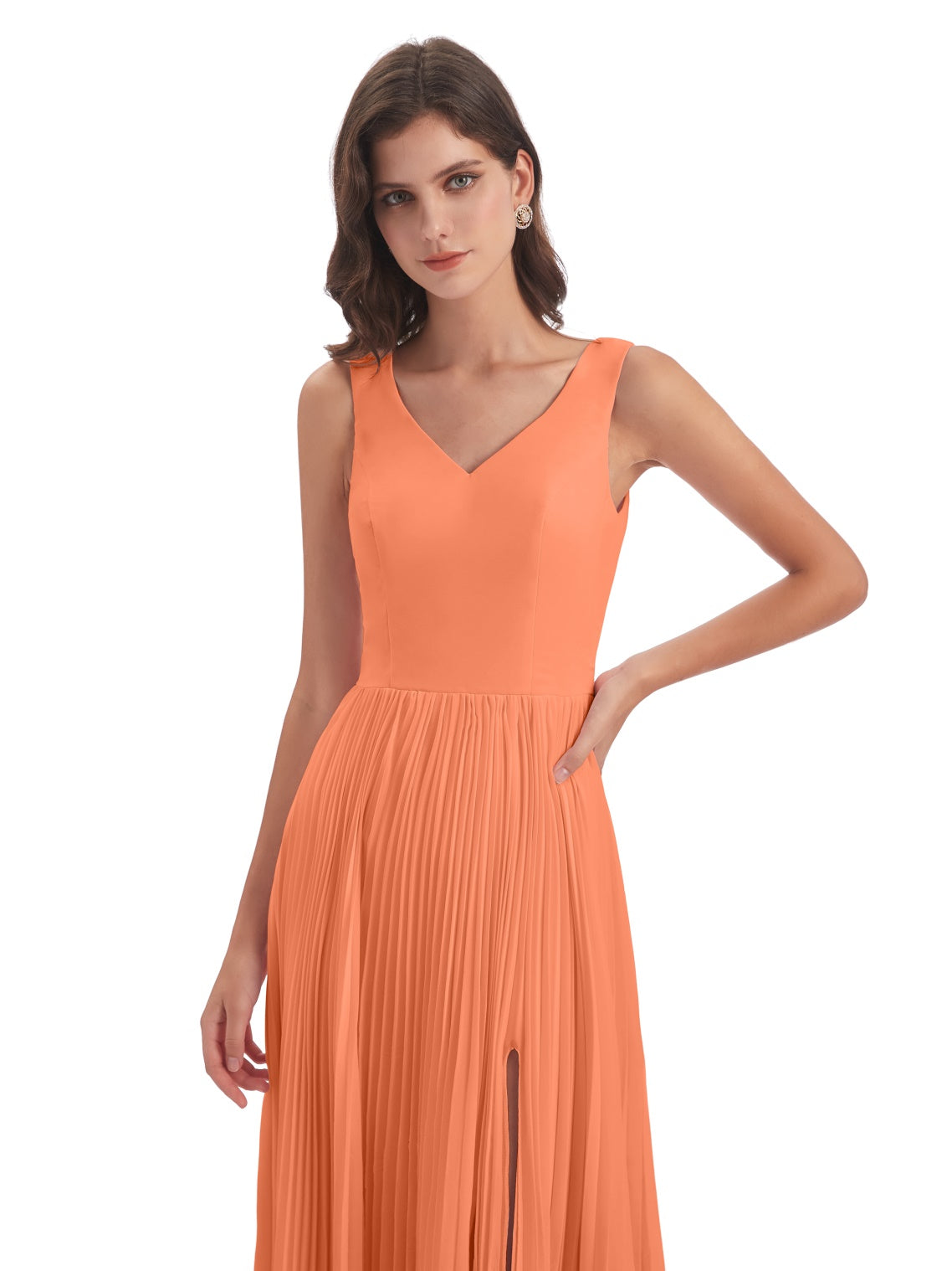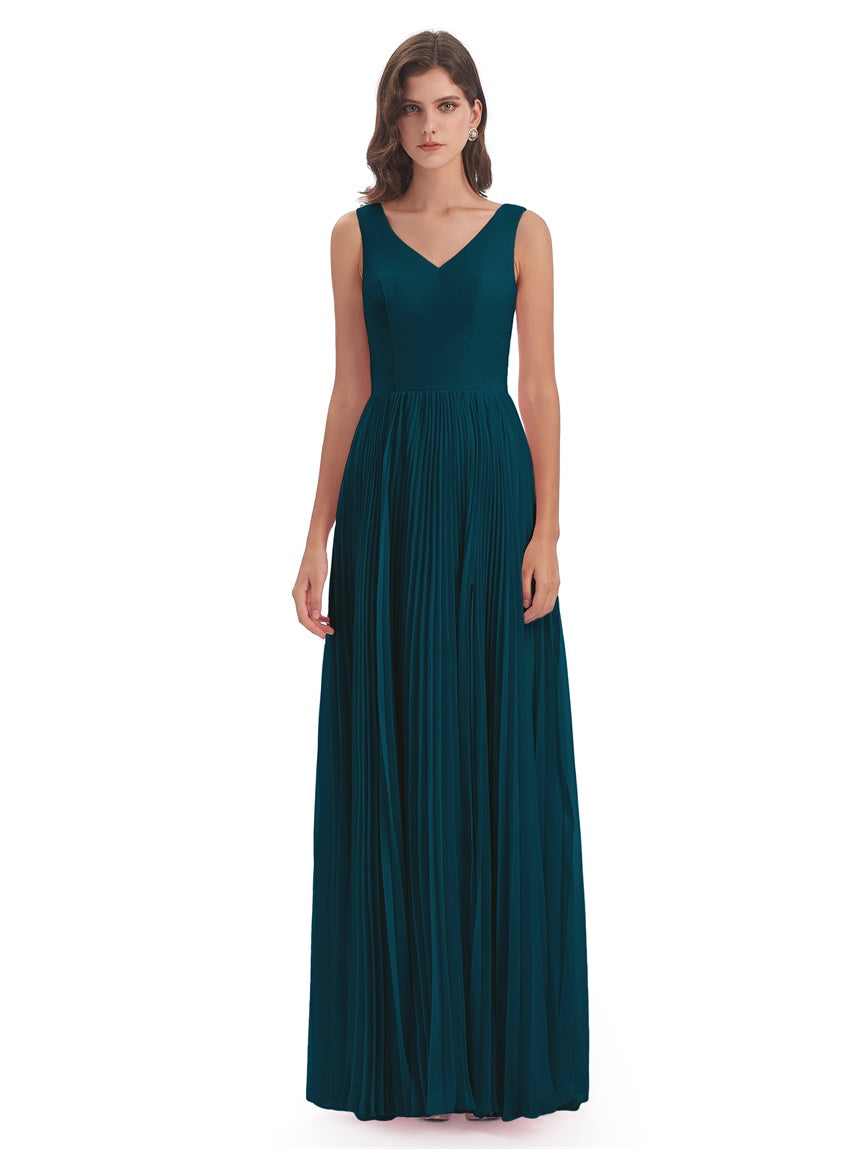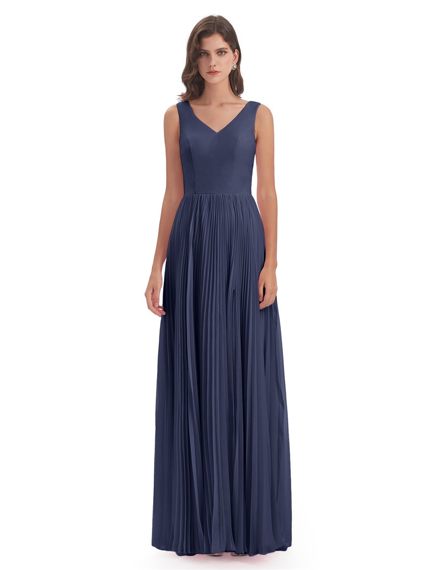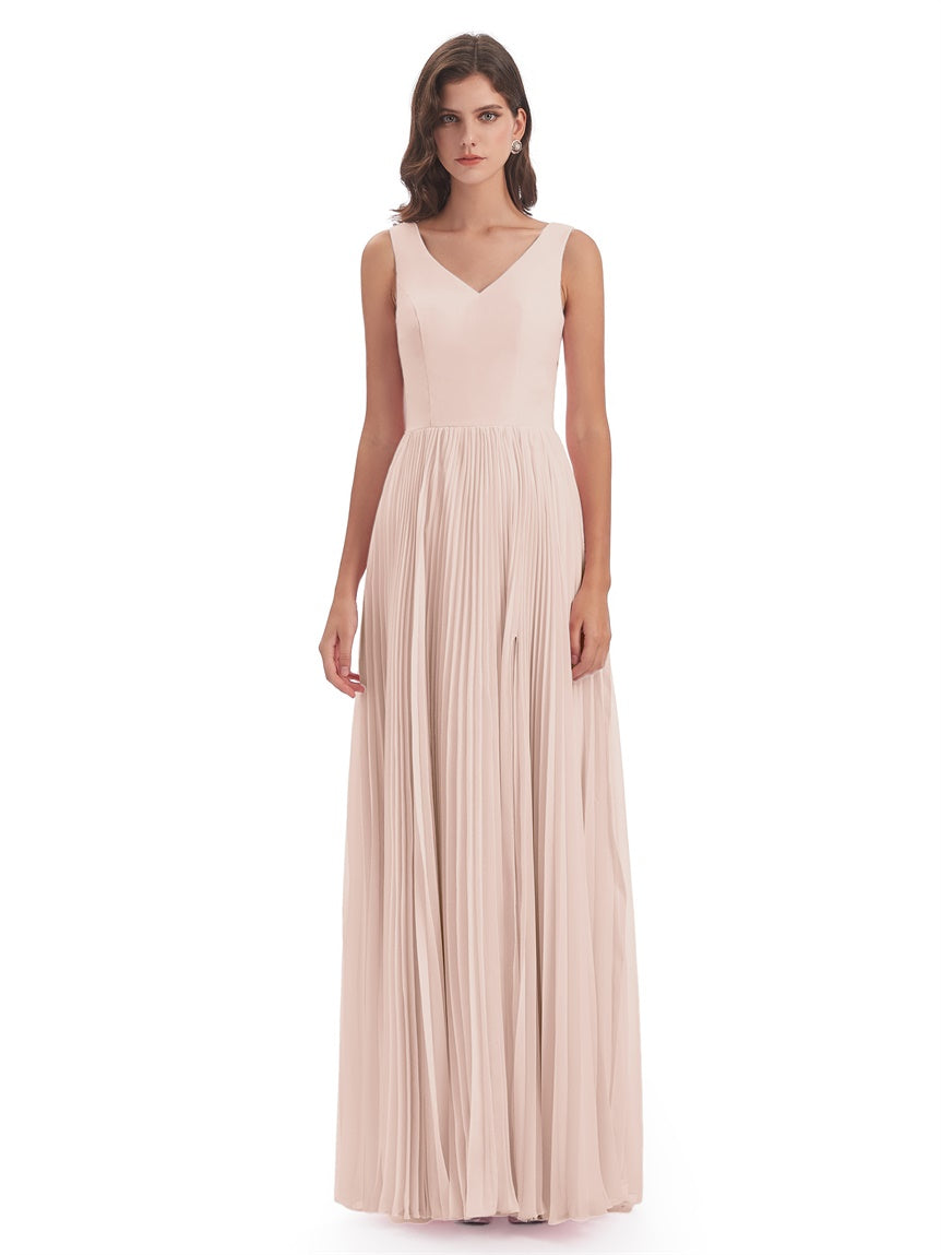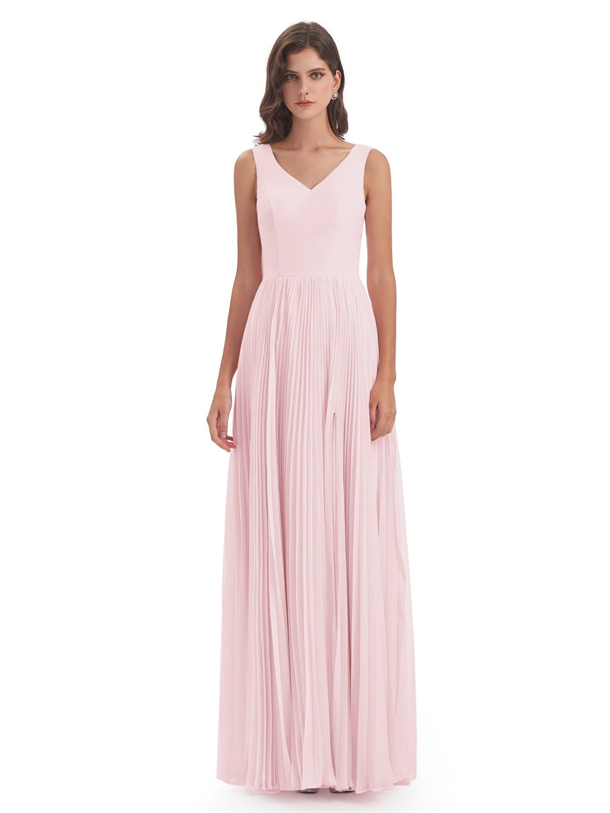 Kenya A-Linie Bodenlange V-Ausschnitt Chiffon Lange Brautjungfernkleider