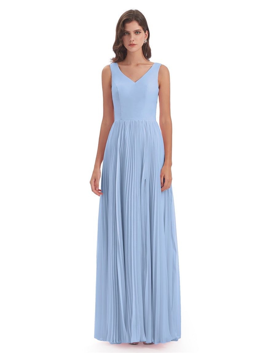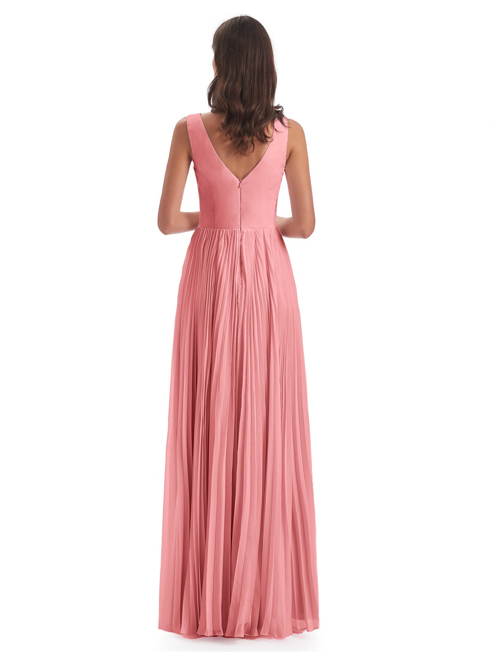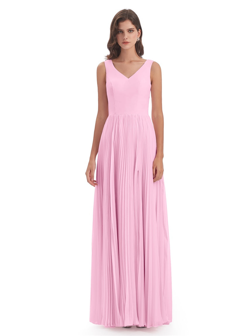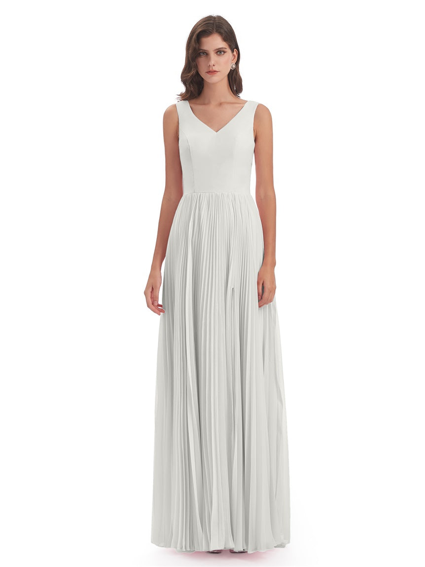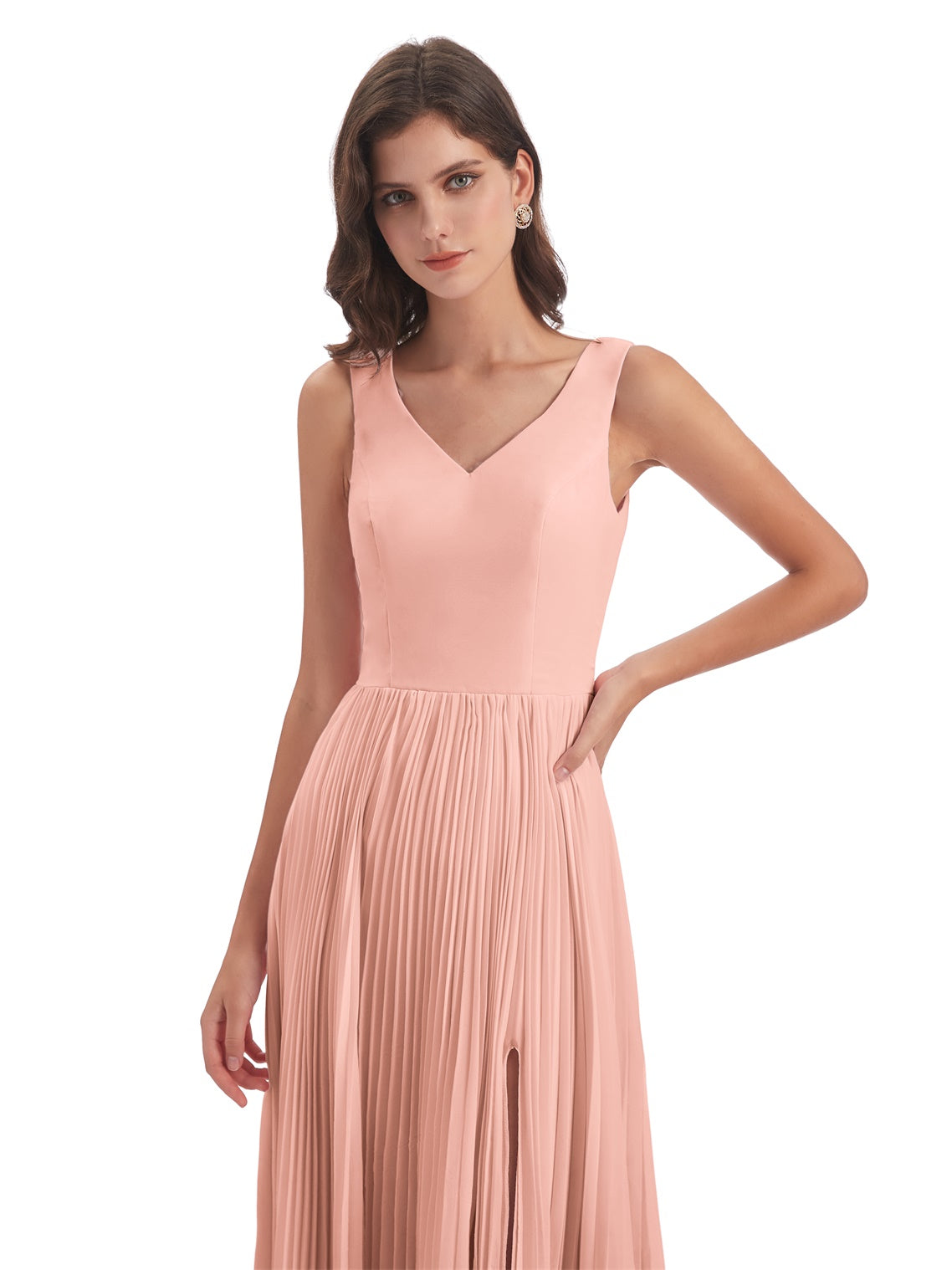 Kenya A-Linie Bodenlange V-Ausschnitt Chiffon Lange Brautjungfernkleider