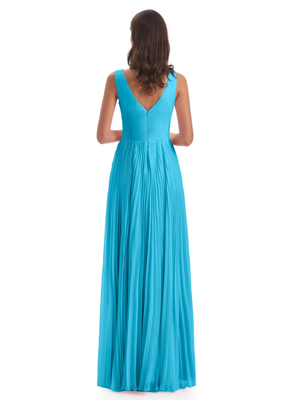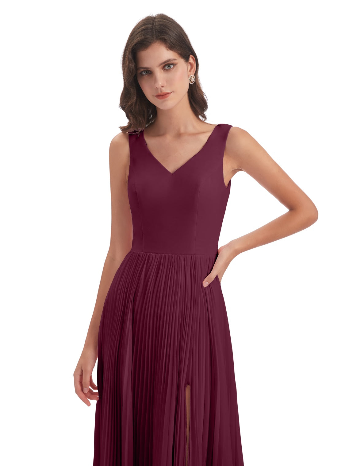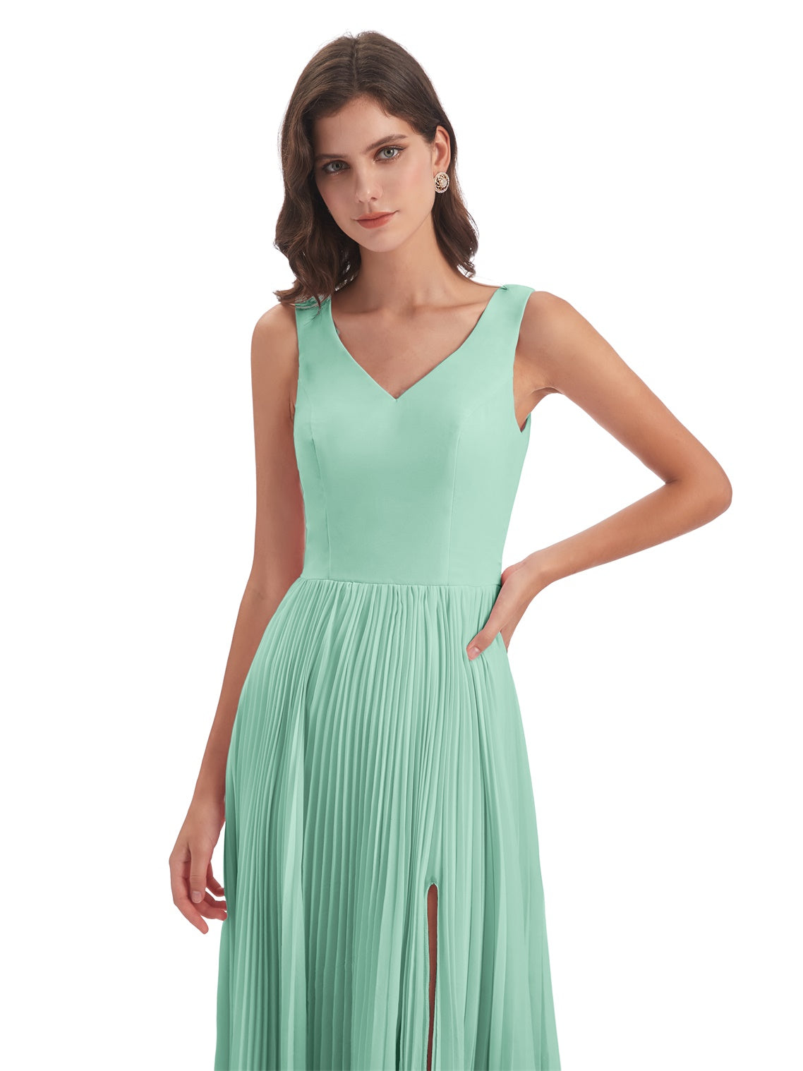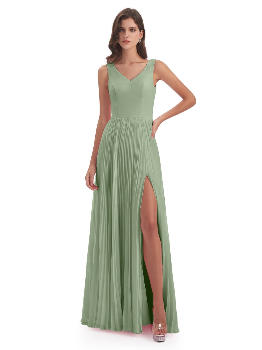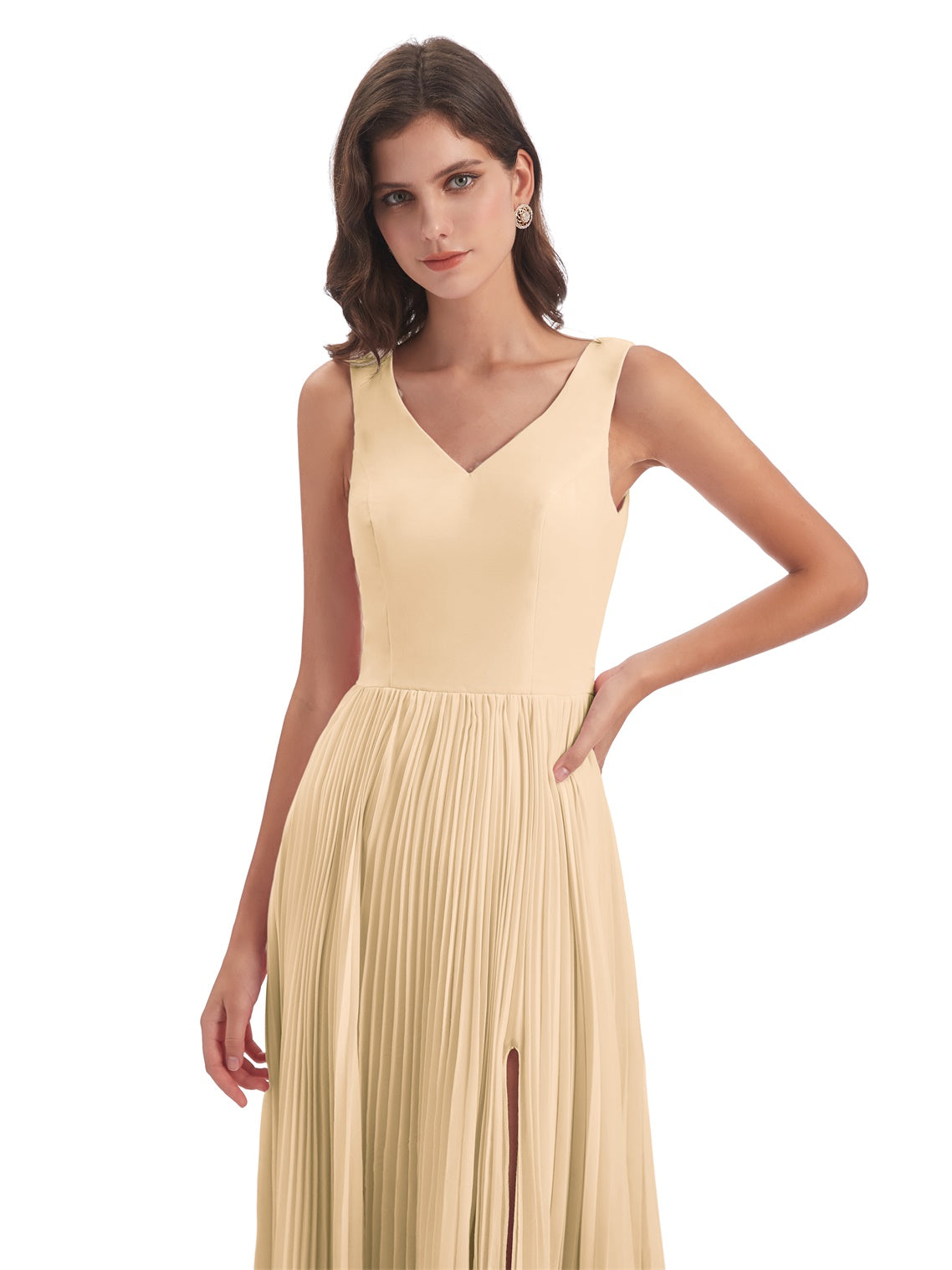 Kenya A-Linie Bodenlange V-Ausschnitt Chiffon Lange Brautjungfernkleider