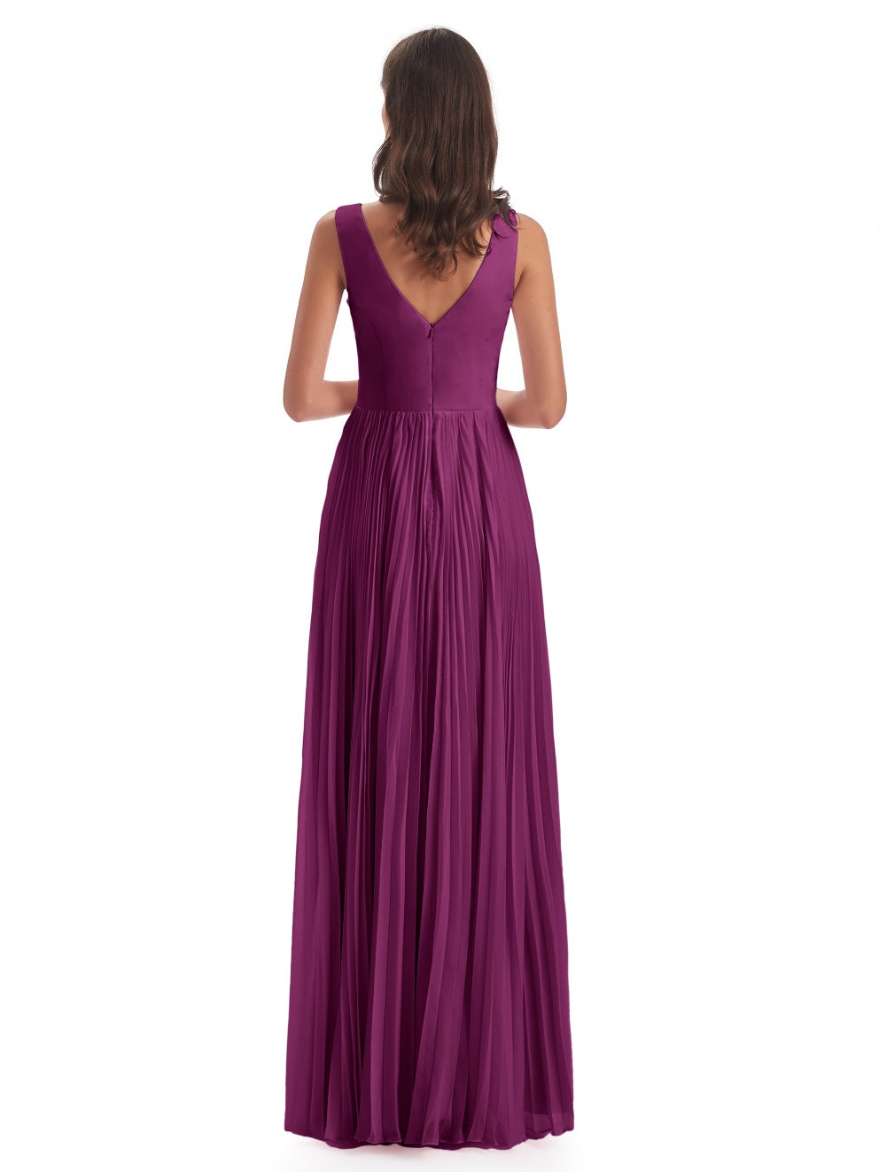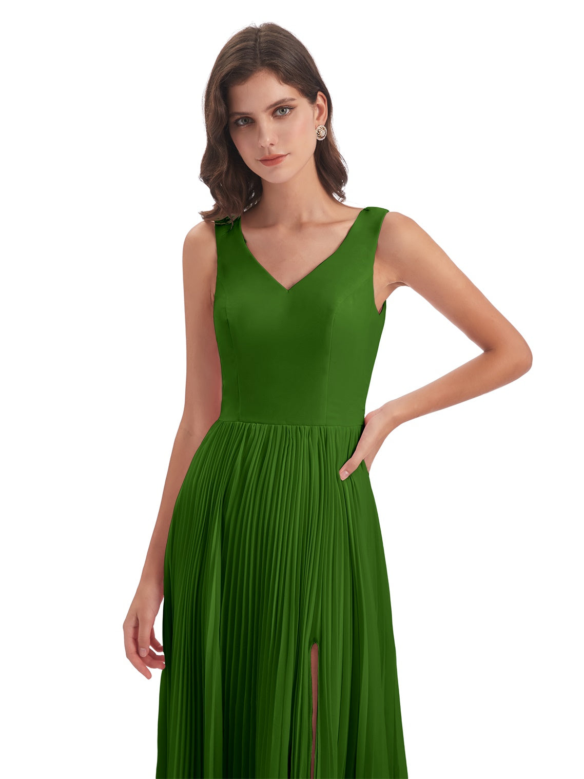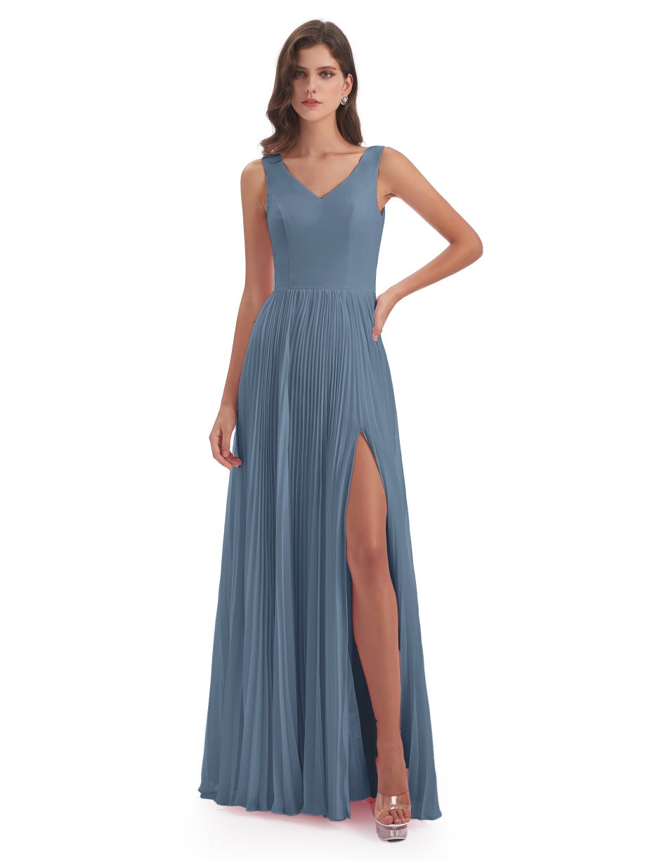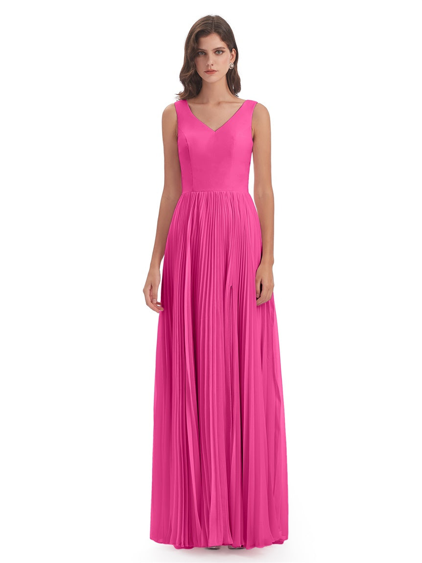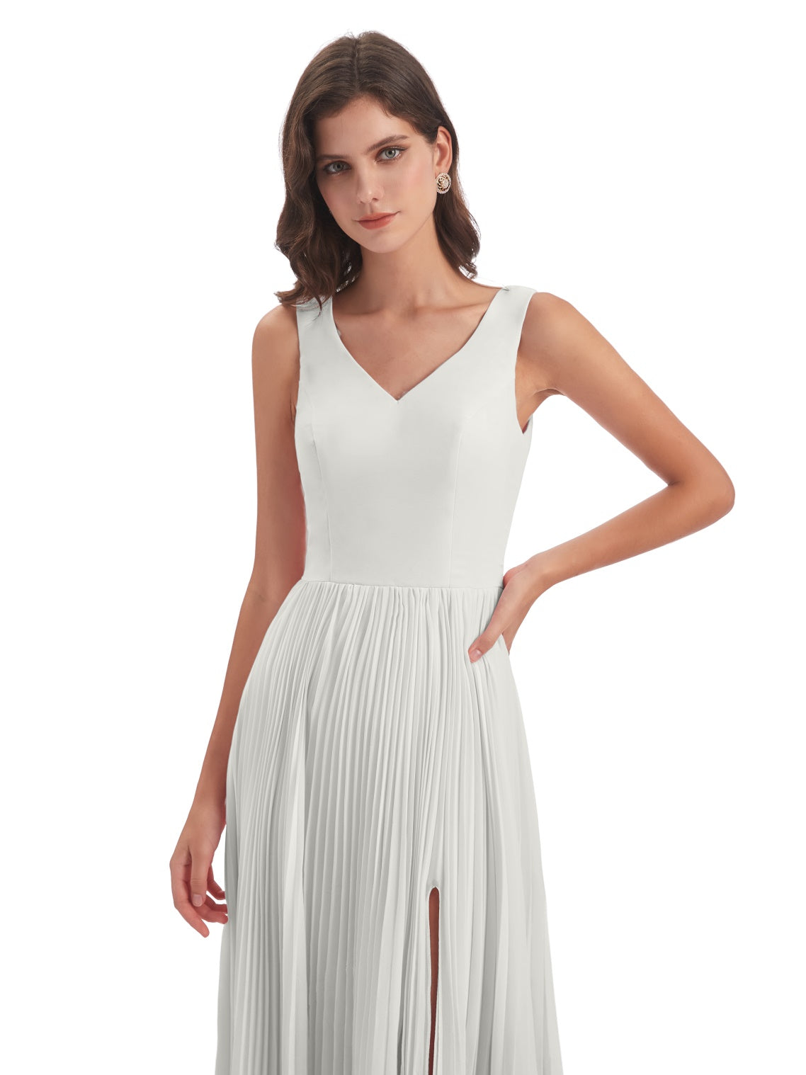 Kenya A-Linie Bodenlange V-Ausschnitt Chiffon Lange Brautjungfernkleider