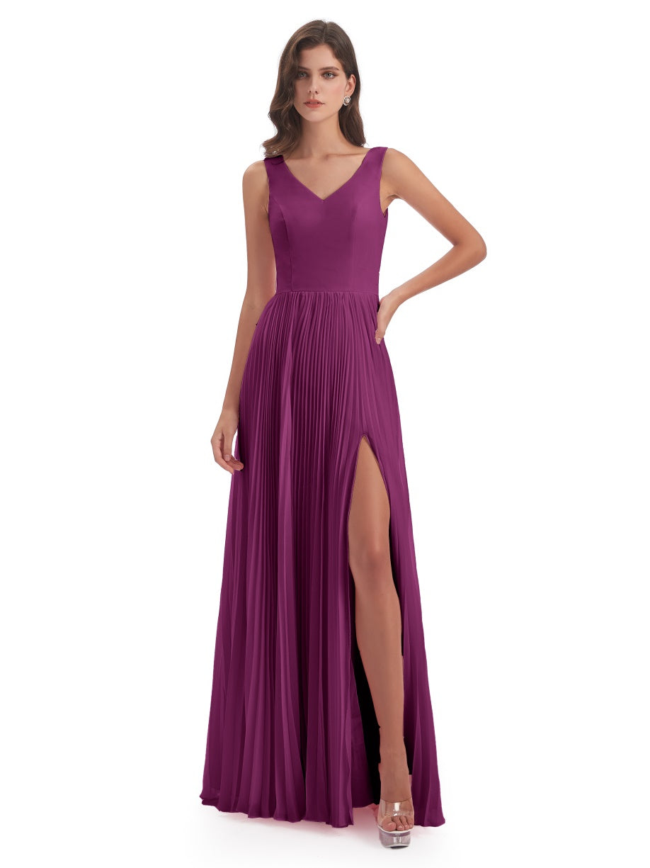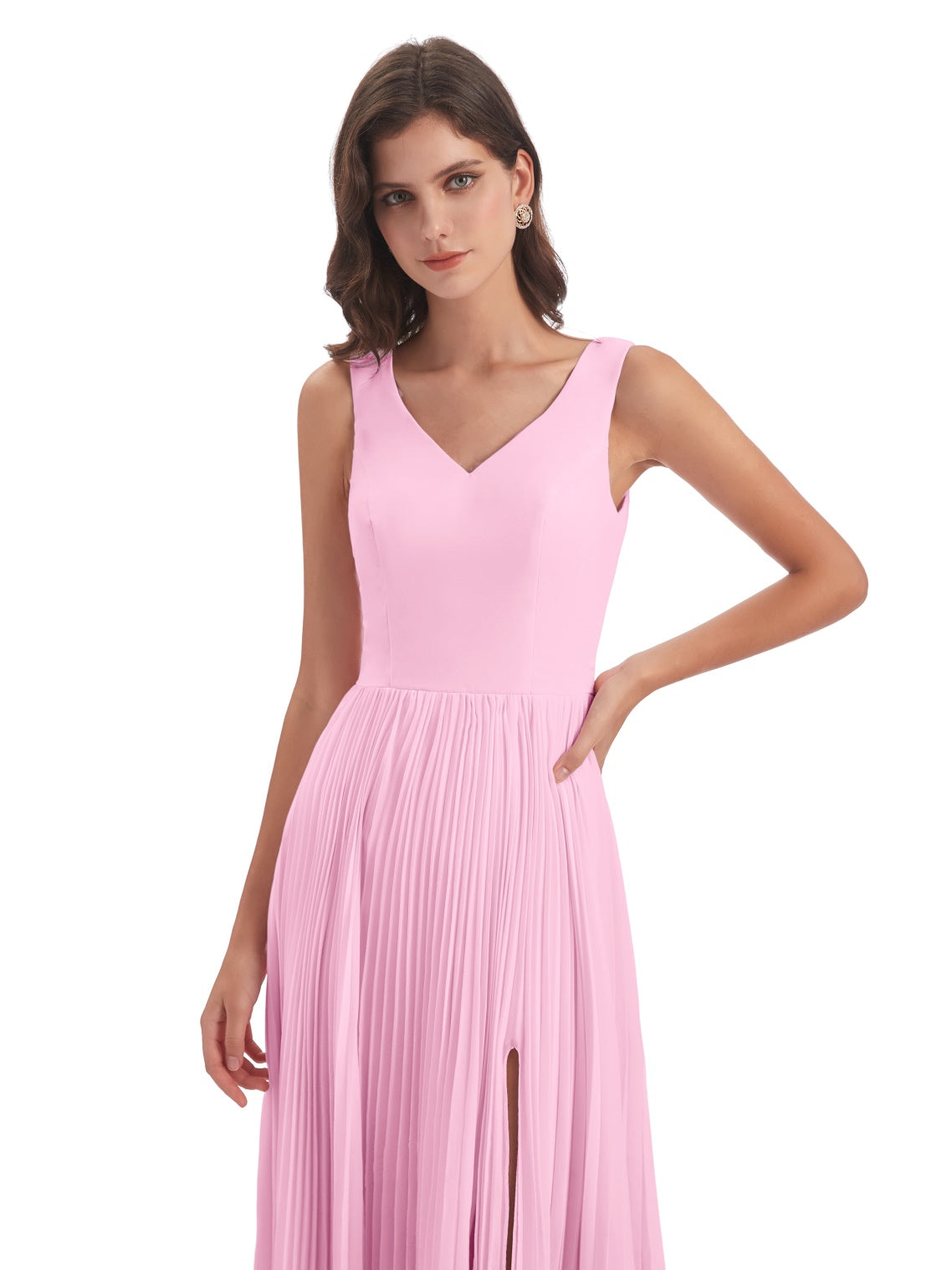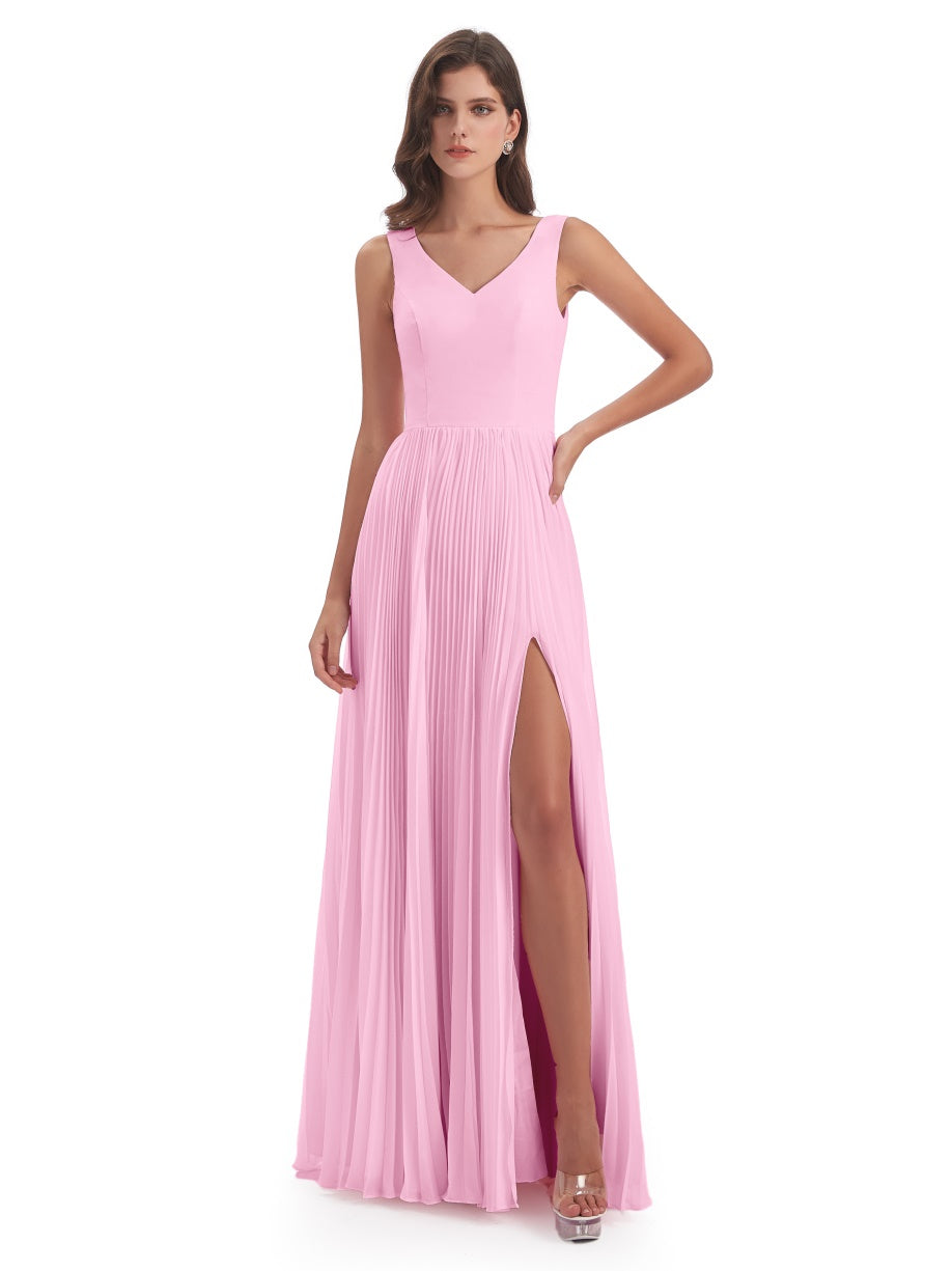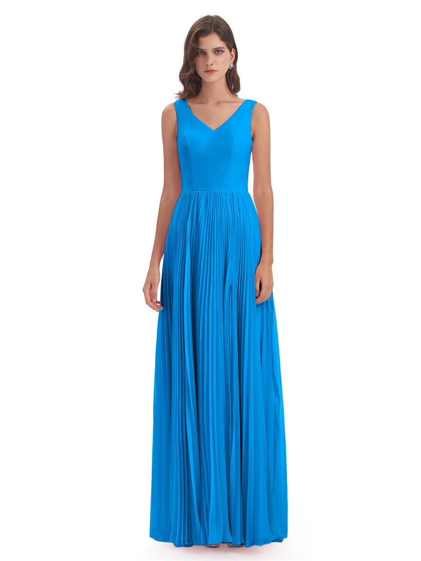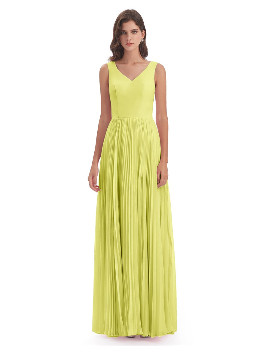 Kenya A-Linie Bodenlange V-Ausschnitt Chiffon Lange Brautjungfernkleider