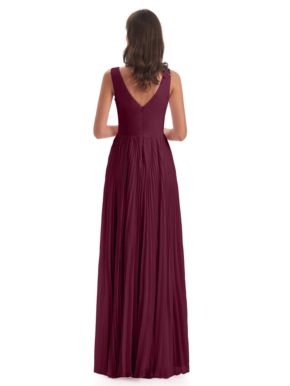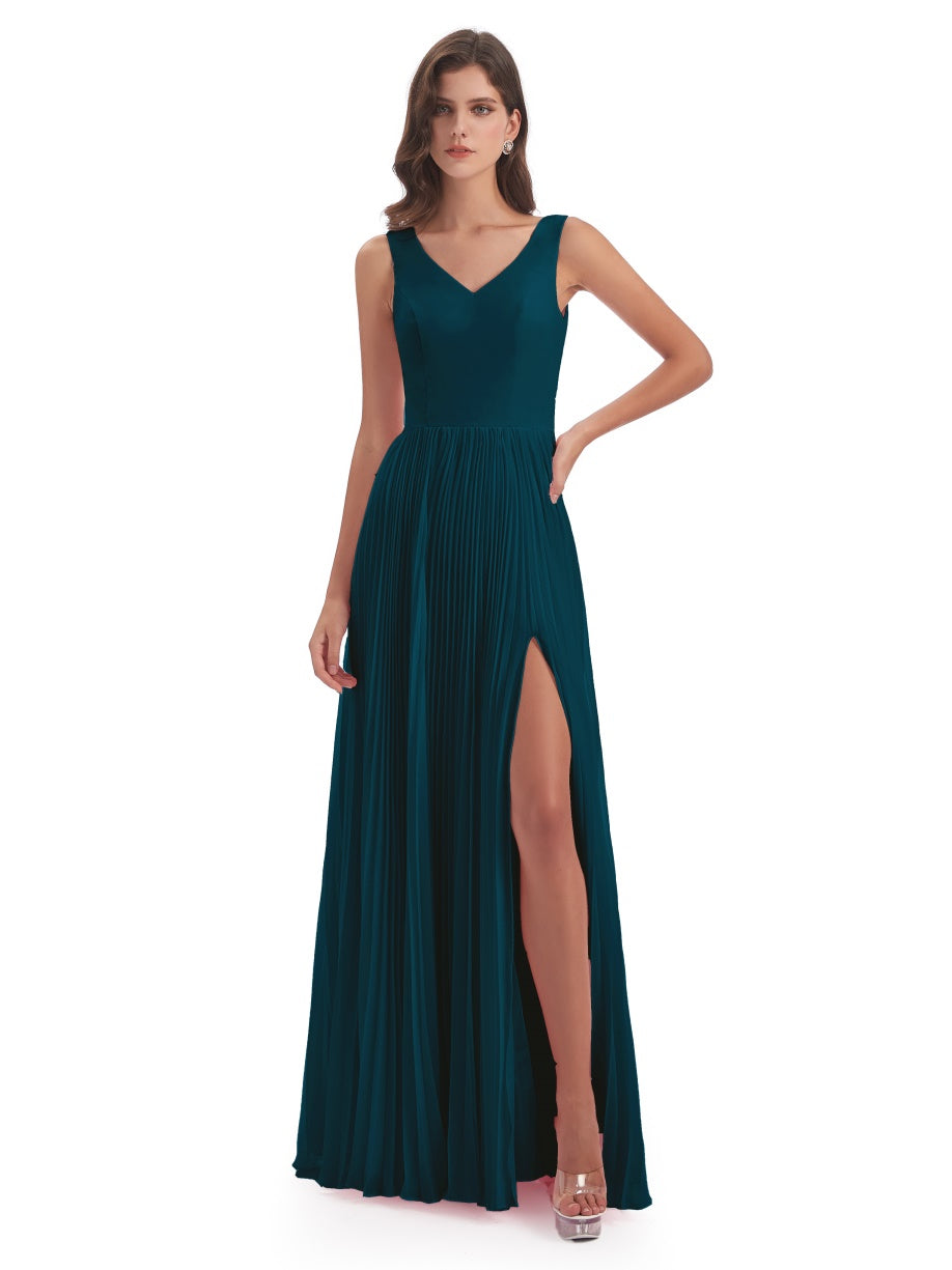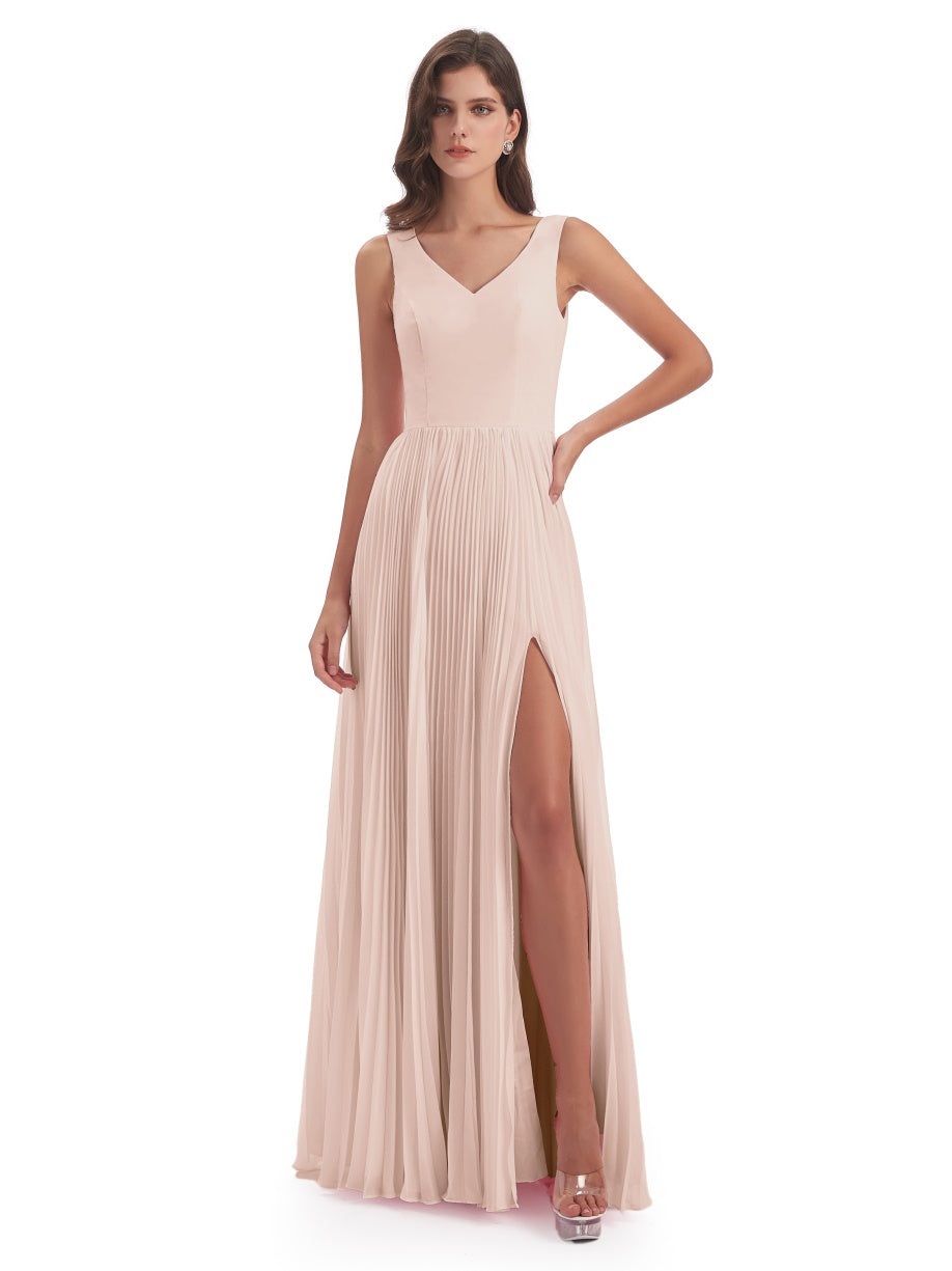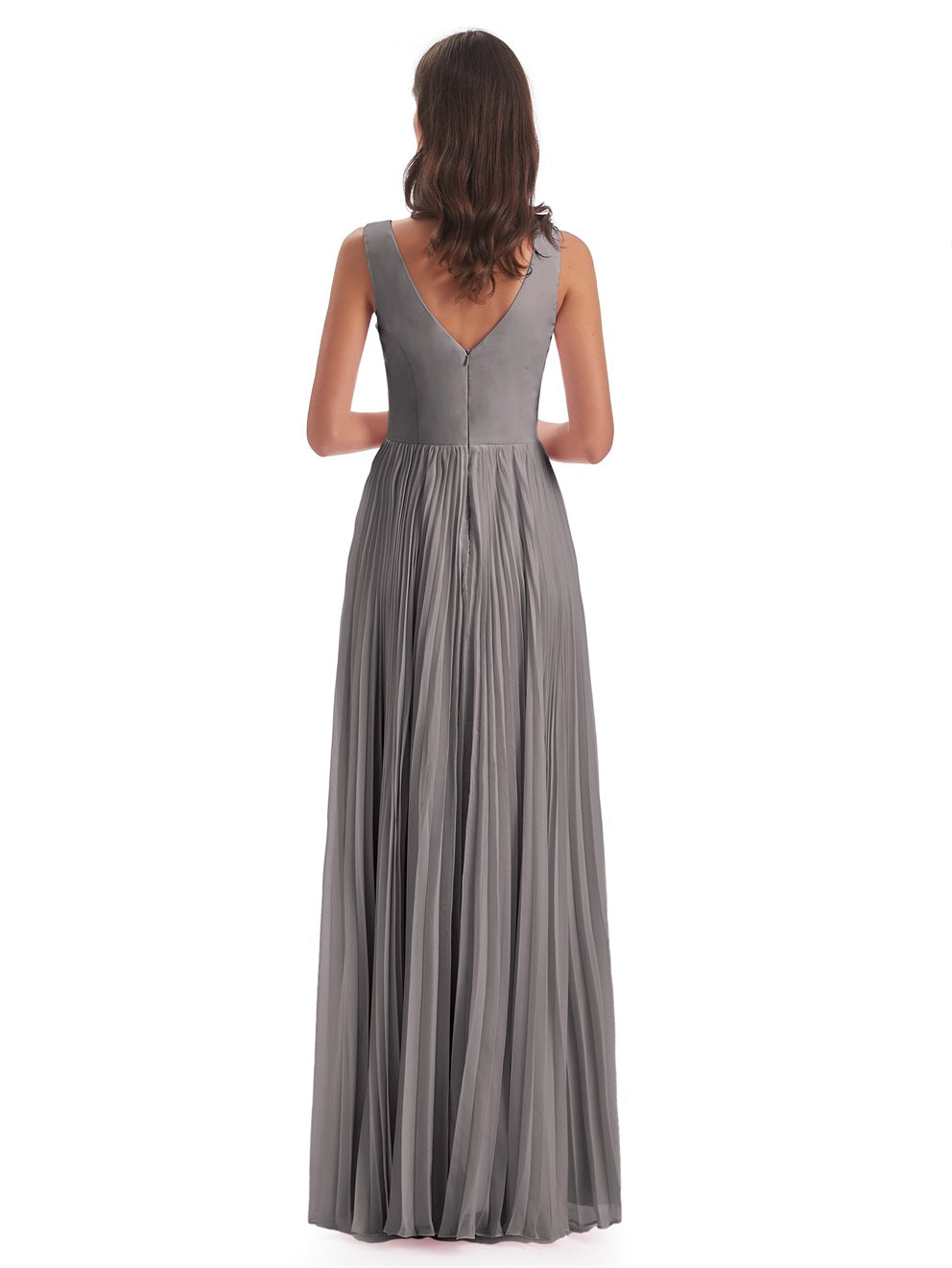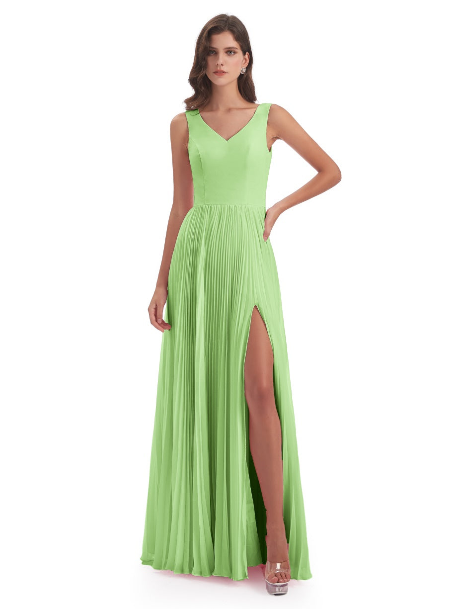 Kenya A-Linie Bodenlange V-Ausschnitt Chiffon Lange Brautjungfernkleider