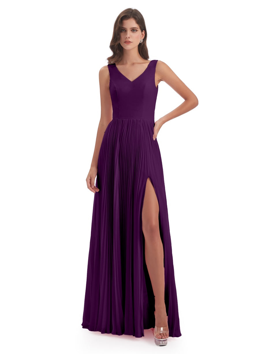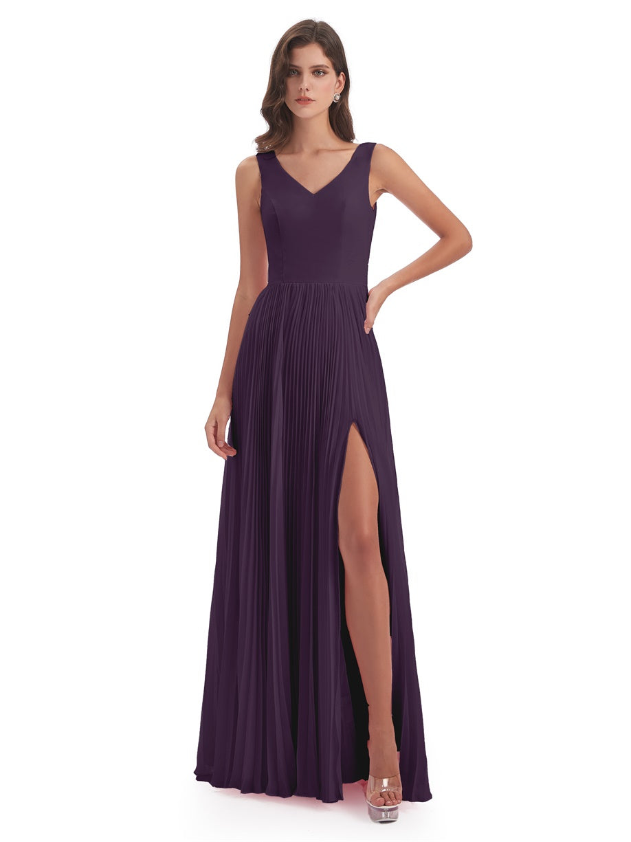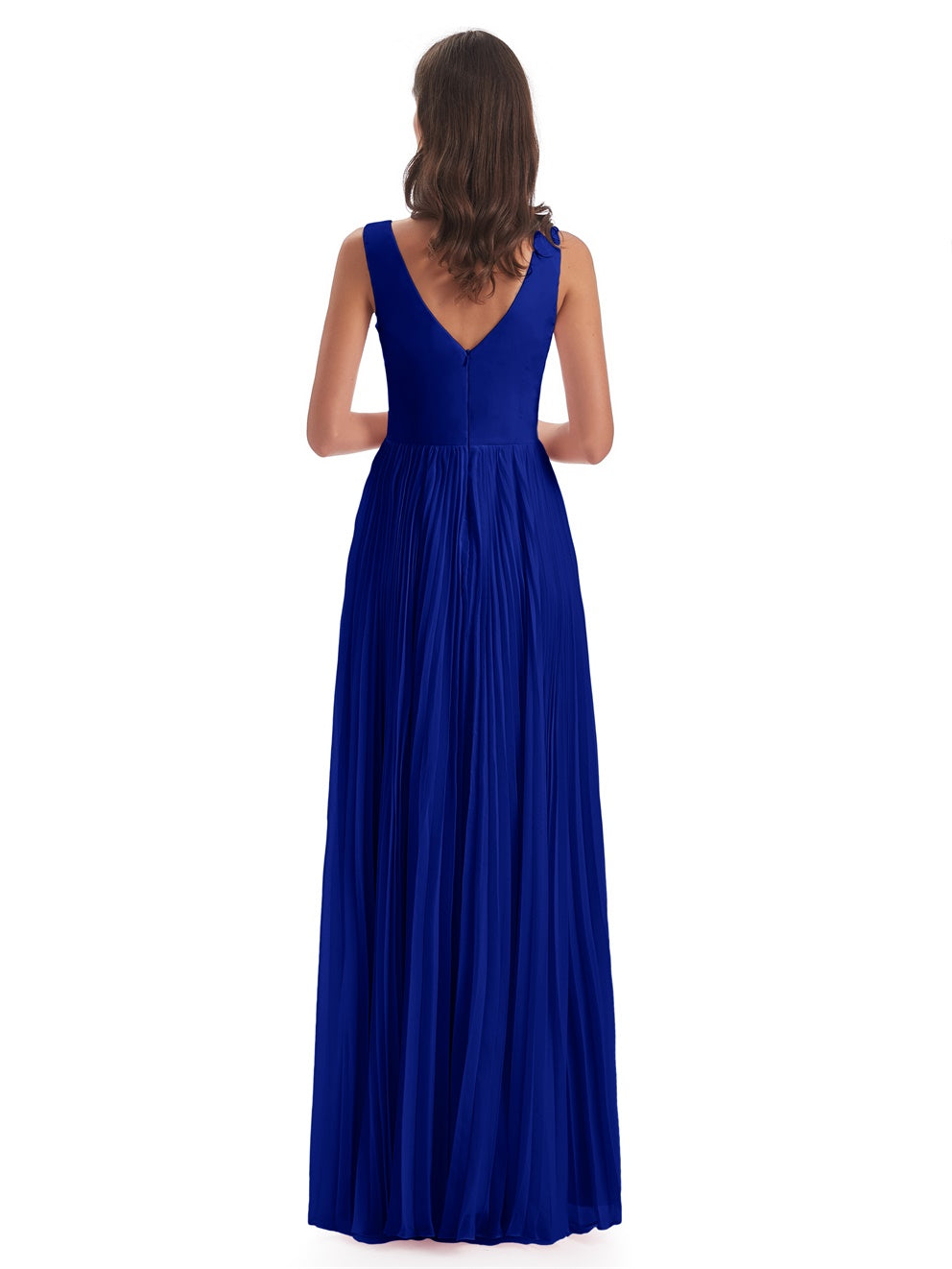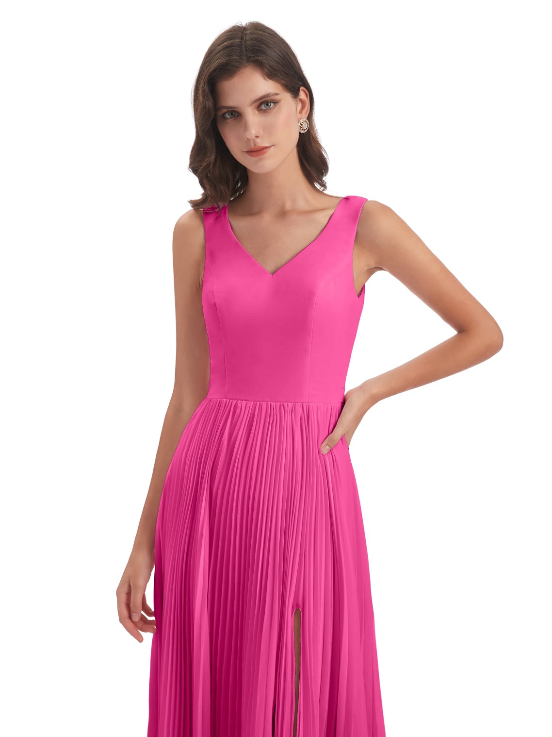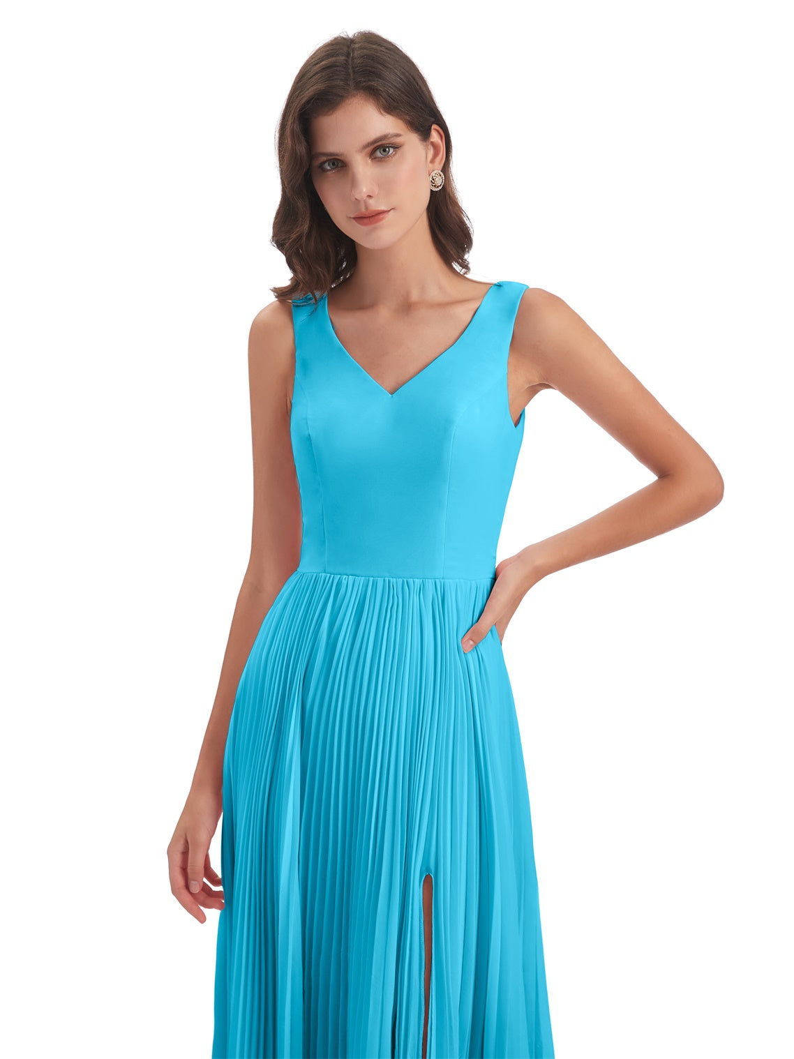 Kenya A-Linie Bodenlange V-Ausschnitt Chiffon Lange Brautjungfernkleider