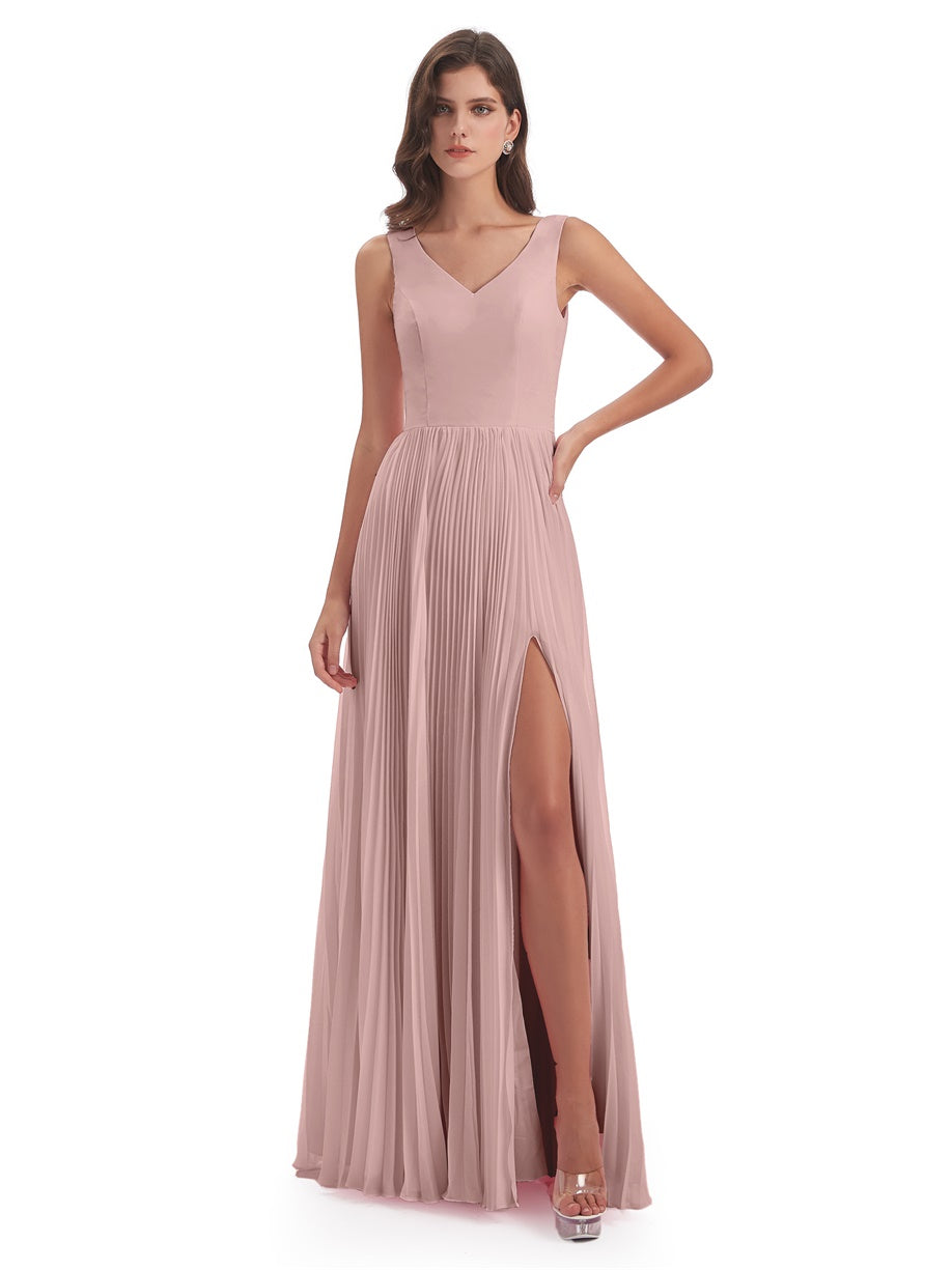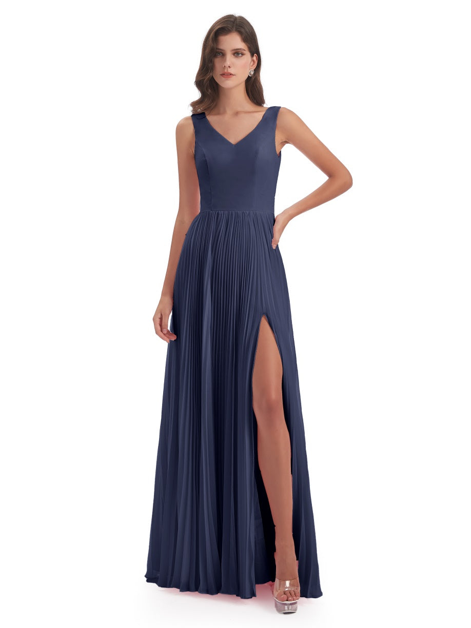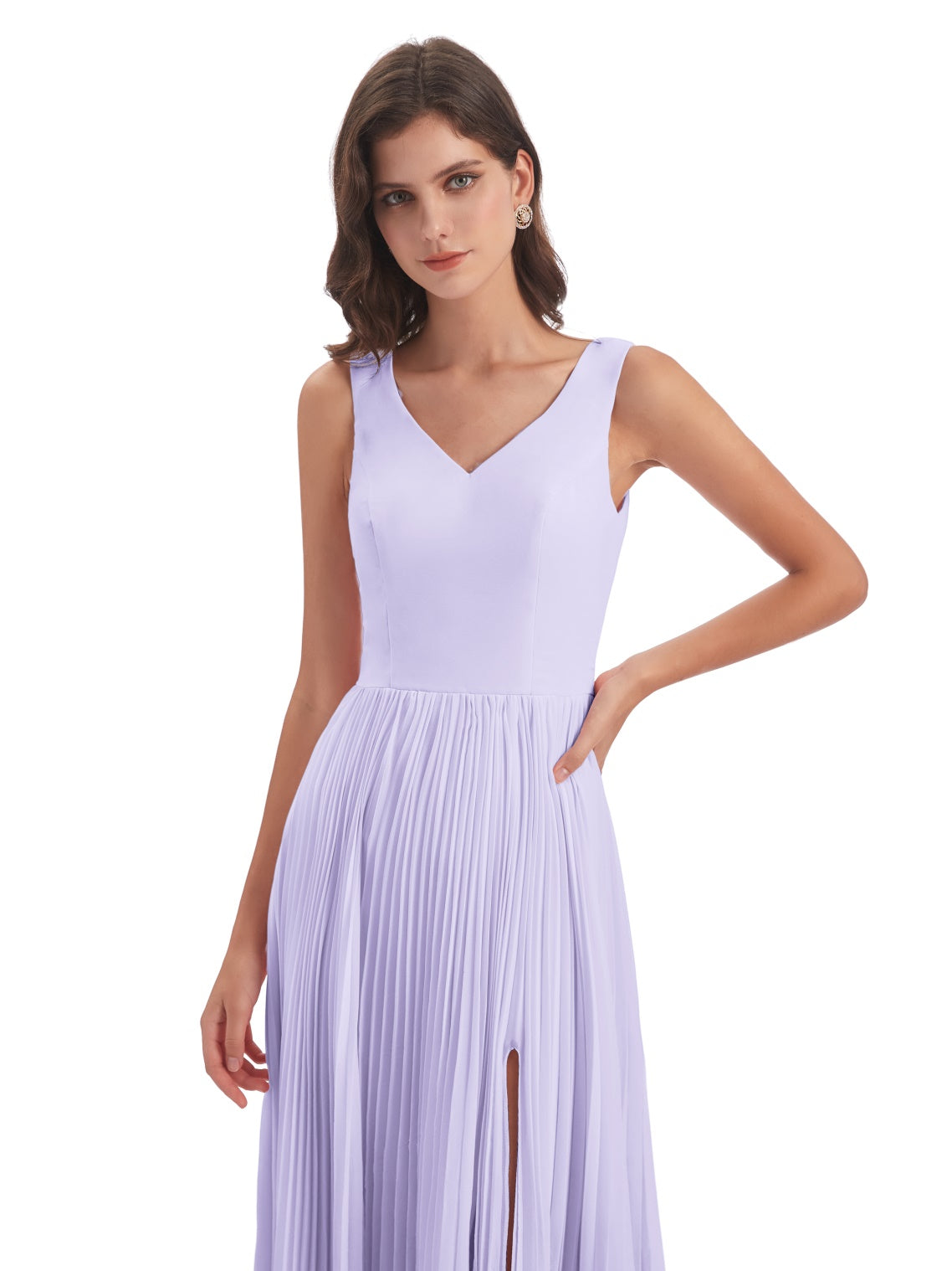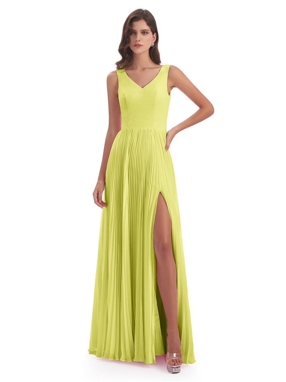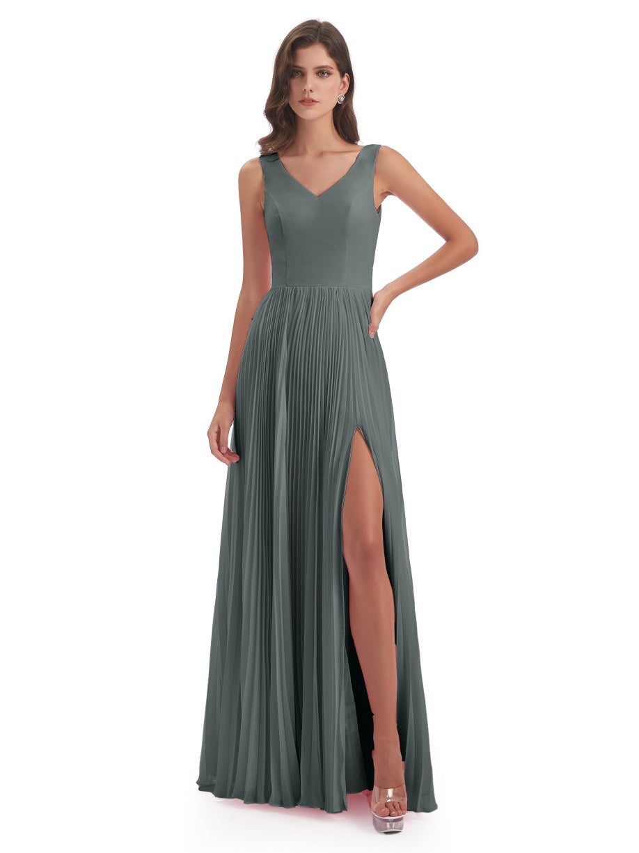 Kenya A-Linie Bodenlange V-Ausschnitt Chiffon Lange Brautjungfernkleider