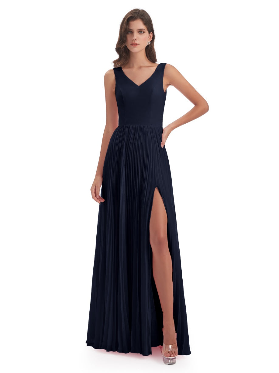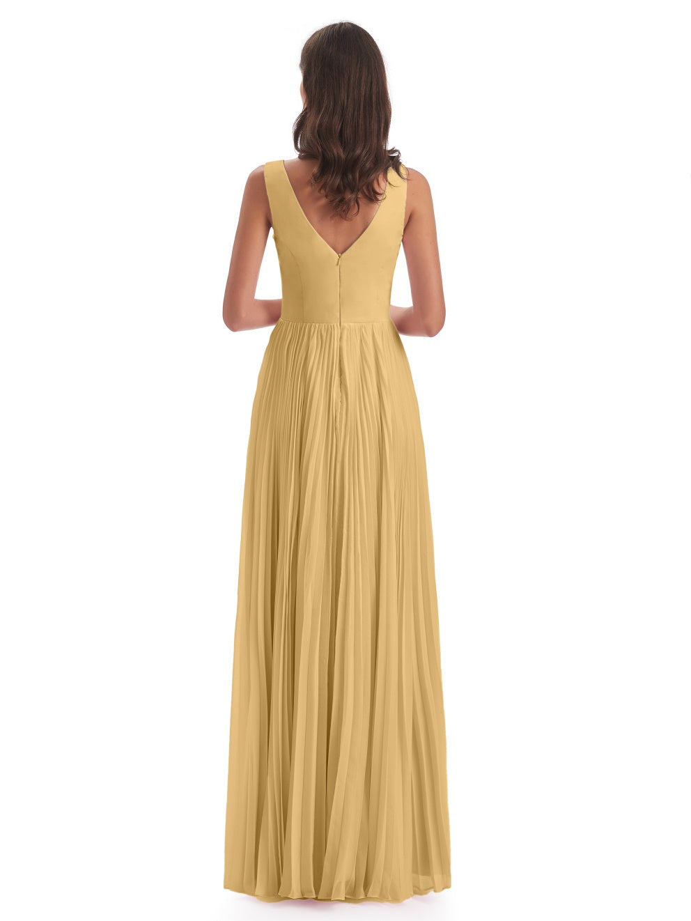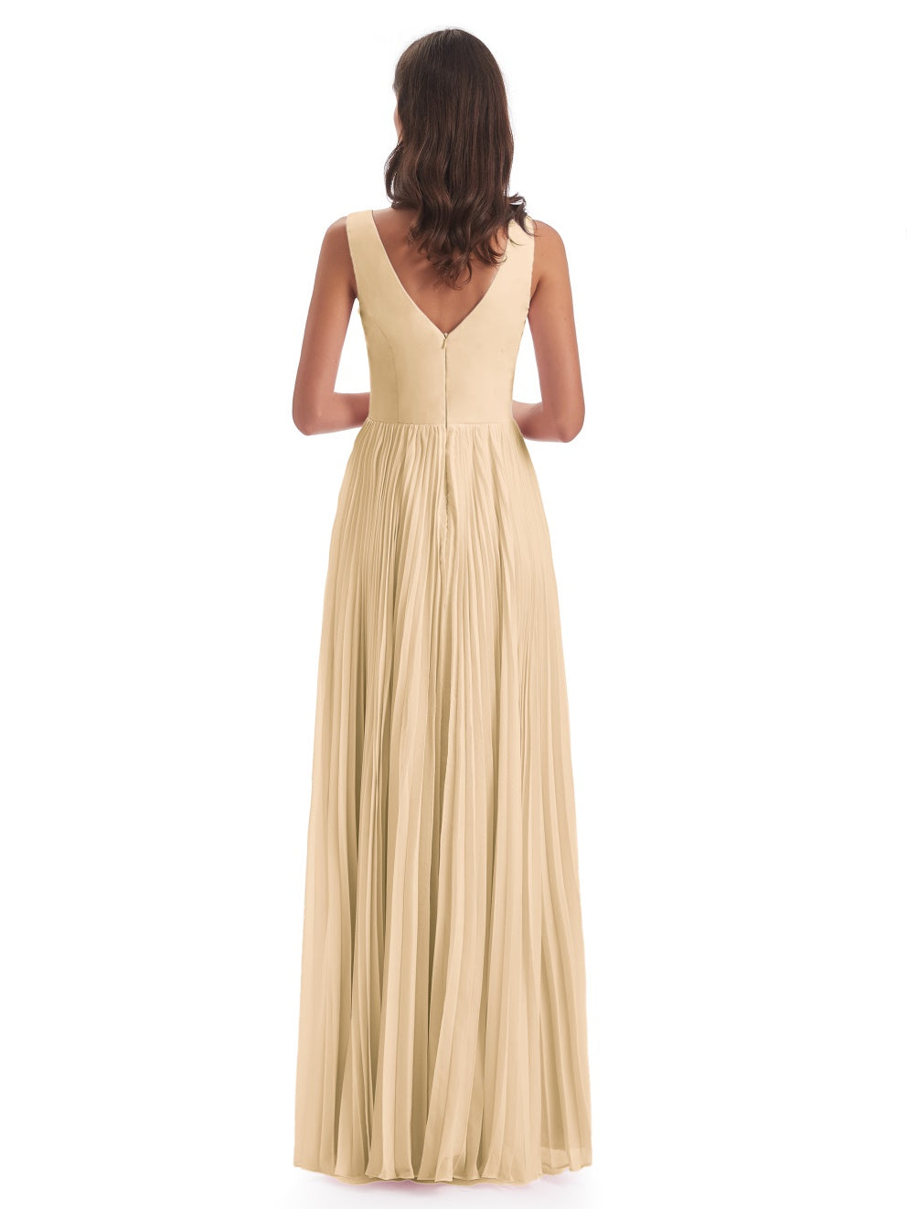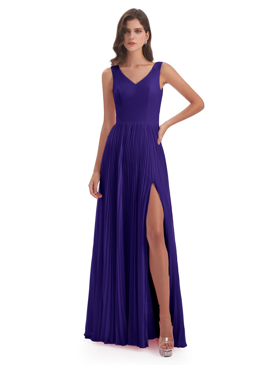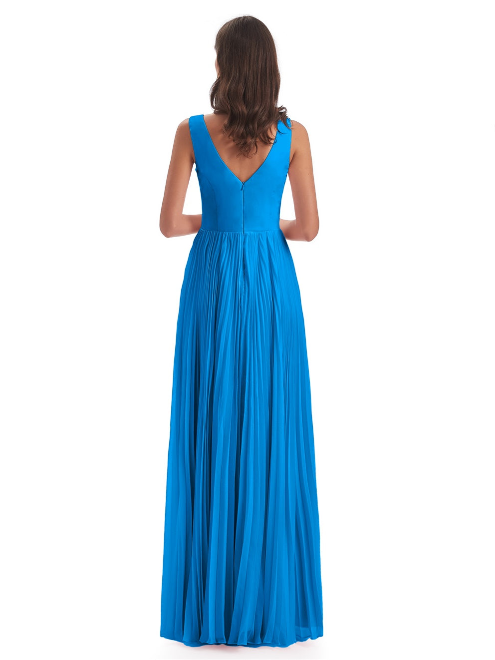 Kenya A-Linie Bodenlange V-Ausschnitt Chiffon Lange Brautjungfernkleider