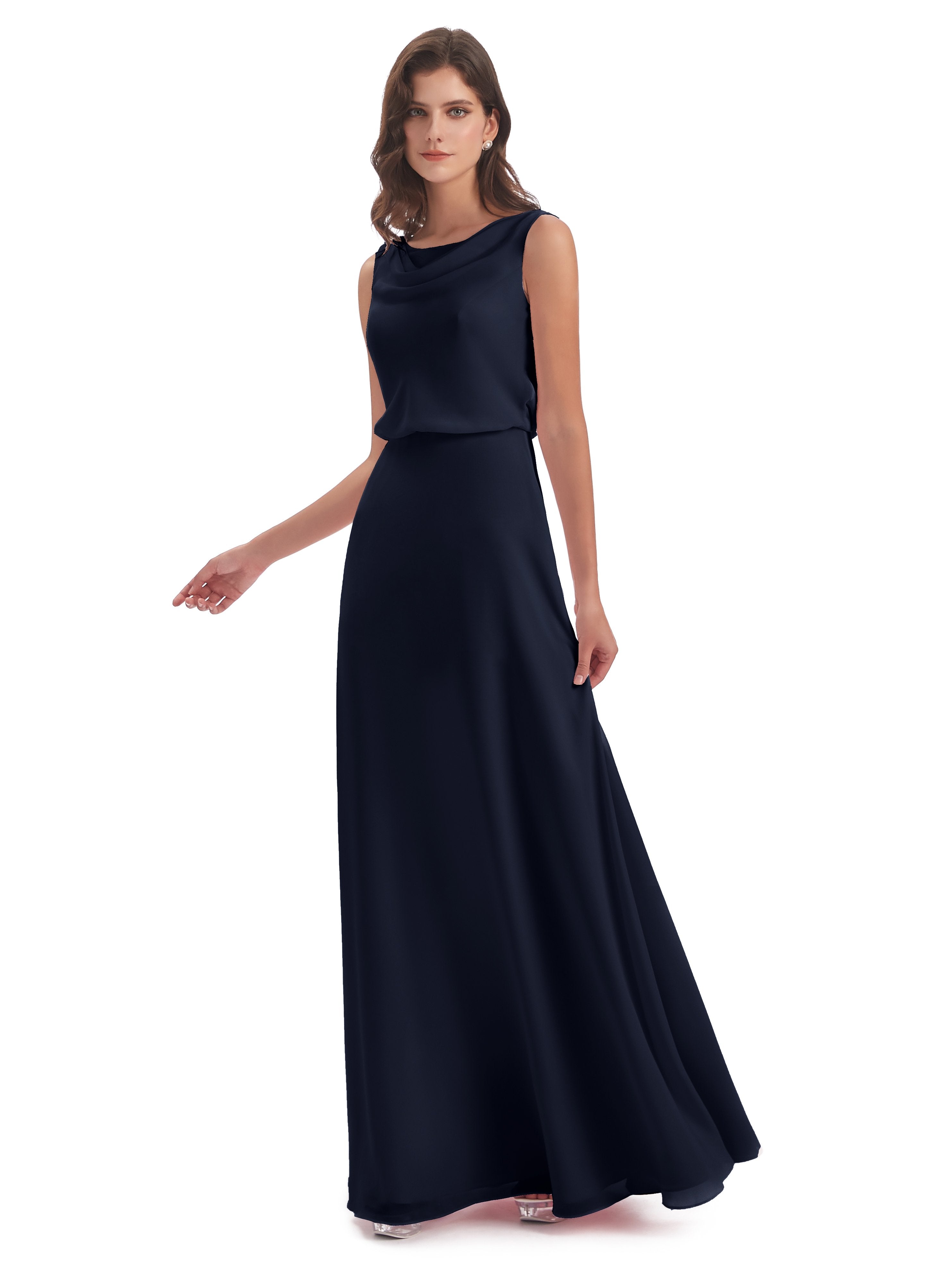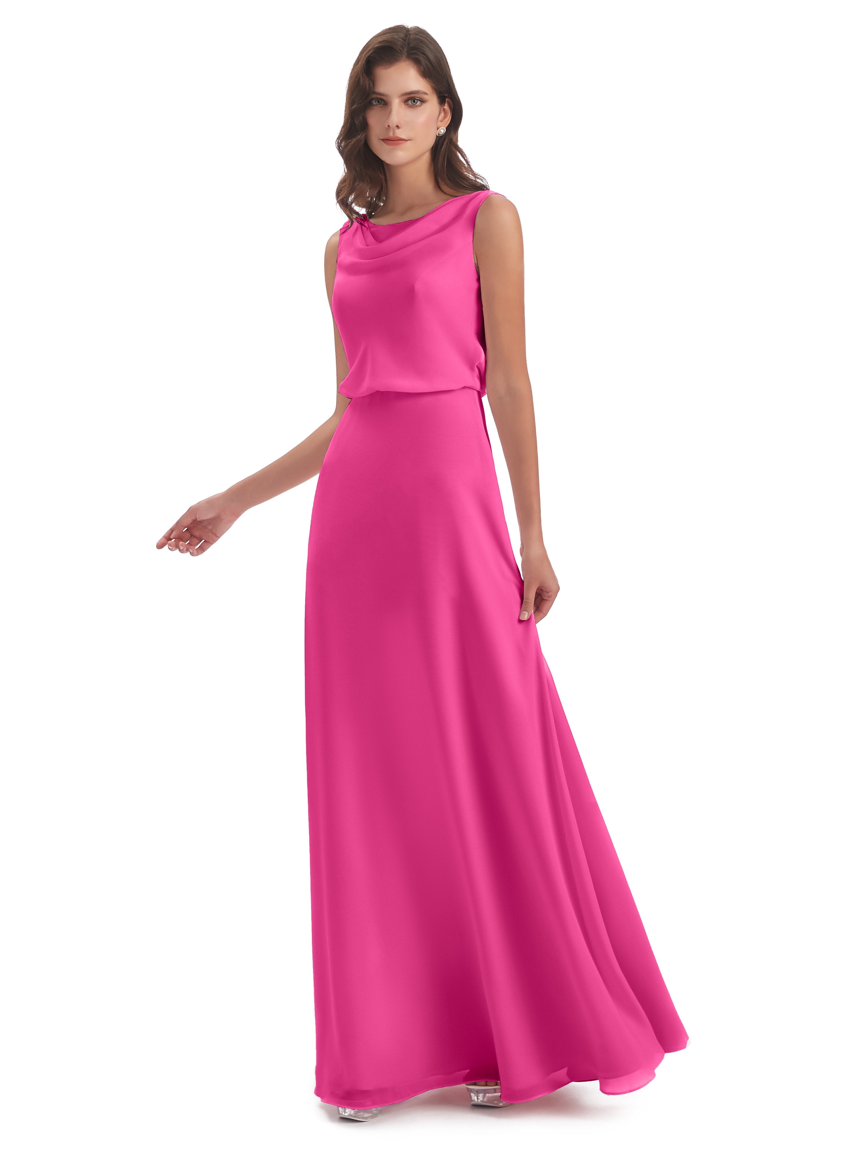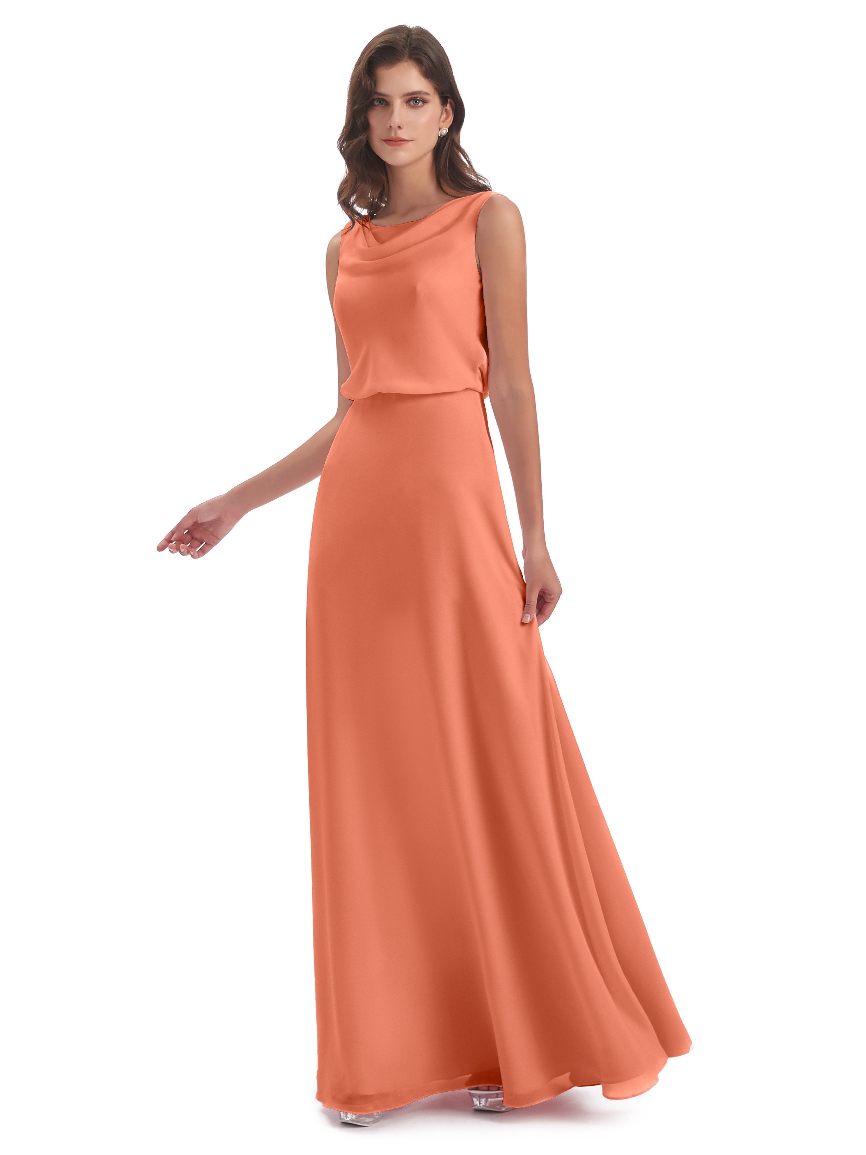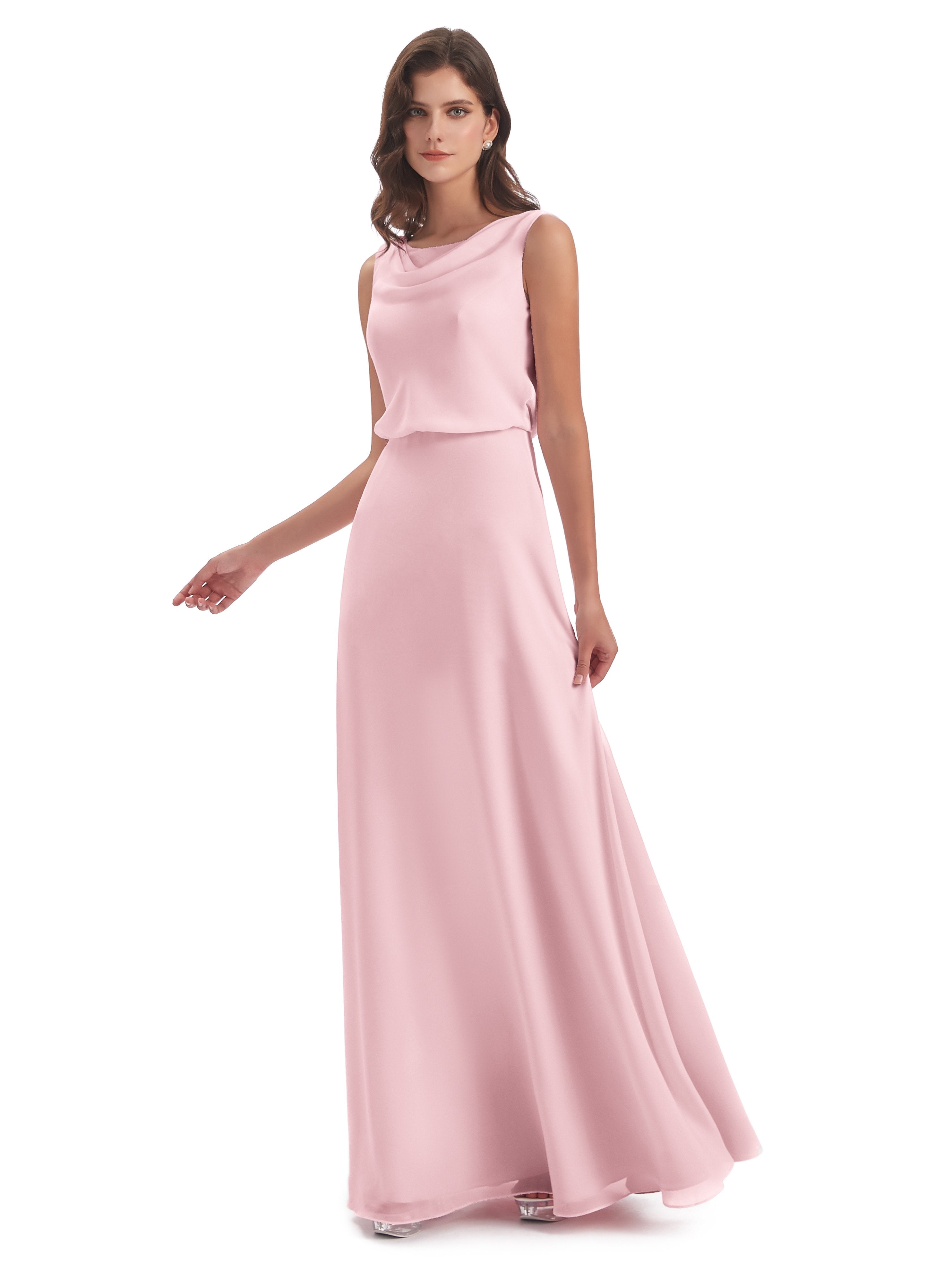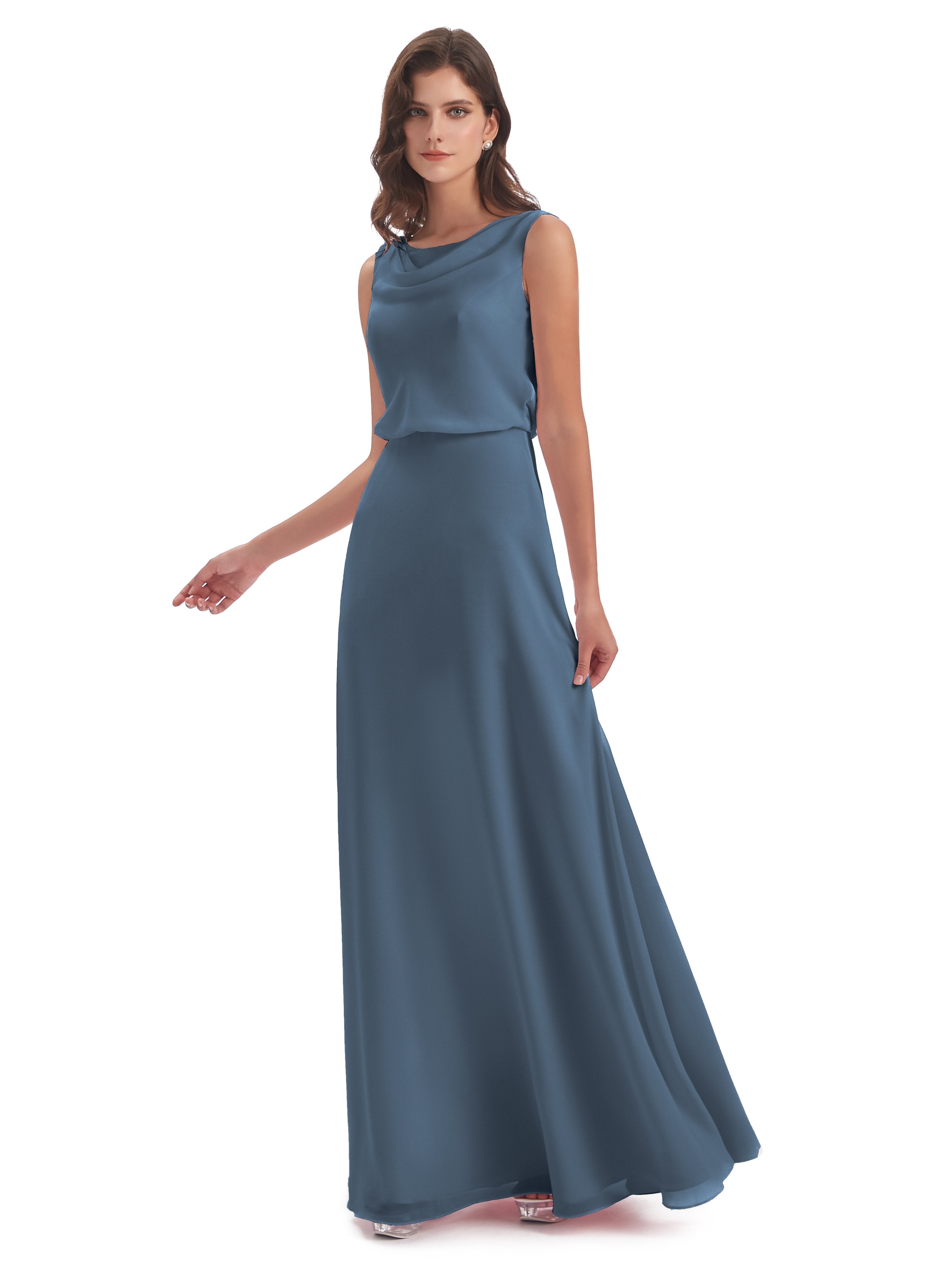 Layla Etui-Säule Bodenlange Kapuze V-Ausschnitt Chiffon Lange Brautjungfernkleider