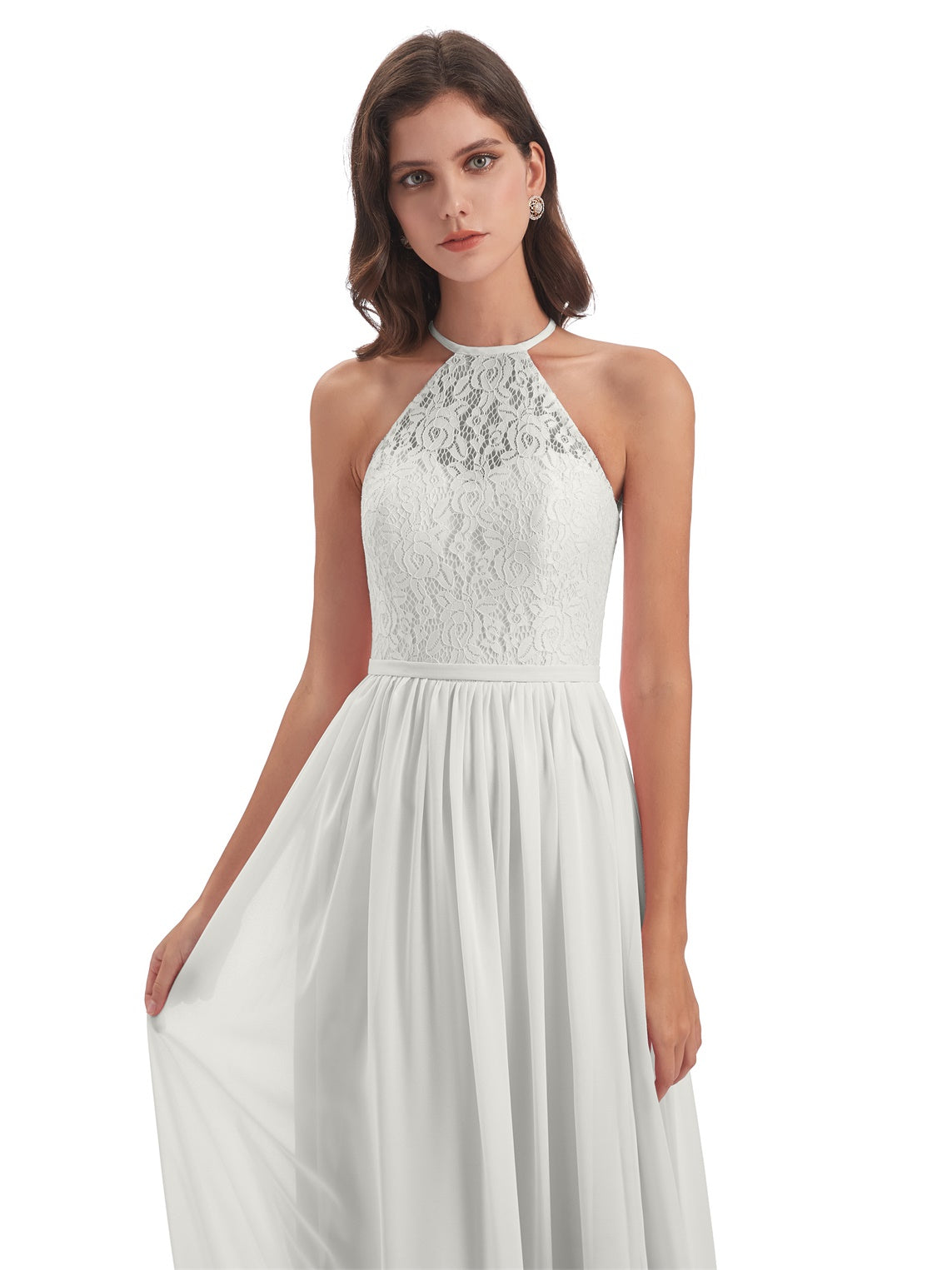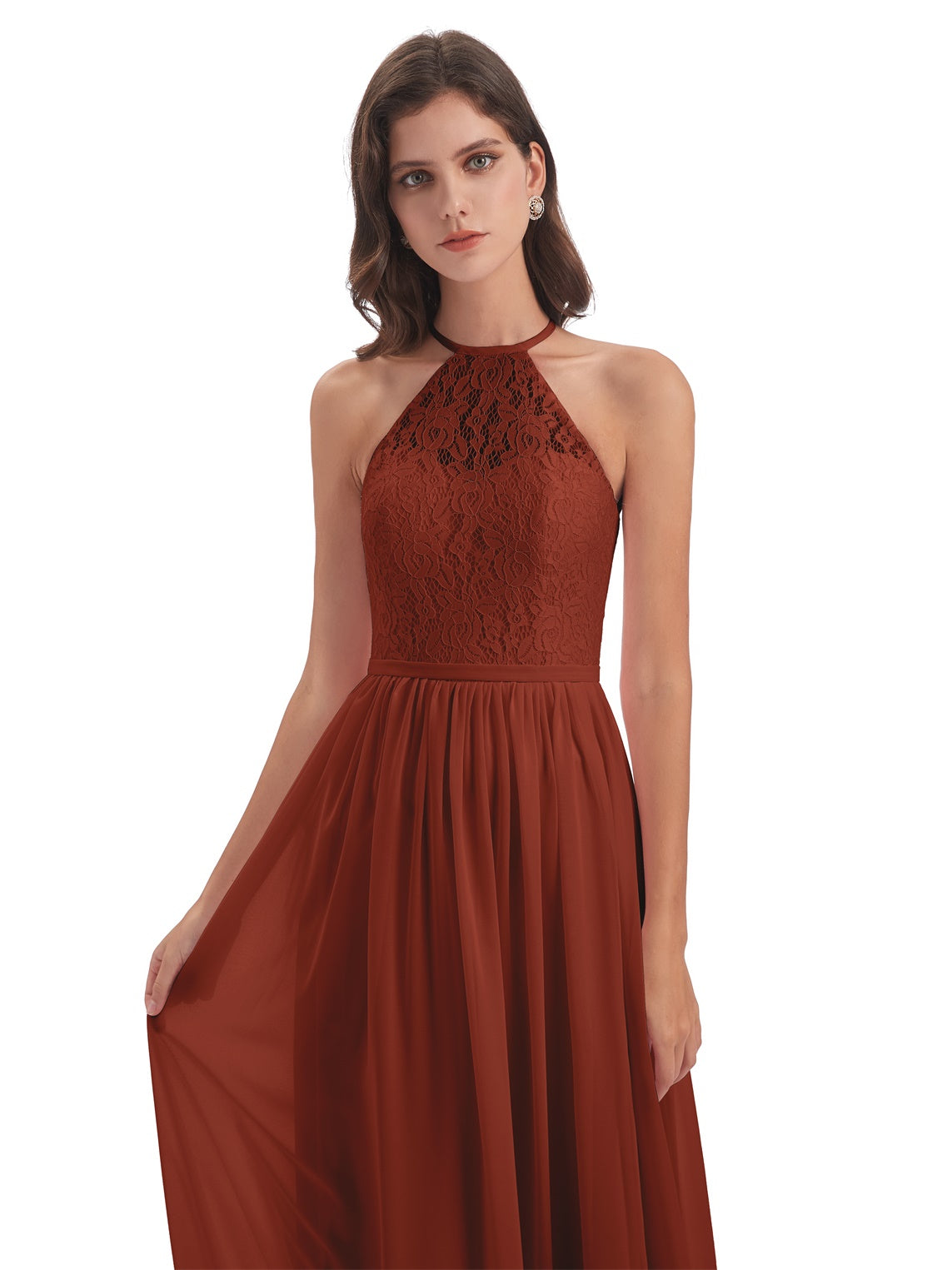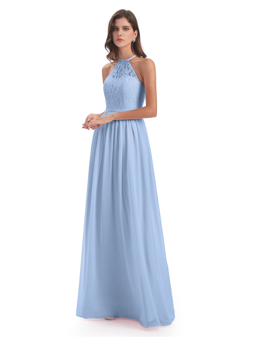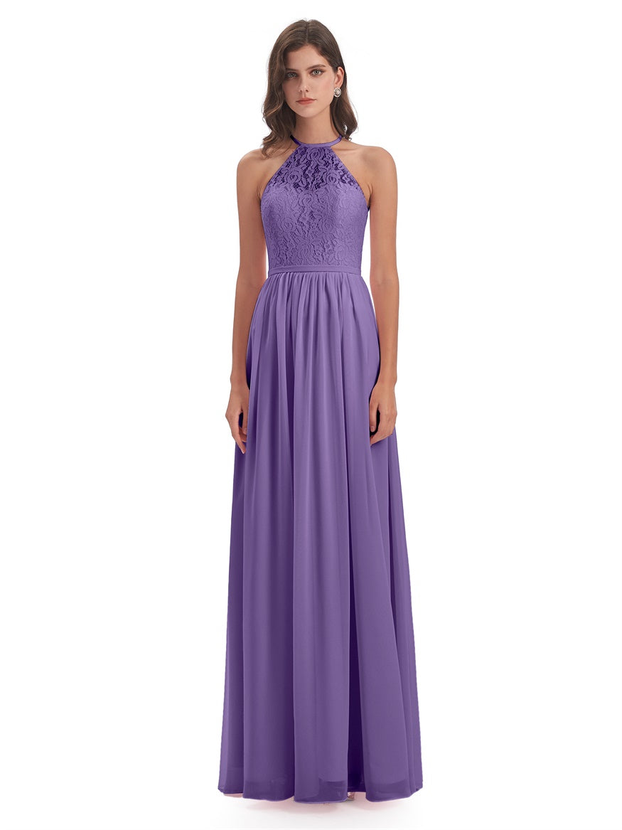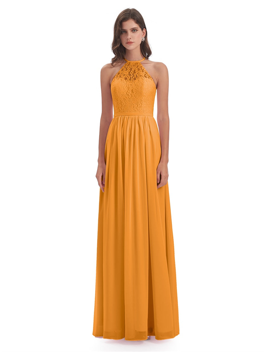 Magdalena A-Linie Bodenlange Nackenträger Spitze/Chiffon Lange Brautjungfernkleider