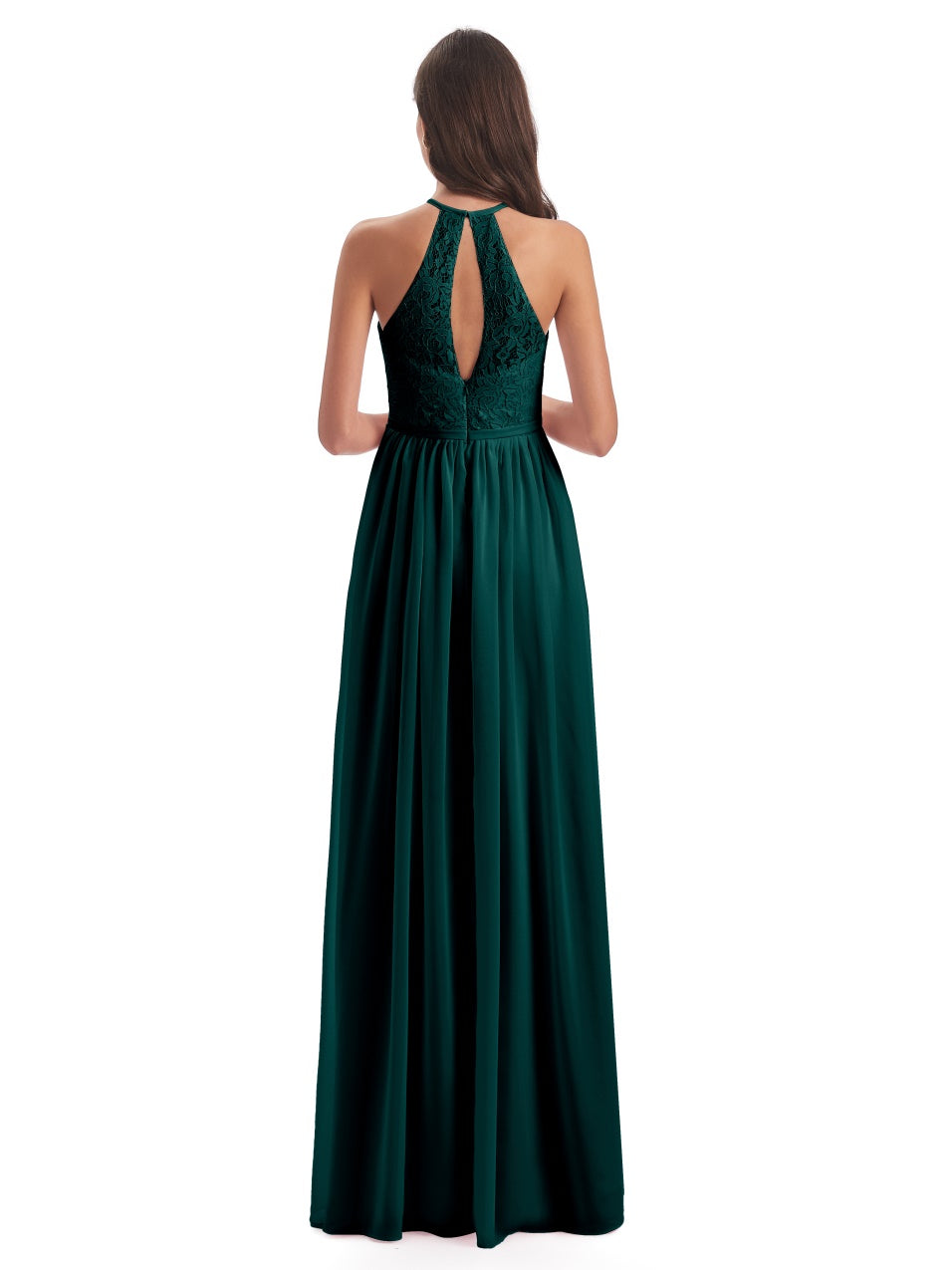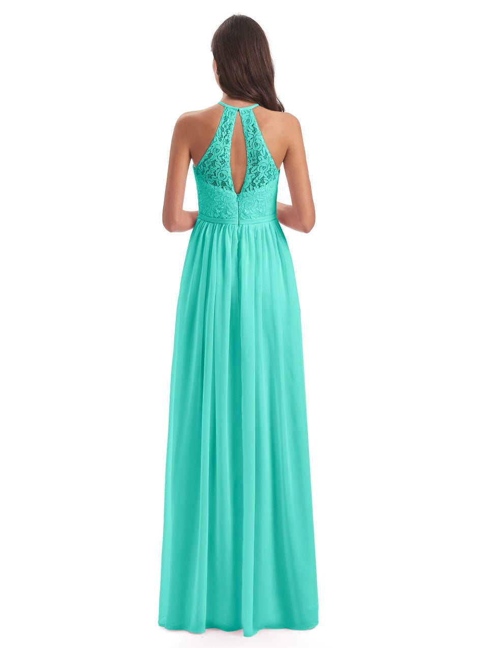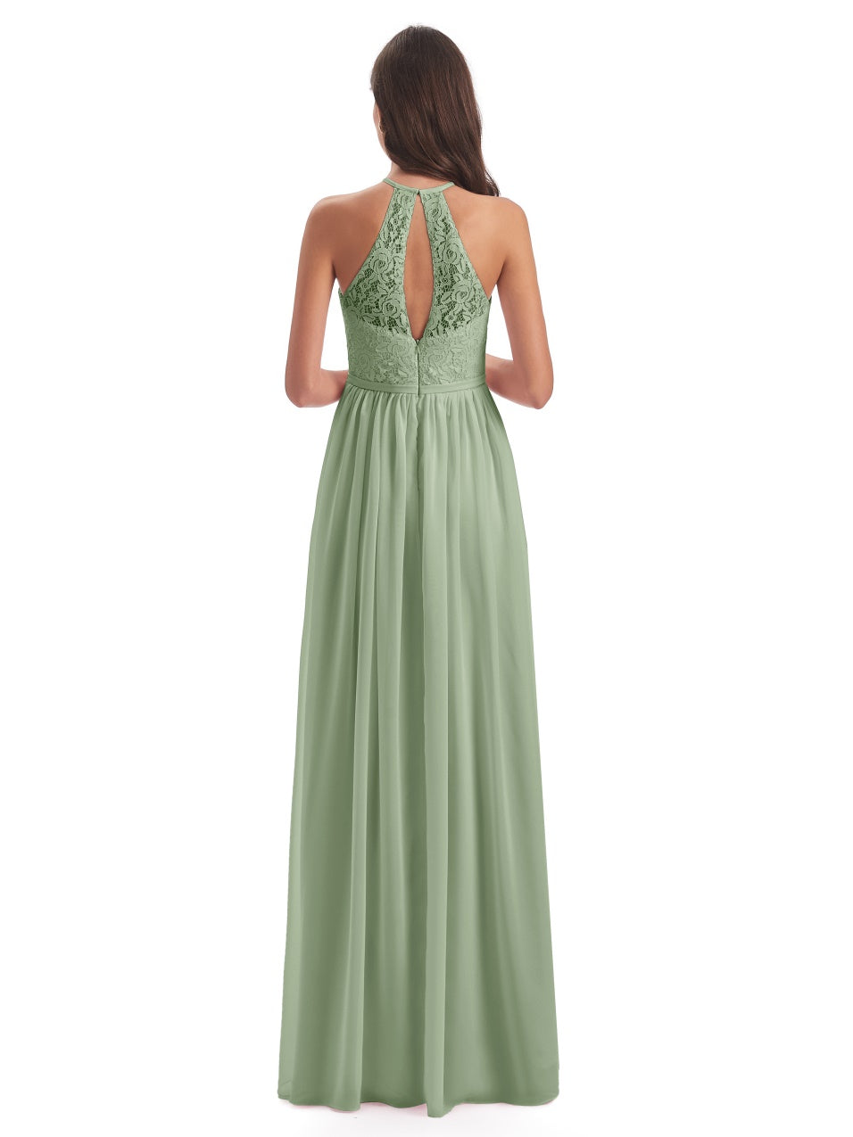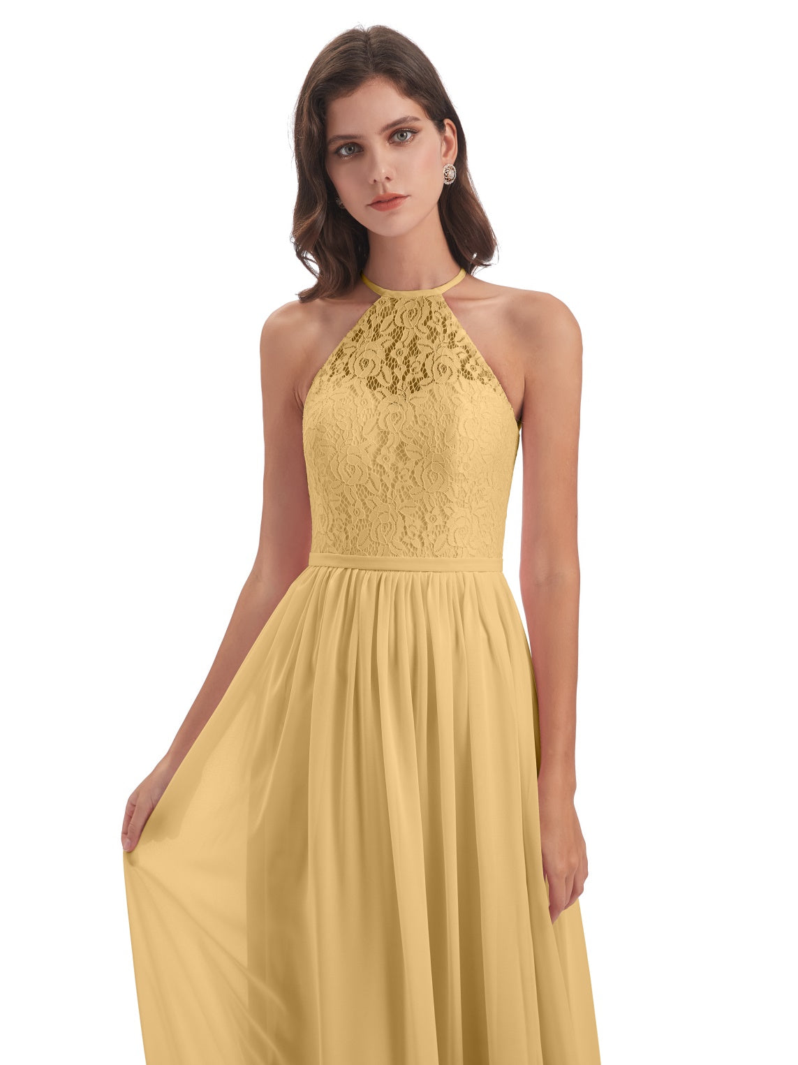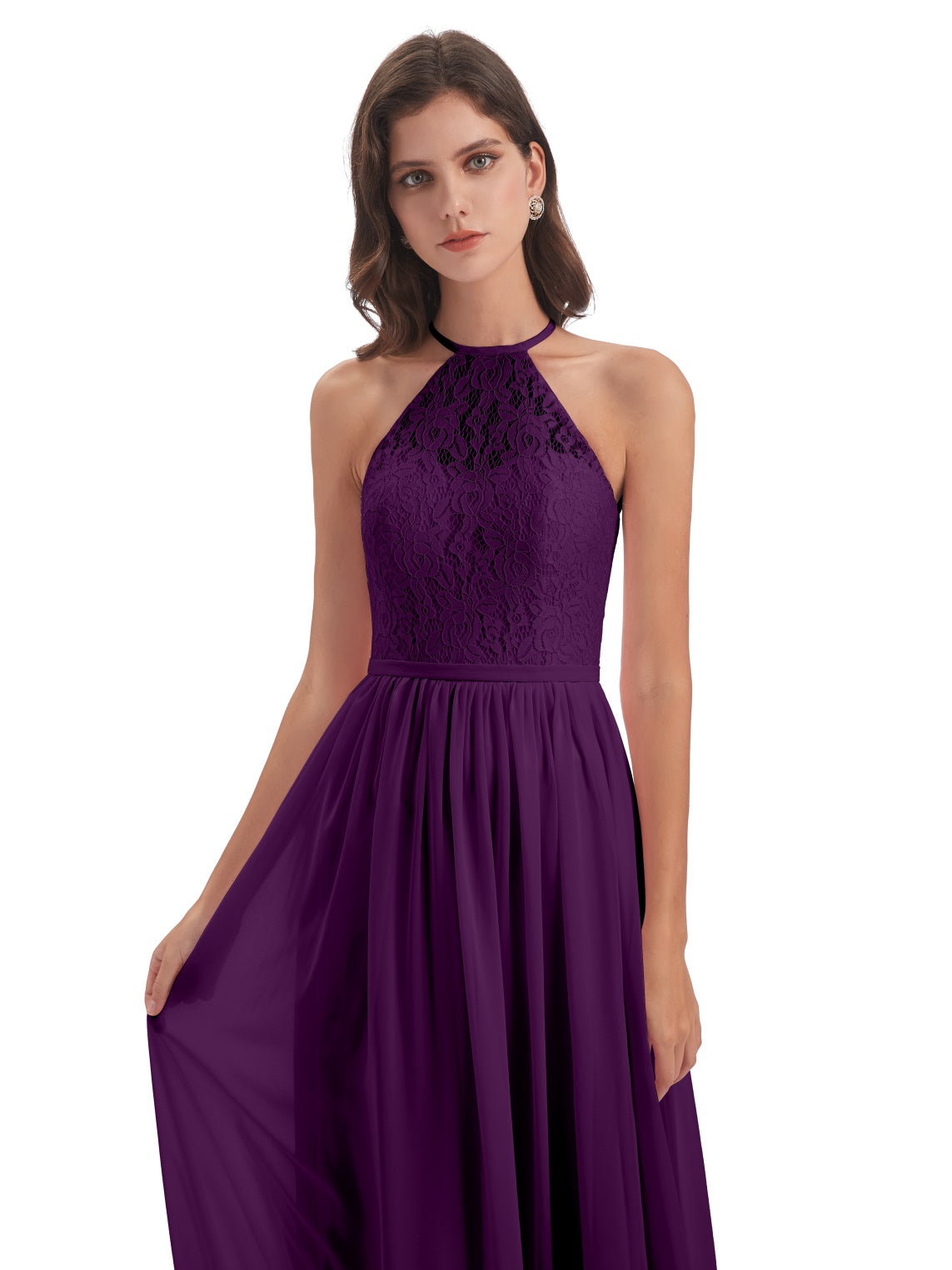 Magdalena A-Linie Bodenlange Nackenträger Spitze/Chiffon Lange Brautjungfernkleider