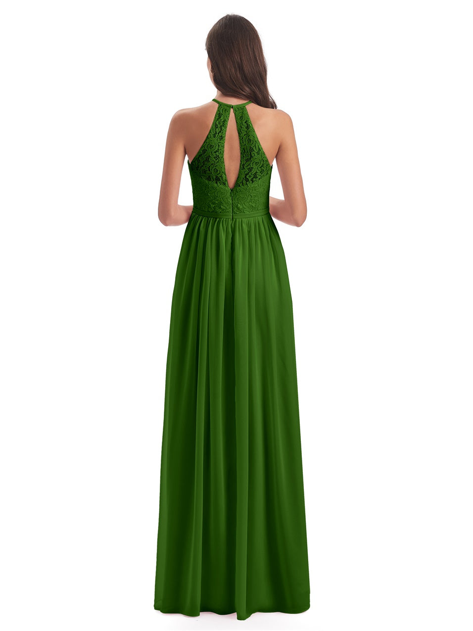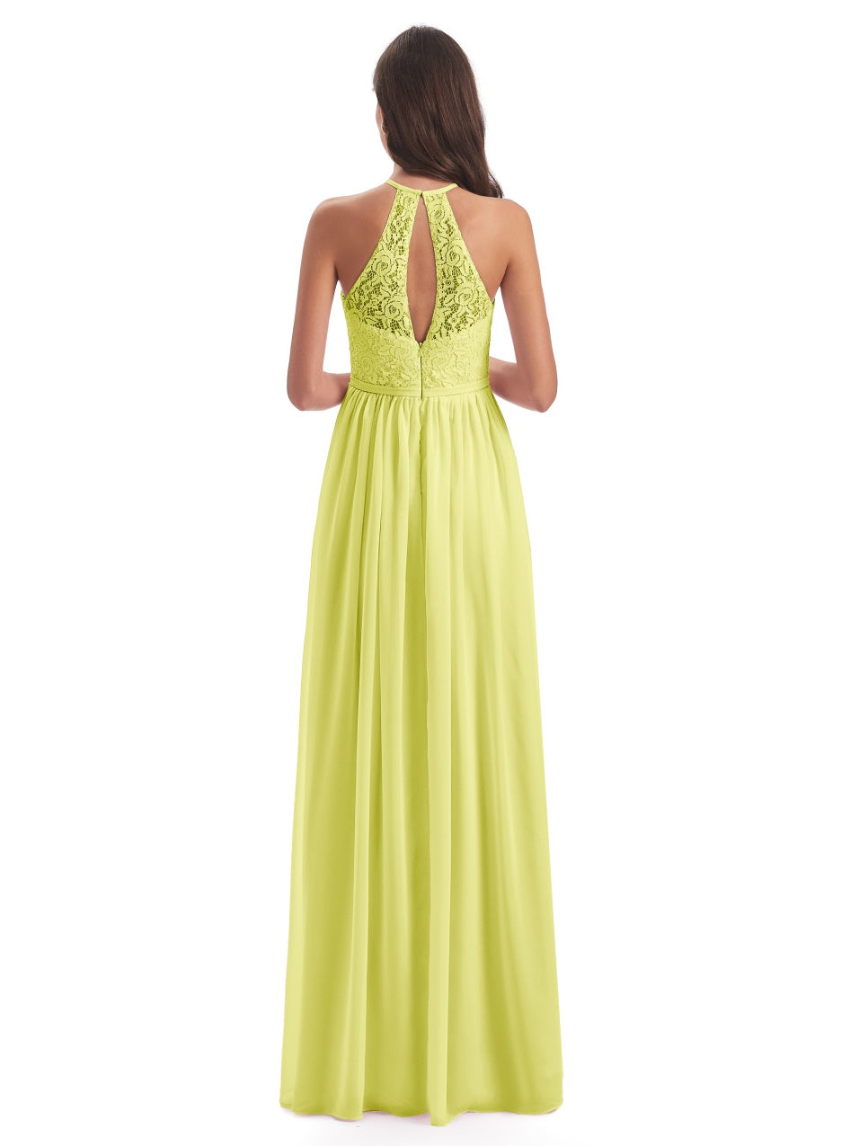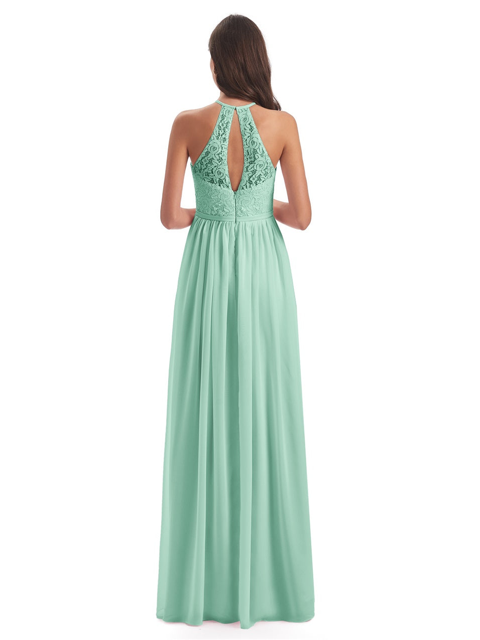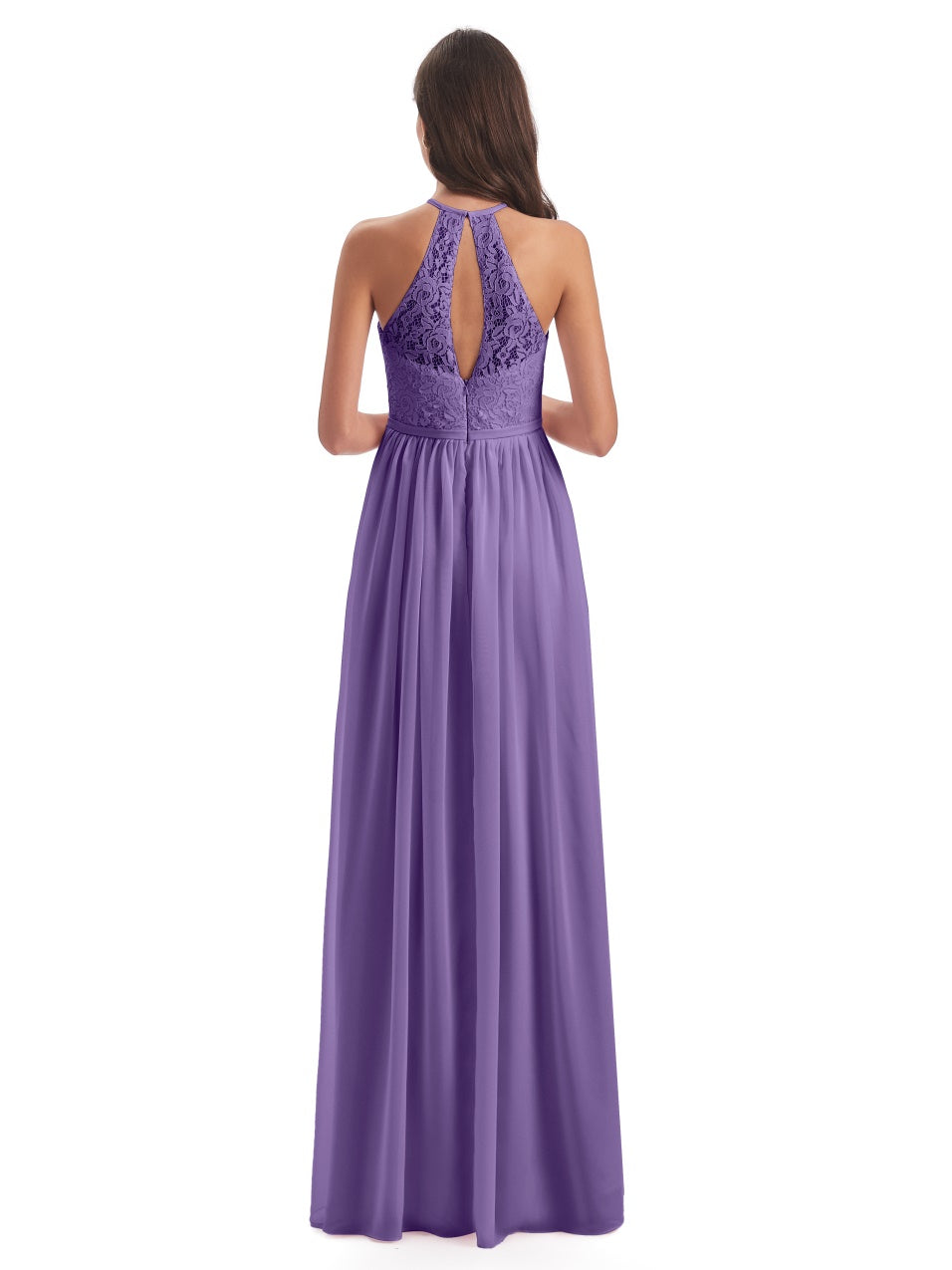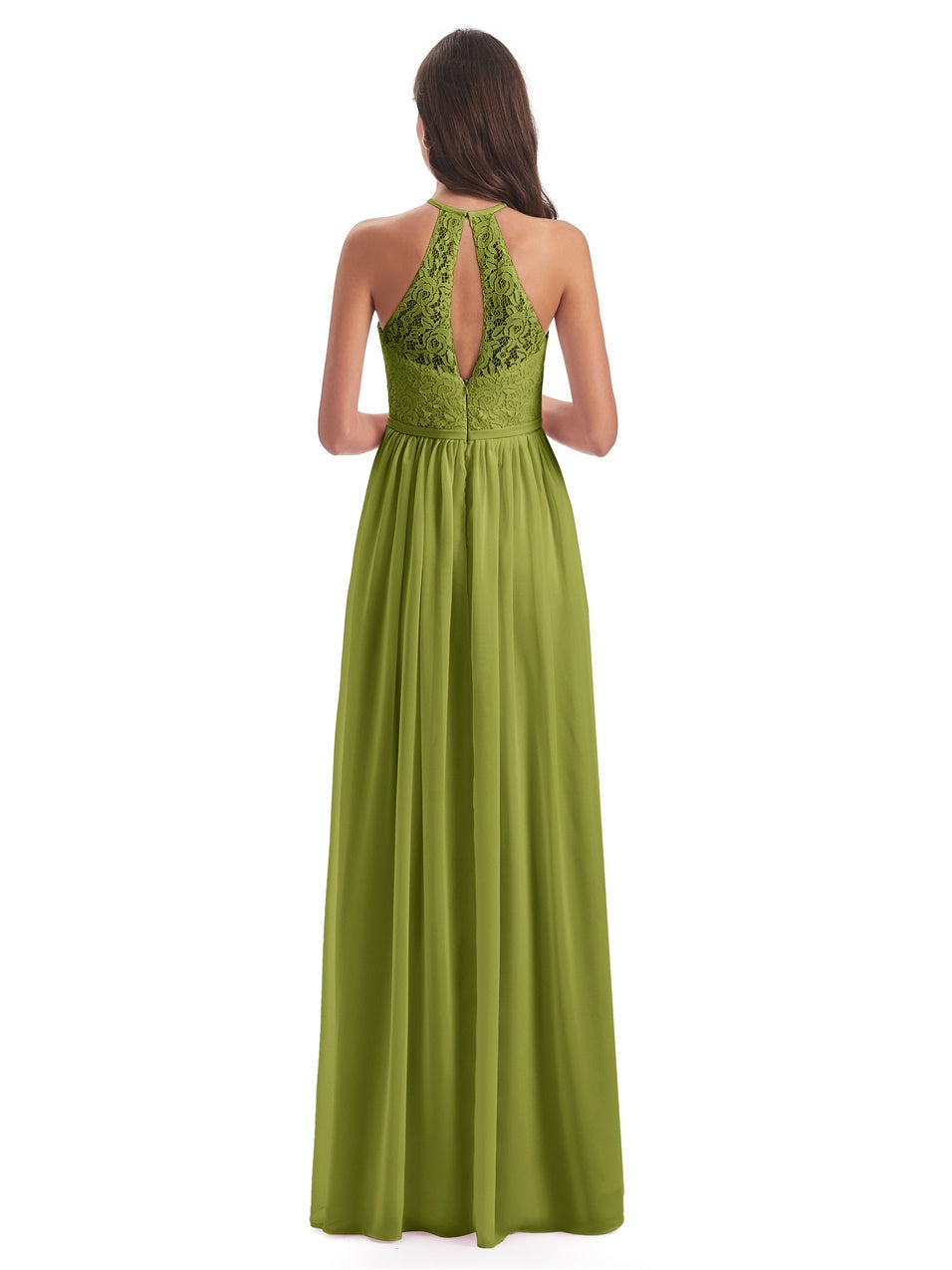 Magdalena A-Linie Bodenlange Nackenträger Spitze/Chiffon Lange Brautjungfernkleider