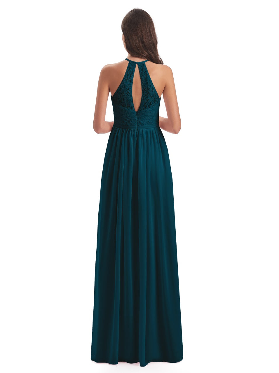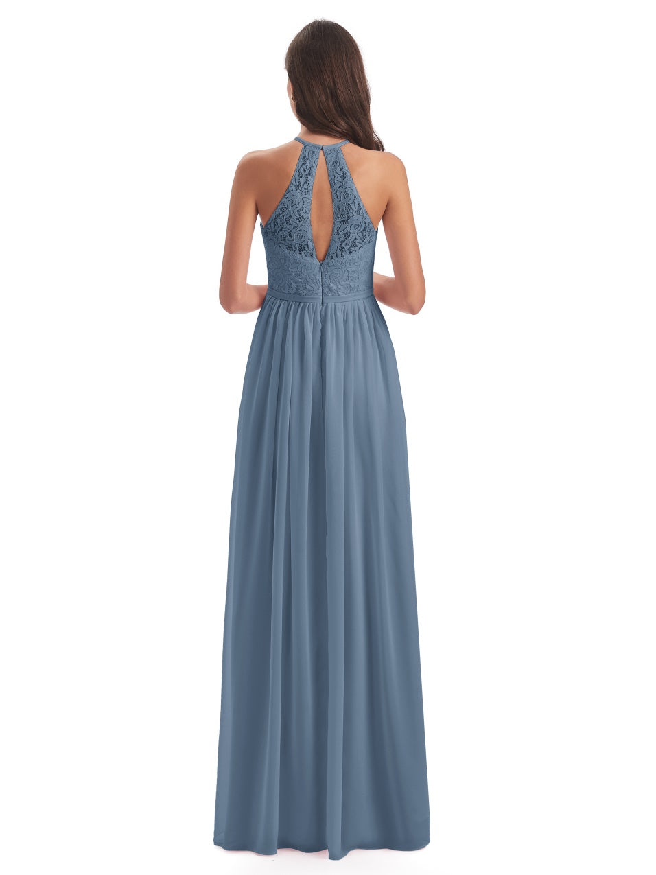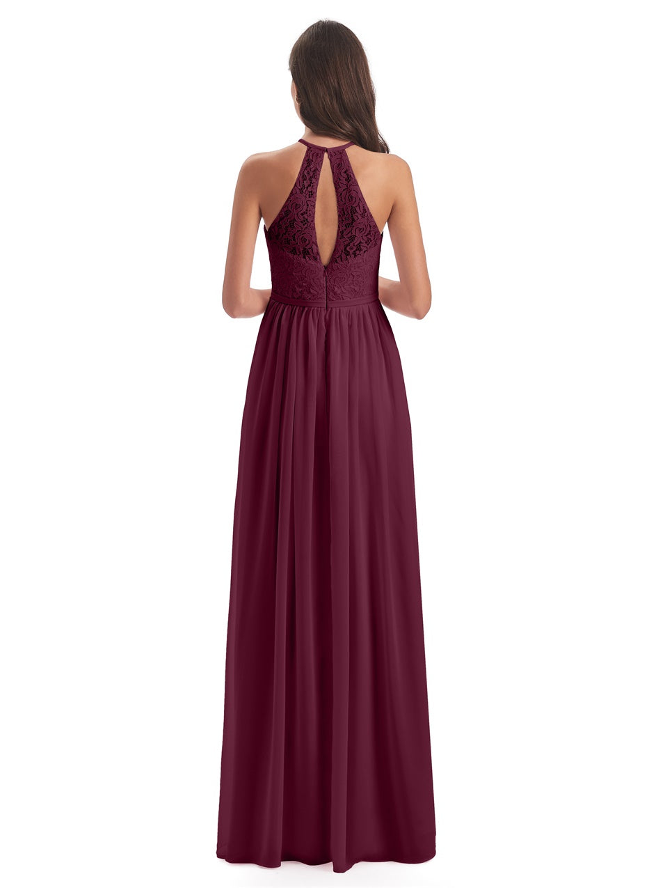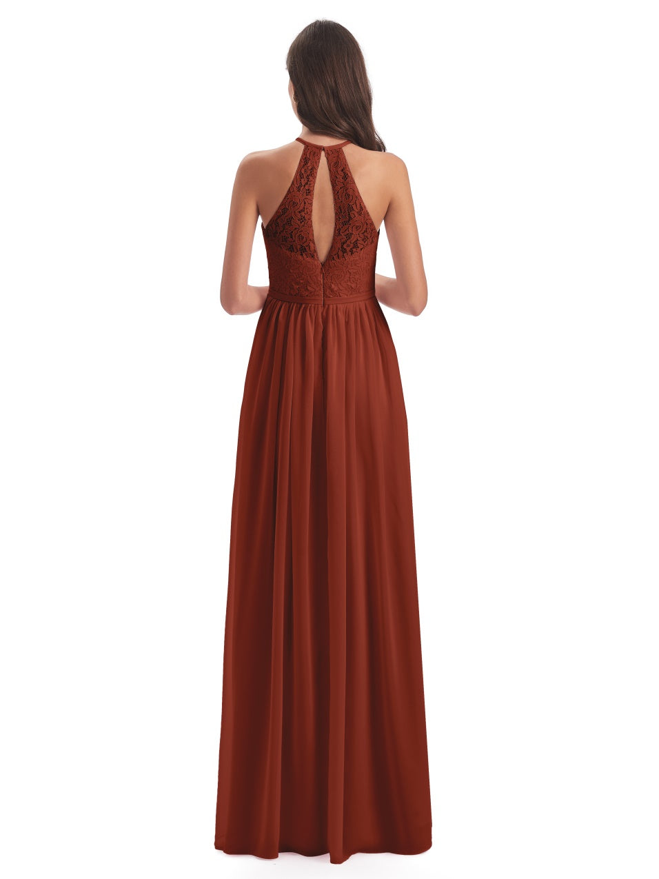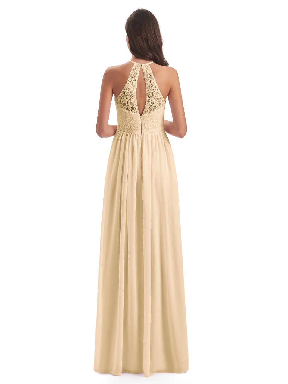 Magdalena A-Linie Bodenlange Nackenträger Spitze/Chiffon Lange Brautjungfernkleider