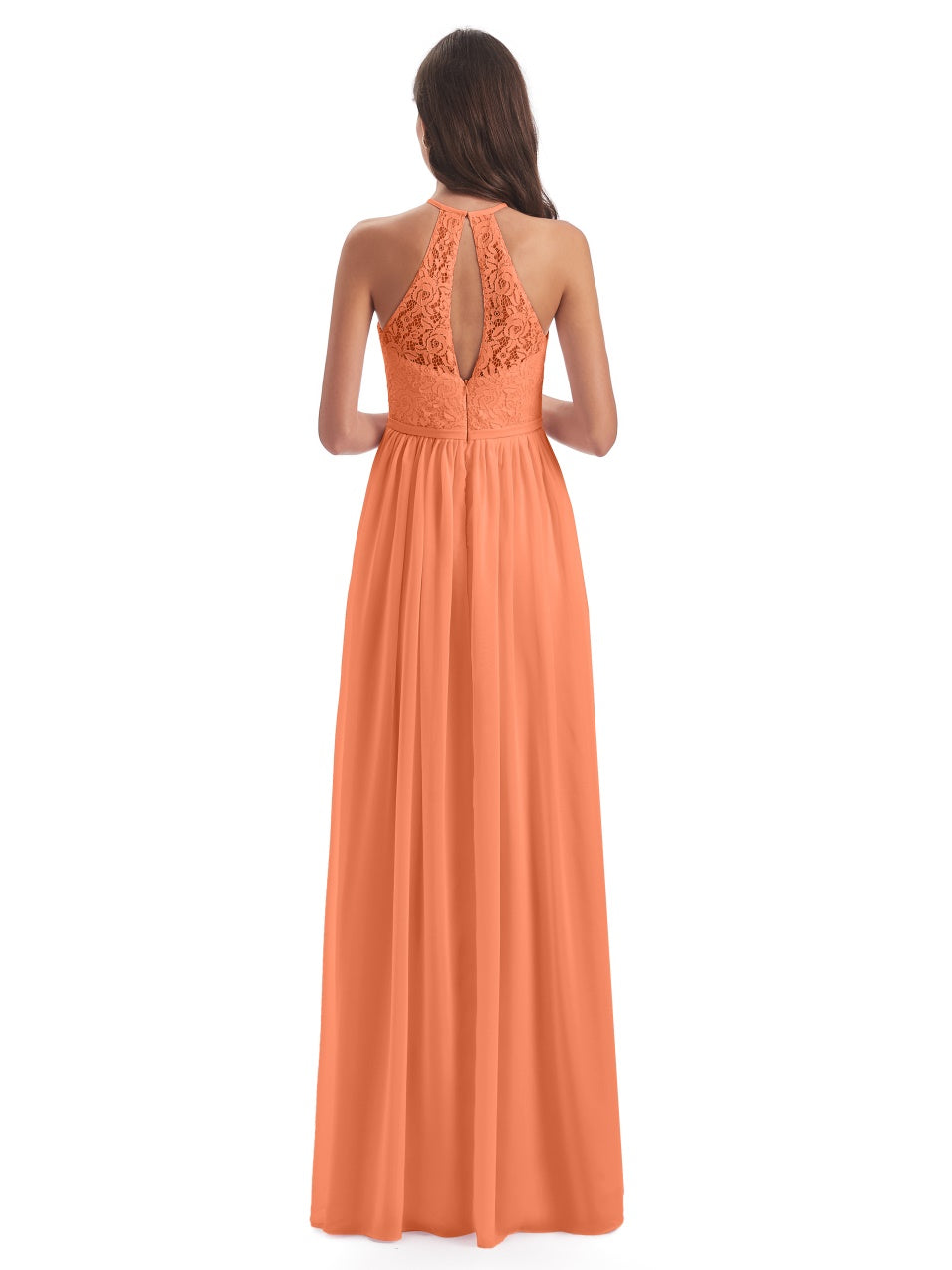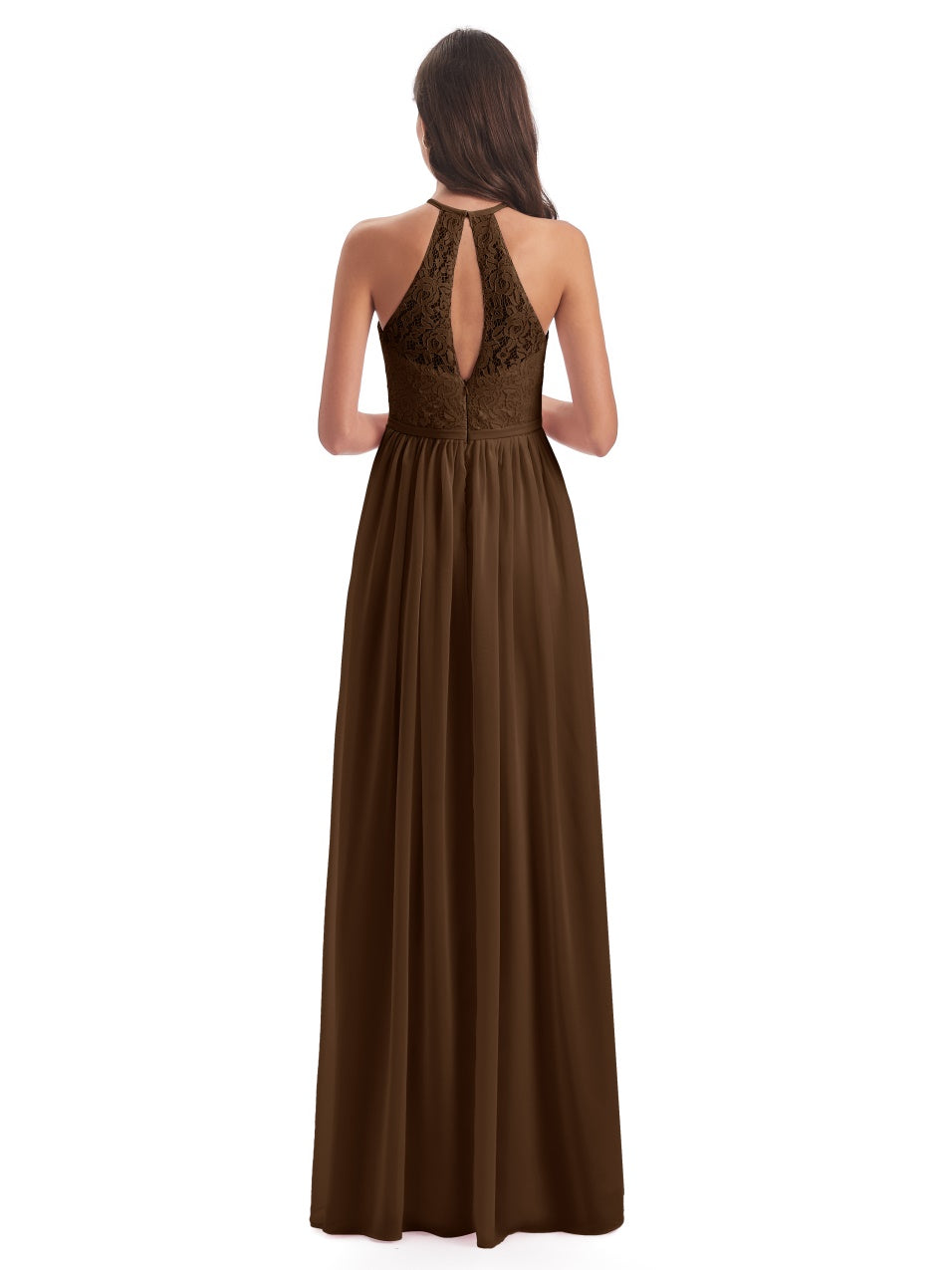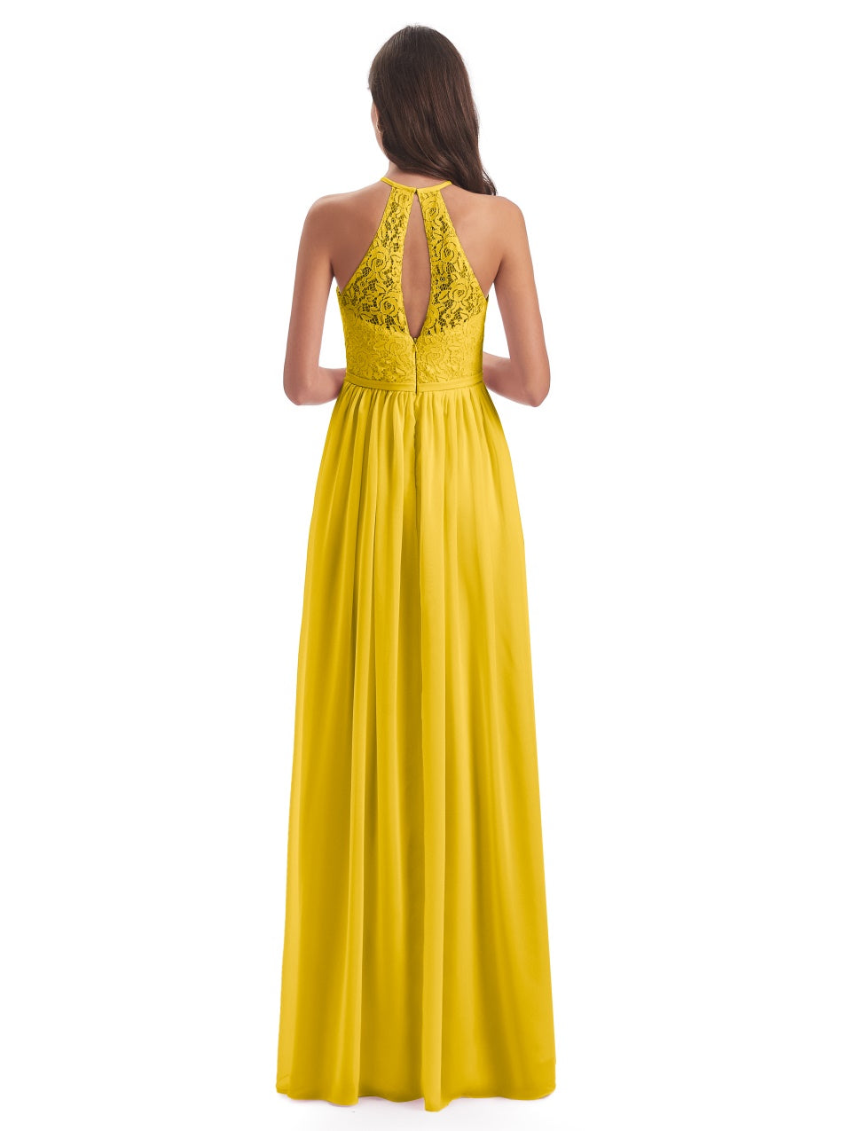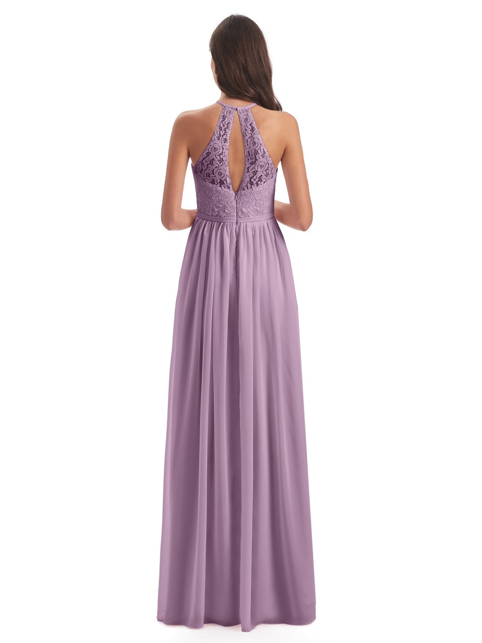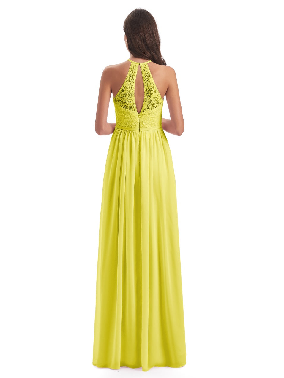 Magdalena A-Linie Bodenlange Nackenträger Spitze/Chiffon Lange Brautjungfernkleider
