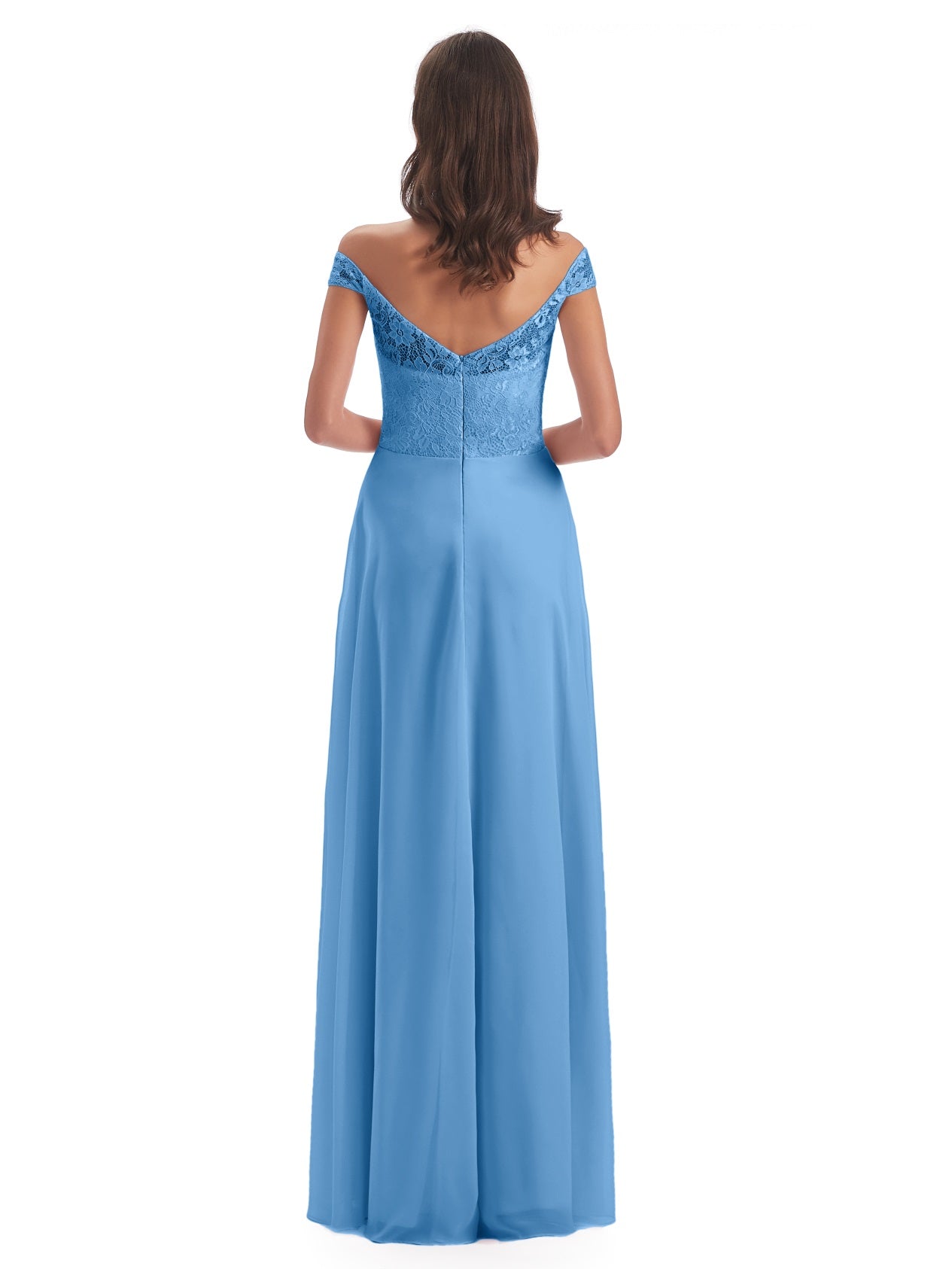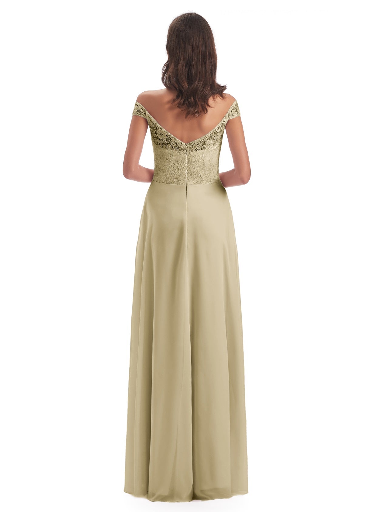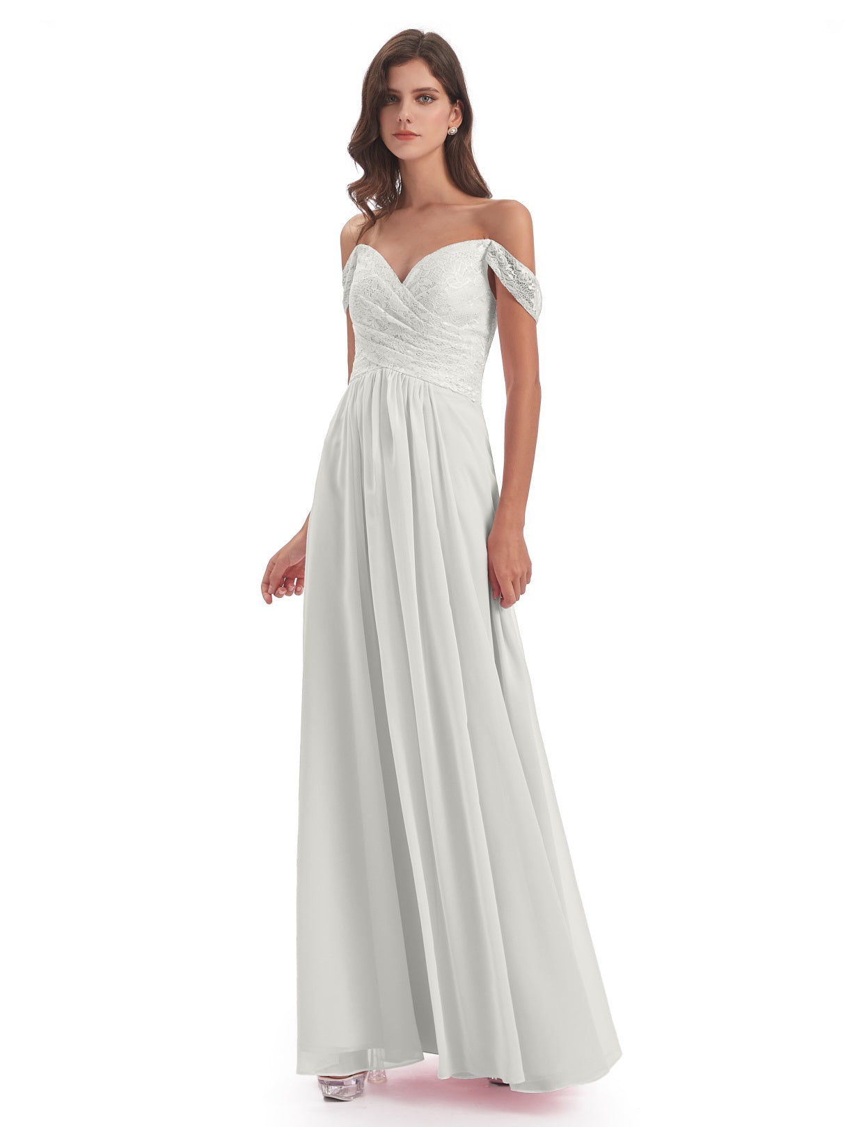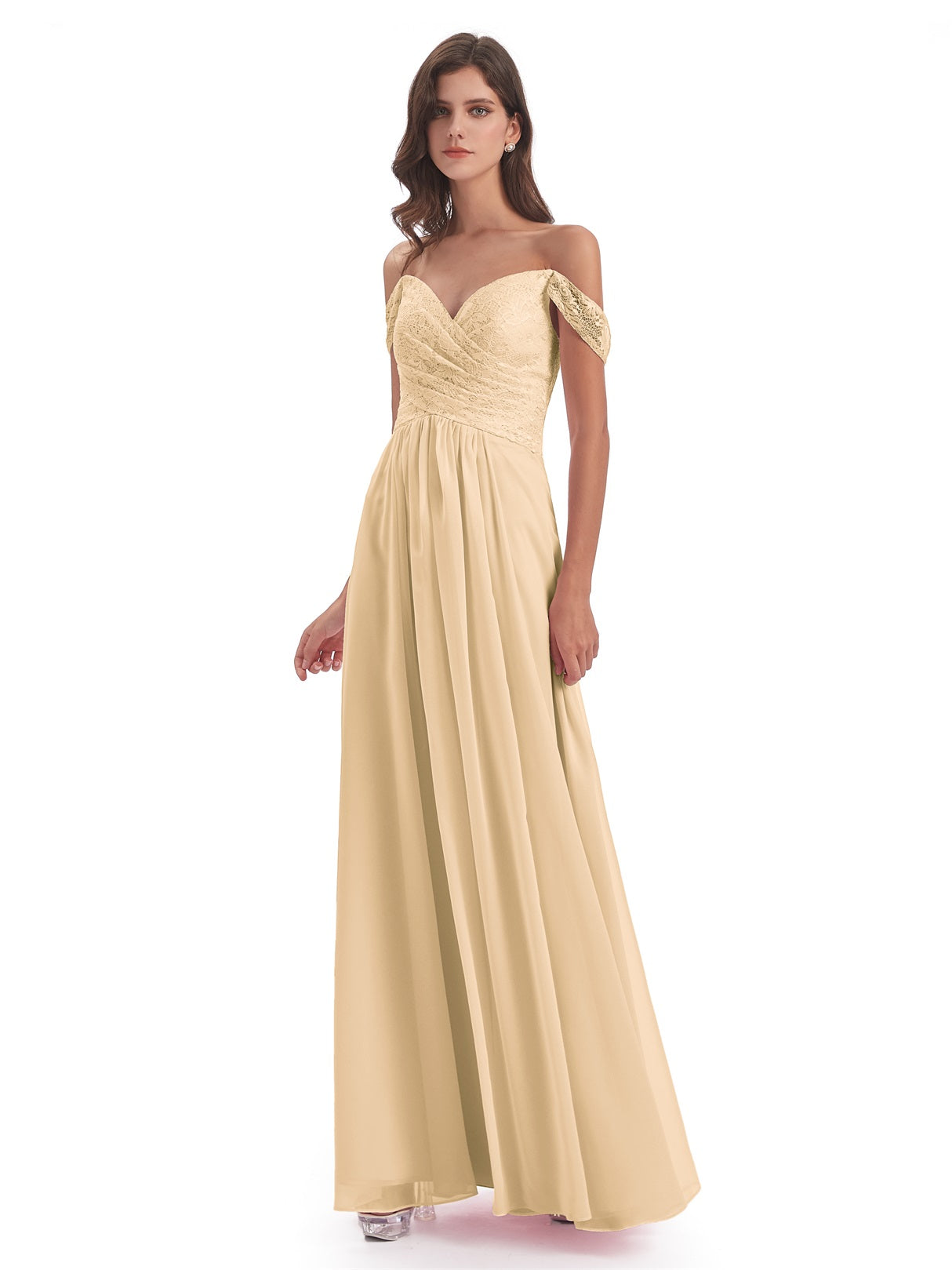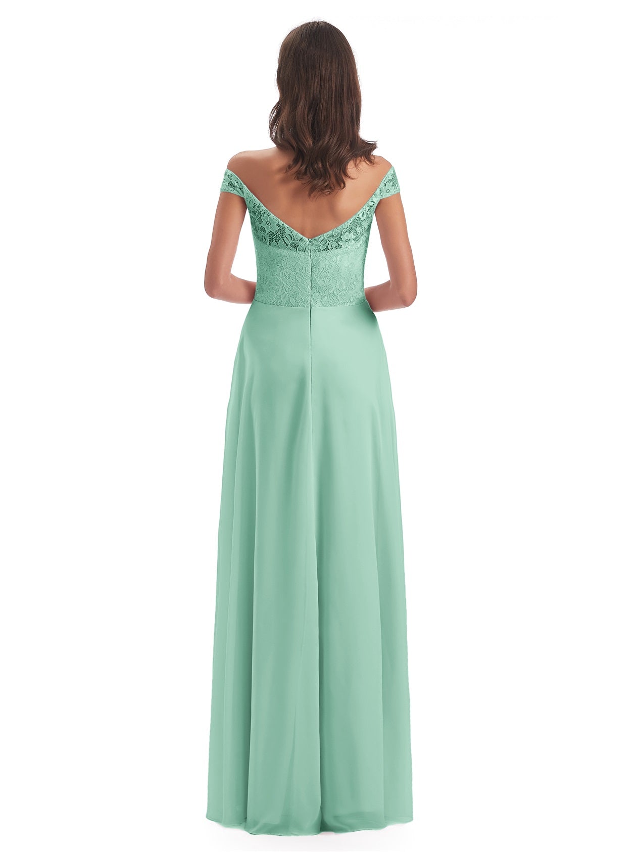 Marjorie A-Linie Bodenlange Schulterfreie Spitze/Chiffon Lange Brautjungfernkleider
