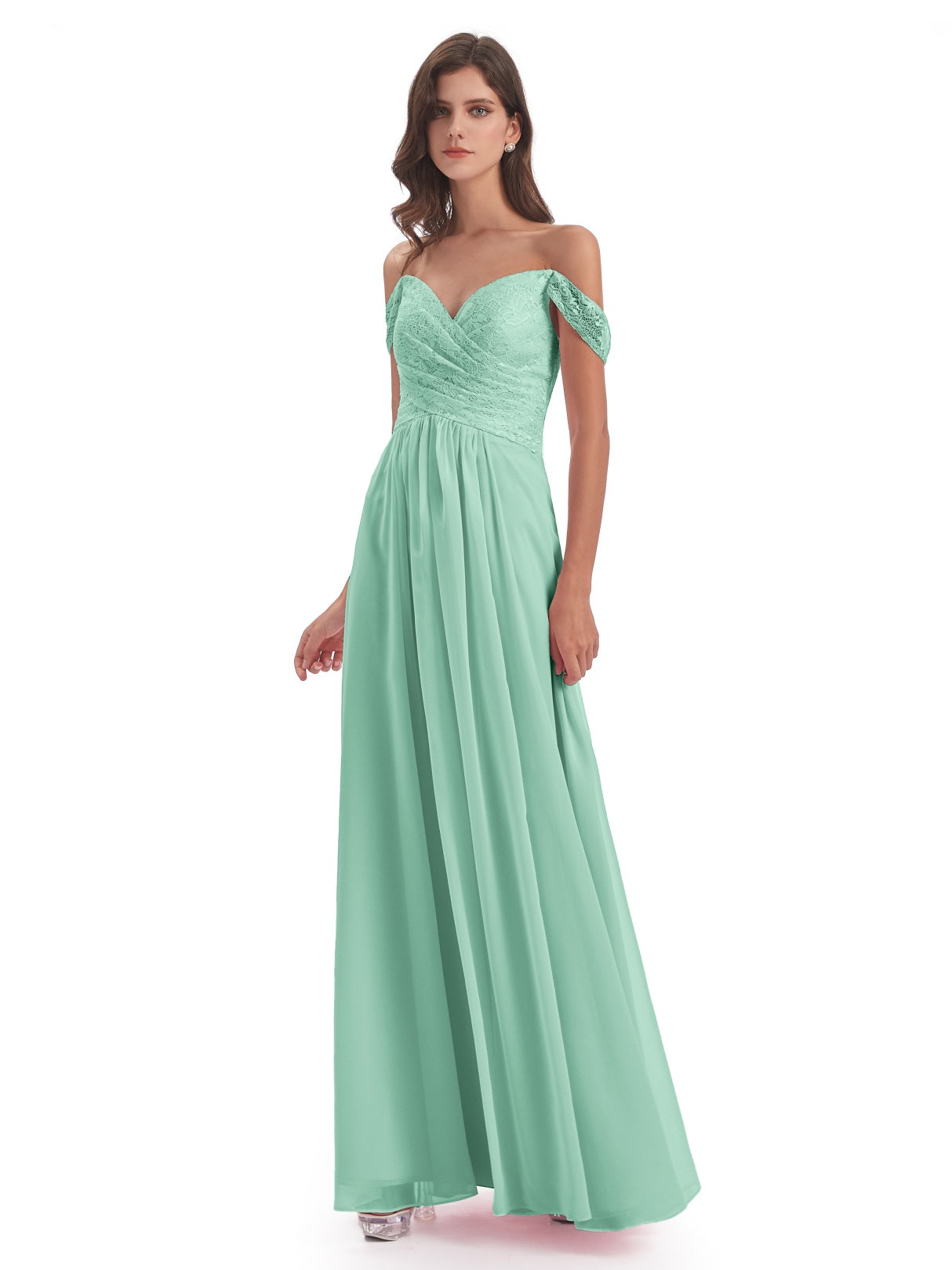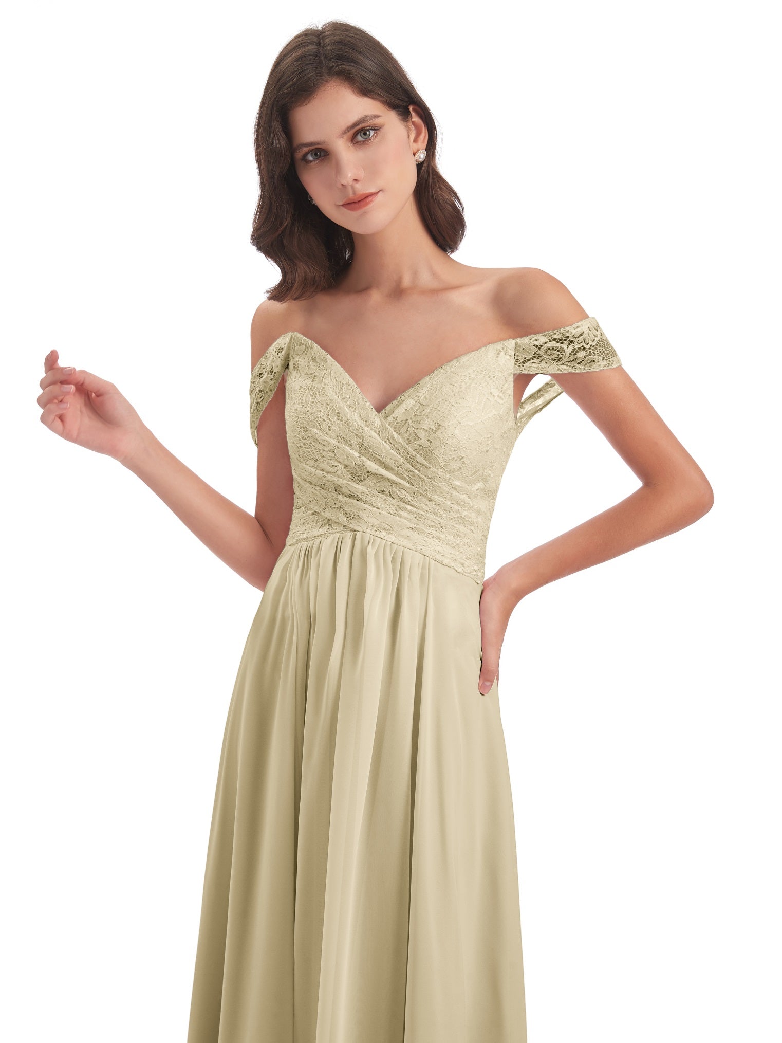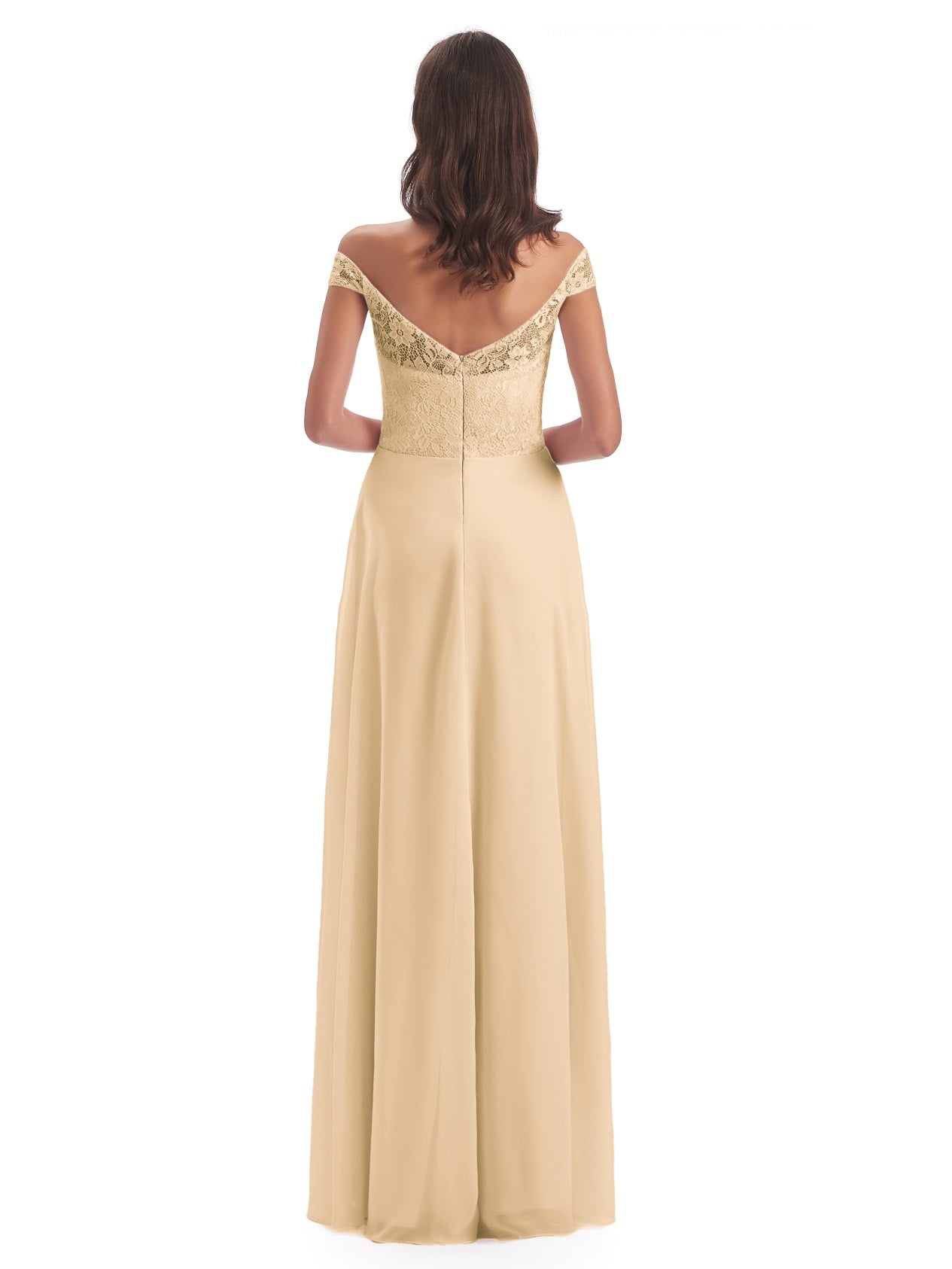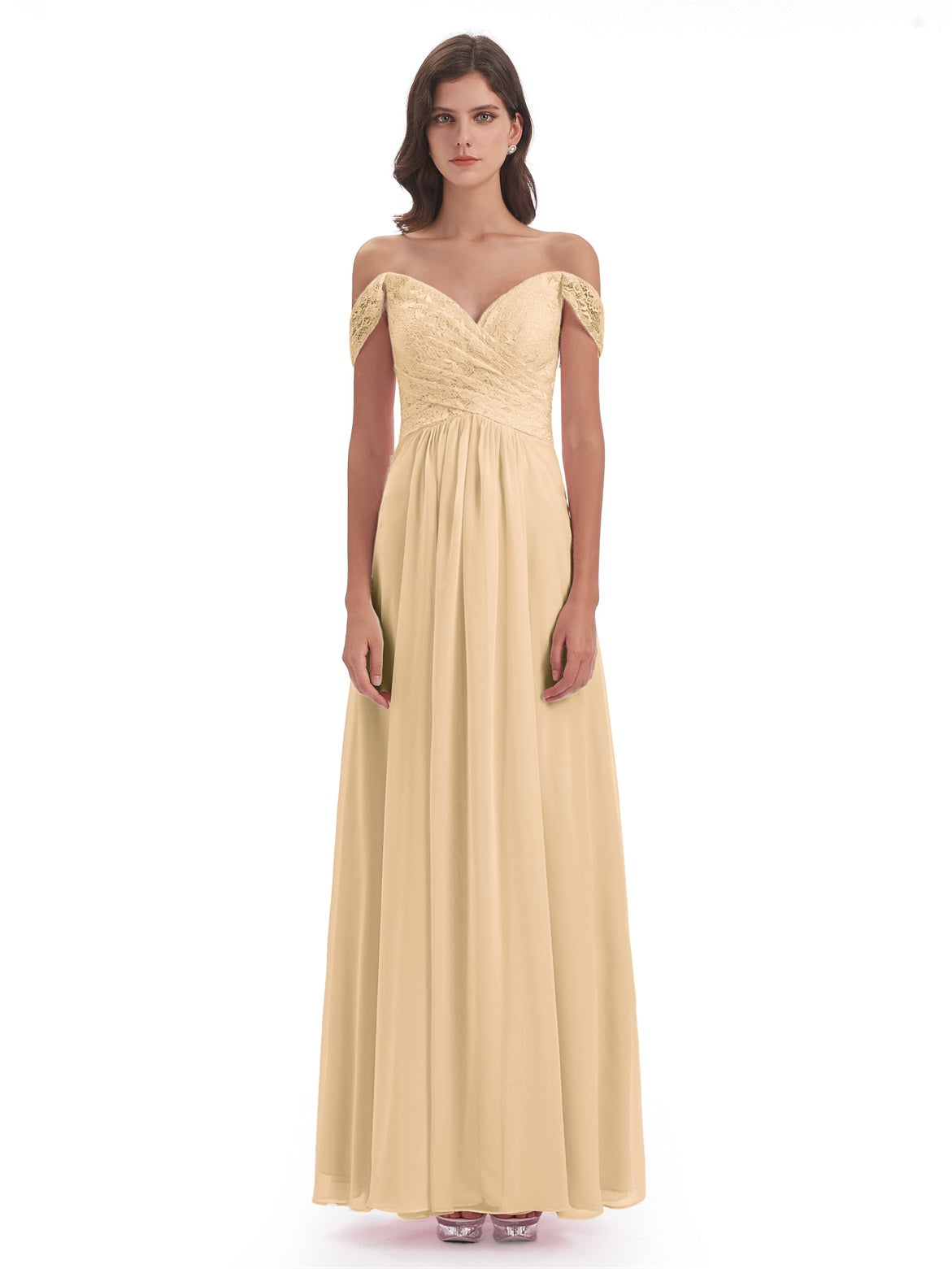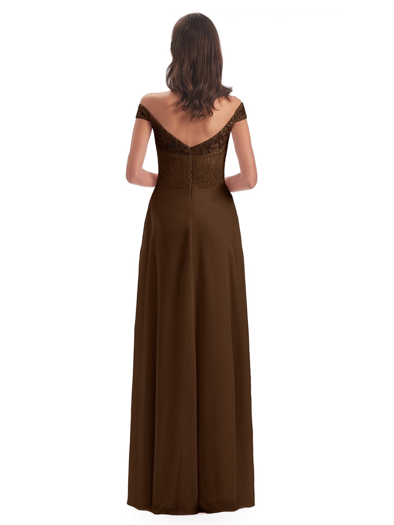 Marjorie A-Linie Bodenlange Schulterfreie Spitze/Chiffon Lange Brautjungfernkleider