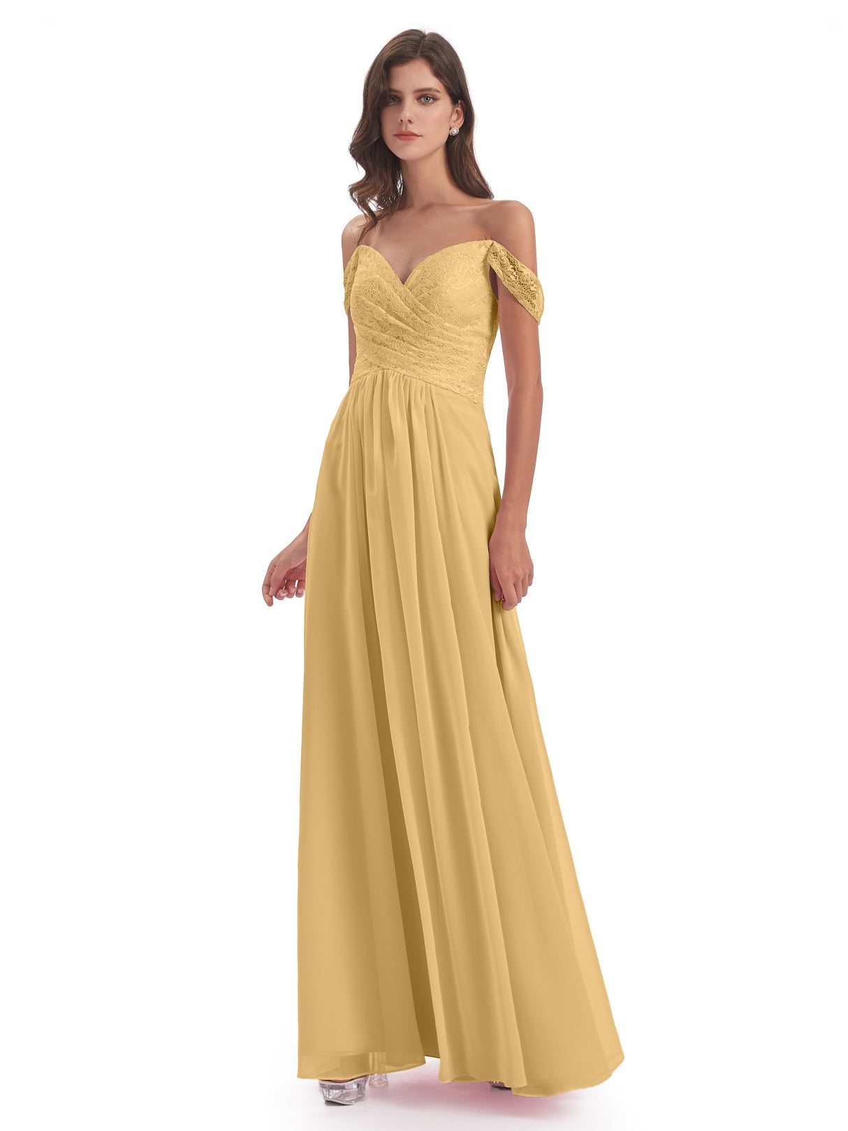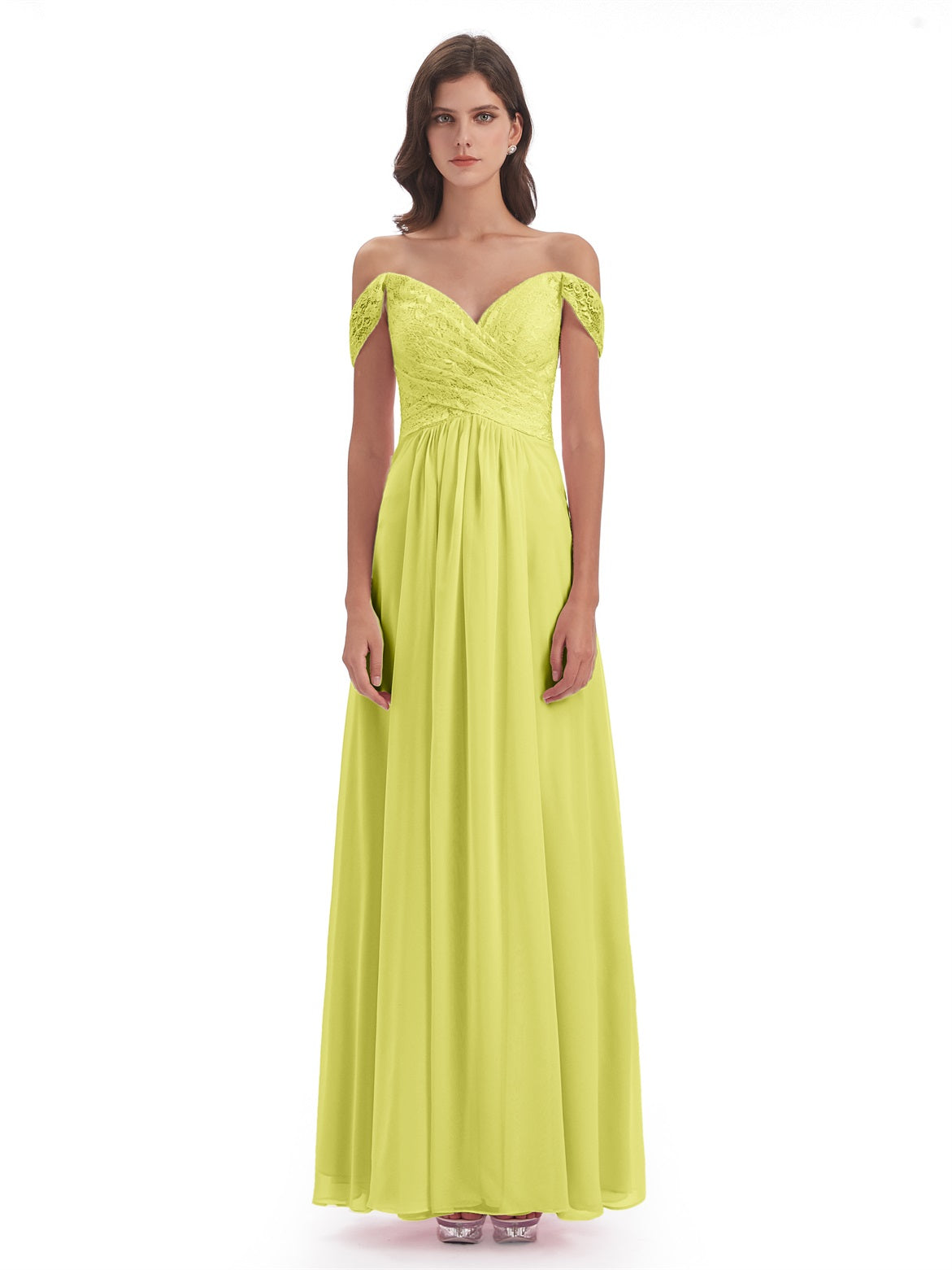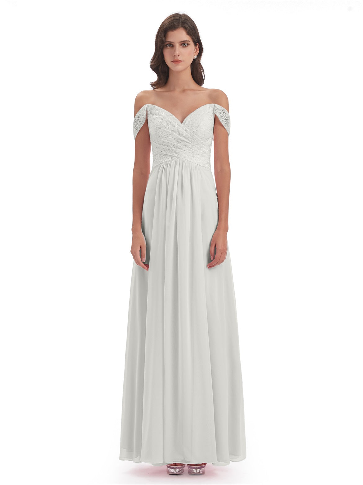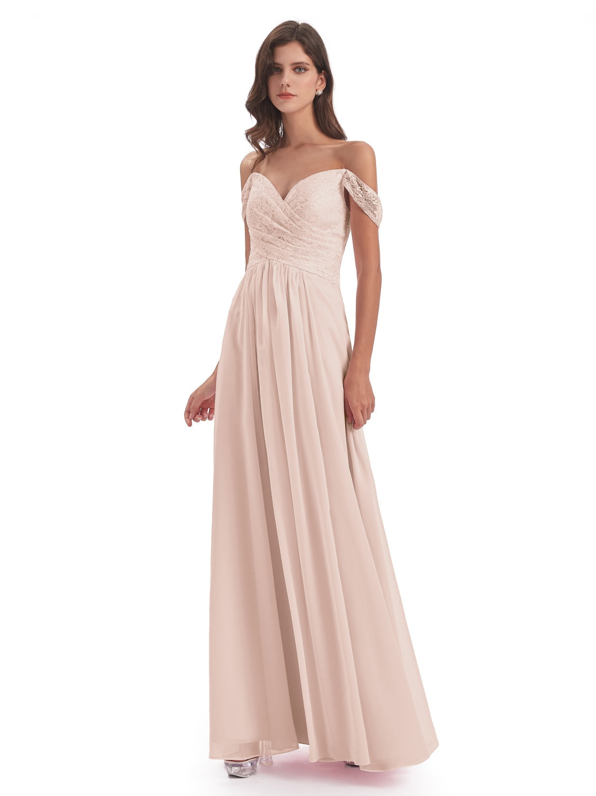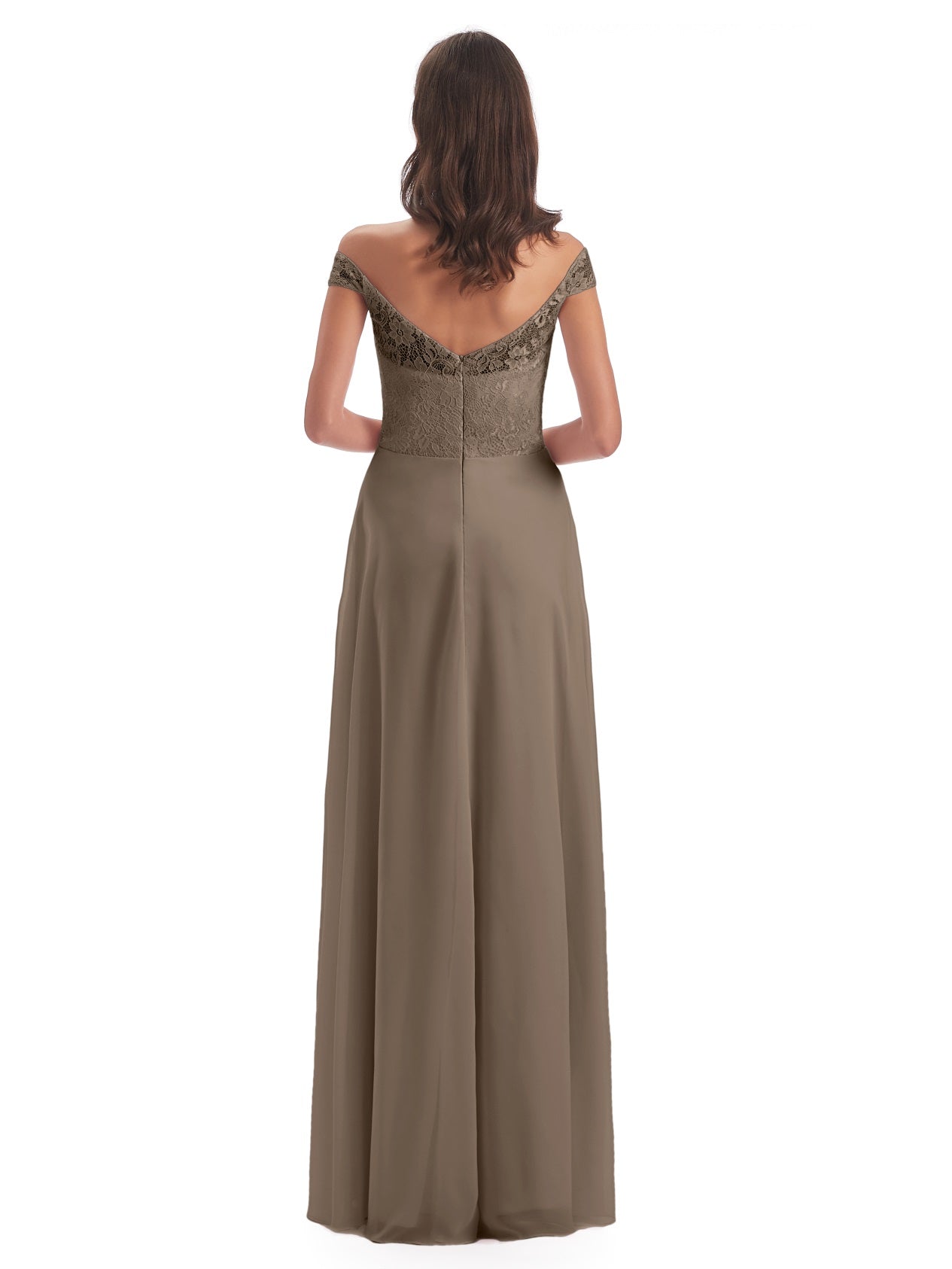 Marjorie A-Linie Bodenlange Schulterfreie Spitze/Chiffon Lange Brautjungfernkleider