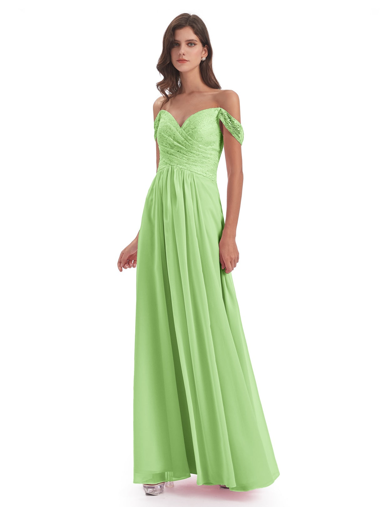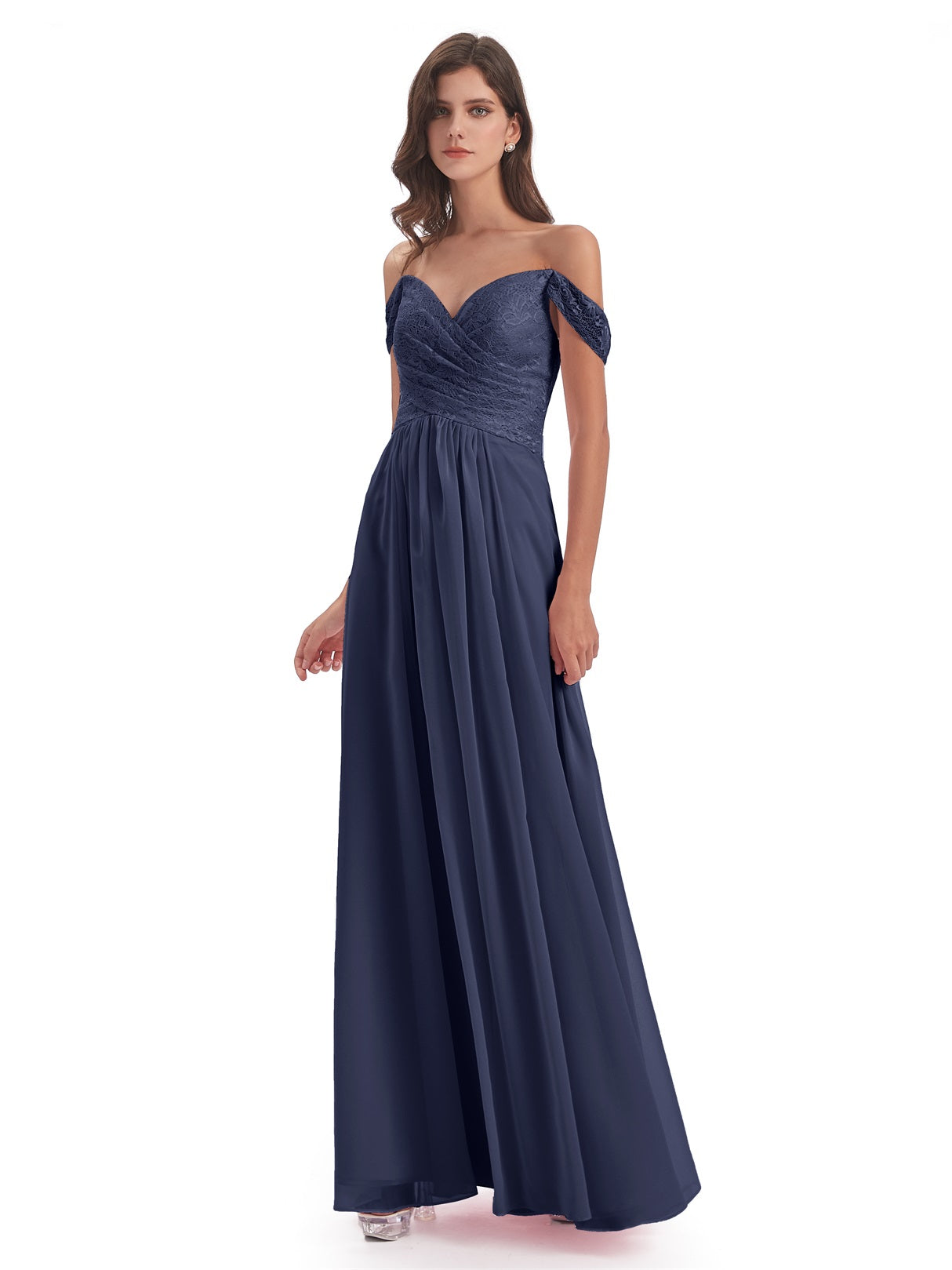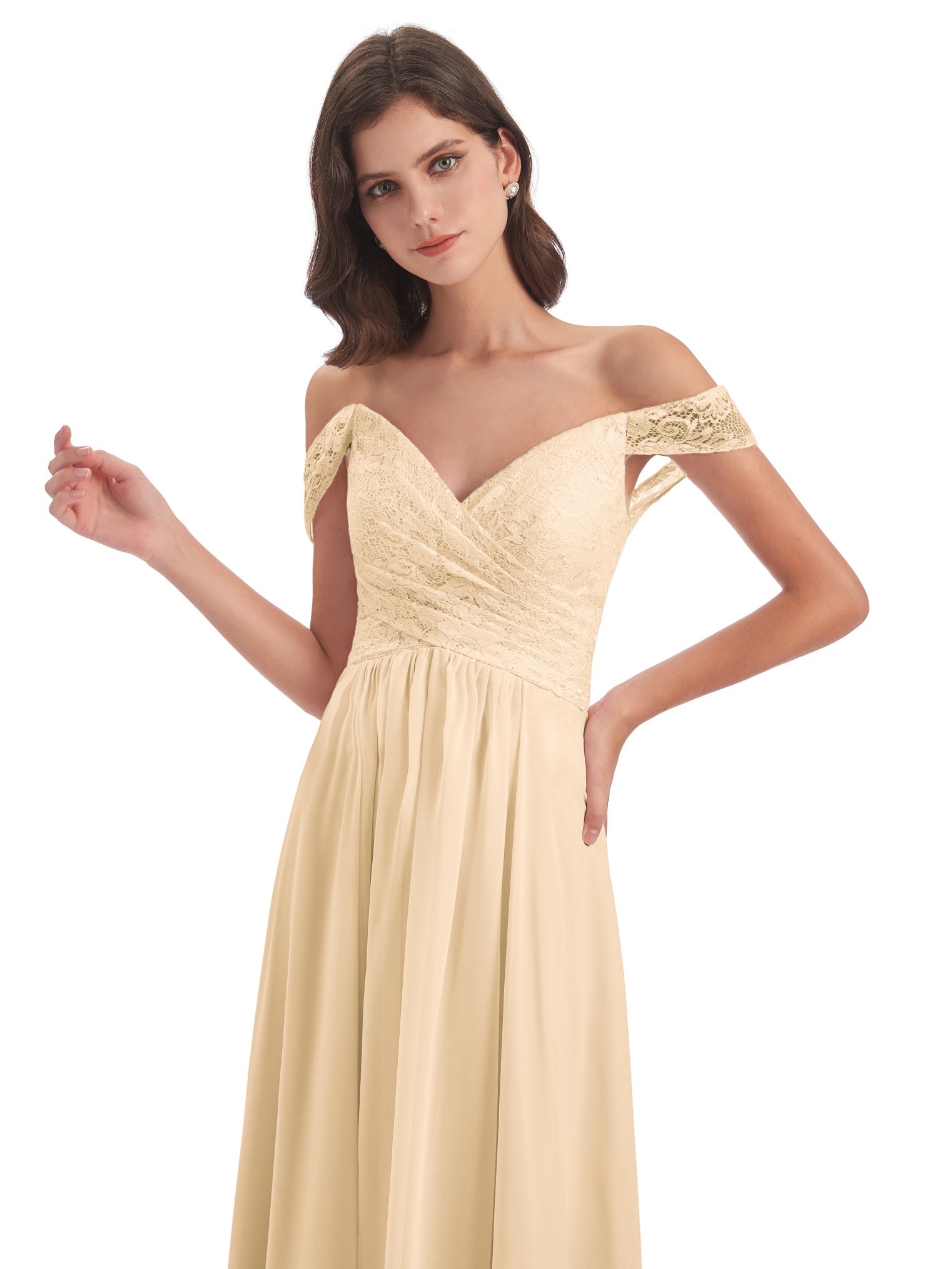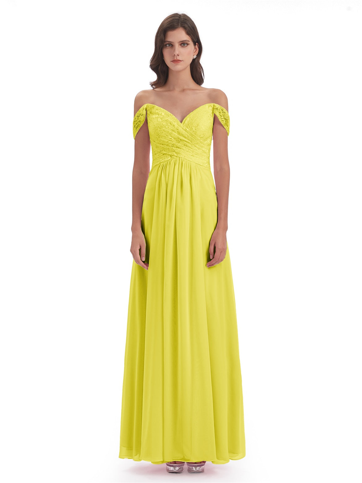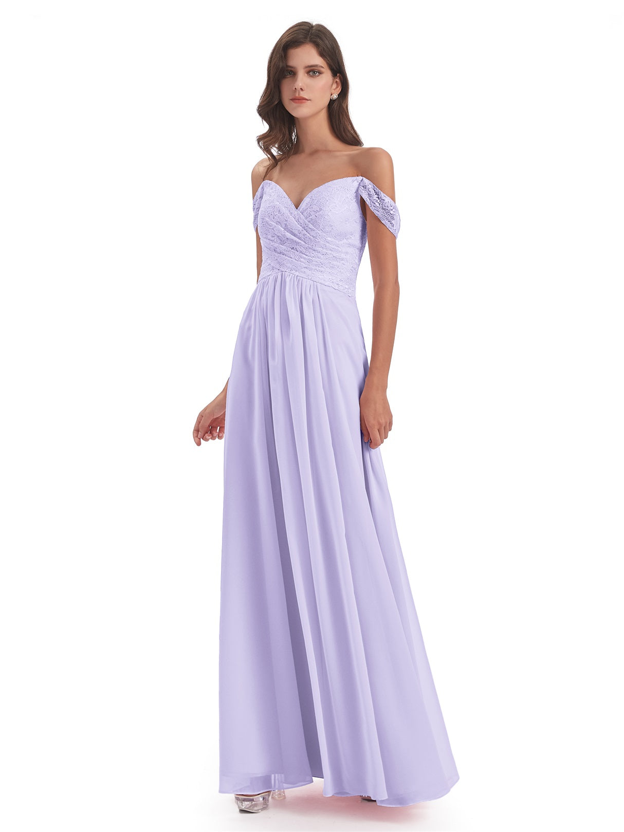 Marjorie A-Linie Bodenlange Schulterfreie Spitze/Chiffon Lange Brautjungfernkleider