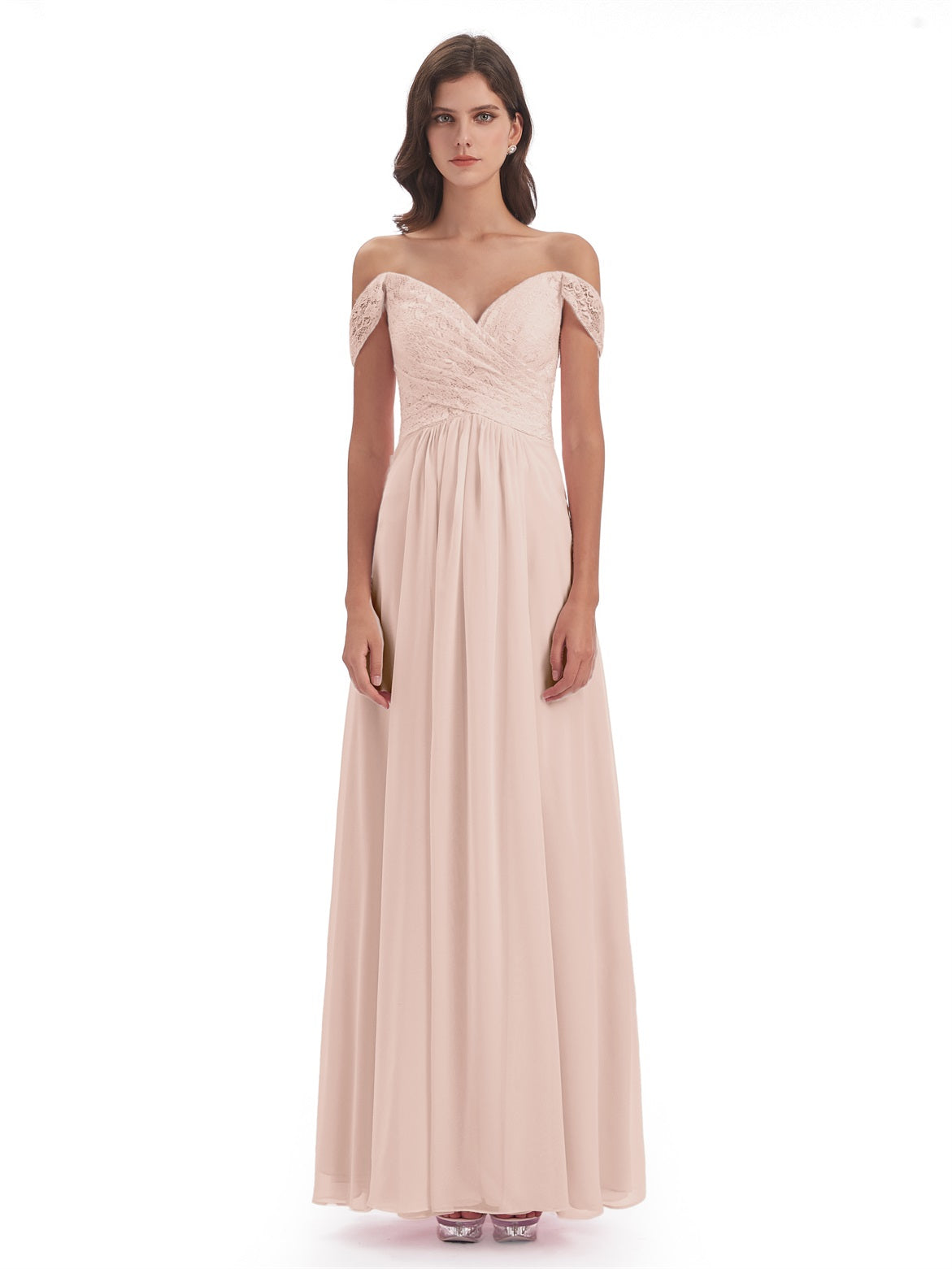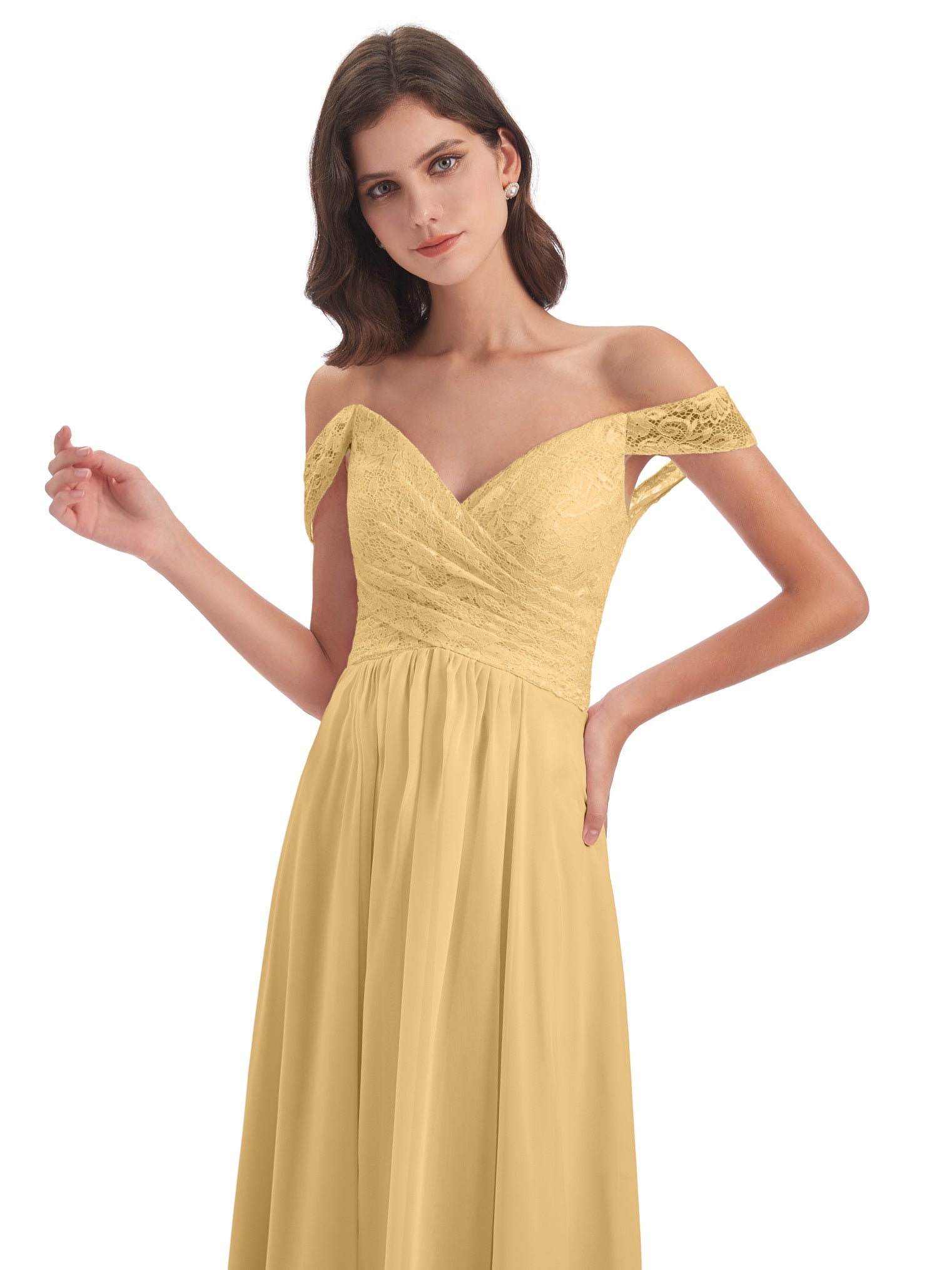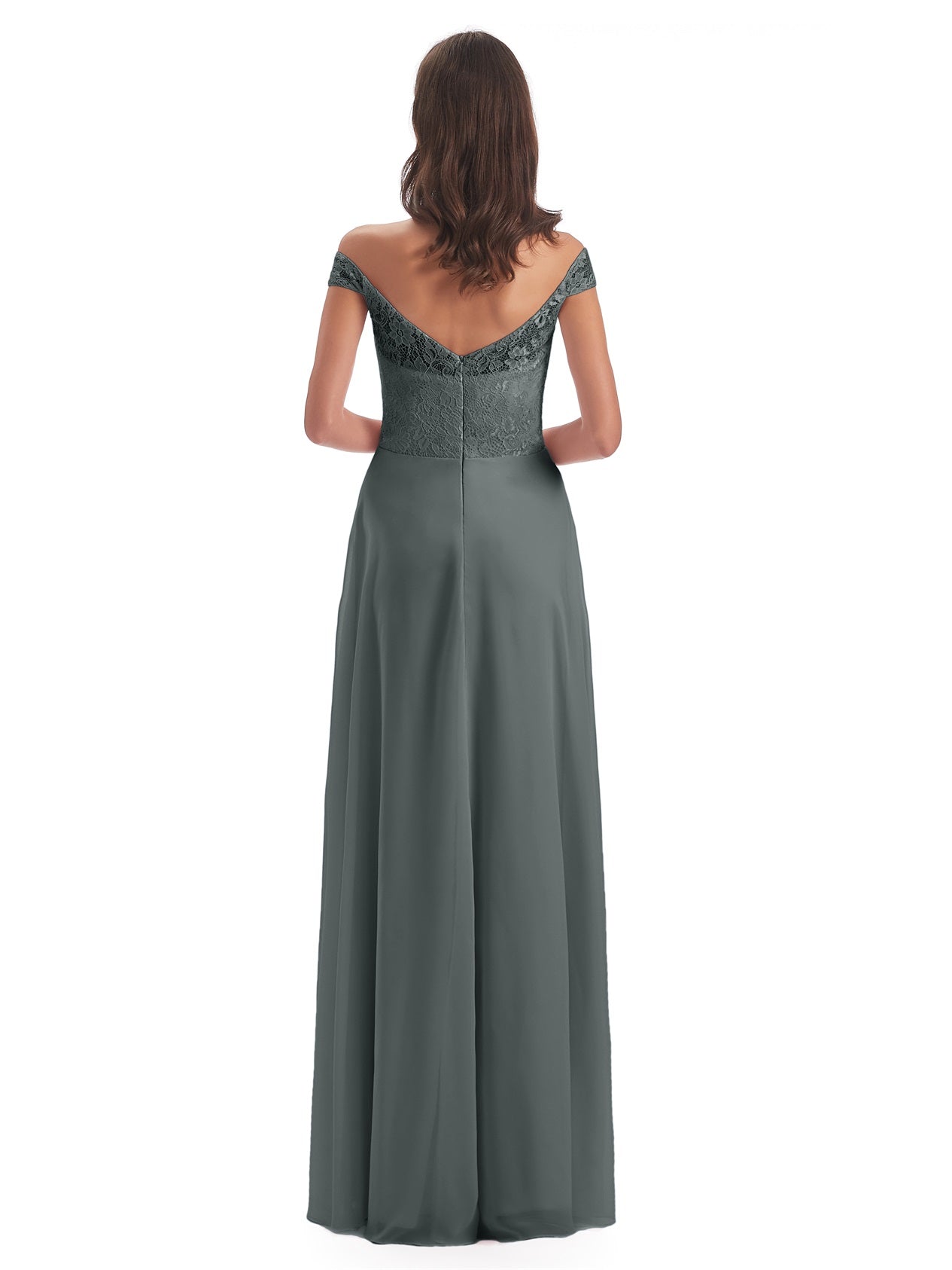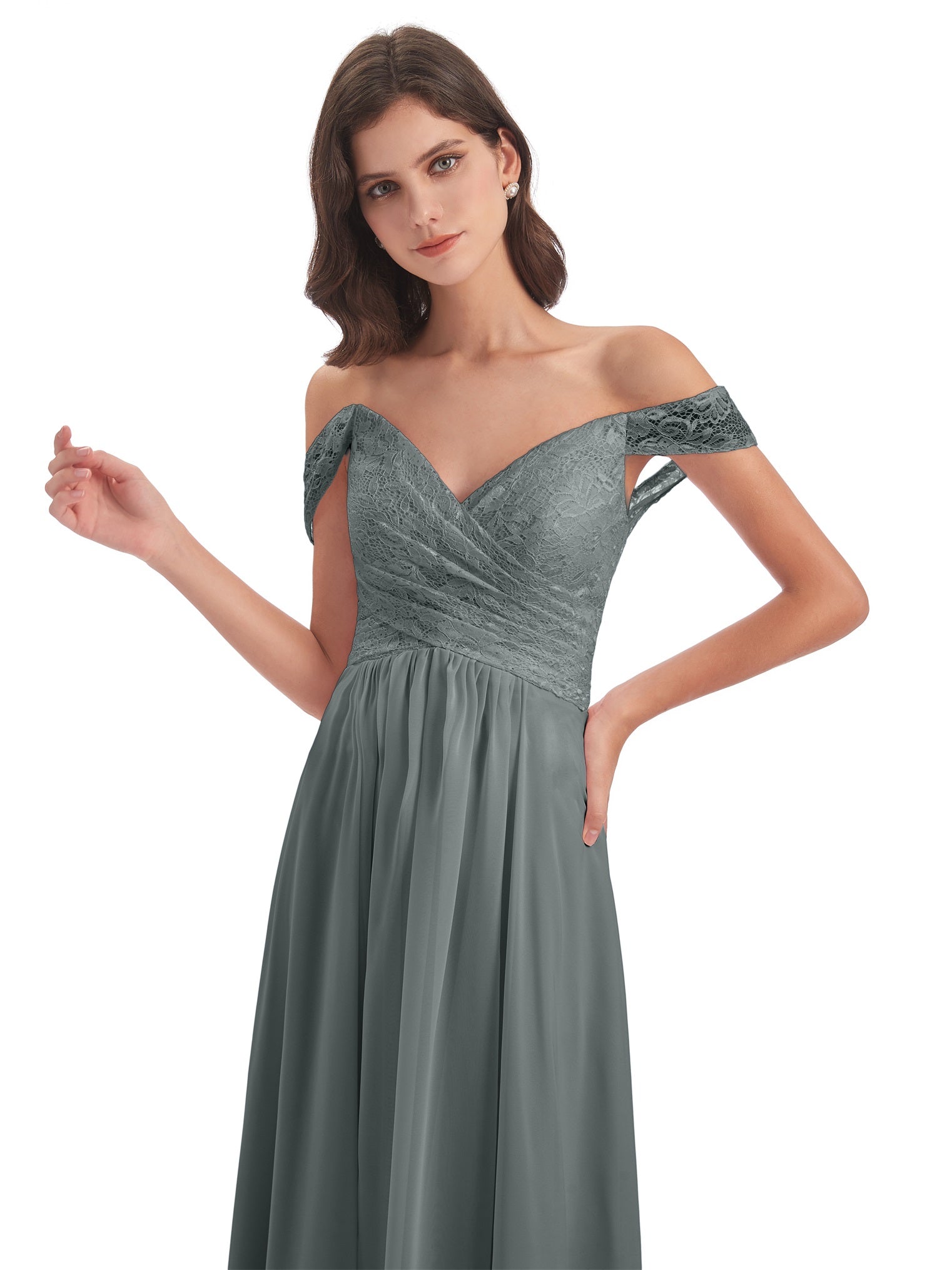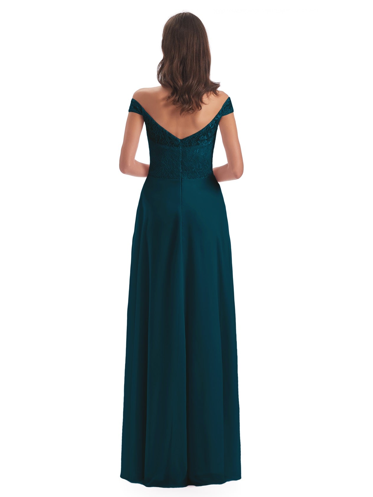 Marjorie A-Linie Bodenlange Schulterfreie Spitze/Chiffon Lange Brautjungfernkleider