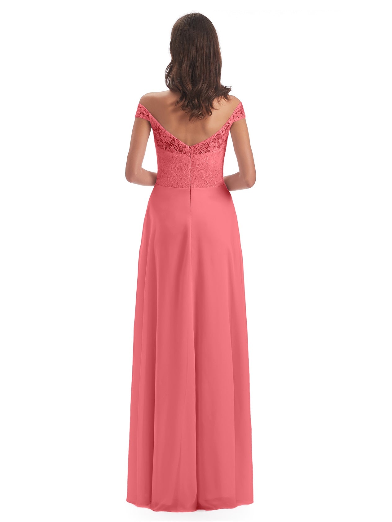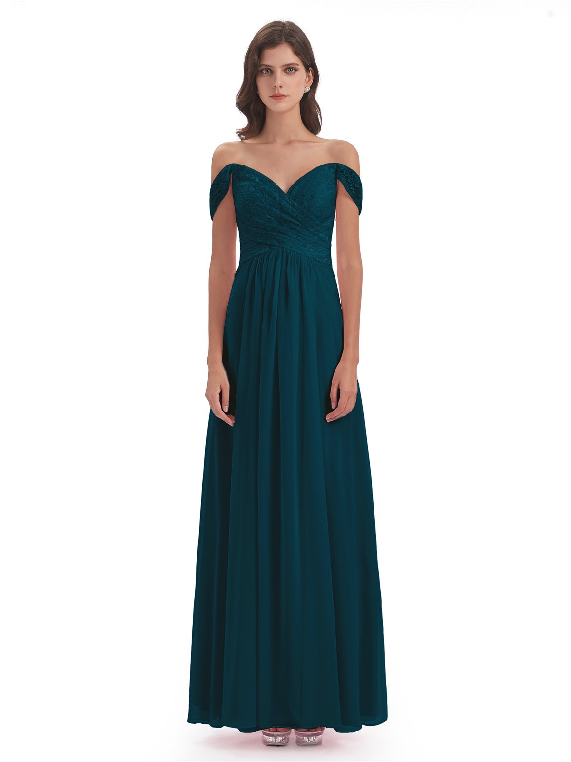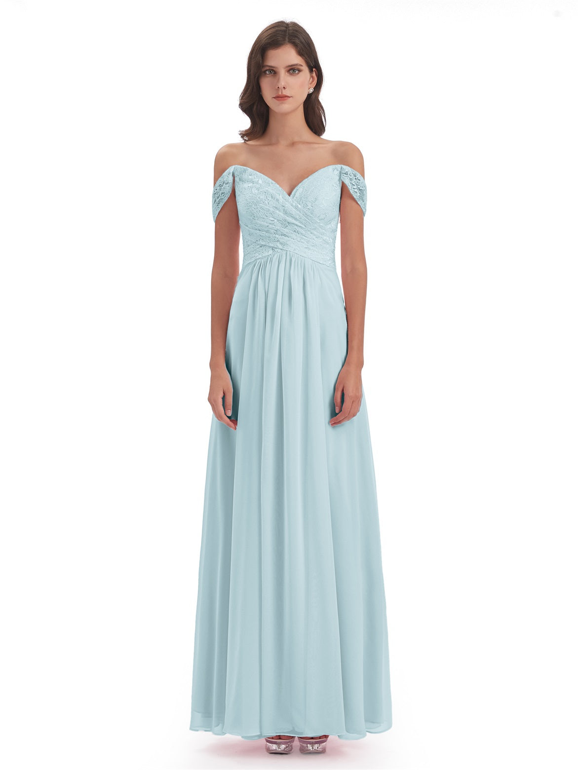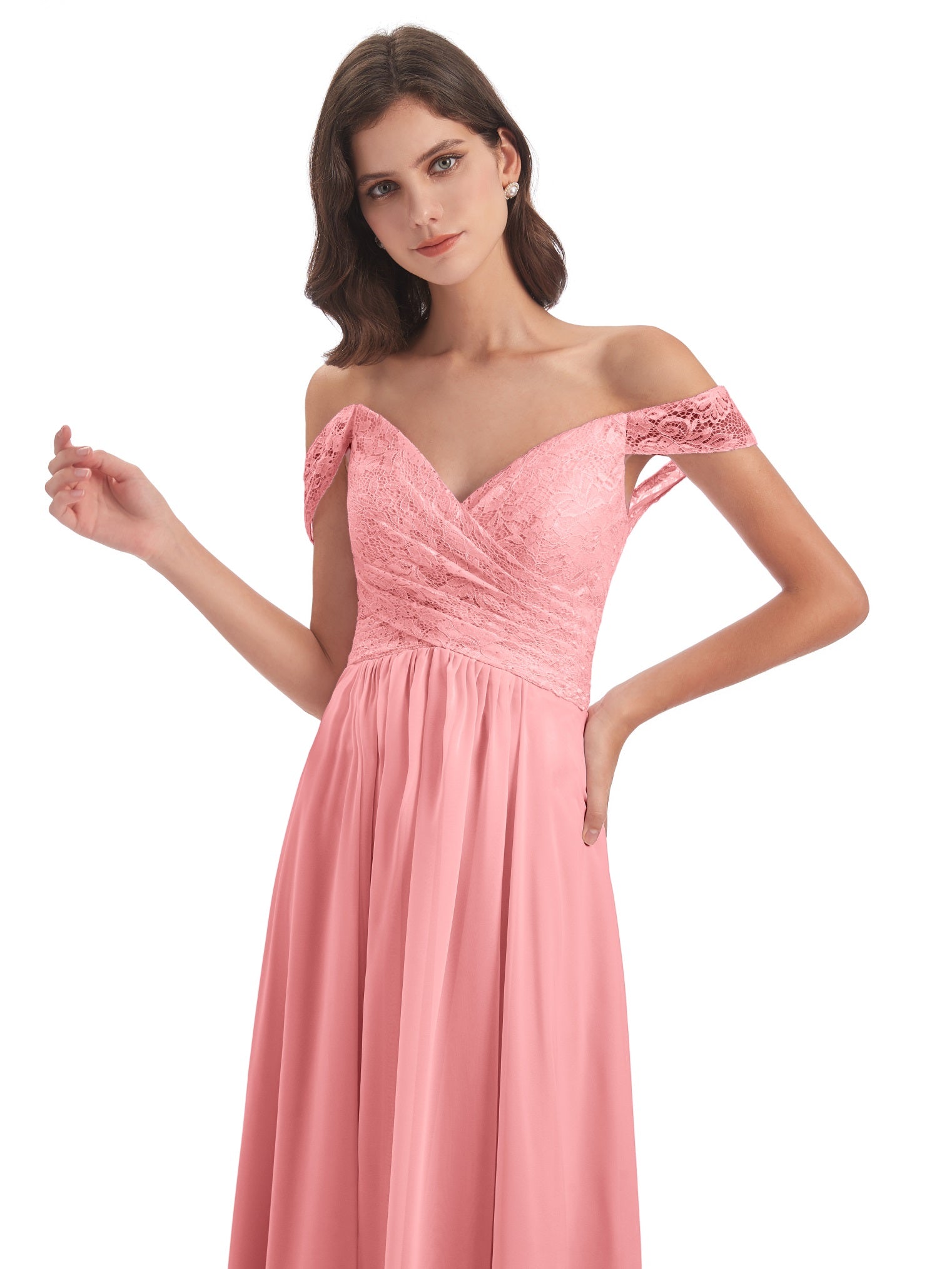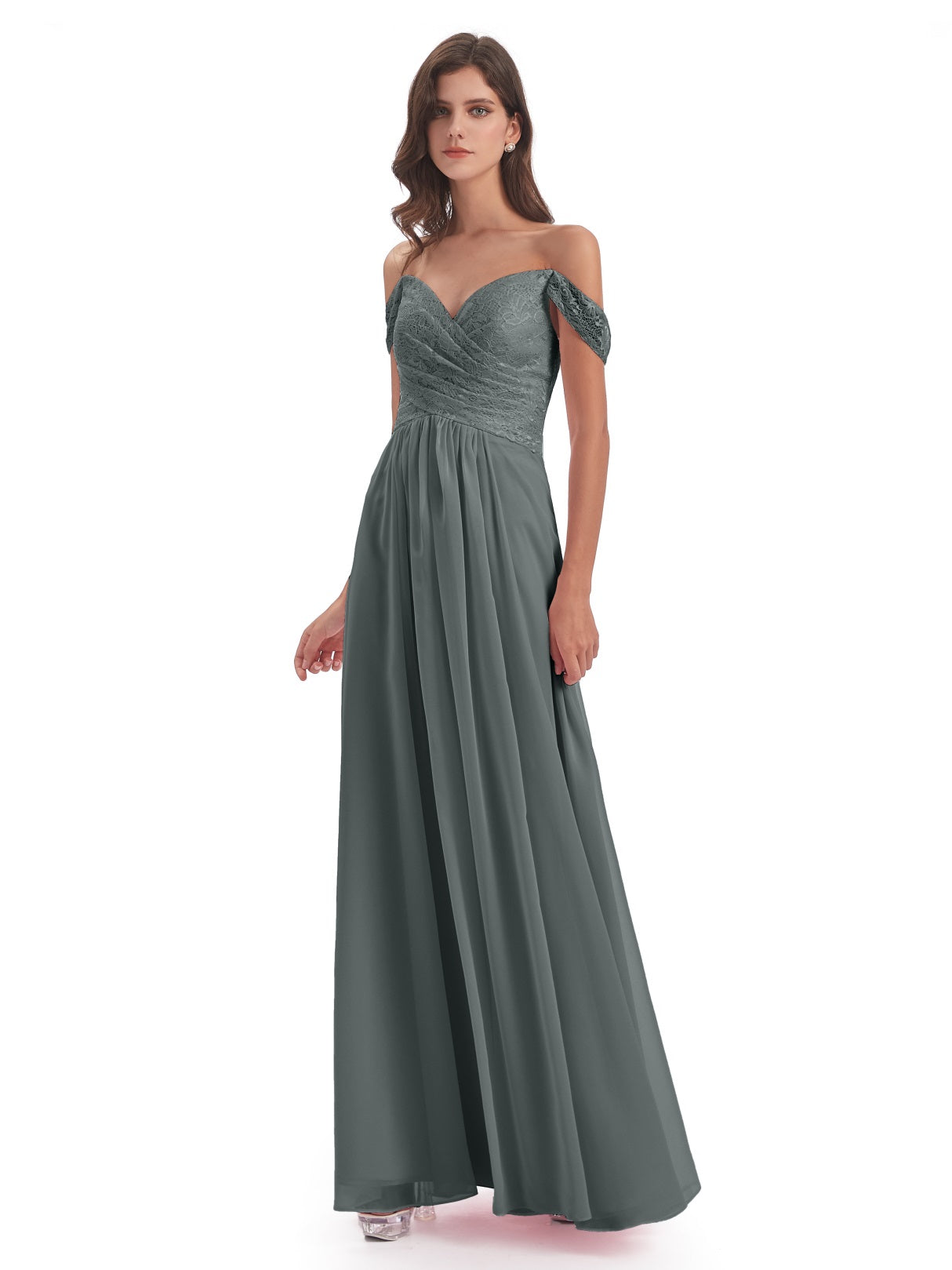 Marjorie A-Linie Bodenlange Schulterfreie Spitze/Chiffon Lange Brautjungfernkleider
