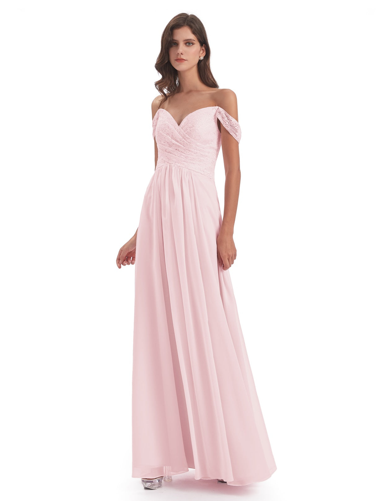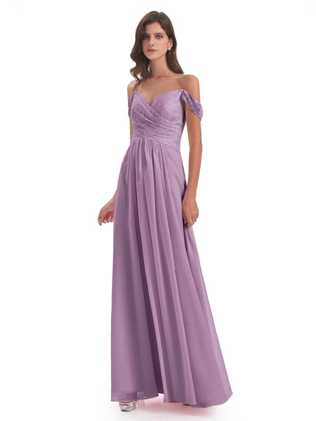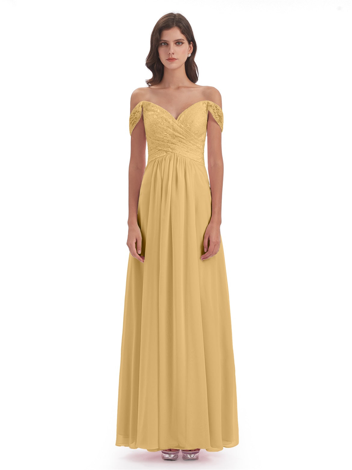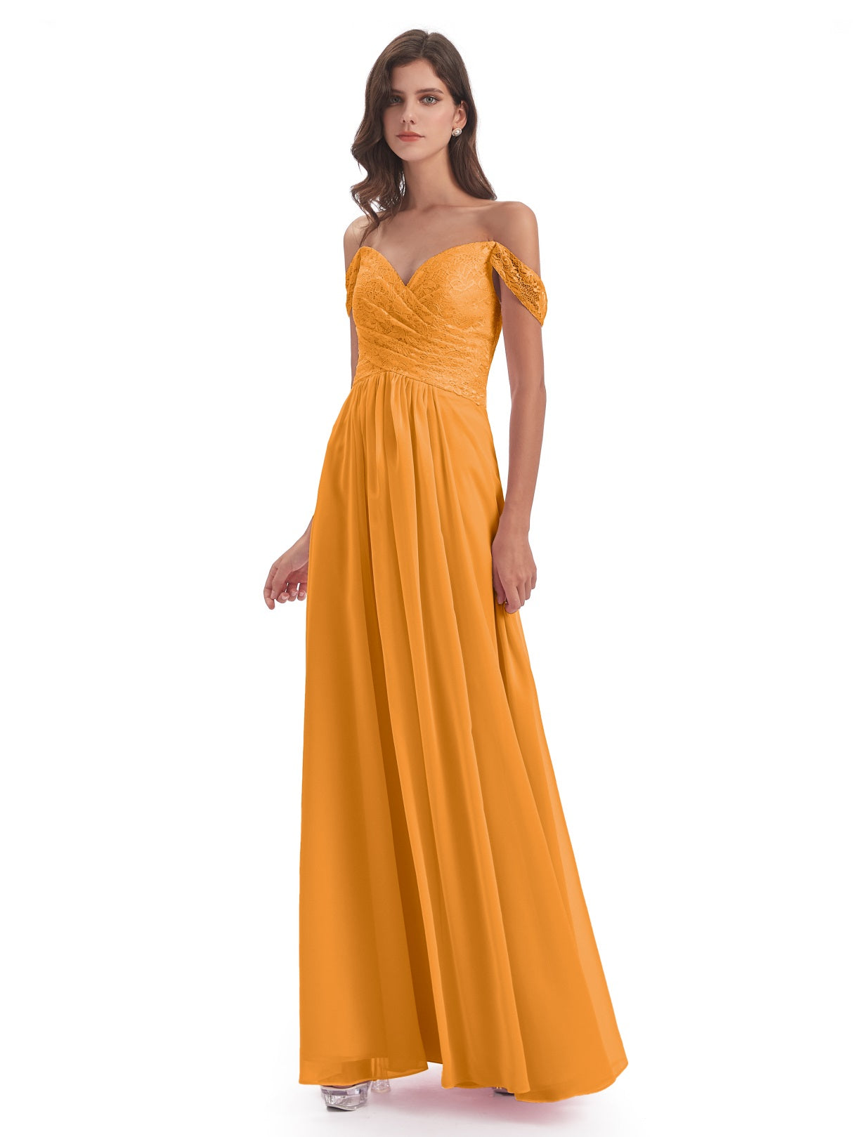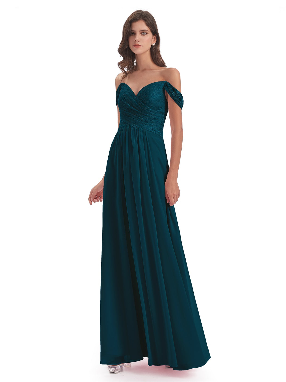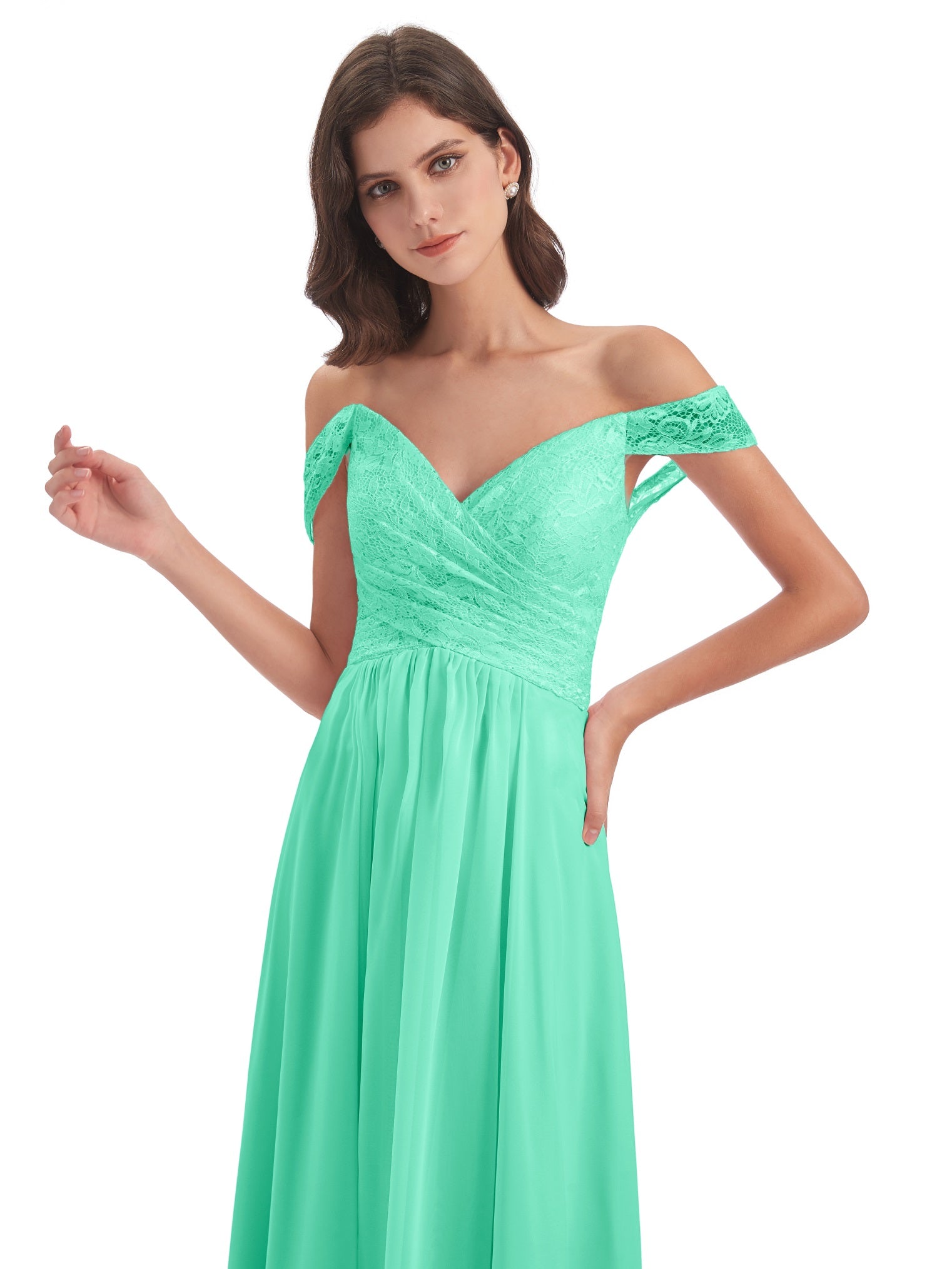 Marjorie A-Linie Bodenlange Schulterfreie Spitze/Chiffon Lange Brautjungfernkleider