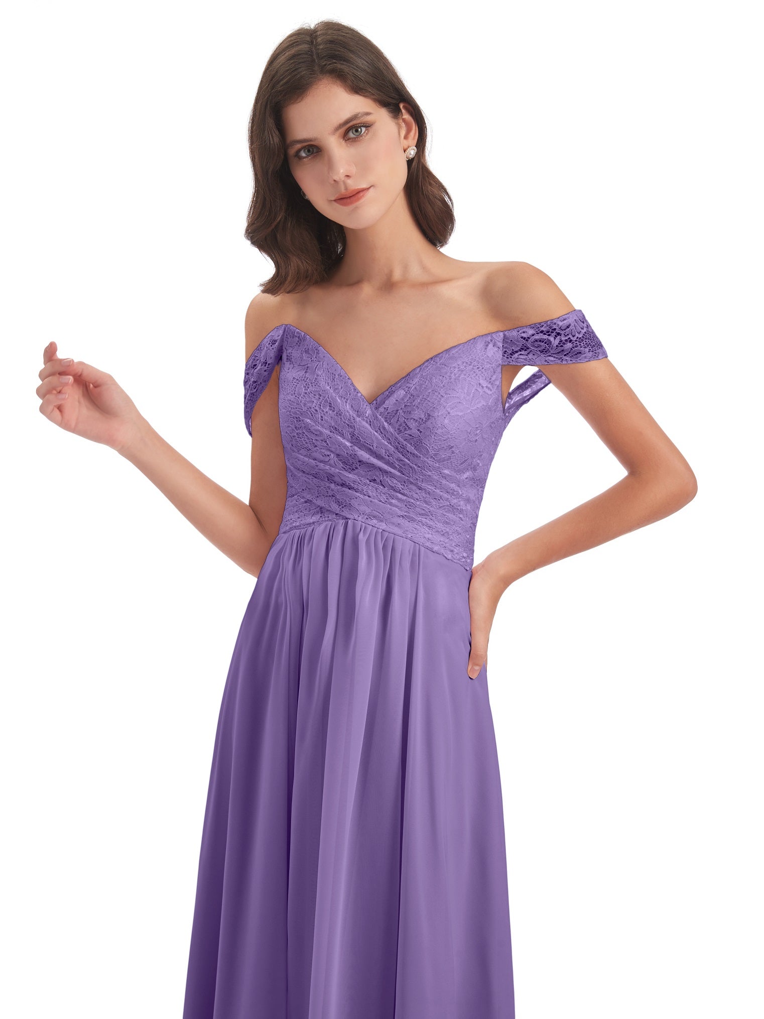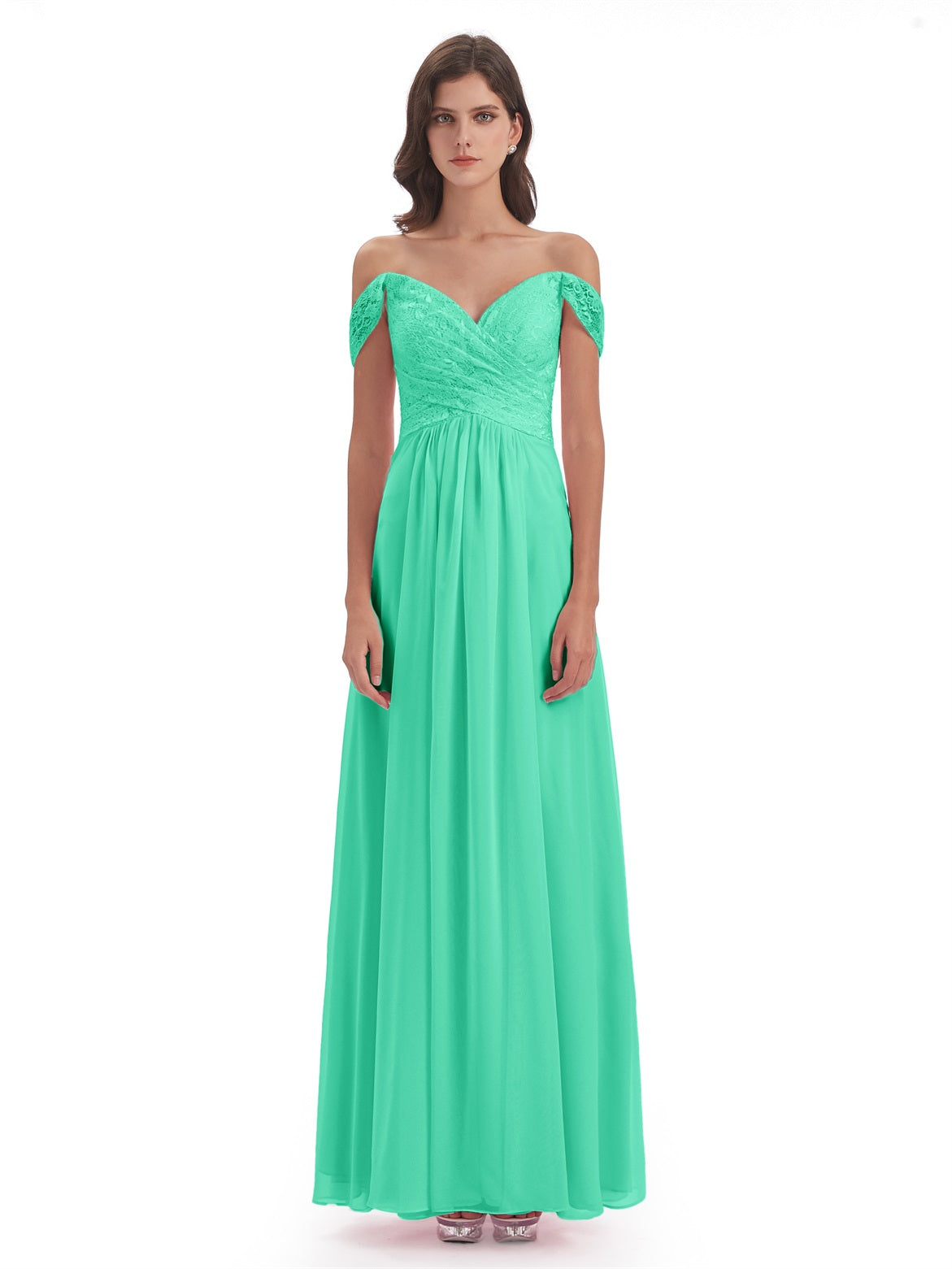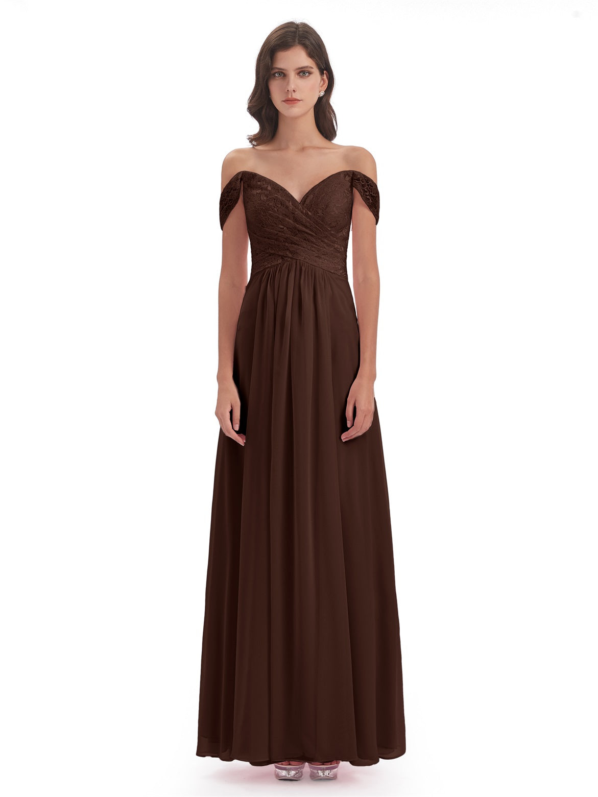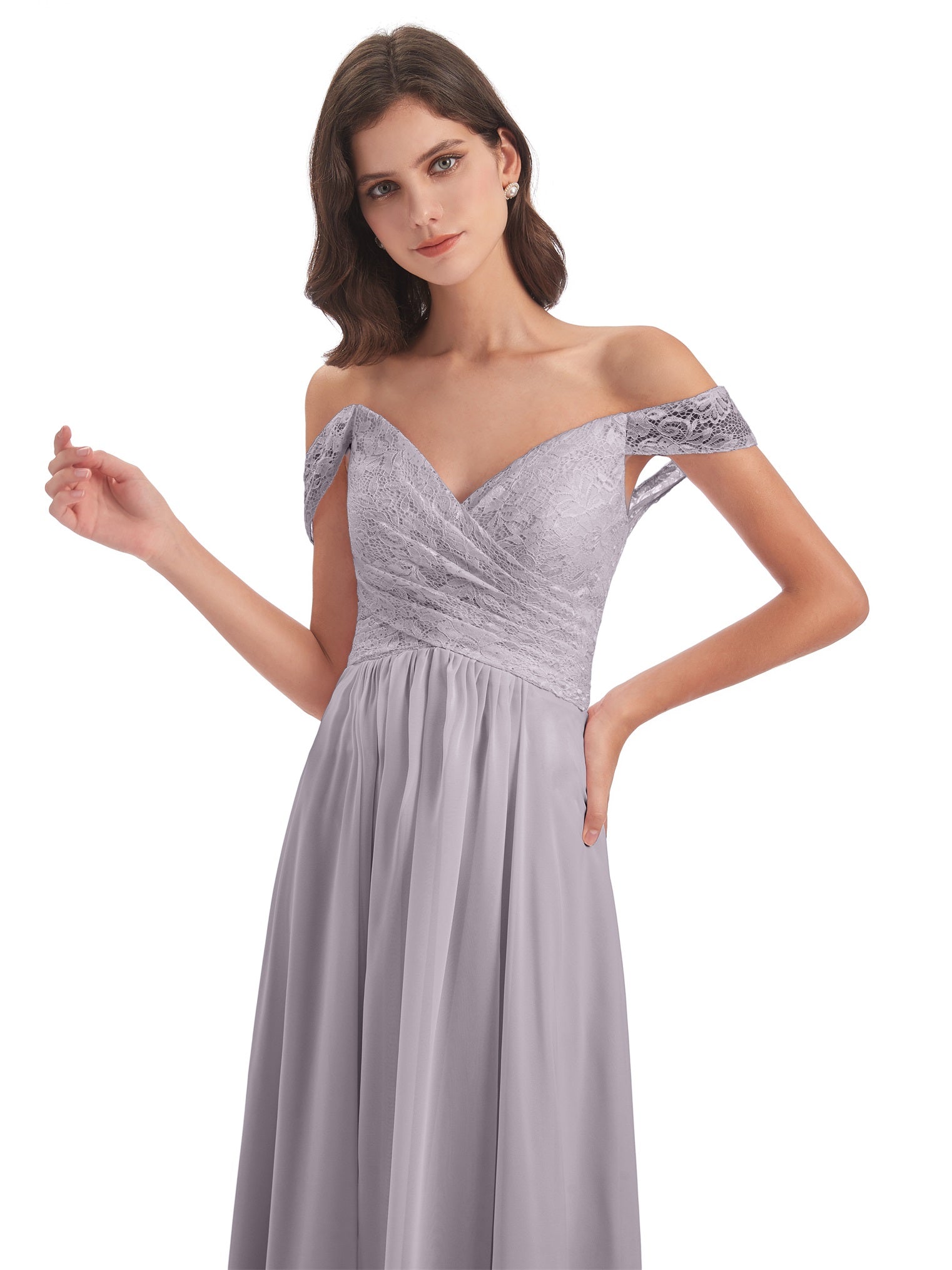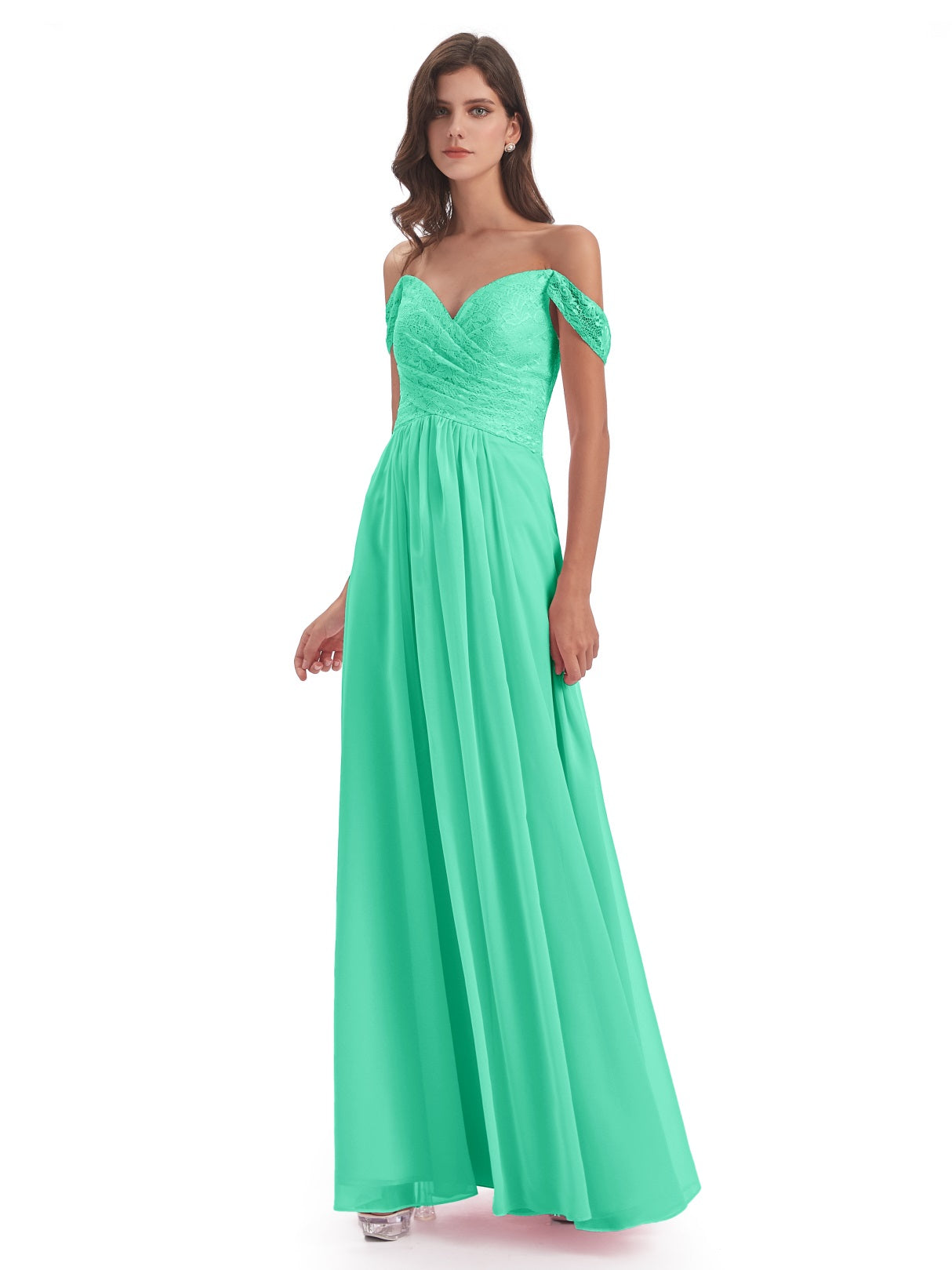 Marjorie A-Linie Bodenlange Schulterfreie Spitze/Chiffon Lange Brautjungfernkleider